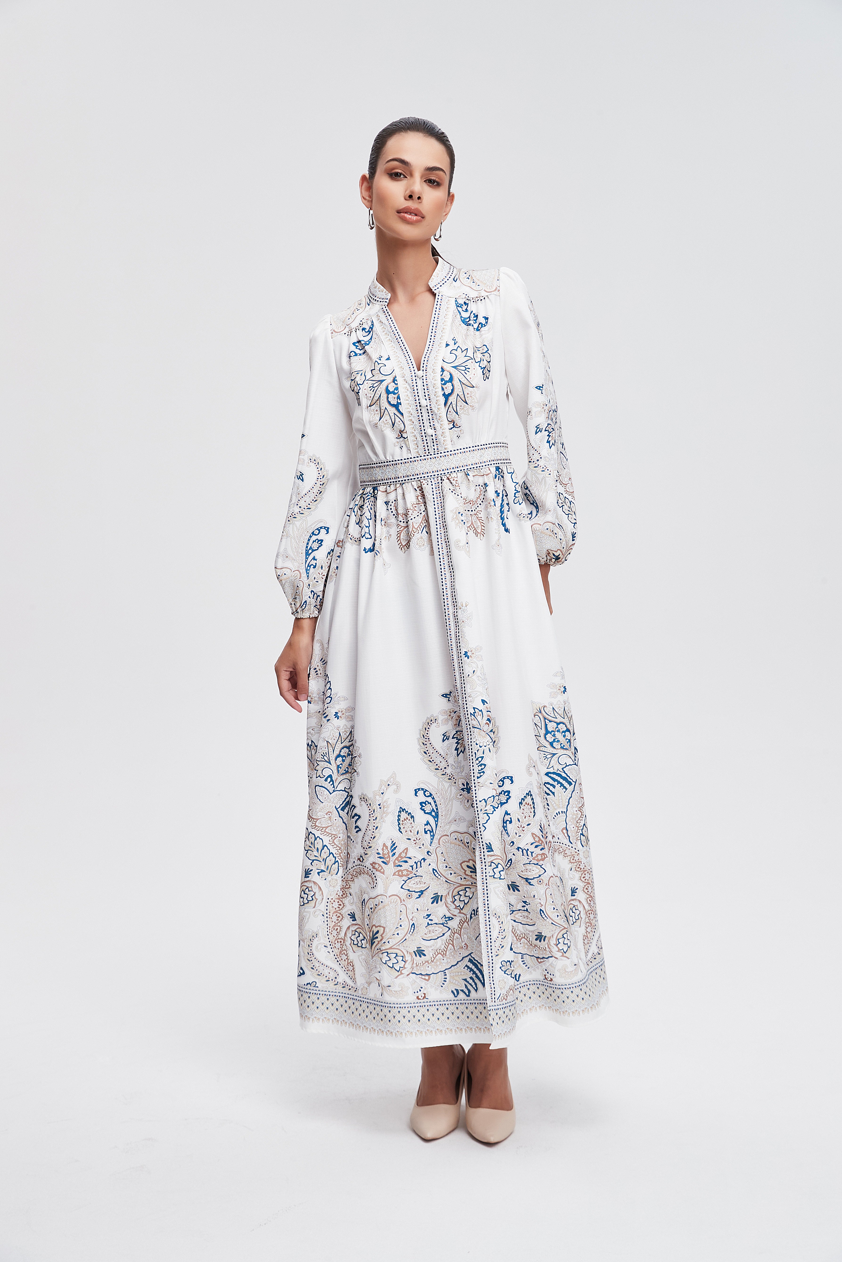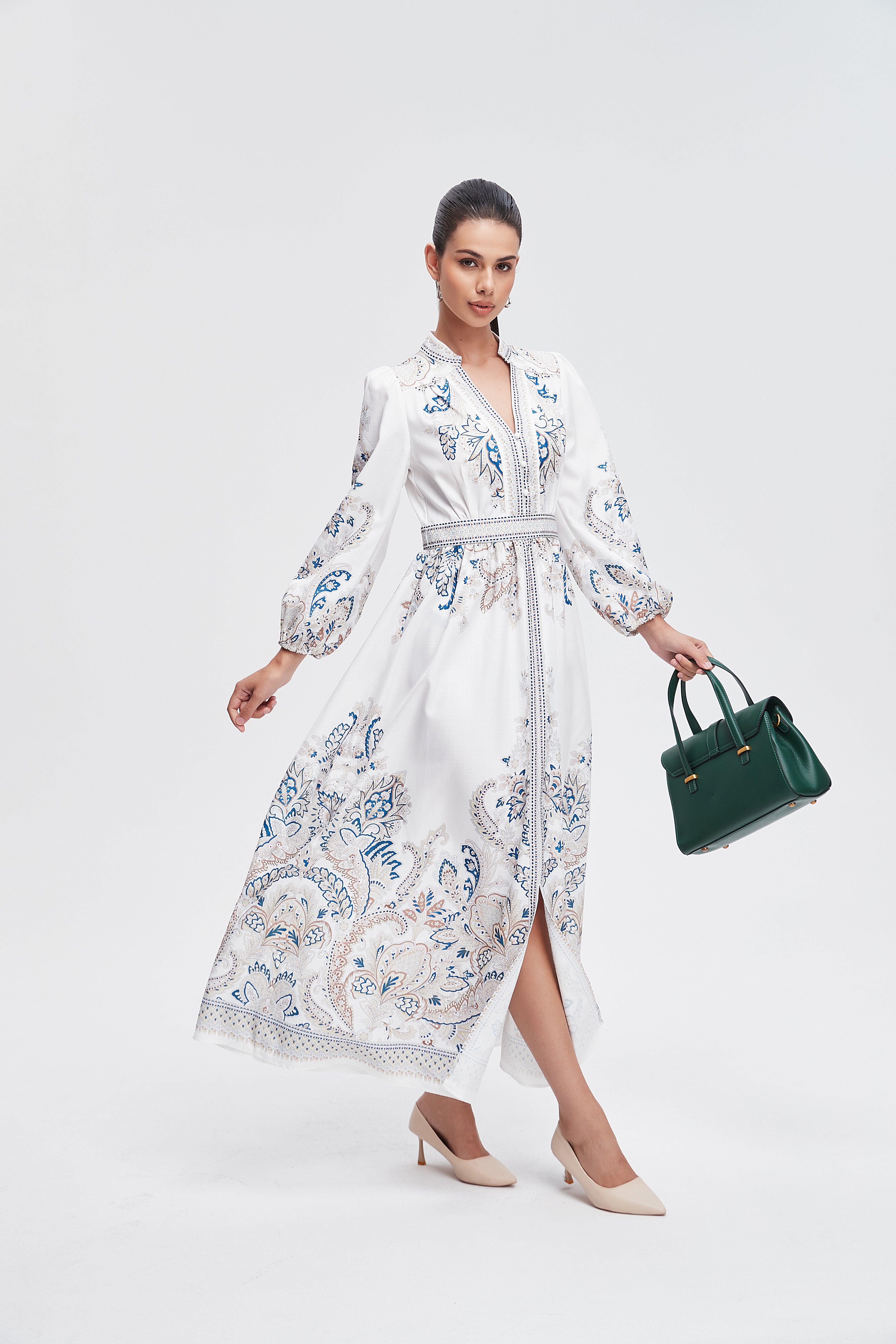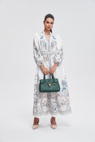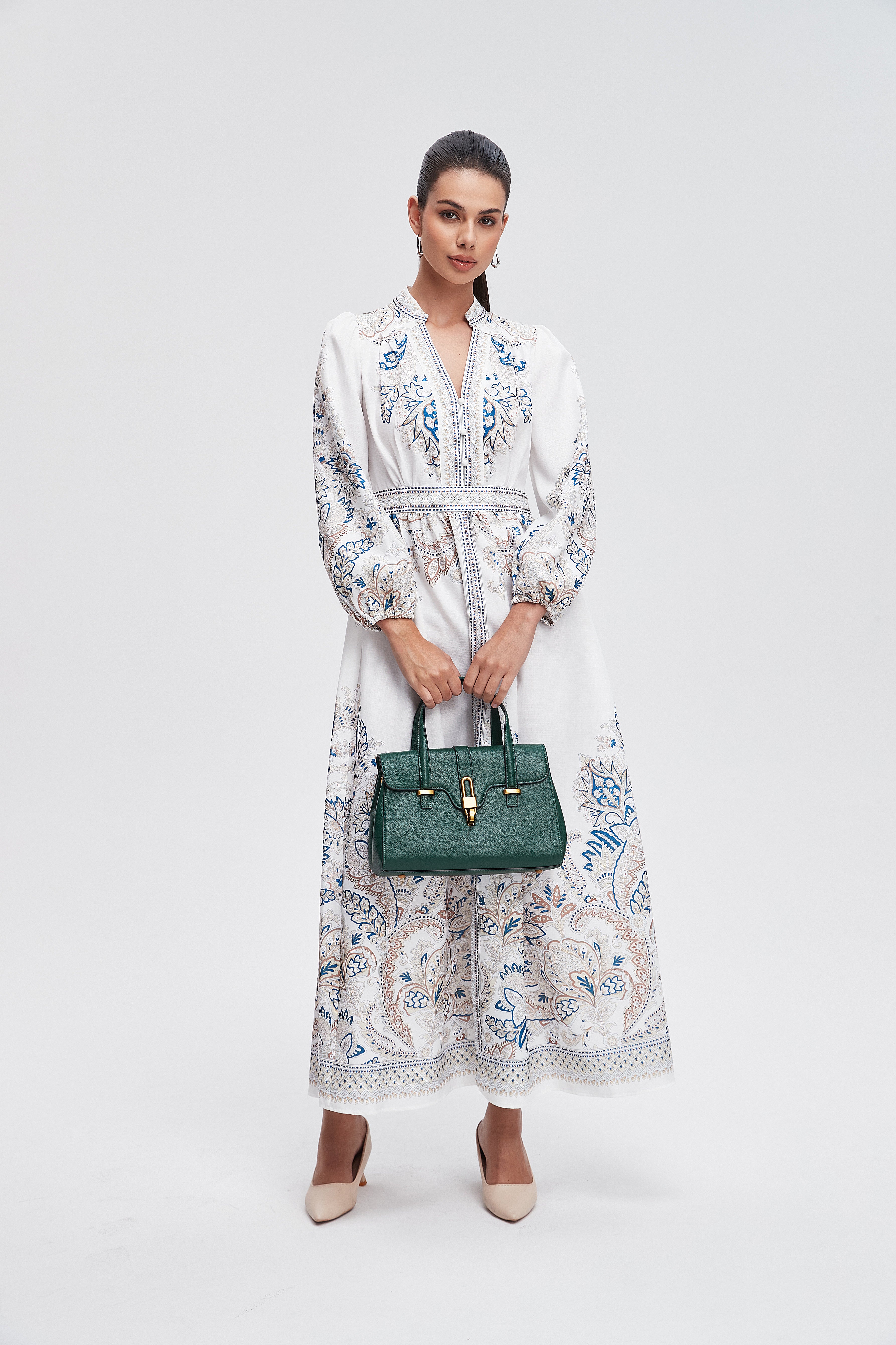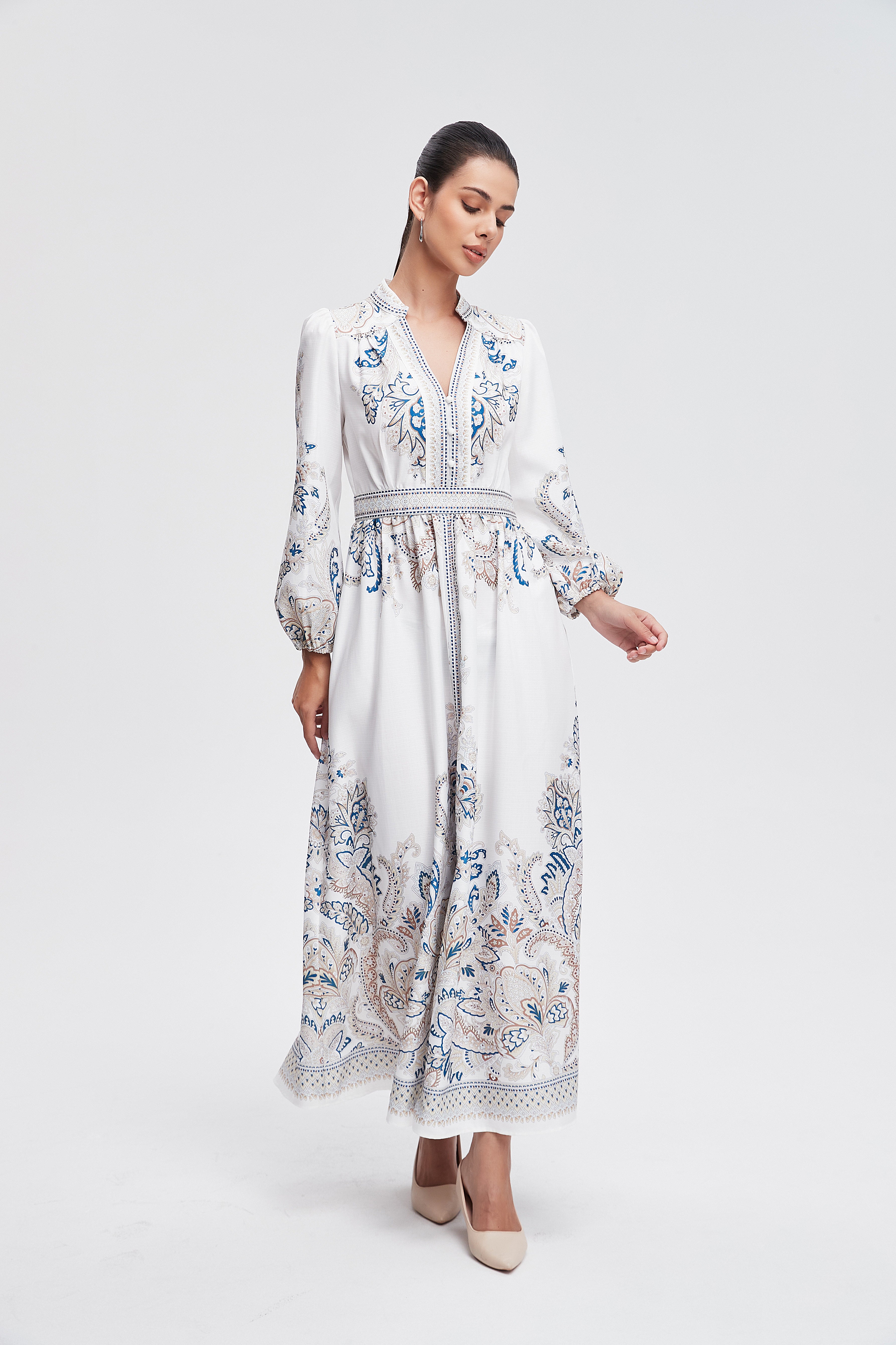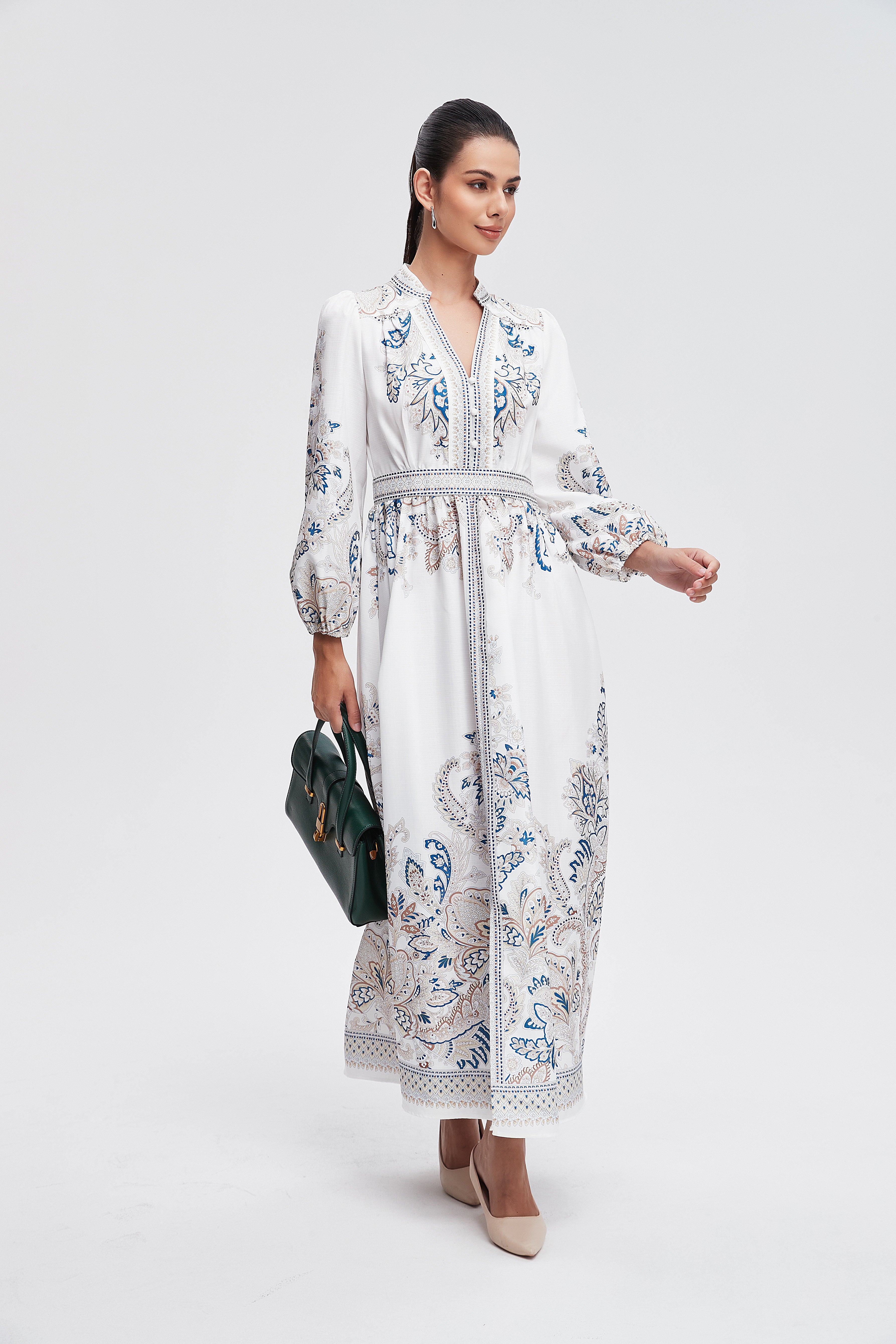 هل تبحثين عن فستان يبقى عملياً وجذاباً في نفس الوقت؟ هذا الفستان رائع لقصته A المريحة وطوله ماكسي الذي يمنحك إطلالة أنثوية متوازنة. الخامة من بوليستر 100% تجعل الفستان خفيفاً نسبياً ومناسباً لكل المواسم بفضل سماكته المتوسطة، وستحبين كيف يتحرك معك أثناء المشي. النقش المنقوش على القاعدة البيضاء يمنح القطعة طابعاً نهارياً مليئاً بالحيوية، وياقة القميص مع الكم الطويل وإغلاق بالأزرار تضفي لمسة كلاسيكية عملية. الفستان بدون بطانة وبدون جيوب وبدون حزام، ما يجعله خياراً بسيطاً وسهل التنسيق للخروجات الكاجوال أو النزهات والرومانسية المسائية. تصميمه بقصة عادية يناسب النساء البالغات ويمنح مظهراً أنيقاً دون تكلف، مثالي لخزانة موسم متنوع. اعثري على مقاسك في فاشن السعودية وأضيفي هذه القطعة المتنوعة إلى خزانة ملابسك اليوم.