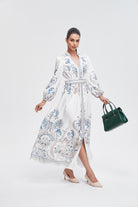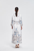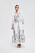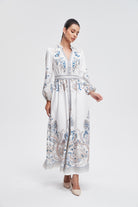 فستان ماكسي بأكمام طويلة بخصر مزين بالورود نسائي