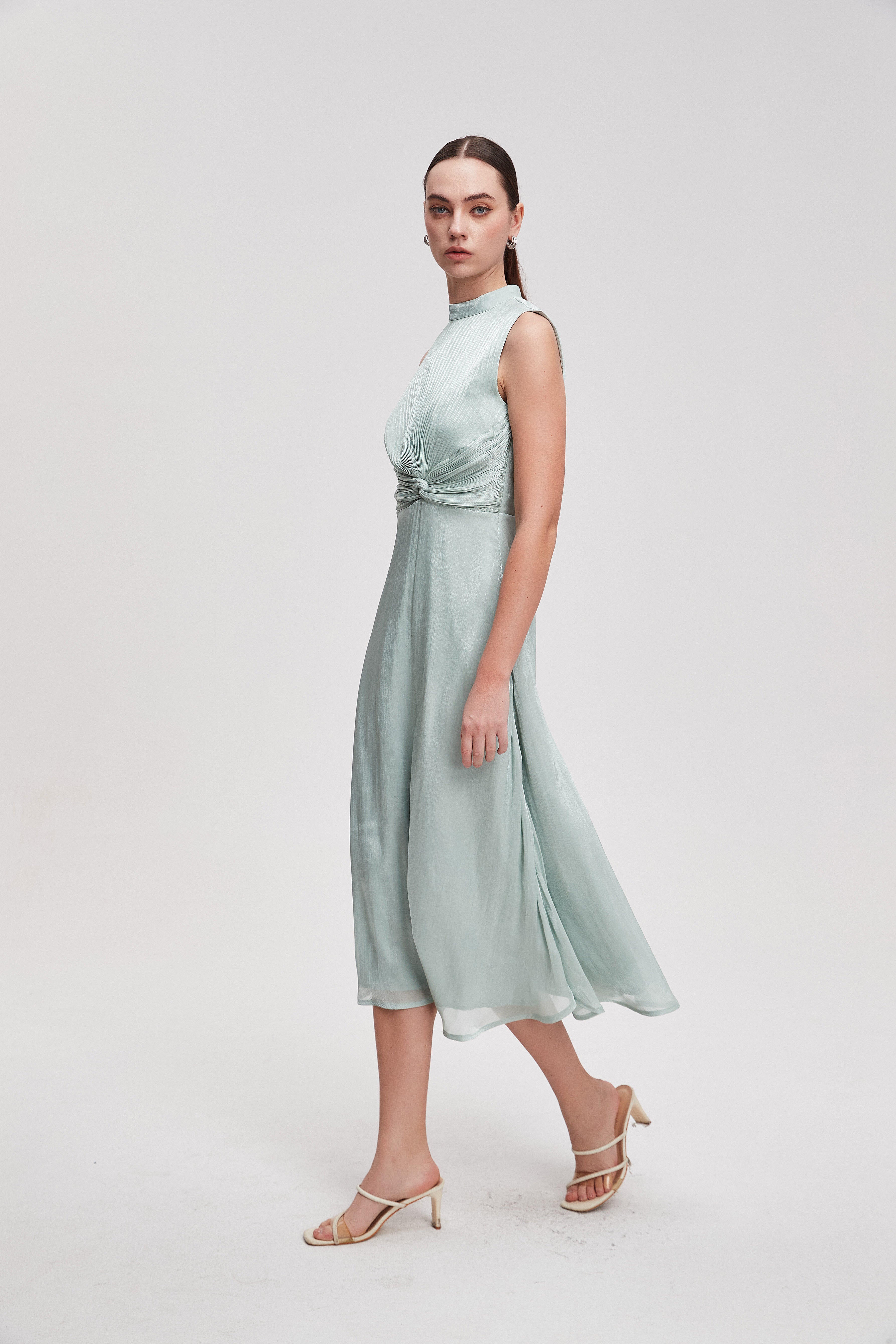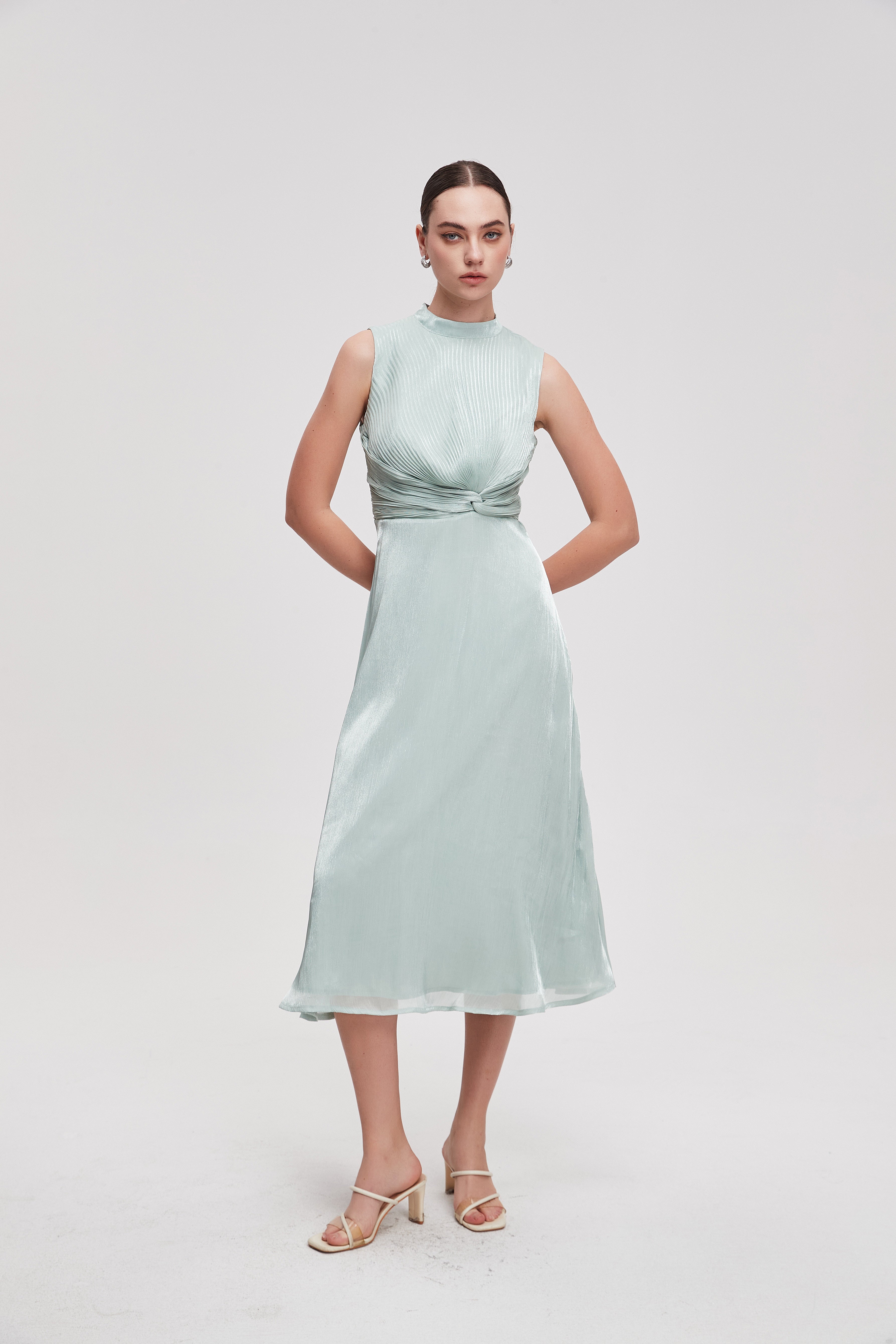 فستان ميدي سادة بدون أكمام