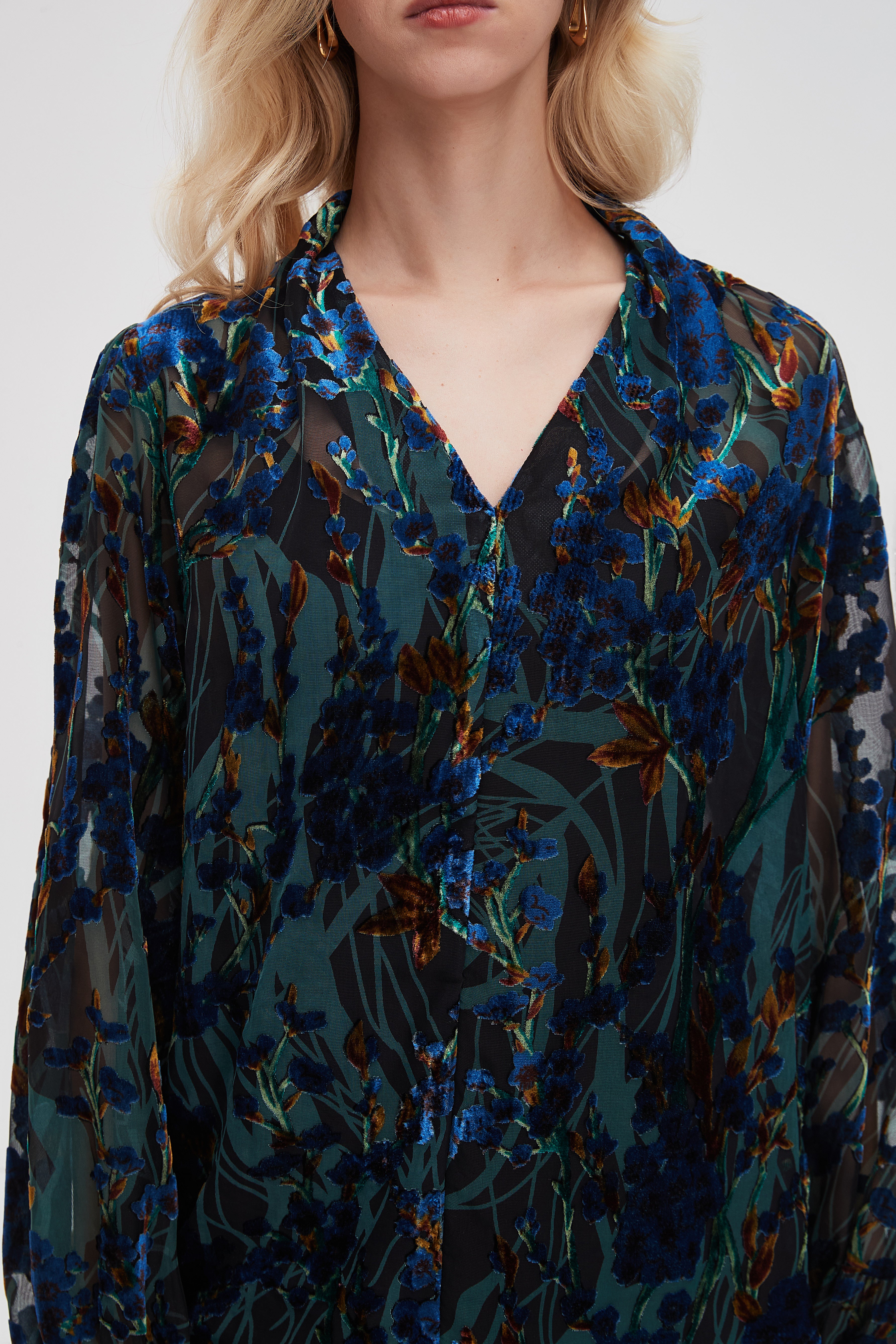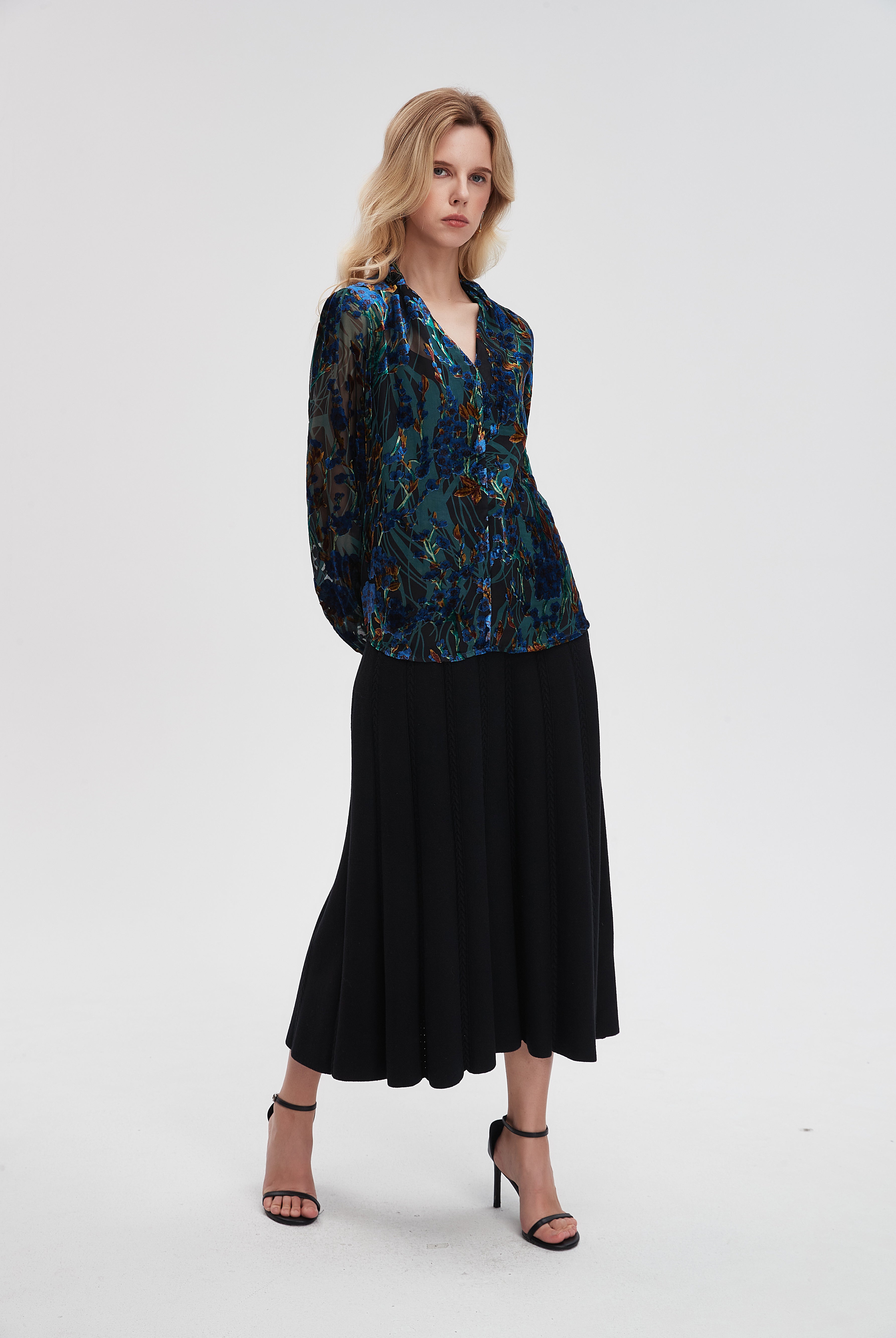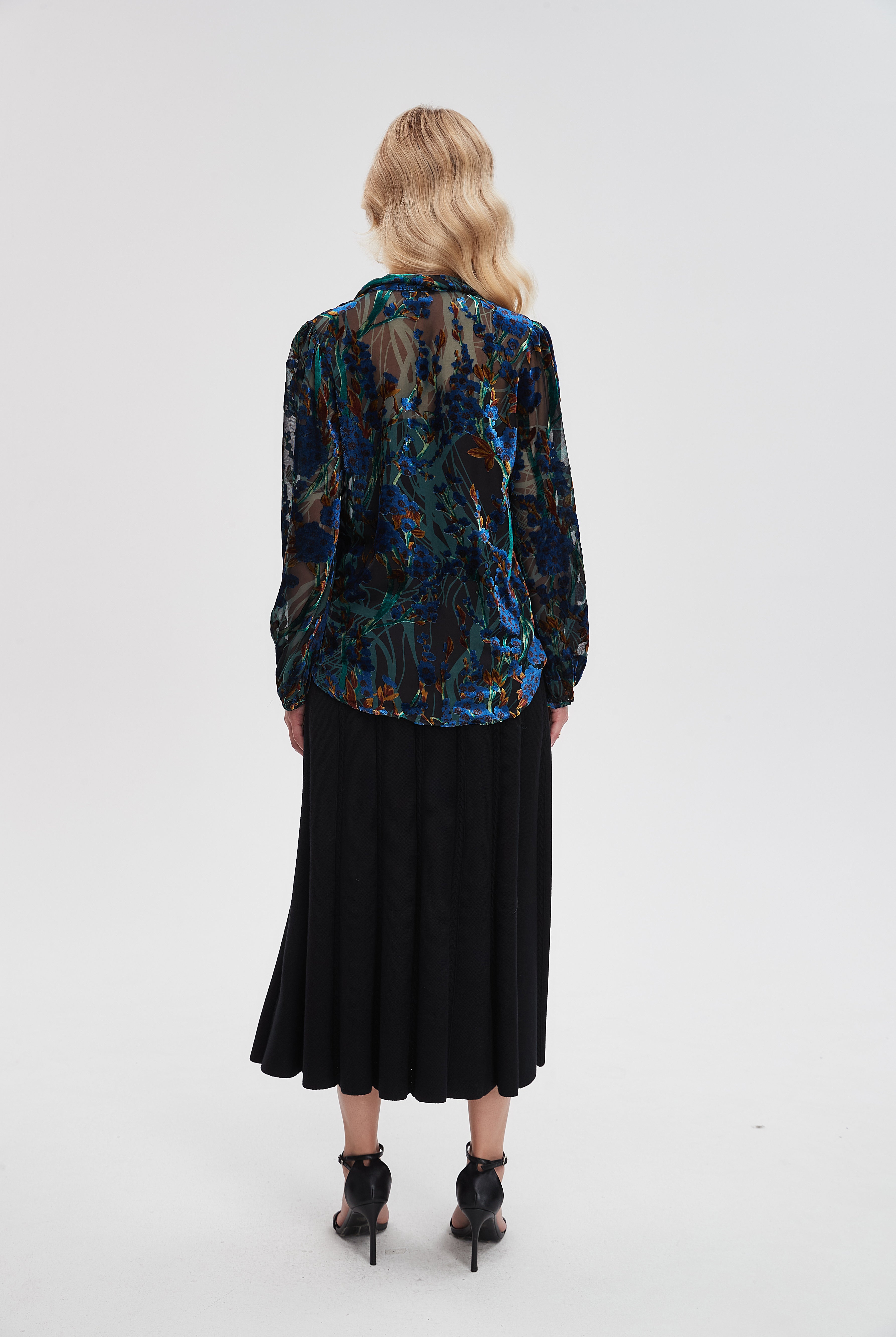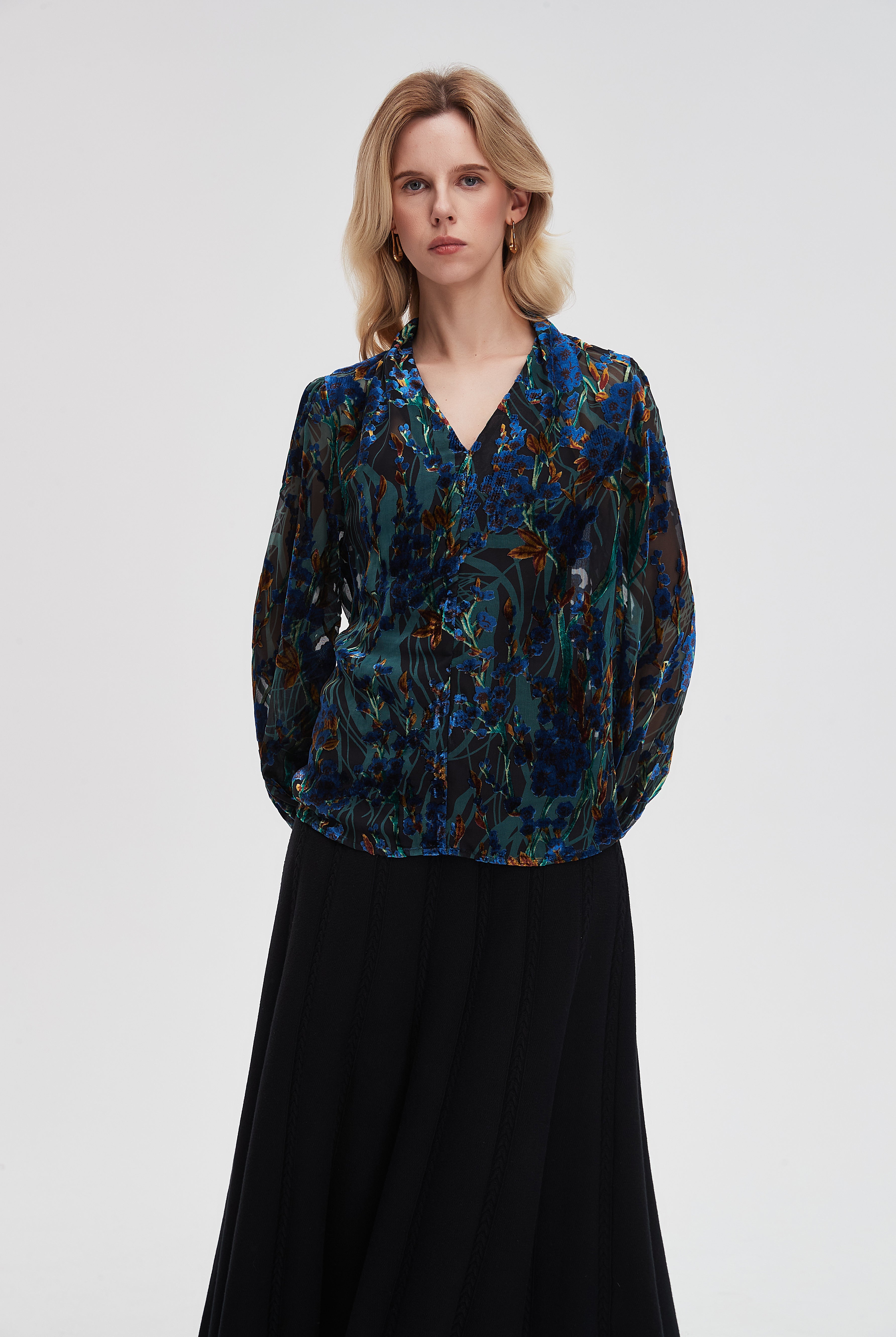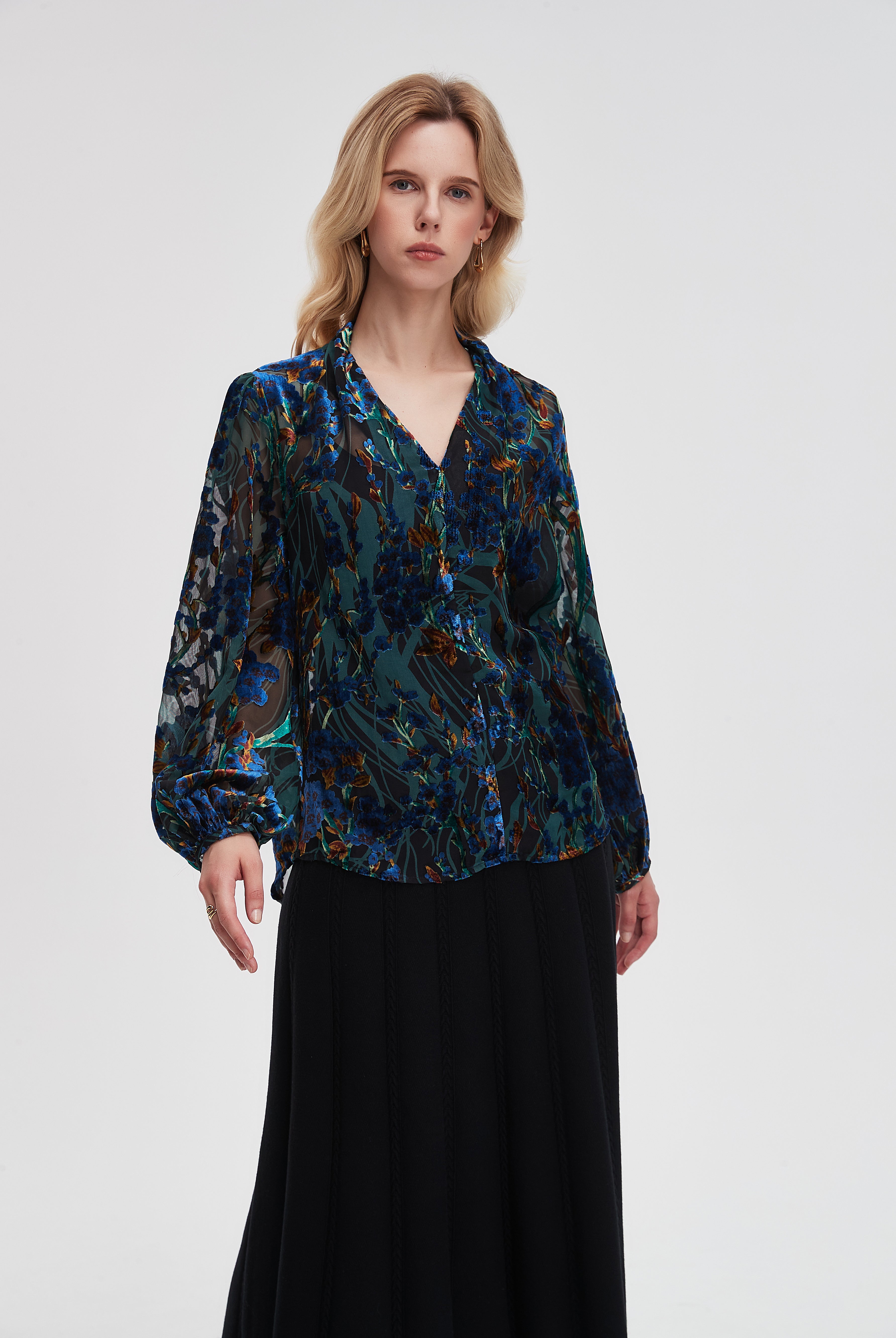 بلوزة نسائية بطبعة ورد وأكمام طويلة