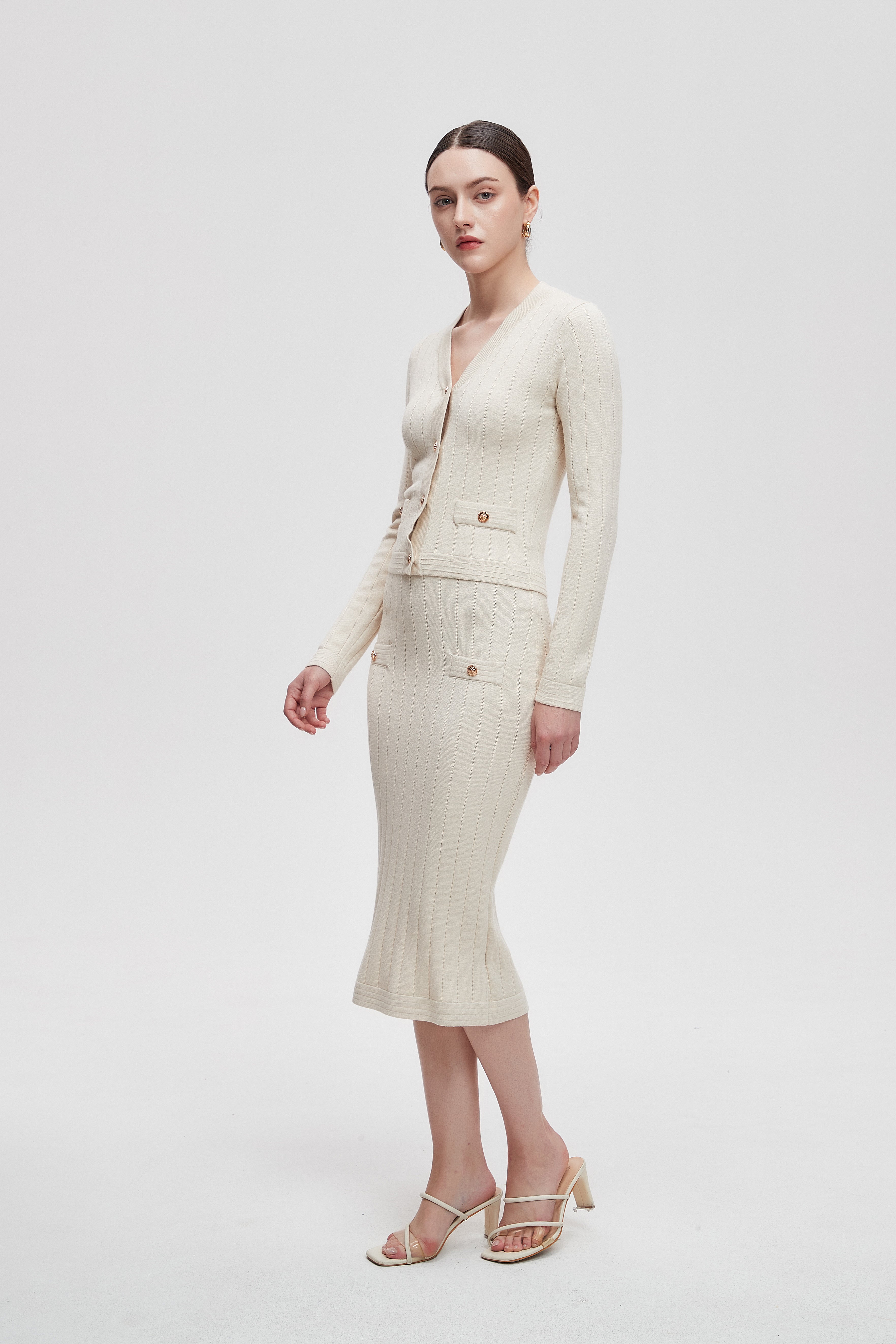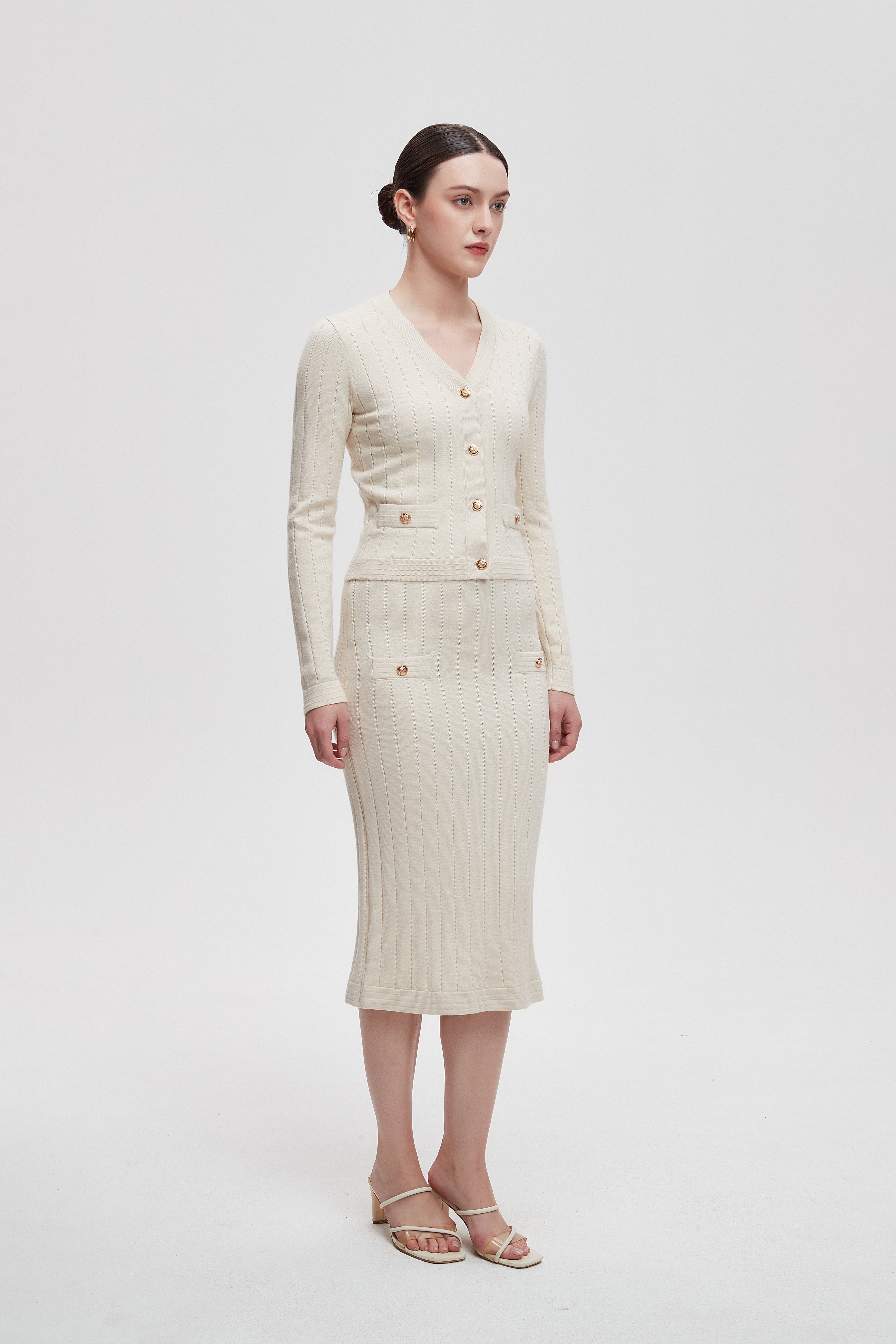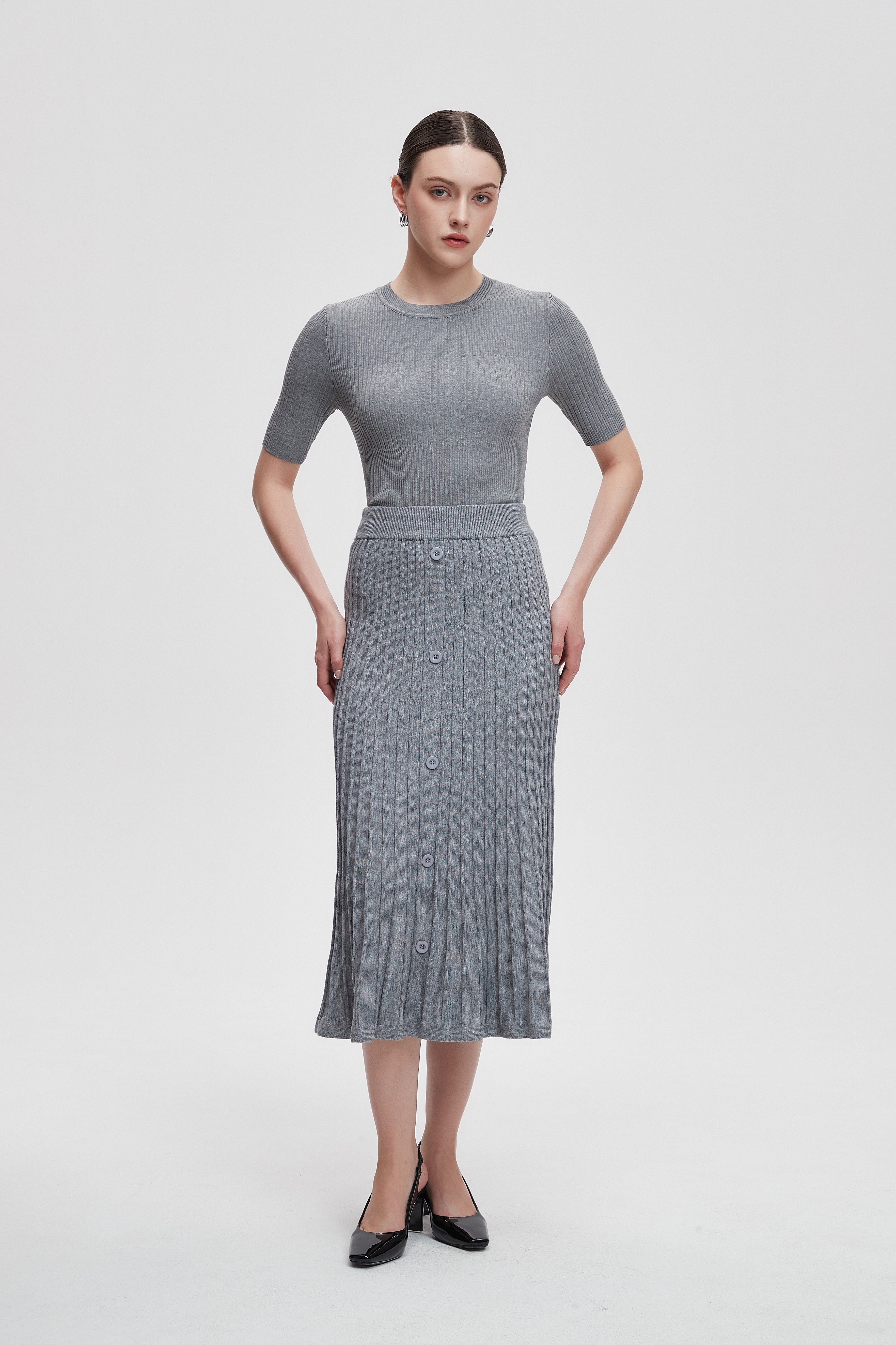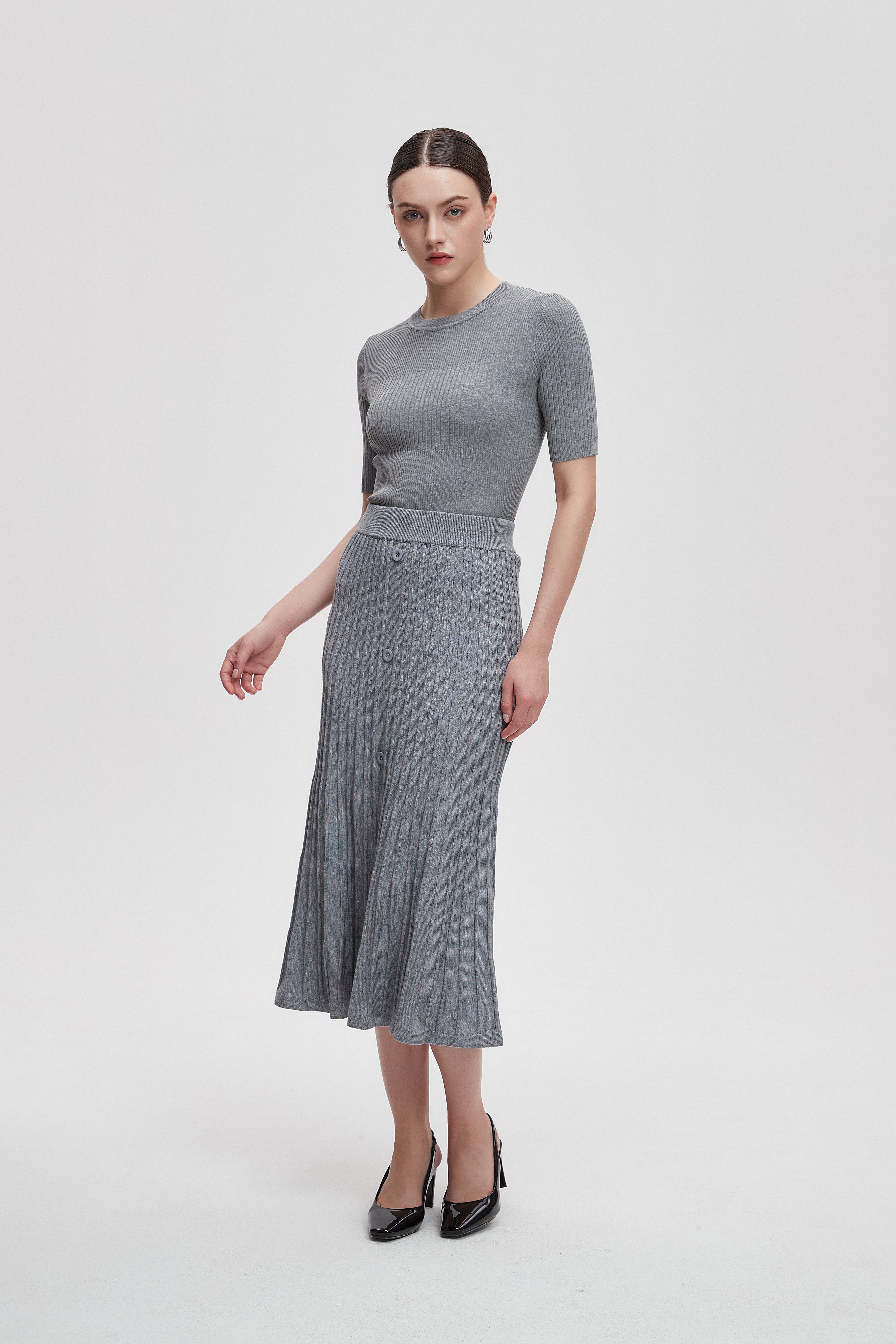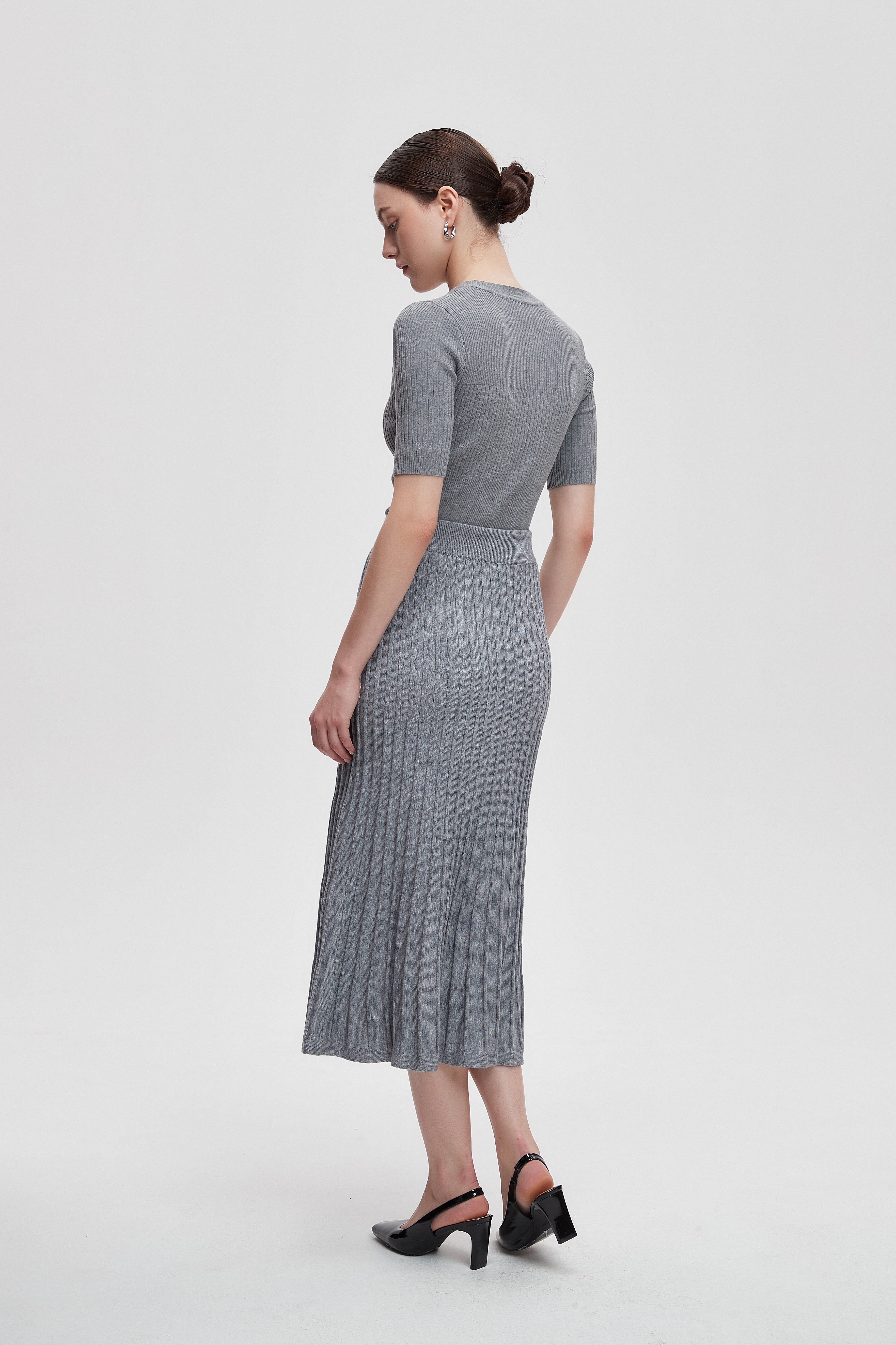 فستان ميدي بأكمام قصيرة منسوج بقصة سمكة