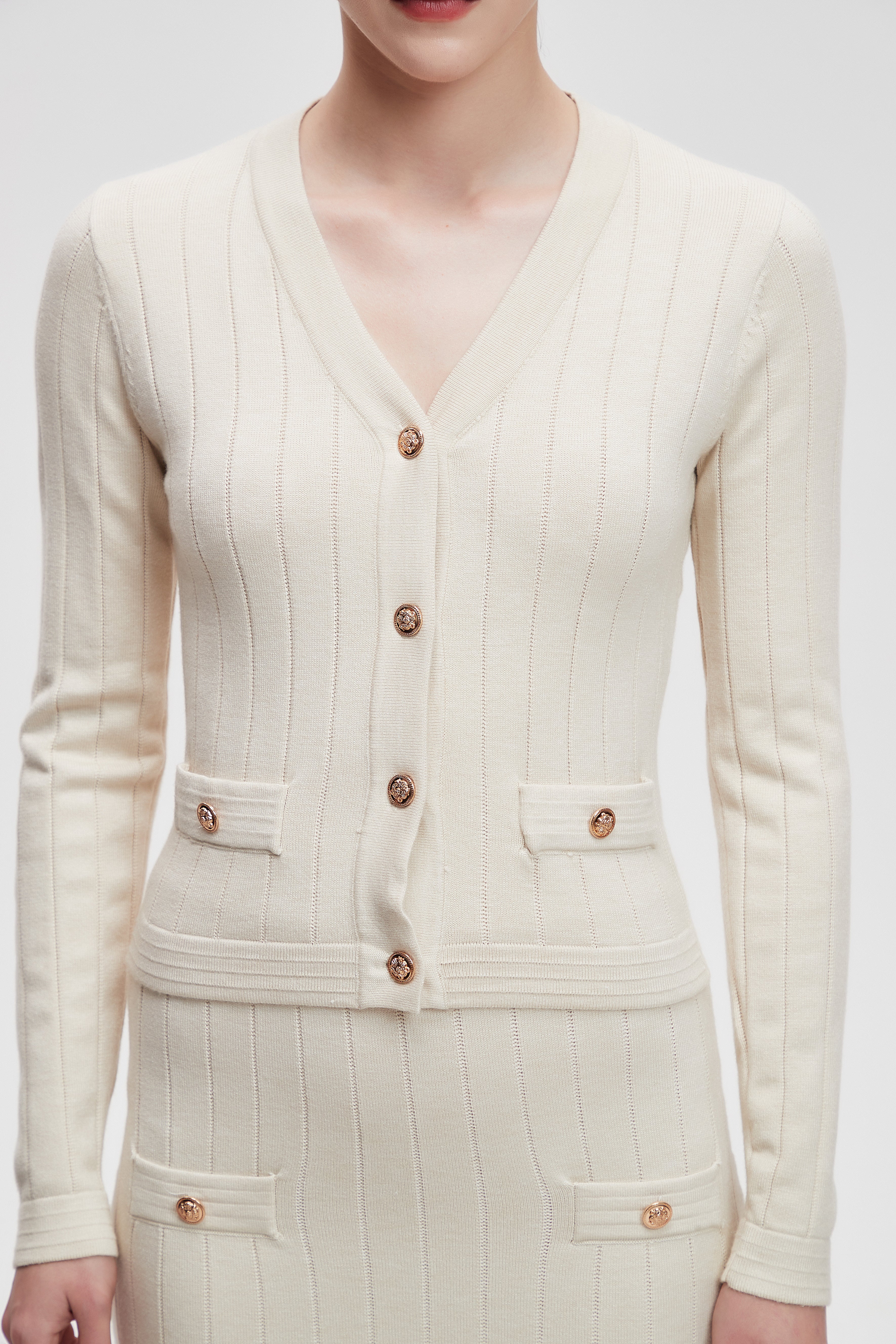 بلوزة نسائية منقوشة بكم طويل وأزرار أمامية