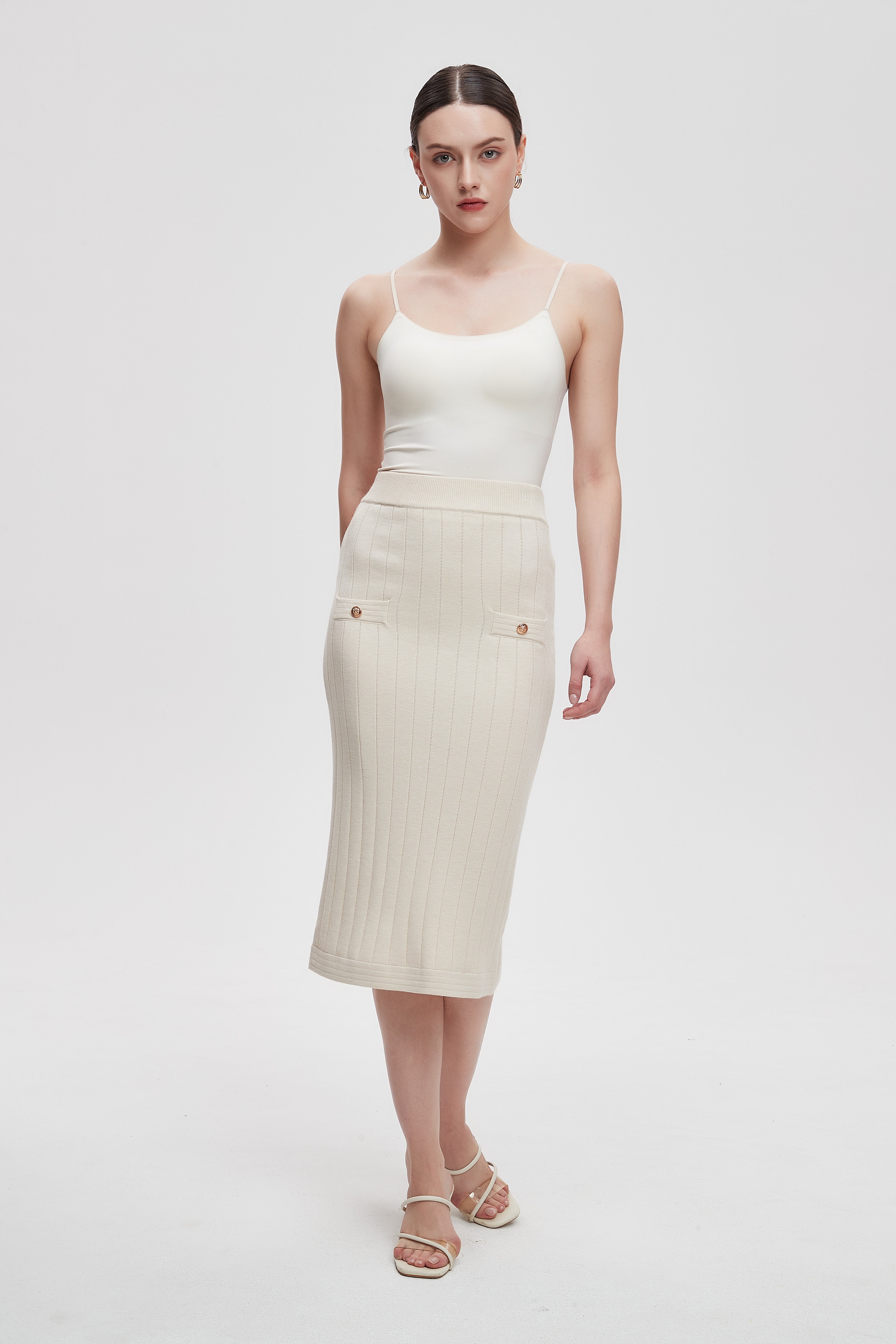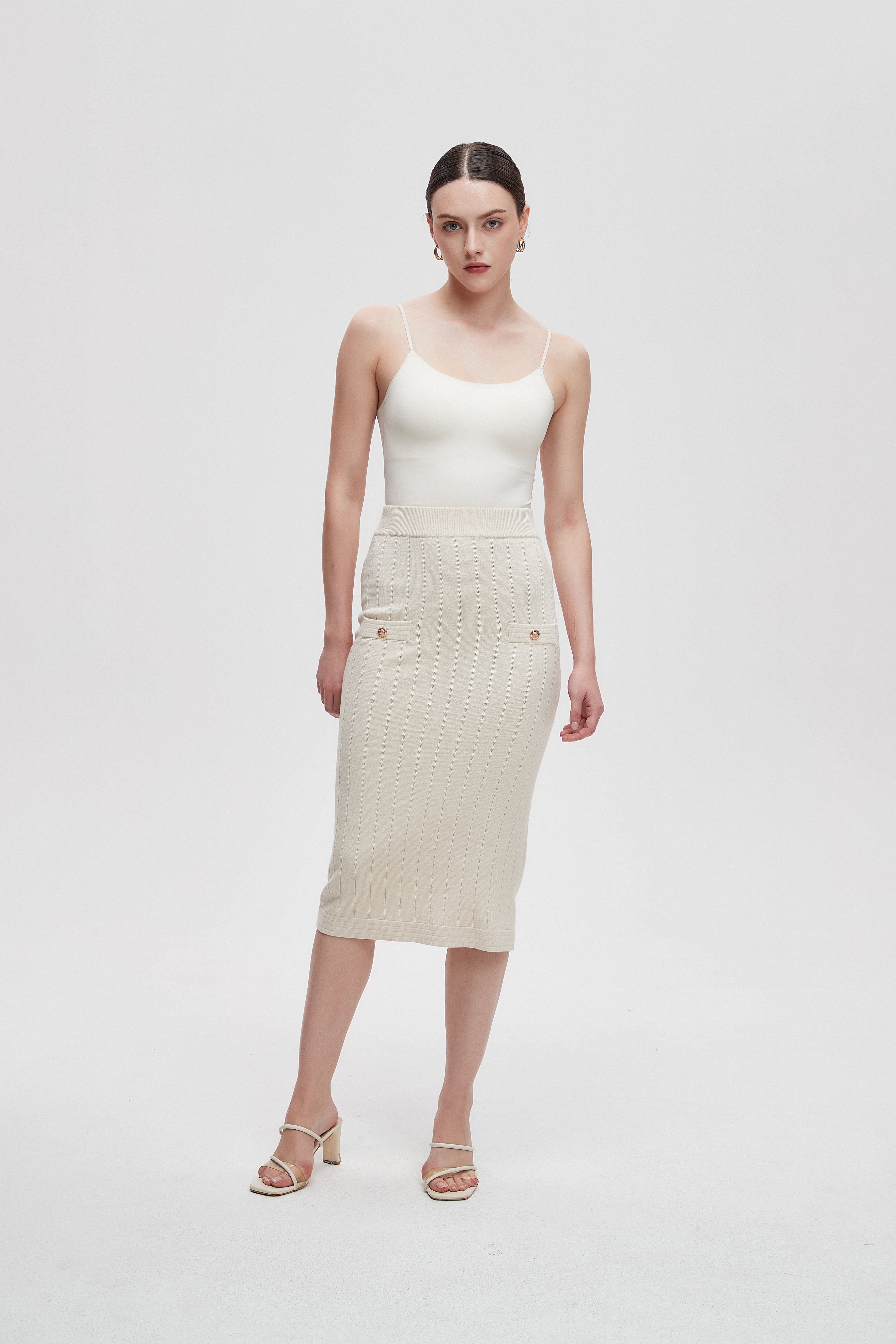 تنورة ميدي بنمط مربعات بخصر مرتفع