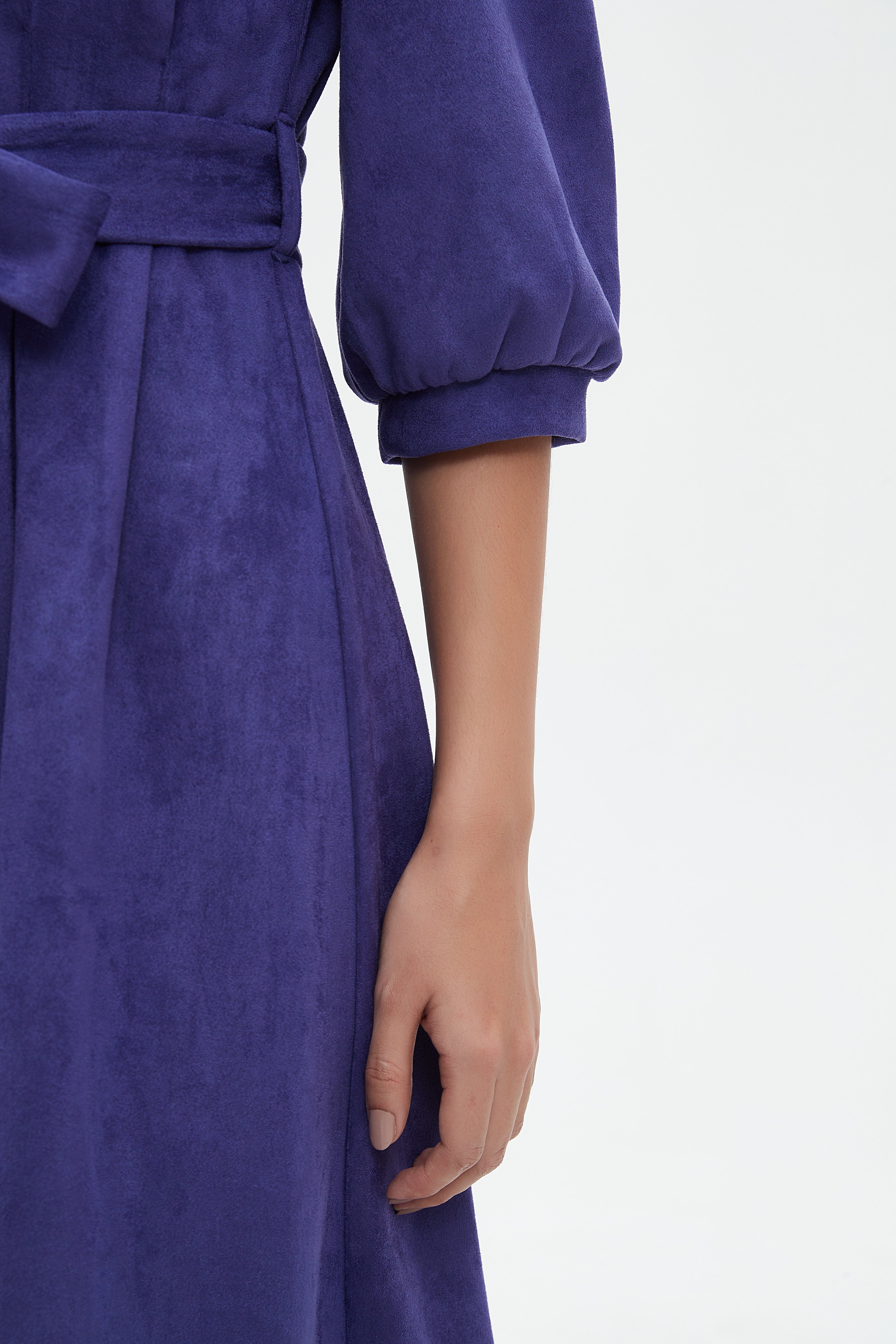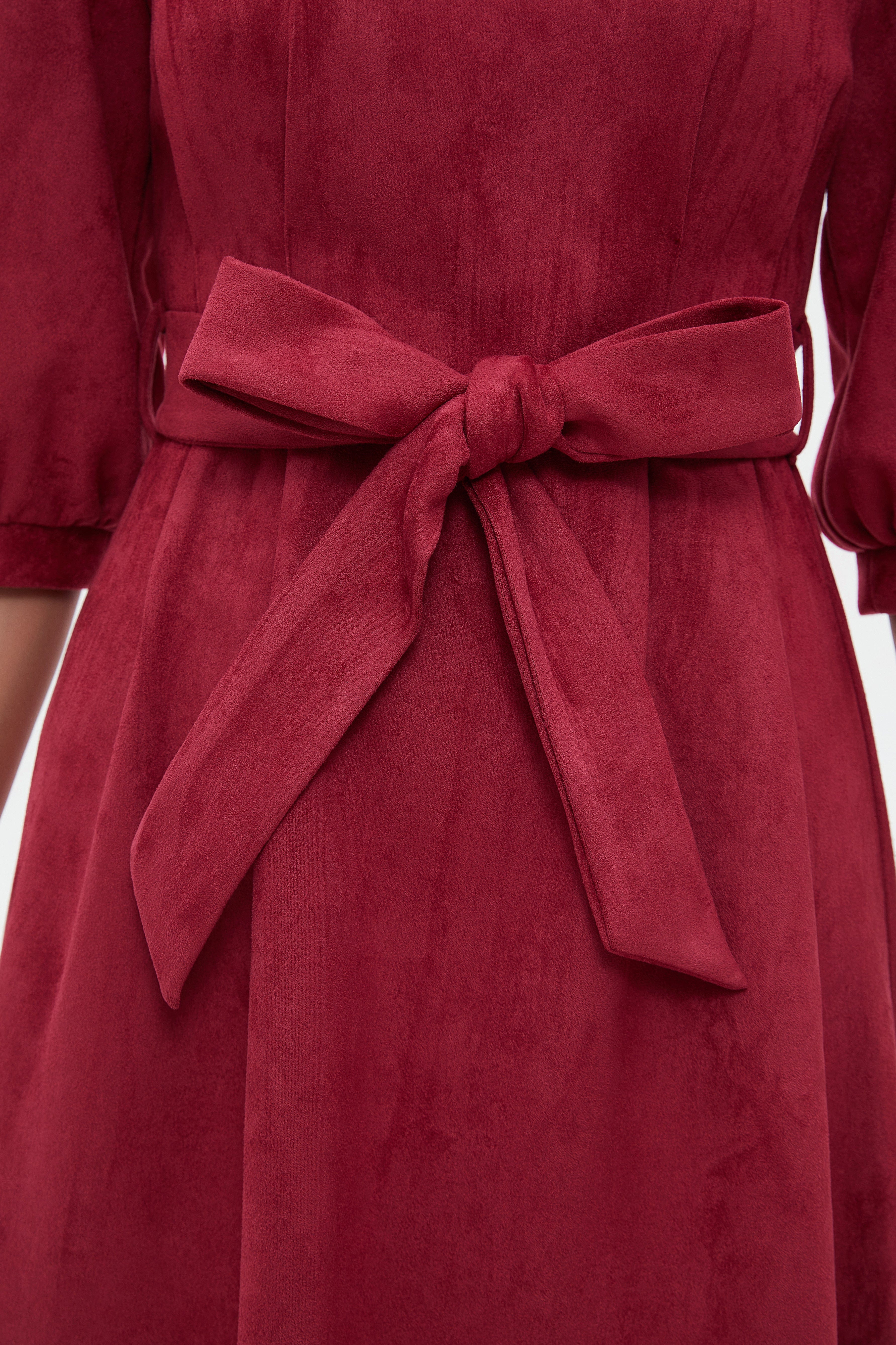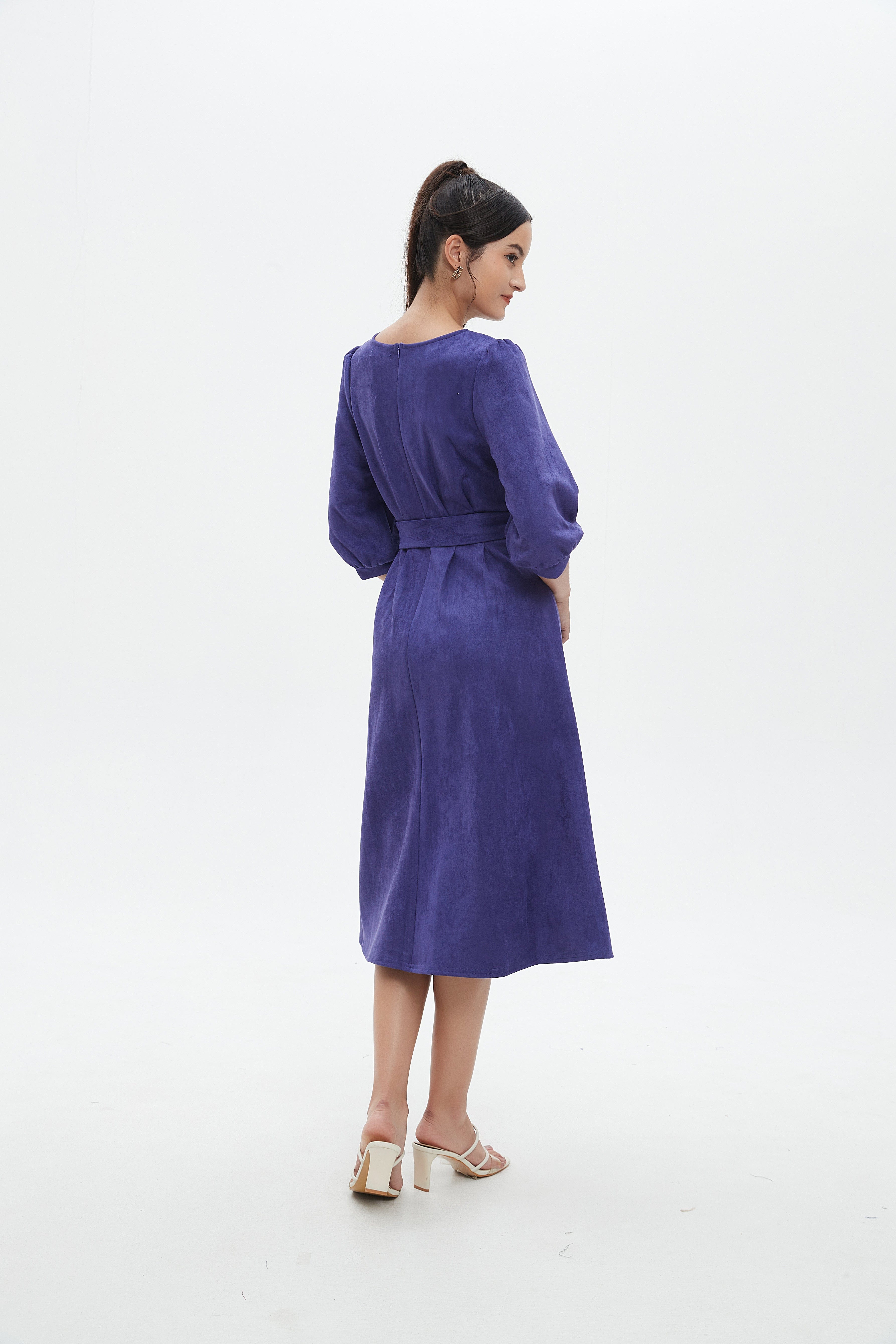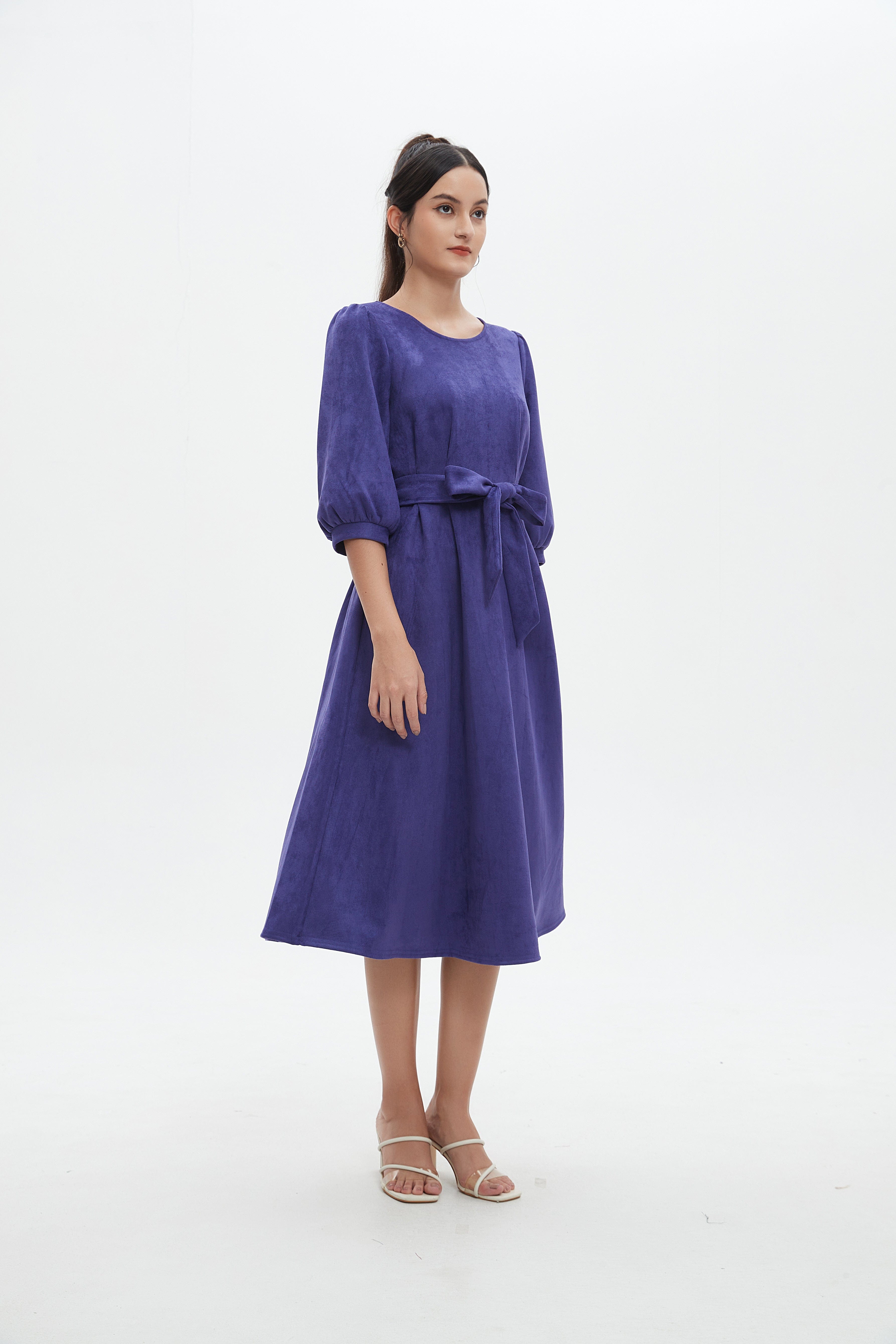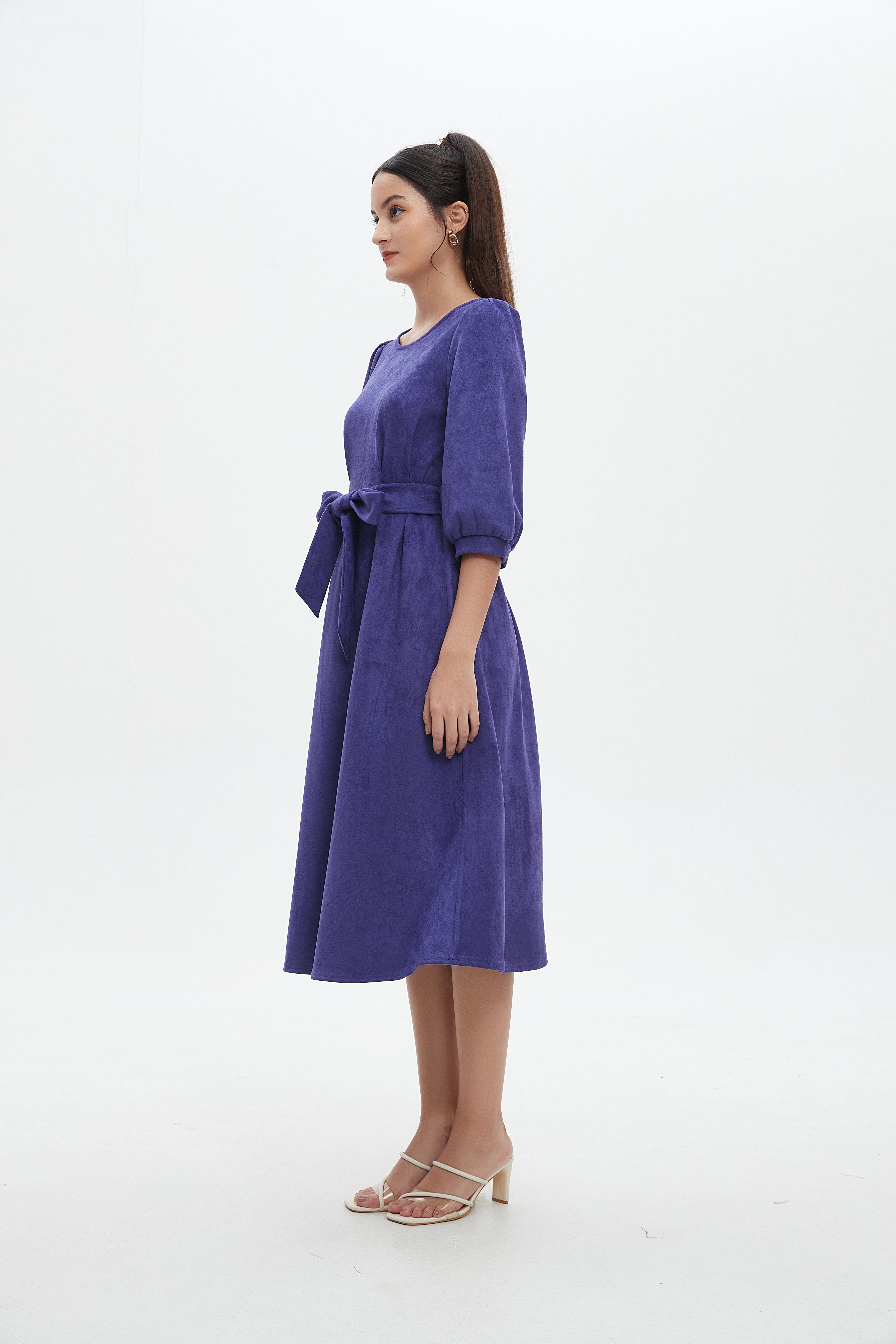 فستان نسائي ميدي 3/4 كم برباط على الخصر سادة