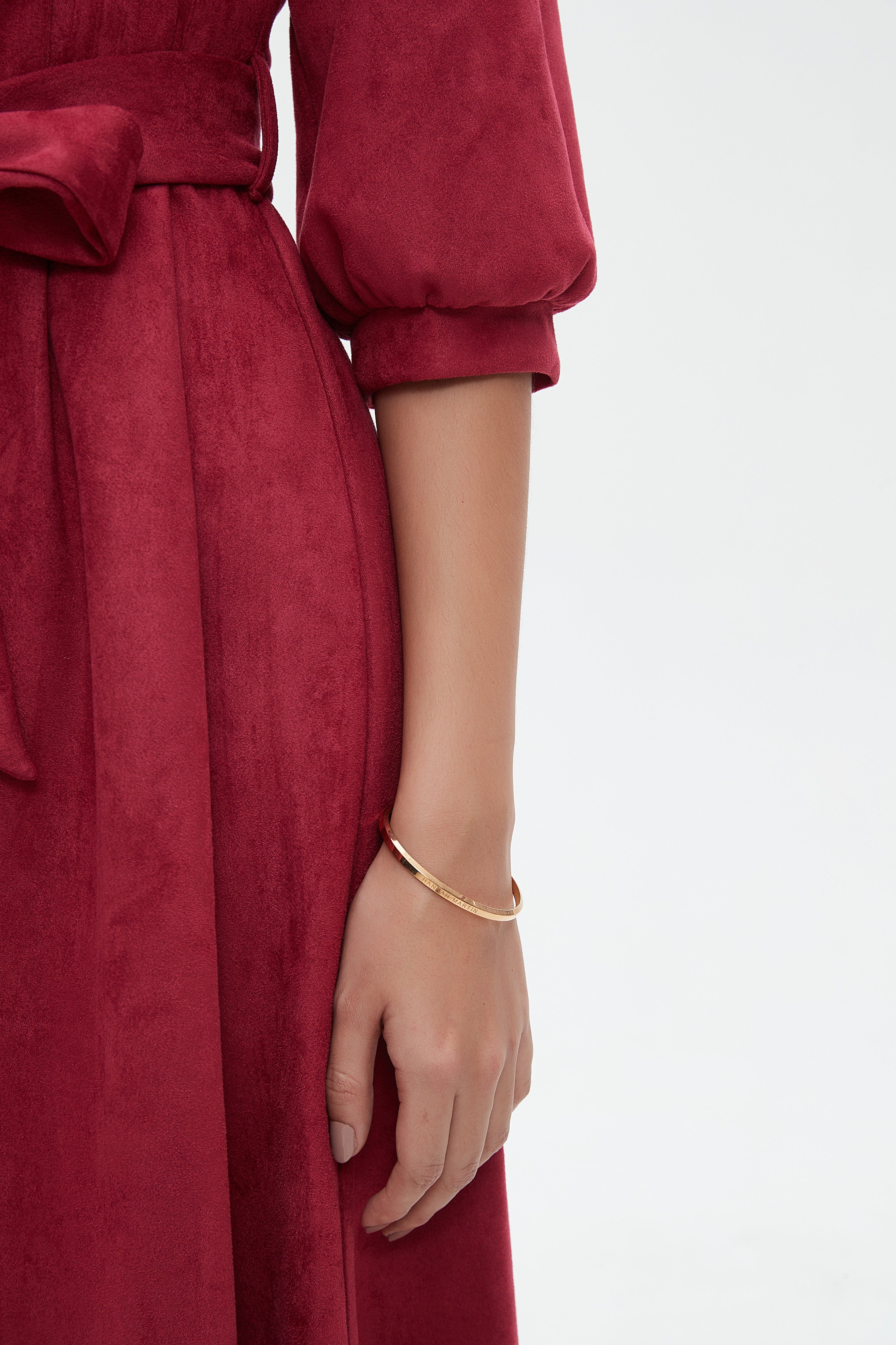 لو تبحثين عن فستان كاجوال أنثوي يبرز أناقتك اليومية، هذا الفستان برغندي خيار رائع. مصنوع من مزيج 10% إيلاستين و90% بوليستر، مريح وذو سمك متوسط يناسب كل المواسم ويمنح قليل من المرونة ليواكب حركتك. قصته A تمنح انسيابًا أنثويًا دون تكلف، وطوله ميدي عملي للخروجات. ياقة مستديرة وأكمام كم ثلاثة أرباع تضيف توقيعًا كلاسيكيًا، والتصميم سادة يترك مساحة لإكسسوارك المفضل. لا يحتوي على بطانة أو جيوب، والإغلاق يتم عبر الحزام المرفق الذي يحدد الخصر بشكل جميل. ستحبين كيف يتحرك معك ويصلح للمشاوير اليومية أو لقاءات الصباح المسائي. اعثري على مقاسك في فاشن السعودية وأضيفي هذه القطعة المتنوعة إلى خزانة ملابسك اليوم.