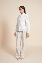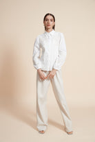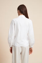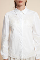 بلوزة بكم طويل مطرزة خيوط بياقة قميص