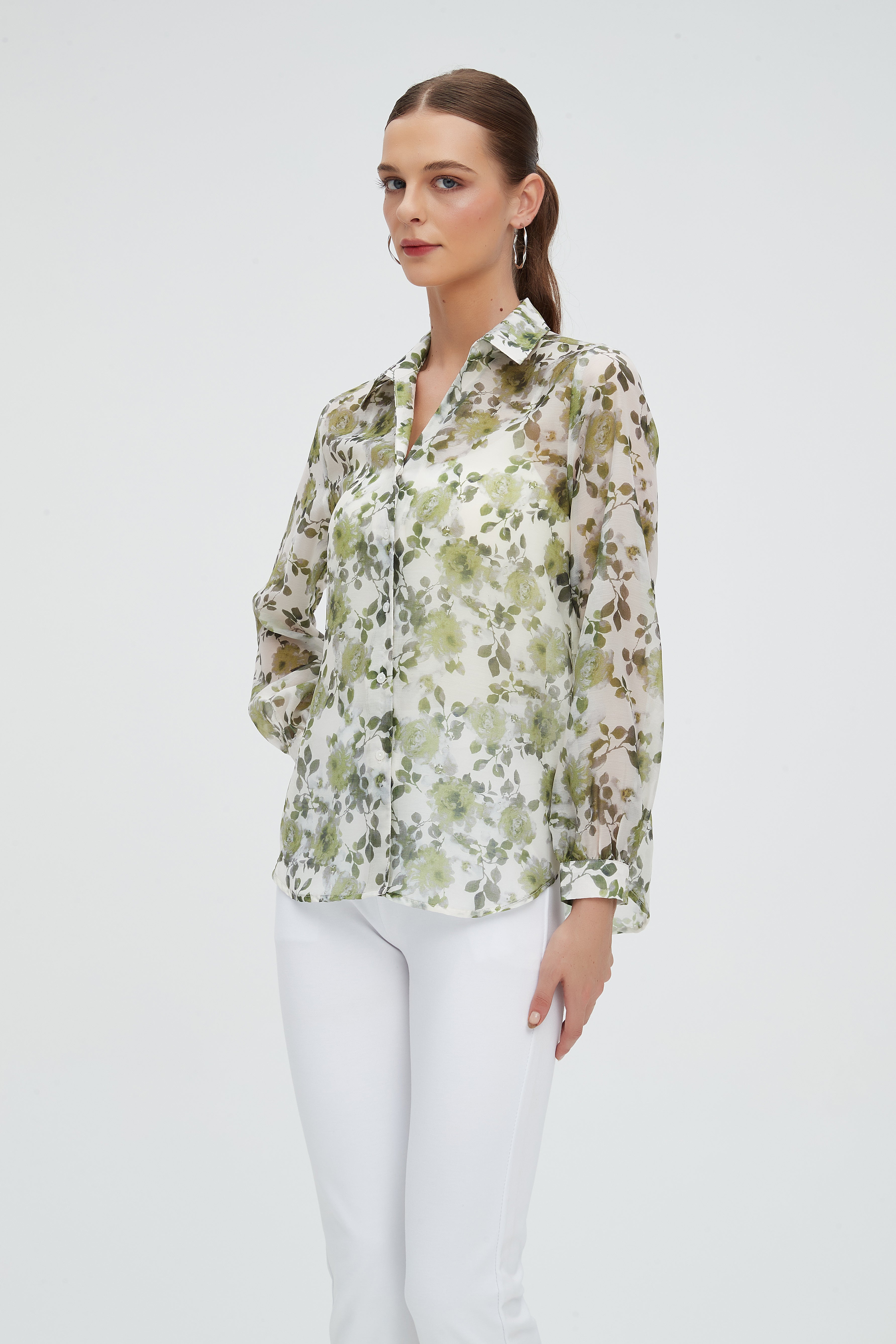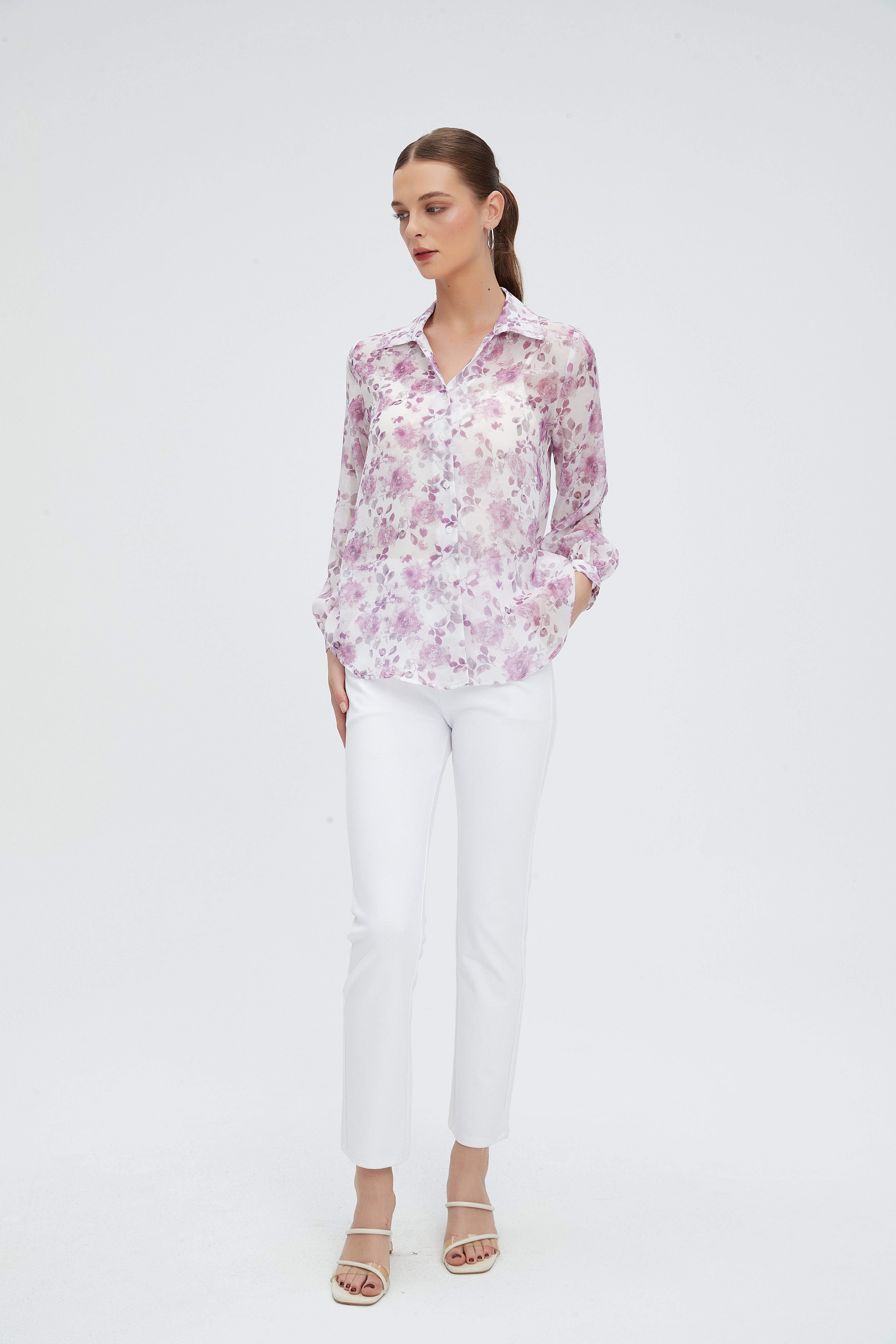 بلوزة نسائية شفافة بأزرار على الصدر بأكمام طويلة