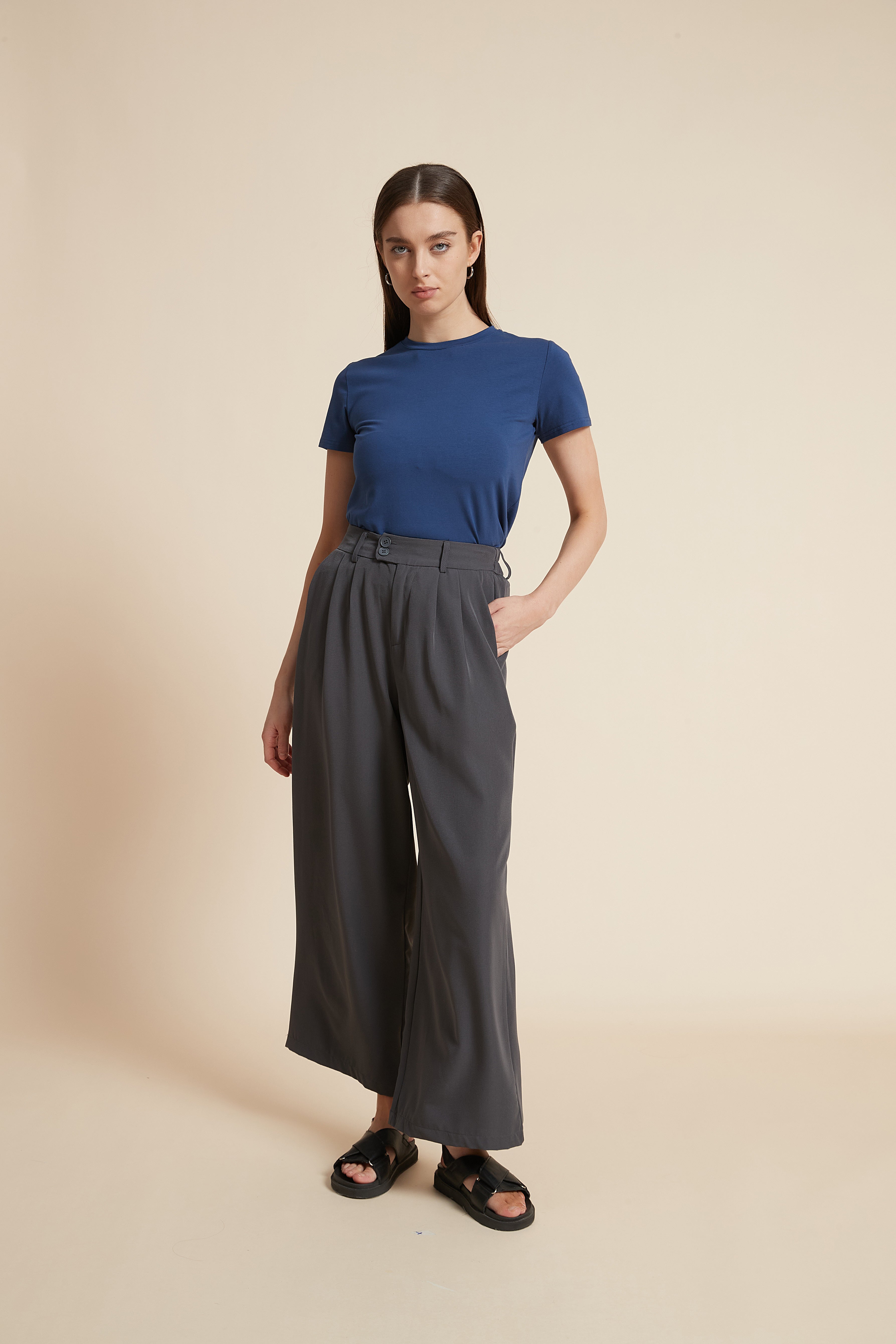 بنطلون طويل فضفاض بأزرار نسائي