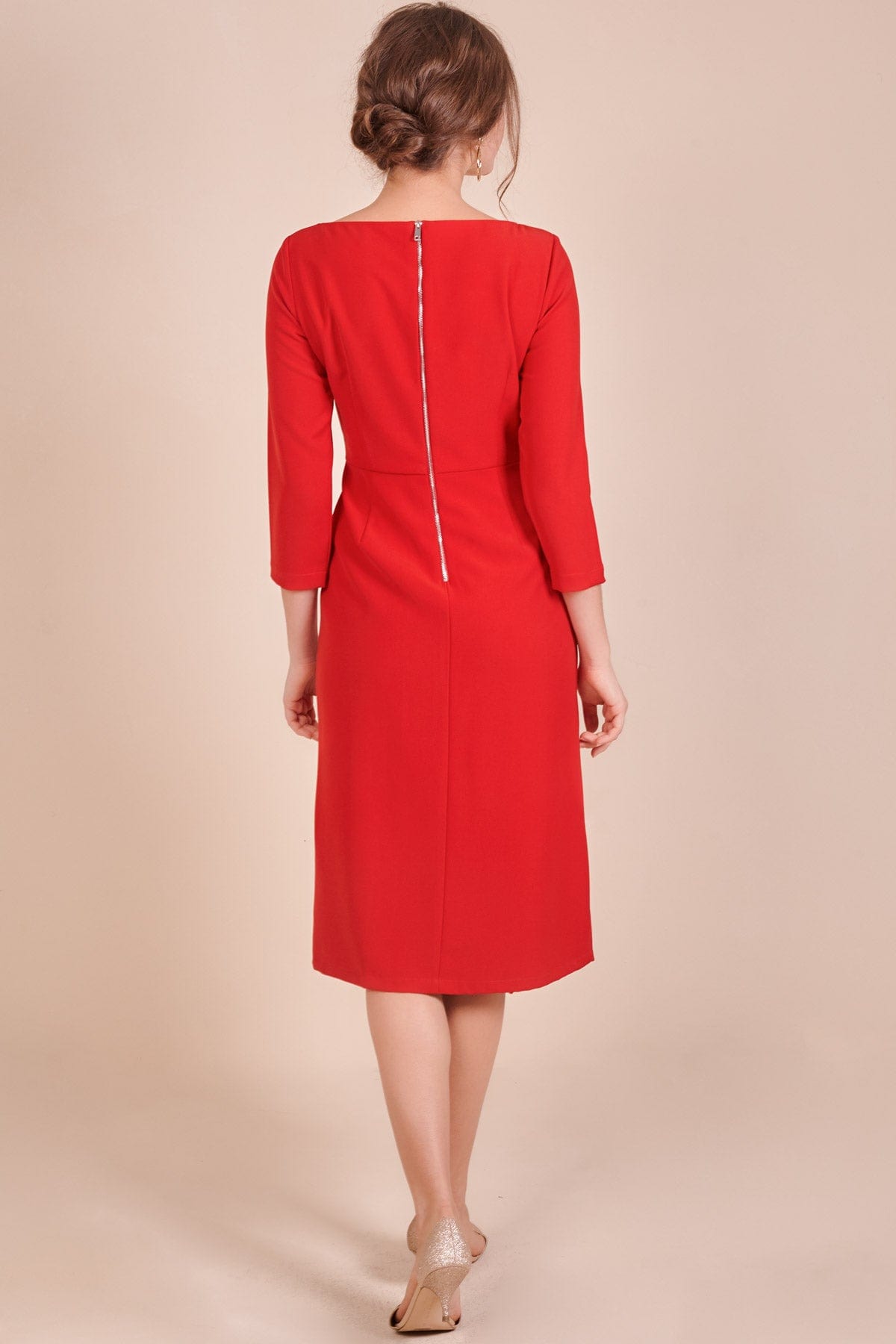 فستان سادة ميدي بكم ثلاثة أرباع بسحاب
