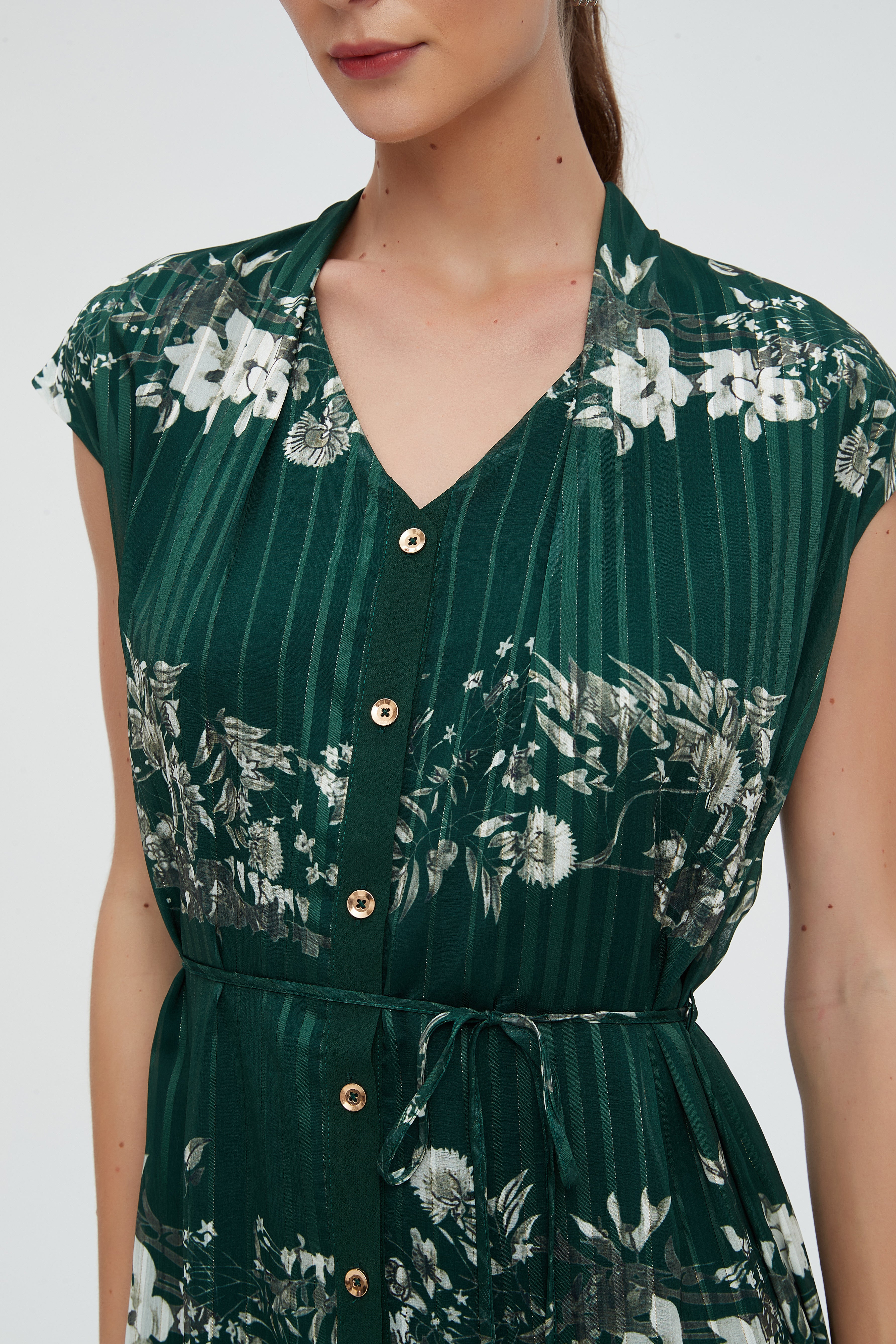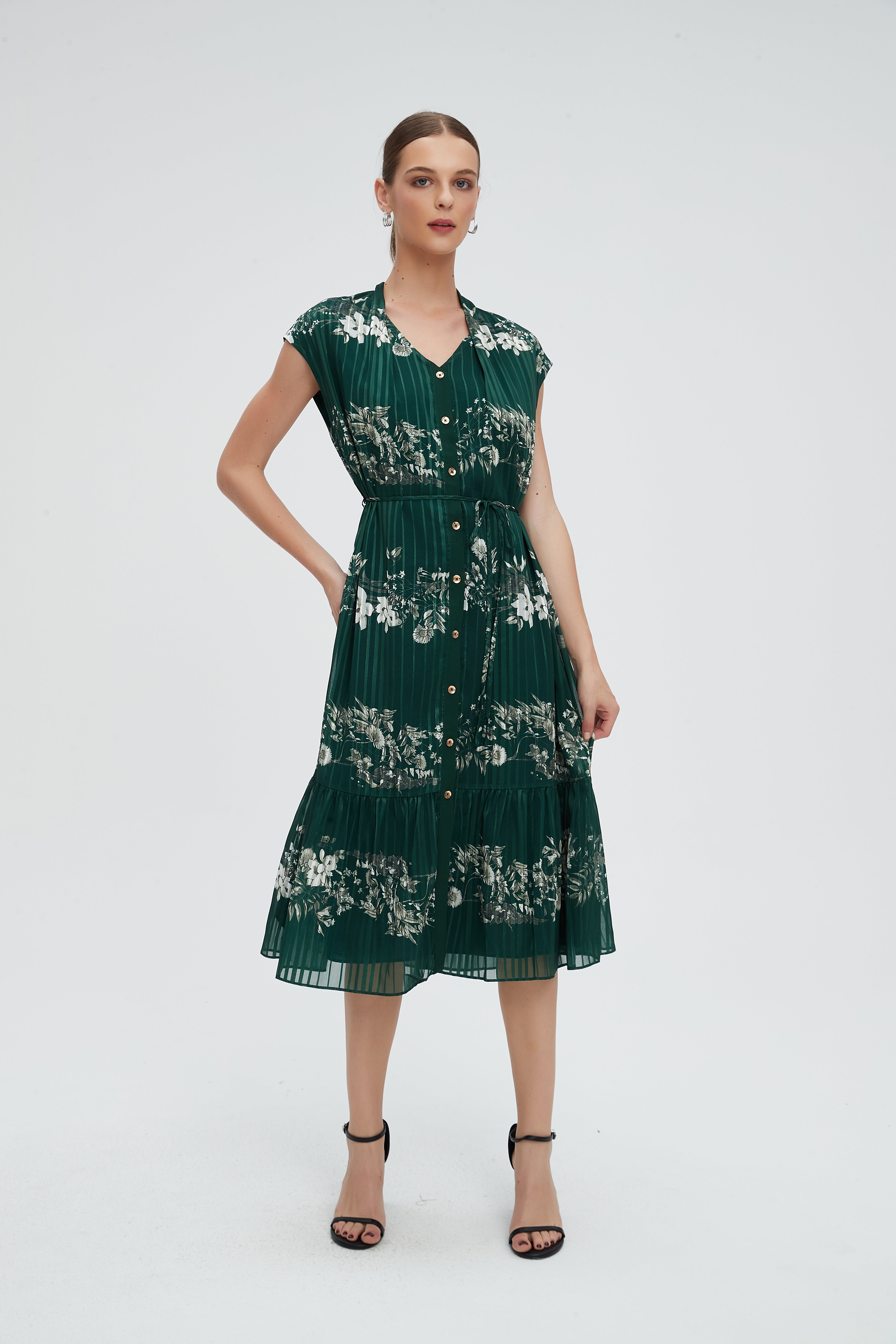 لو تبحثين عن فستان كاجوال يضيف لمسة أنثوية لخزانة ملابسك، هذا الفستان خيار رائع. الخامة الأساسية من بوليستر 100% تجعله محافظاً على ألوان النقشة الزهرية ومريحاً للارتداء اليومي، والفستان غير مبطّن بسمك متوسط يناسب الربيع والخريف. تصميمه بقصة A وطول ميدي يمنح حركة أنثوية ومتوازنة، وياقة V تضيف لمسة رقبة أنيقة بينما الأكمام القصيرة المغطّاة تحافظ على مظهر محتشم عملي. الأزرار الأمامية تسهل الارتداء والحزام المرفق يحدّد الخصر لمظهر مشدود أكثر. لا يحتوي على جيوب، ما يجعله أنيقاً وخفيفاً. ستحبين كيف يتحرك معك هذا الفستان، مثالي للخروجات الرومانسية أو نزهات القهوة النهارية، ويمكن تحويله بسهولة إلى لوك مسائي بسيط بإضافة أحذية مغايرة. اعثري على مقاسك في فاشن السعودية وأضيفي هذه القطعة المتنوعة إلى خزانة ملابسك اليوم.