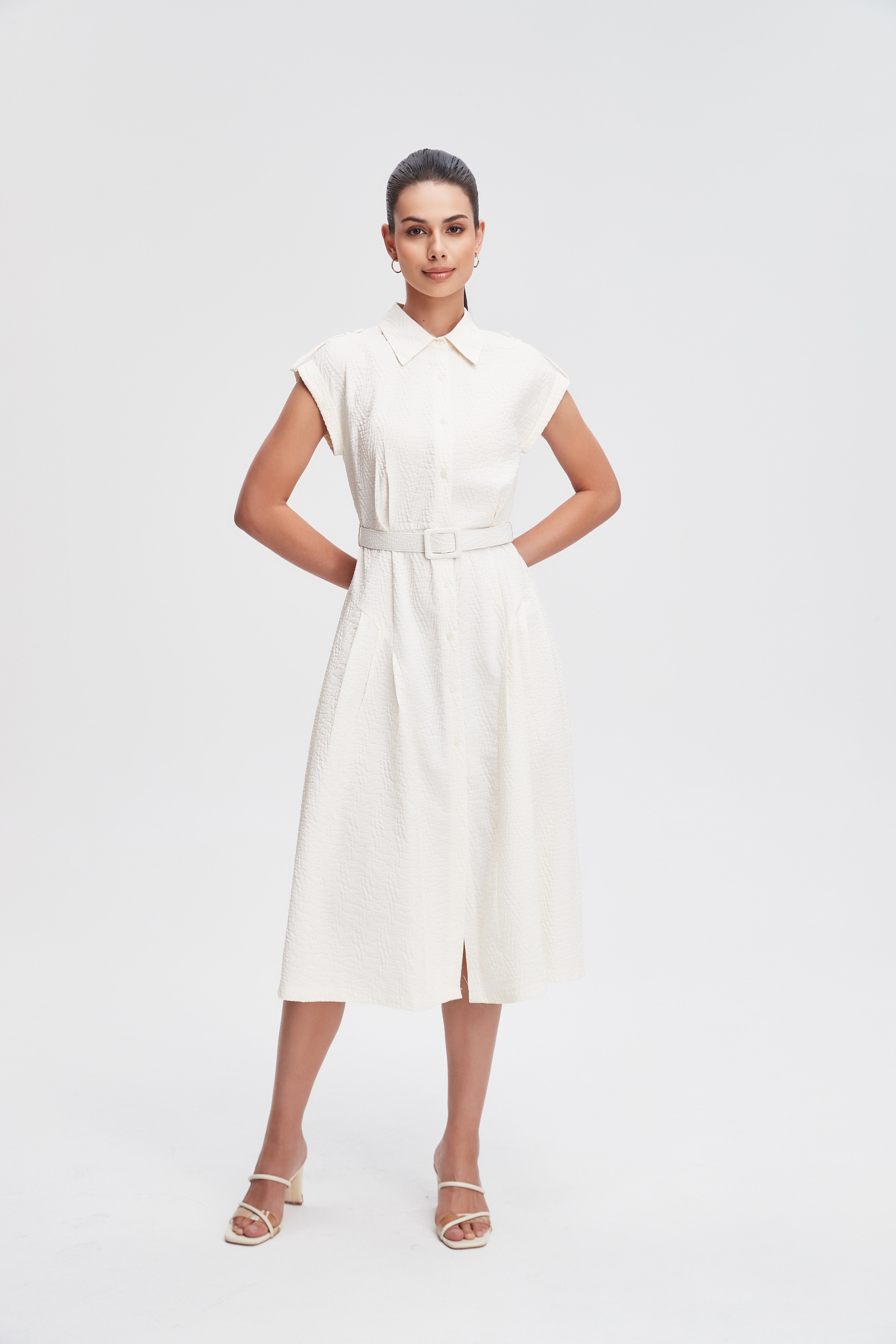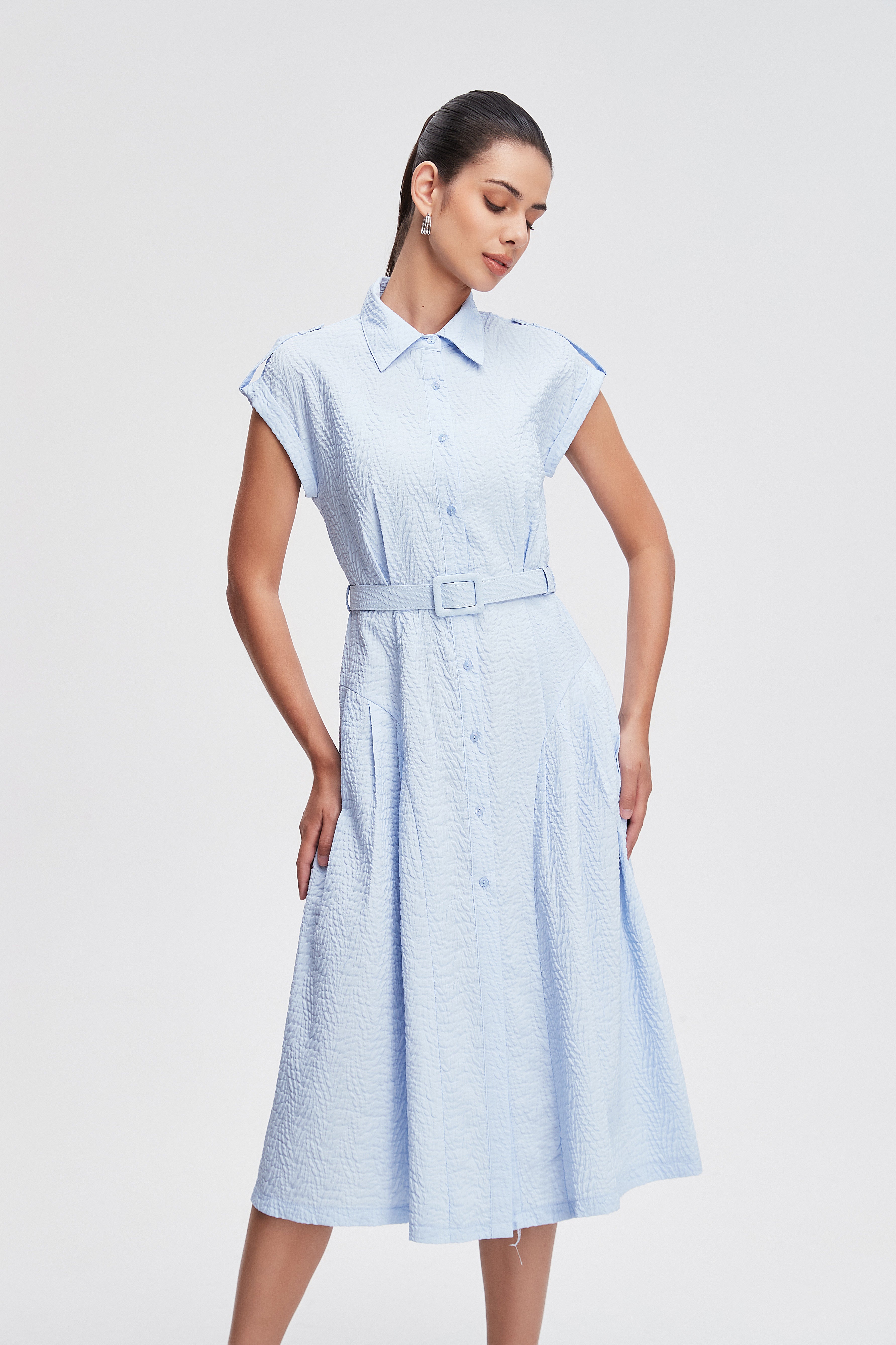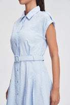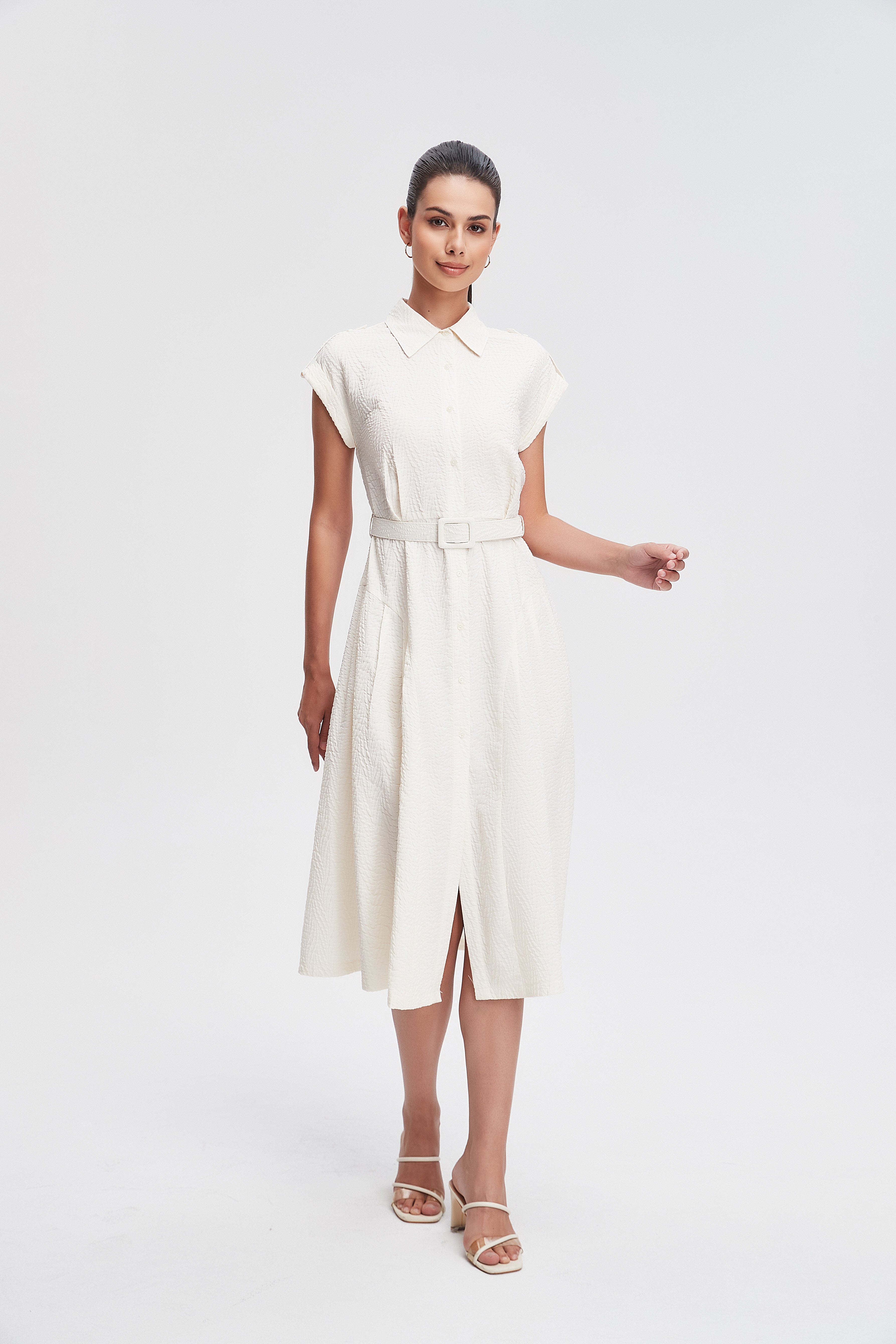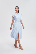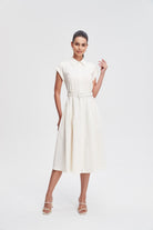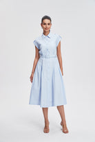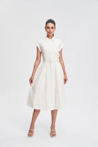 فستان ميدي قميص بأكمام قصيرة بأزرار أمامية سادة