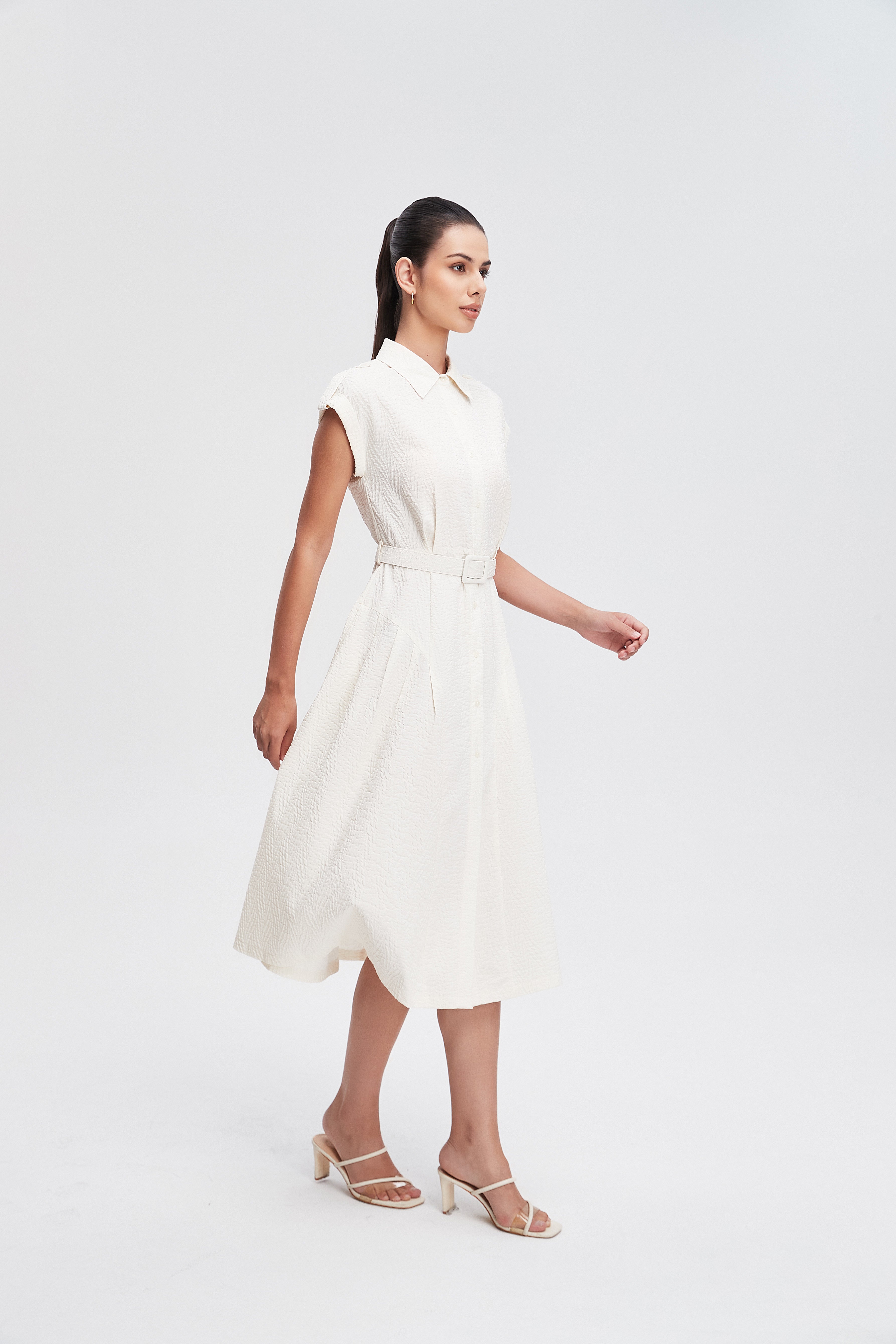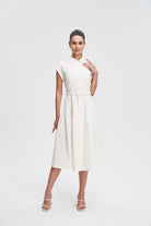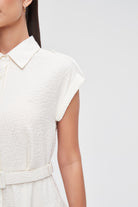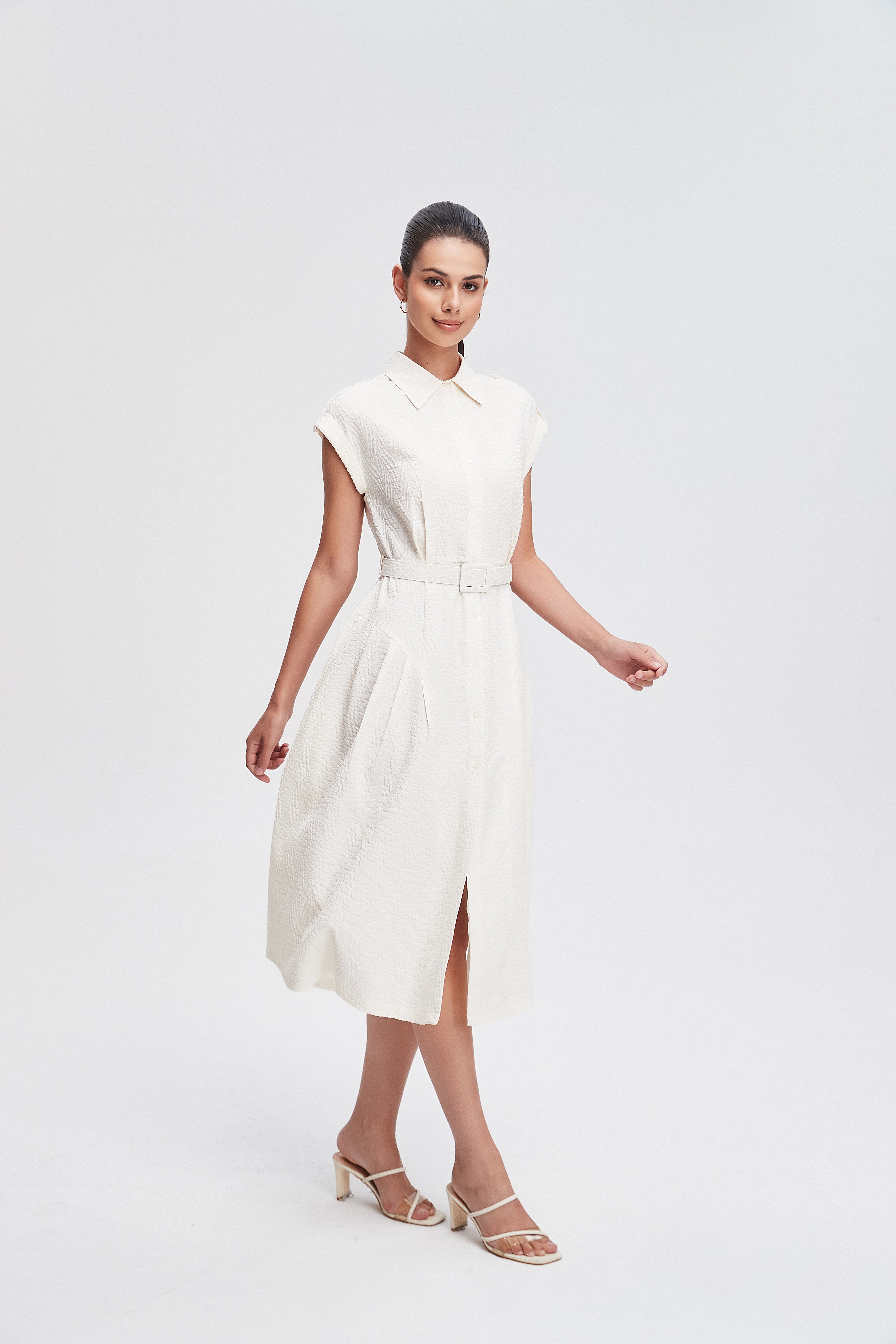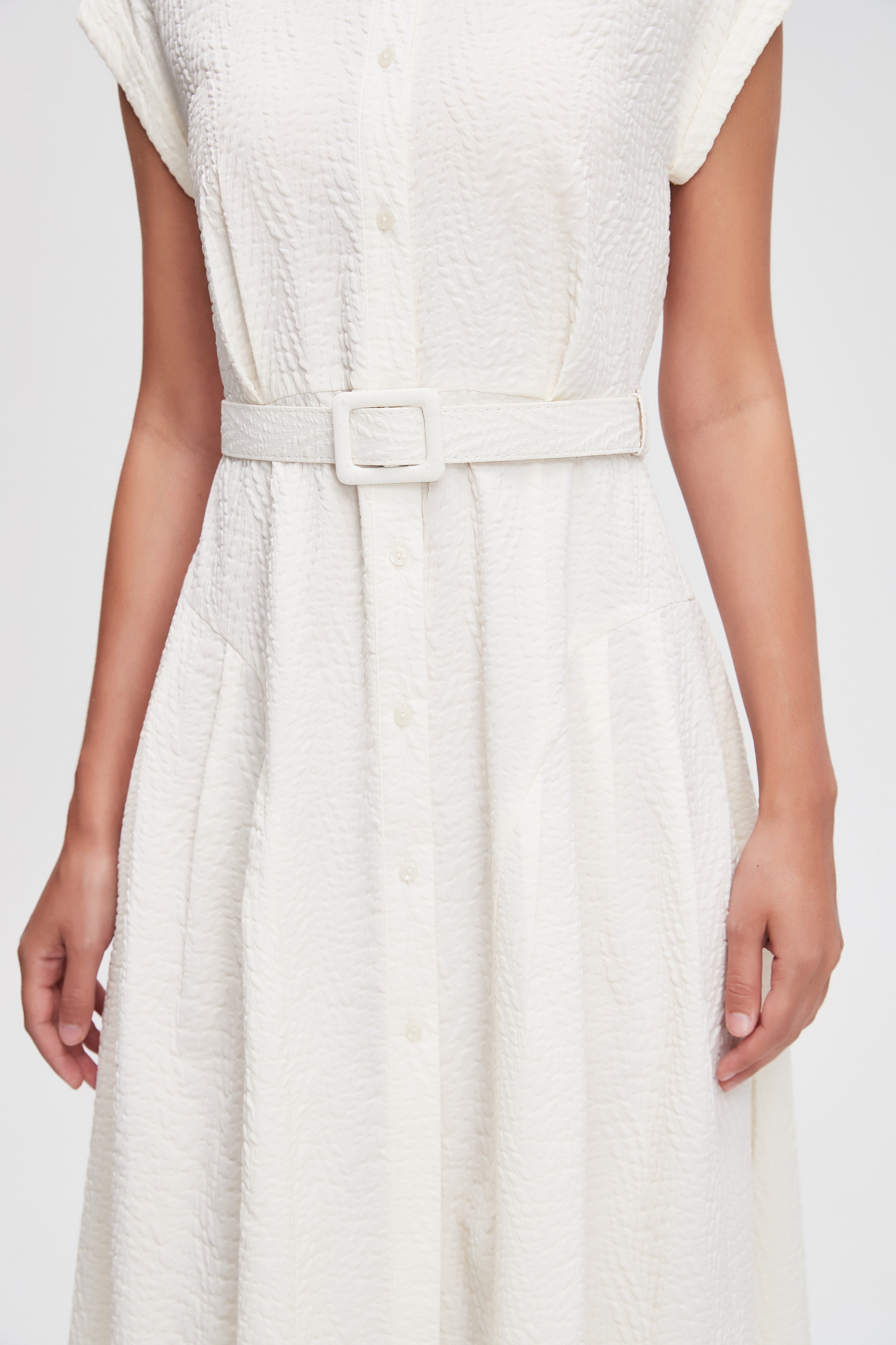 فستان ميدي قميص بأكمام قصيرة بأزرار أمامية سادة