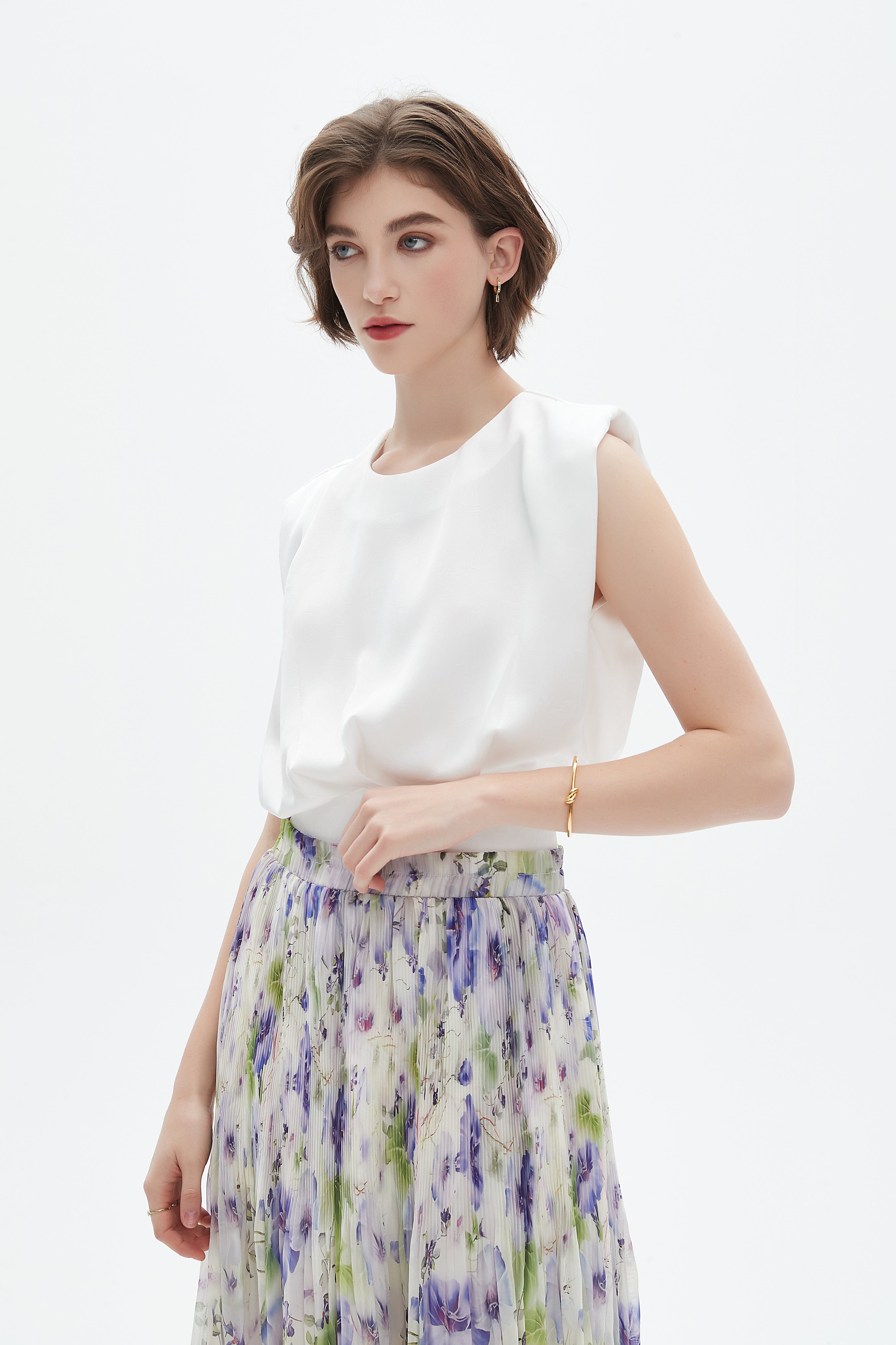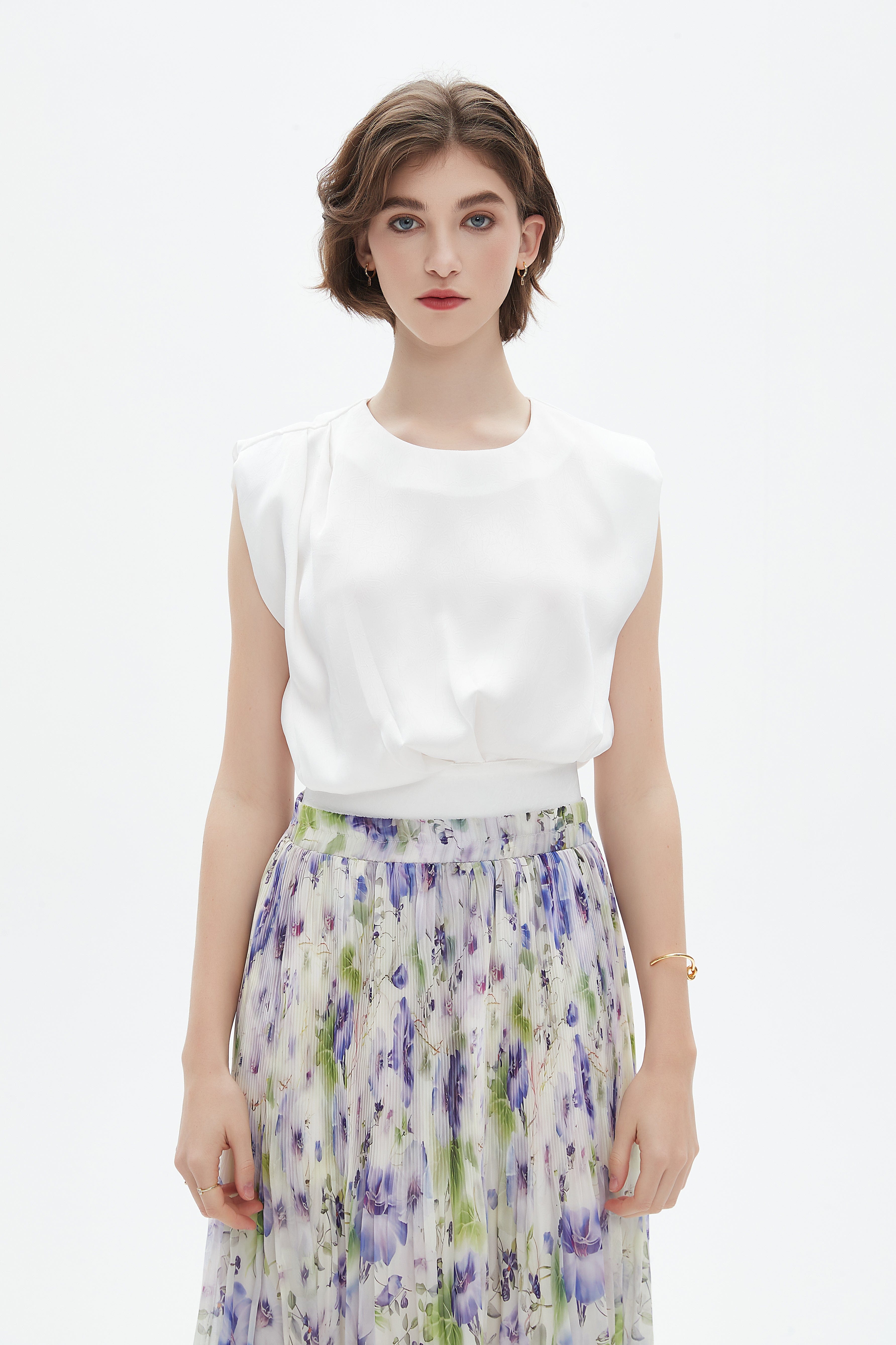بلوزة نسائية بدون أكمام وفتحة رقبة مستديرة