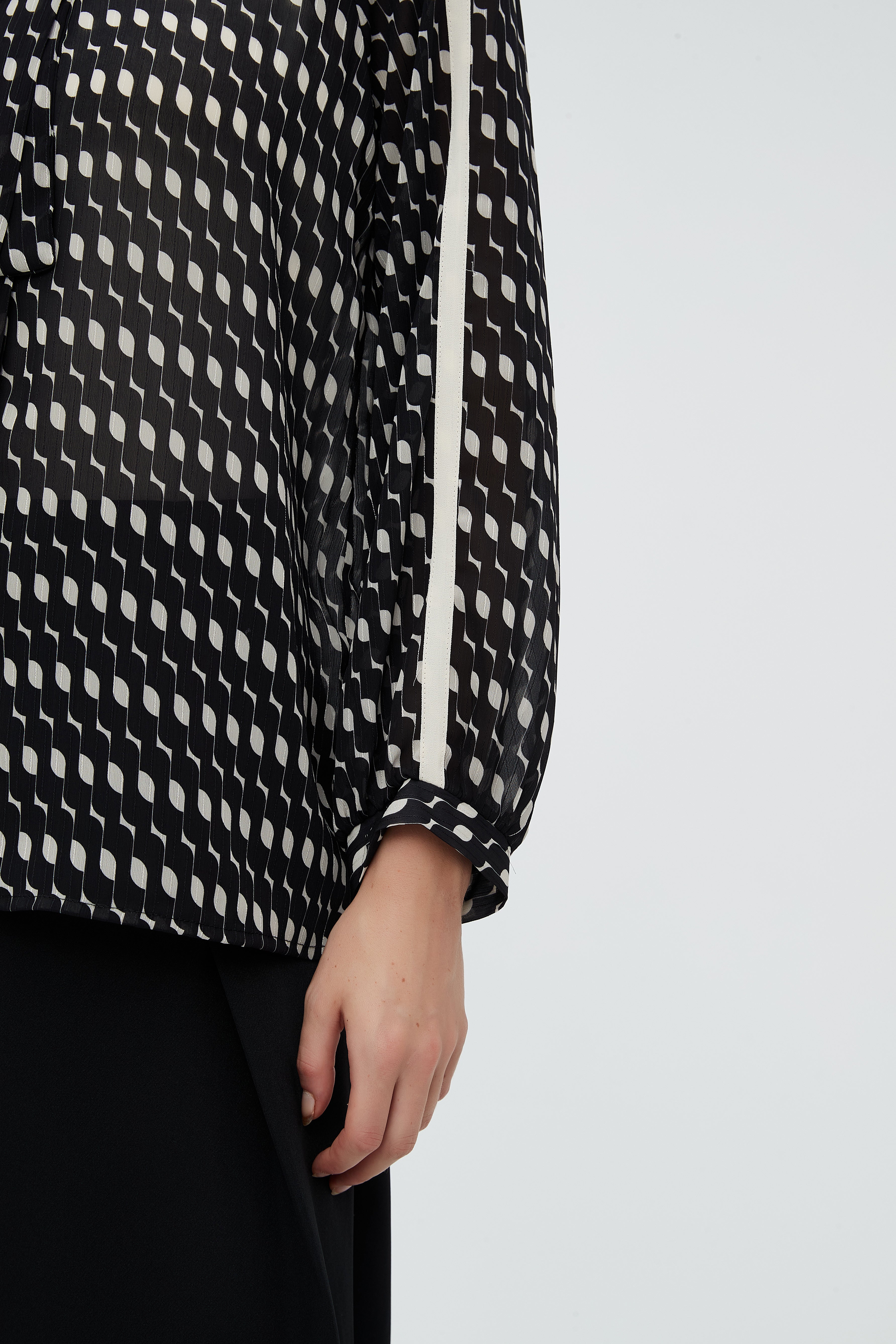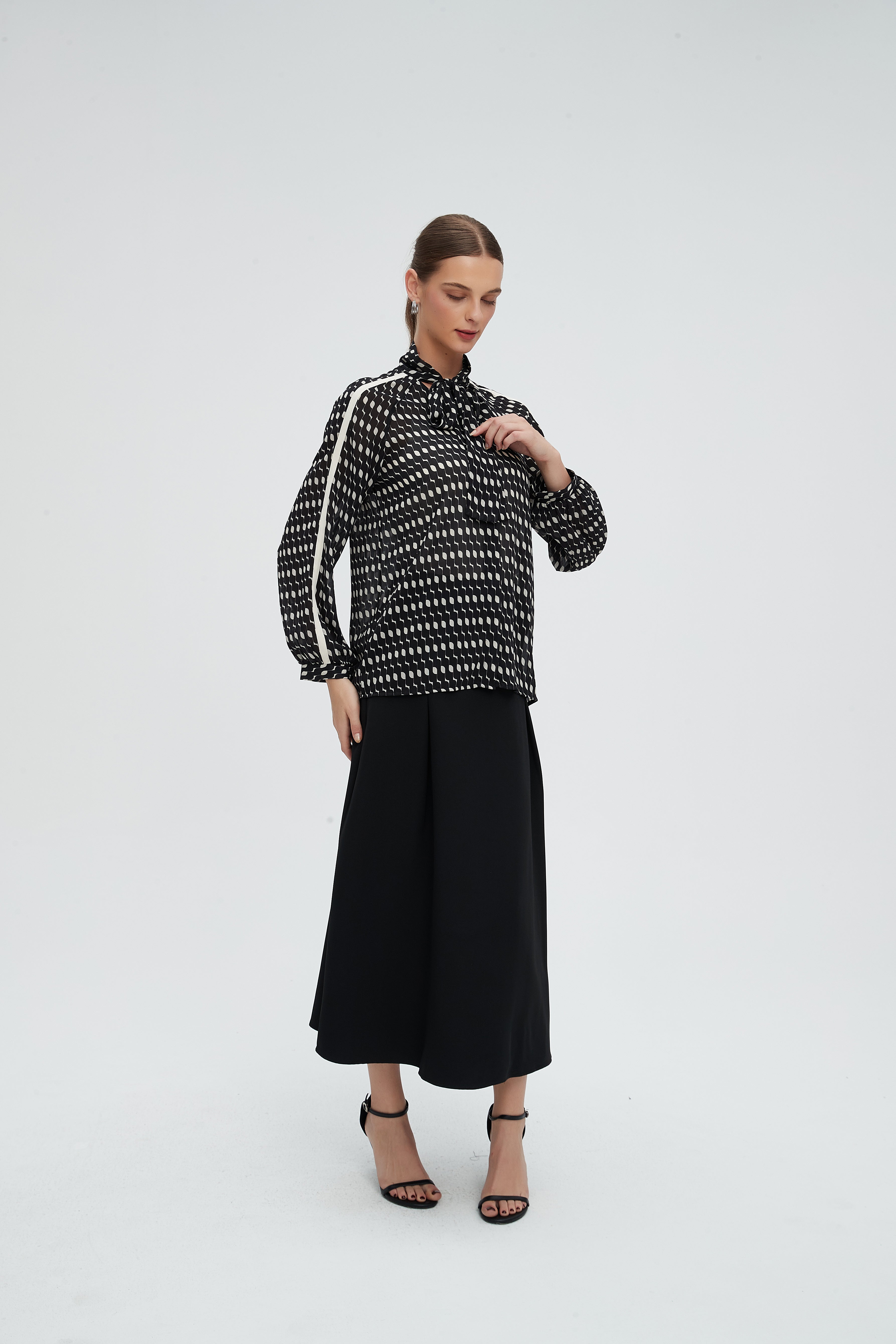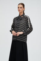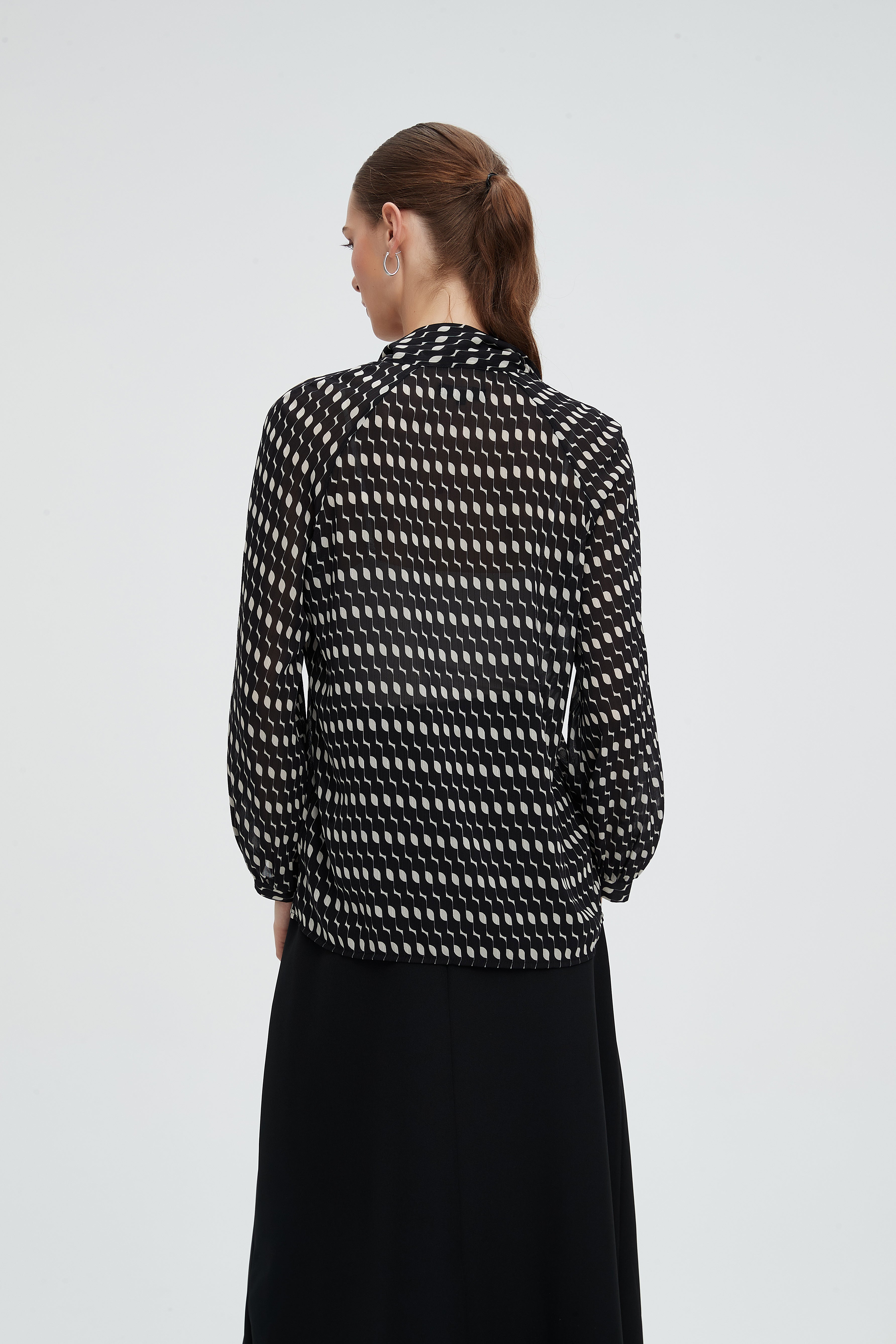 بلوزة كم طويل منقطة بياقة مدورة