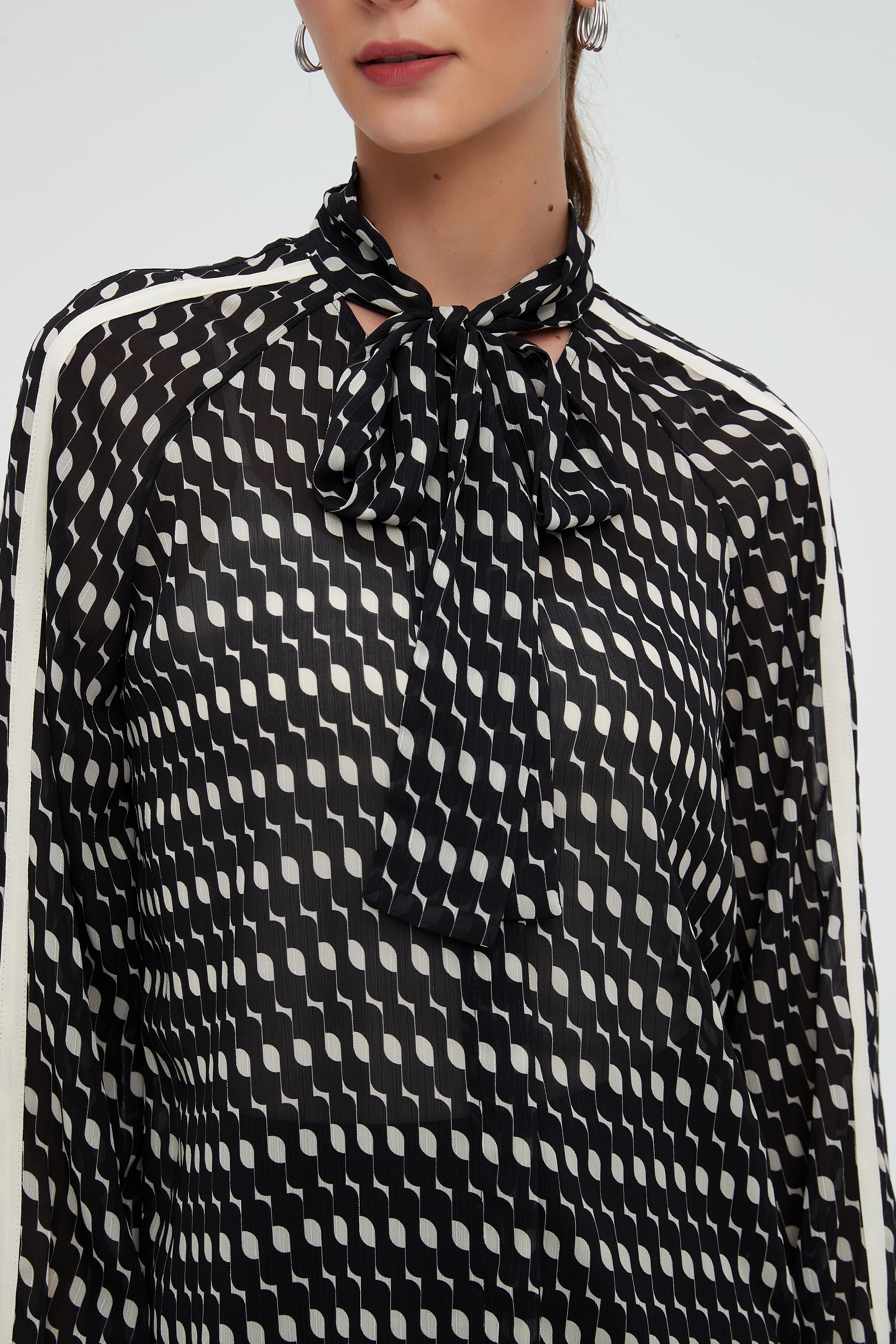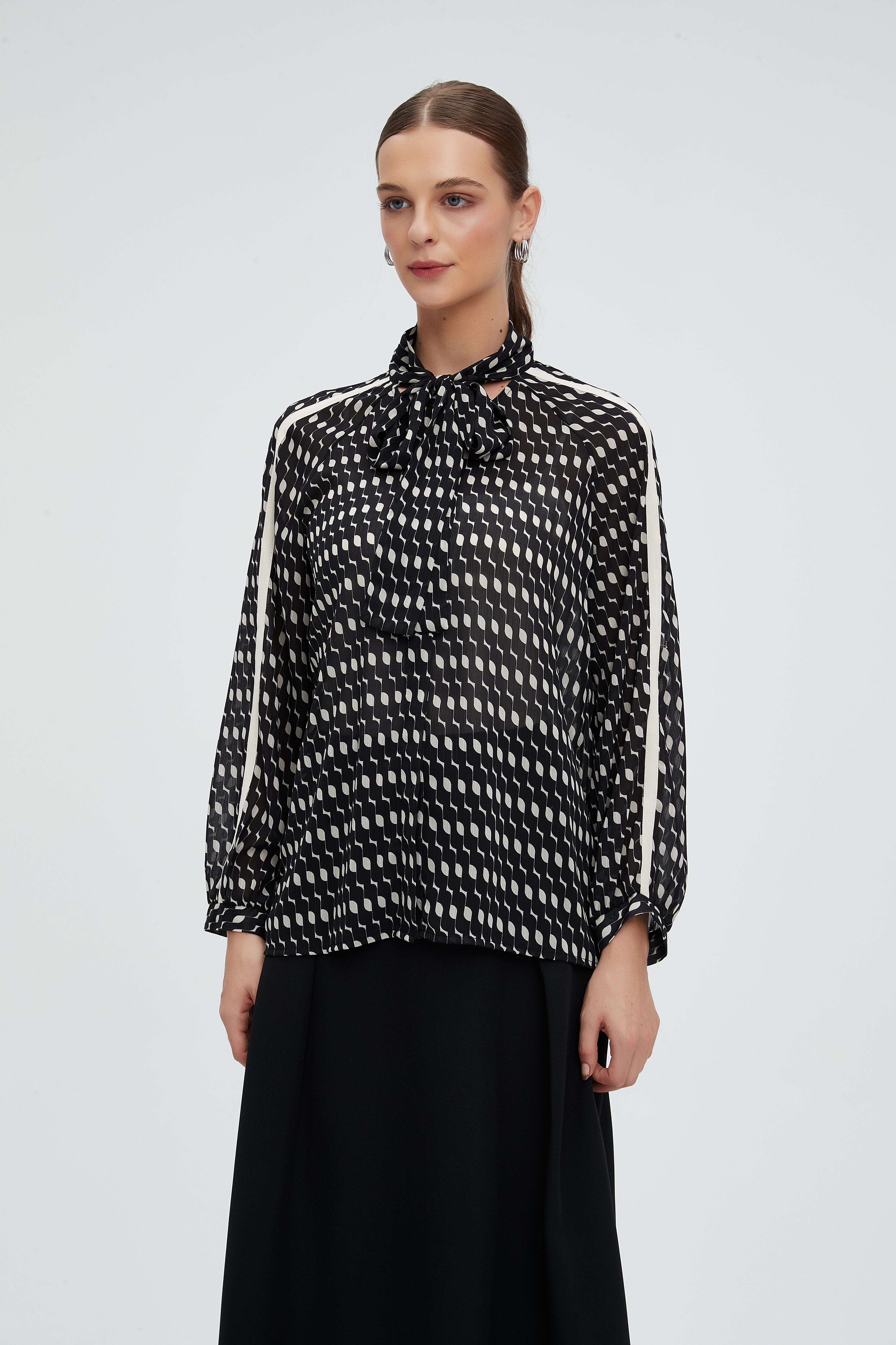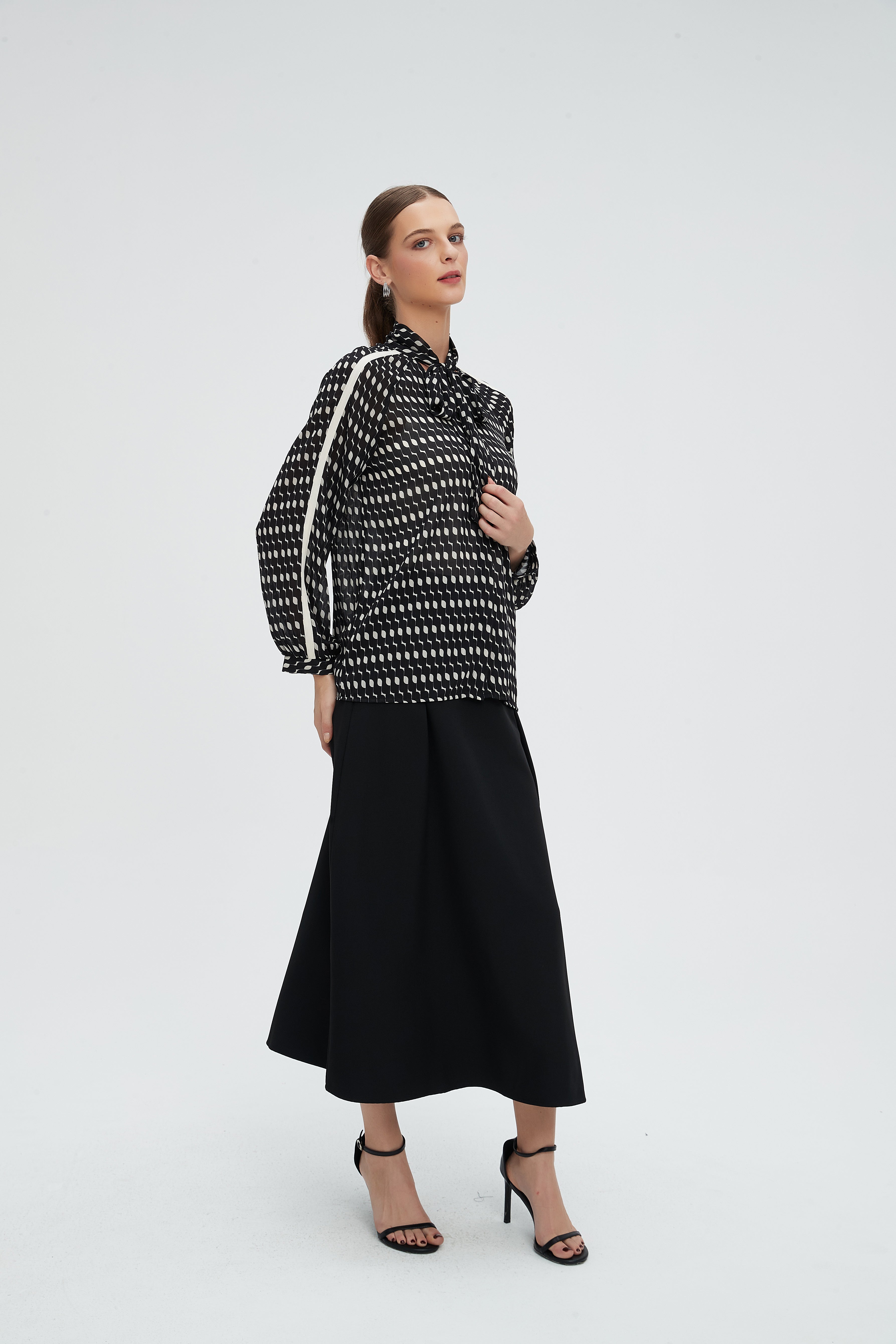 بلوزة كم طويل منقطة بياقة مدورة