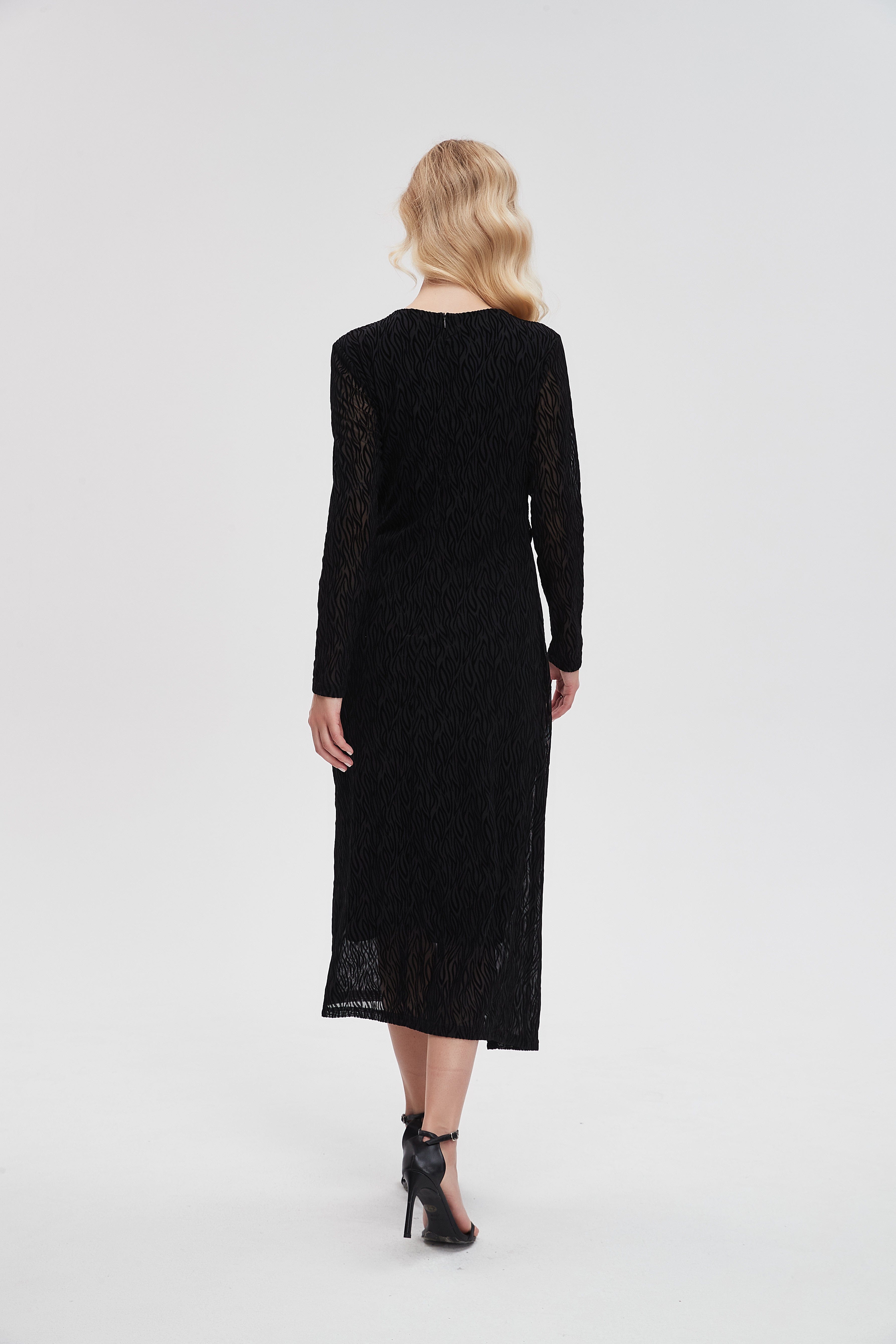 إذا كنتِ تبحثين عن فستان أنيق ومواكب للموضة لفعاليات مسائية أو لقاءات رسمية، فهذا الفستان الأسود خيار رائع. الخامة مكونة من 95% بوليستر و5% إيلستين فتمنحكِ مرونة خفيفة وشعوراً متماسكاً بمتوسط سماكة يناسب كل المواسم. القصة مستقيمة وموديل عادي مع ياقة مستديرة وكم طويل، والطول ميدي يمنح إطلالة متوازنة بين الكلاسيكية والعملية. النقش المبطن والمطرز البارز يضيف لمسة فنية وتجعل الفستان يبرز دون مبالغة. لا يحتوي على جيوب أو حزام وبلا بطانة في هذا التصميم، ما يجعله خفيفًا وسهل الارتداء. مثالي للخروجات الرومانسية والمناسبات الأنيقة والاجتماعات؛ ستحبين كيف يتحرك الفستان معك ويمنحك حضوراً أنيقاً ومريحاً. اعثري على مقاسك في فاشن السعودية وأضيفي هذه القطعة المتنوعة إلى خزانة ملابسك اليوم.