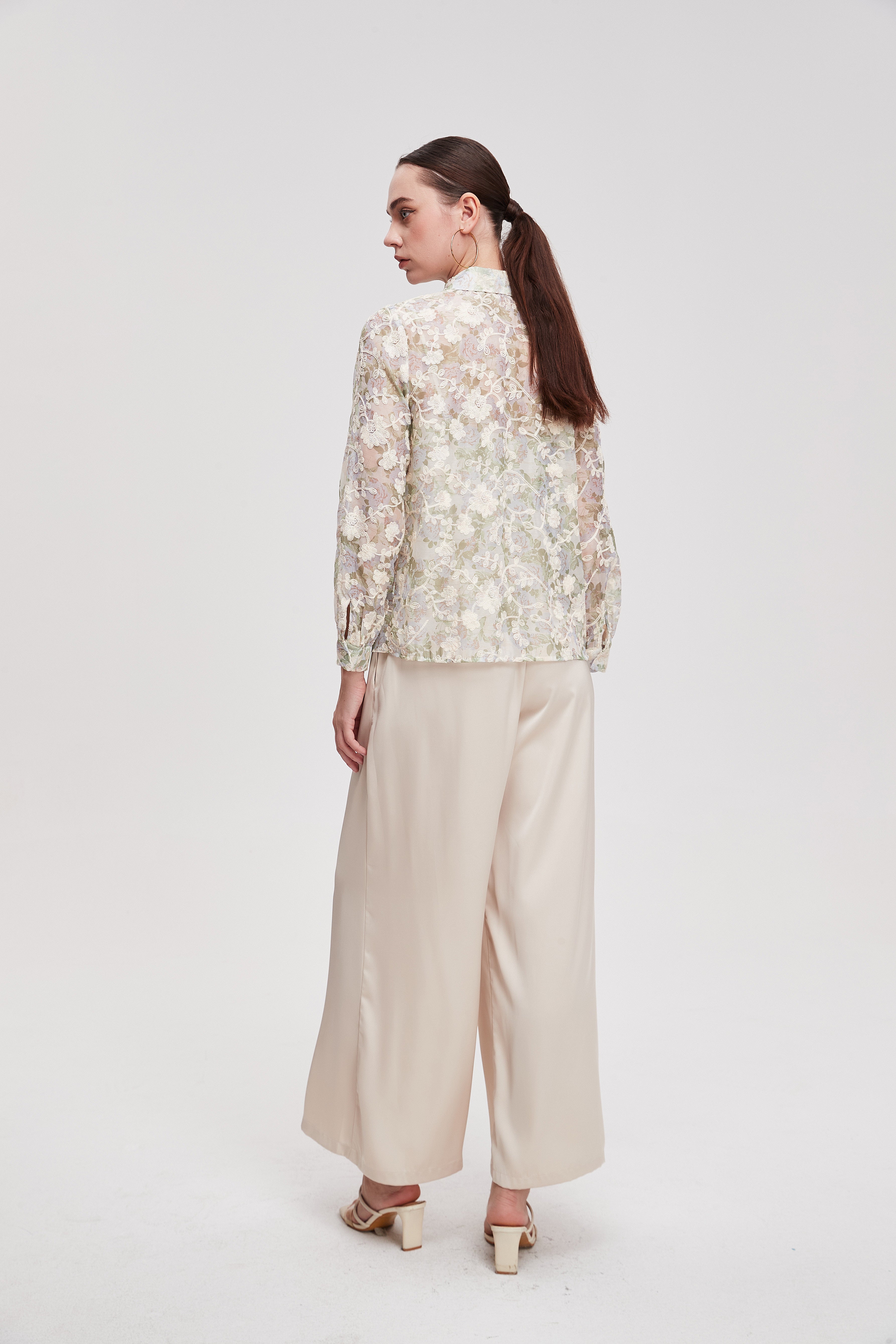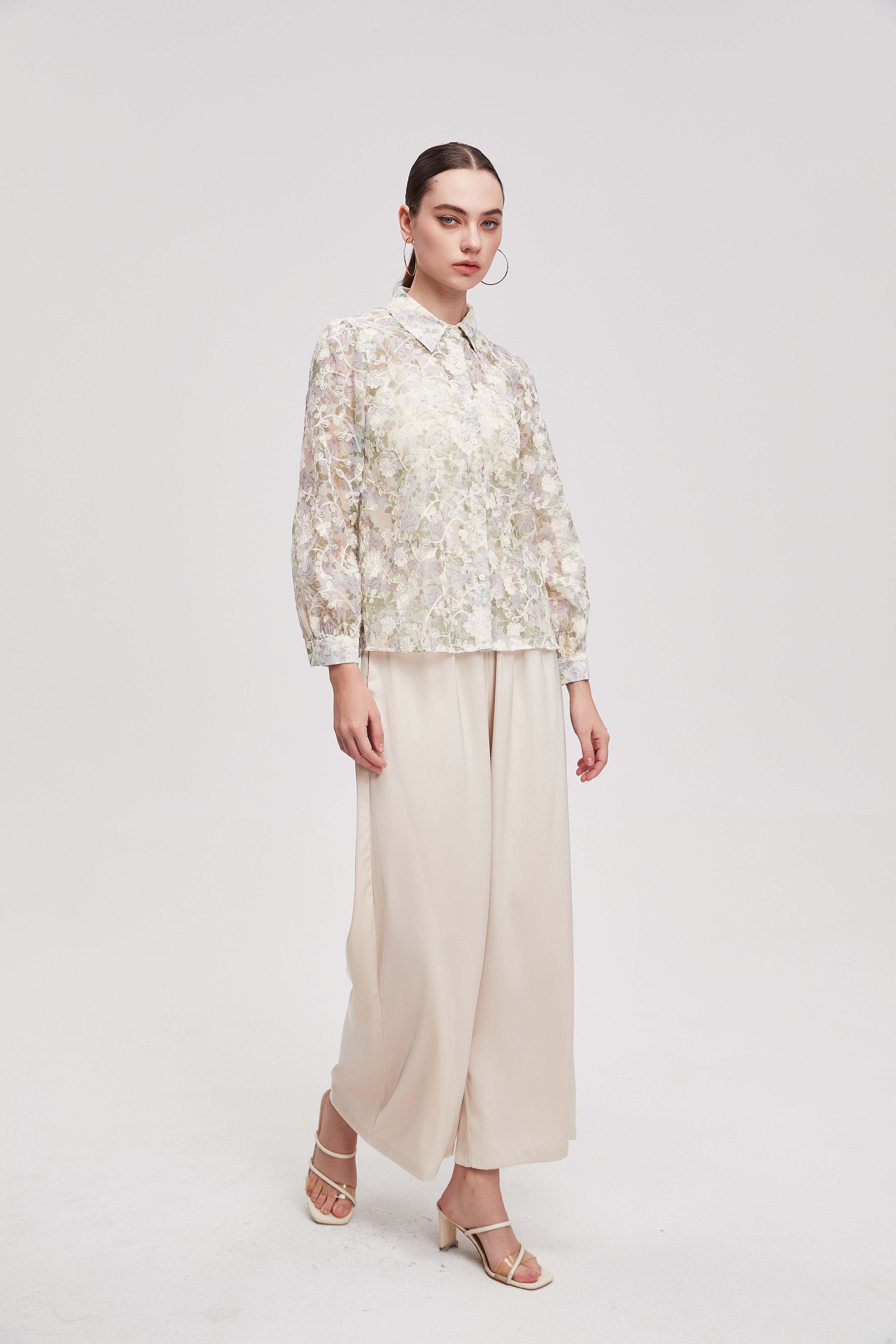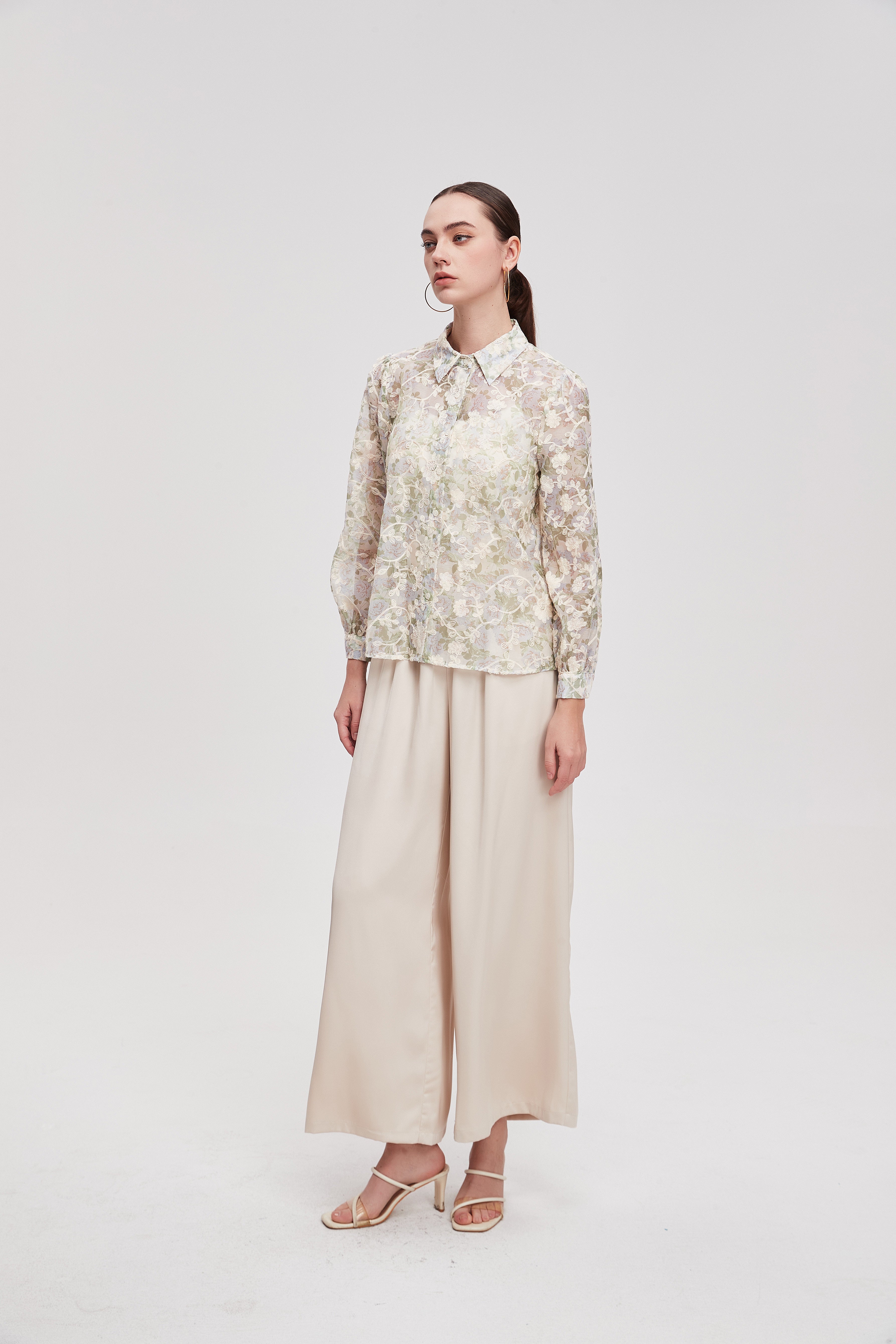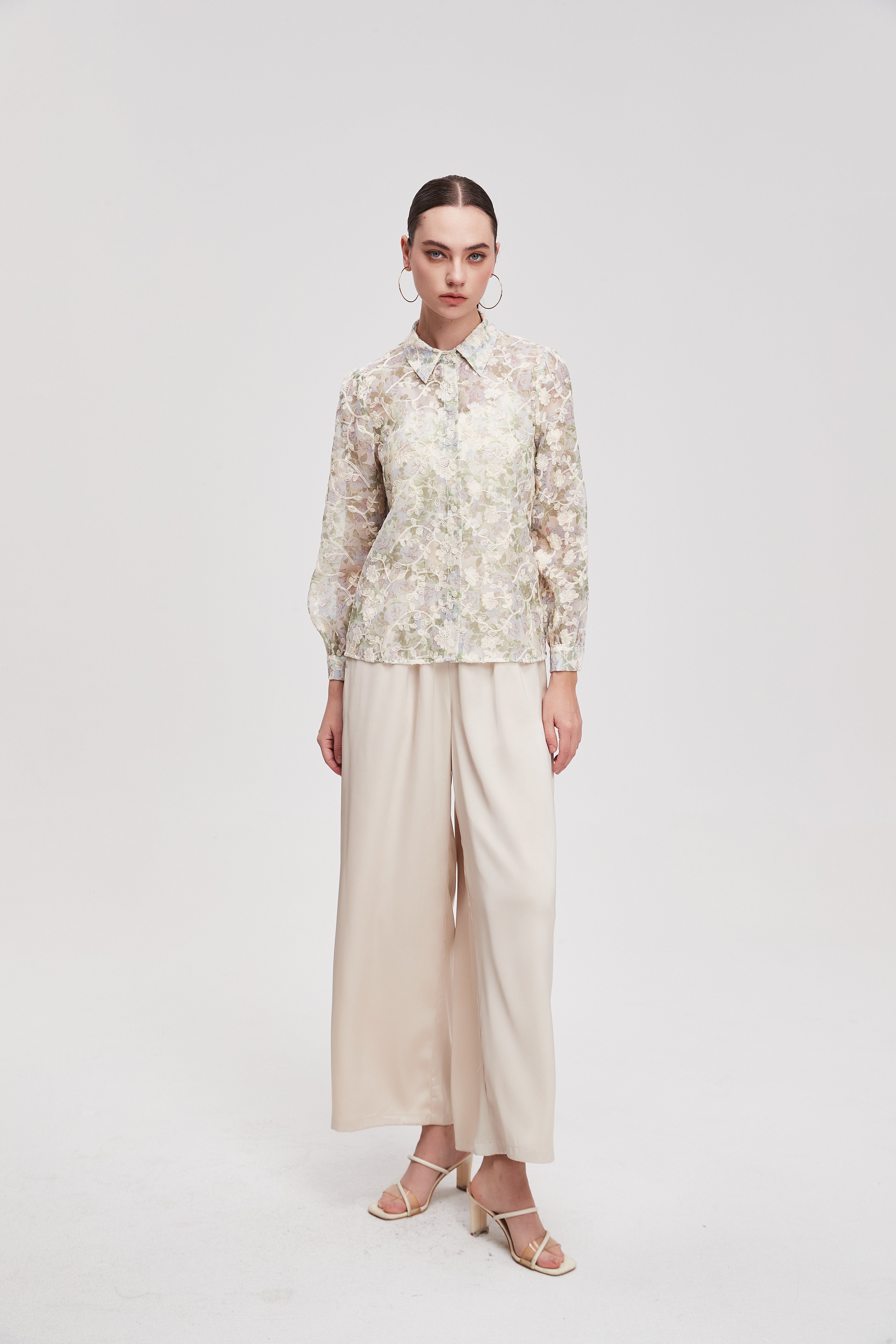 نسقي هذه البلوزة البيج مع بنطال قماش كلاسيكي أو تنورة لإطلالة مكتبية أنيقة. للوك كاجوال، ارتديها مع جينز وحذاء رياضي. يمكن إضافة حزام رفيع لتحديد الخصر وإبراز أناقتك.- تُغسل في الغسالة بماء بارد.