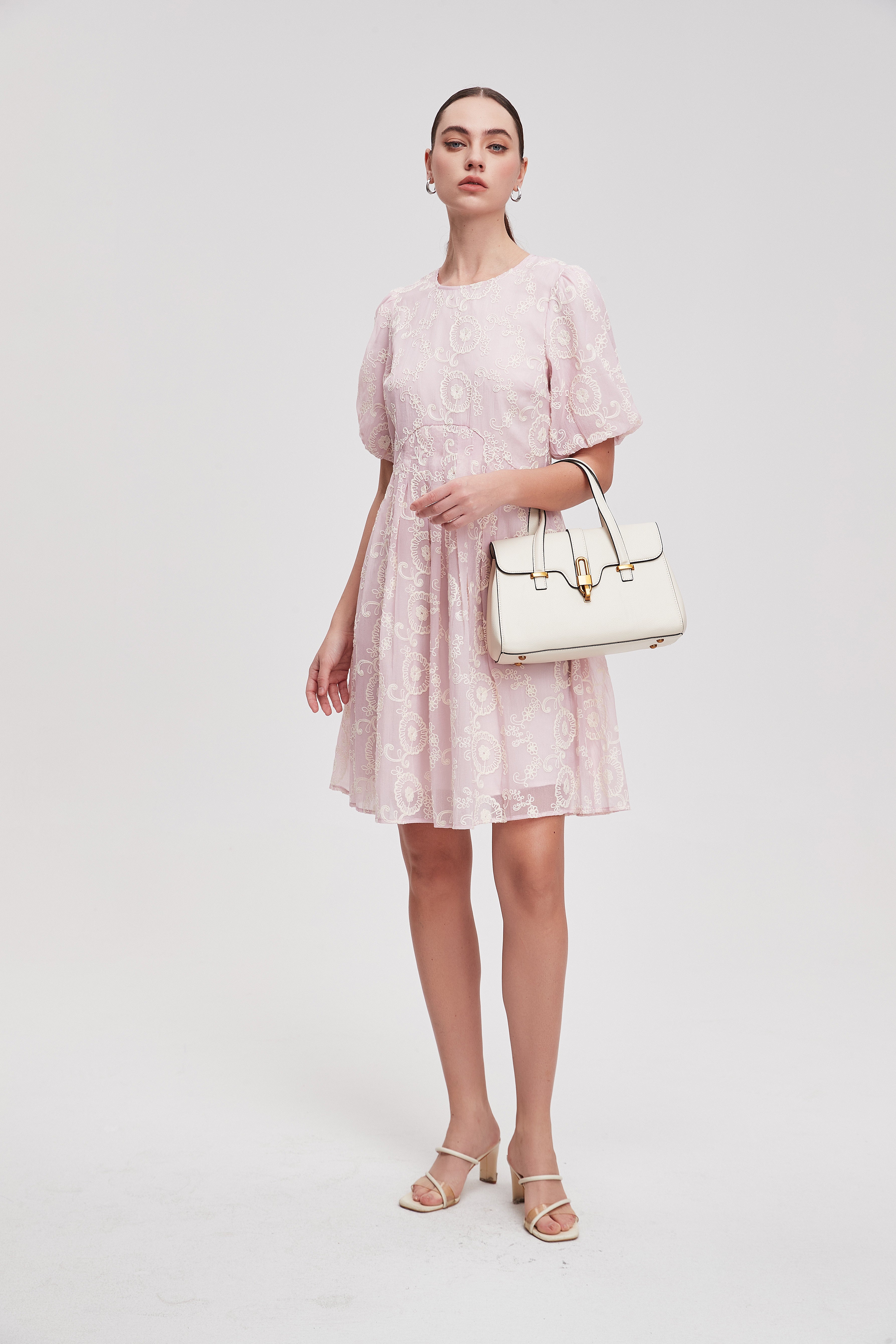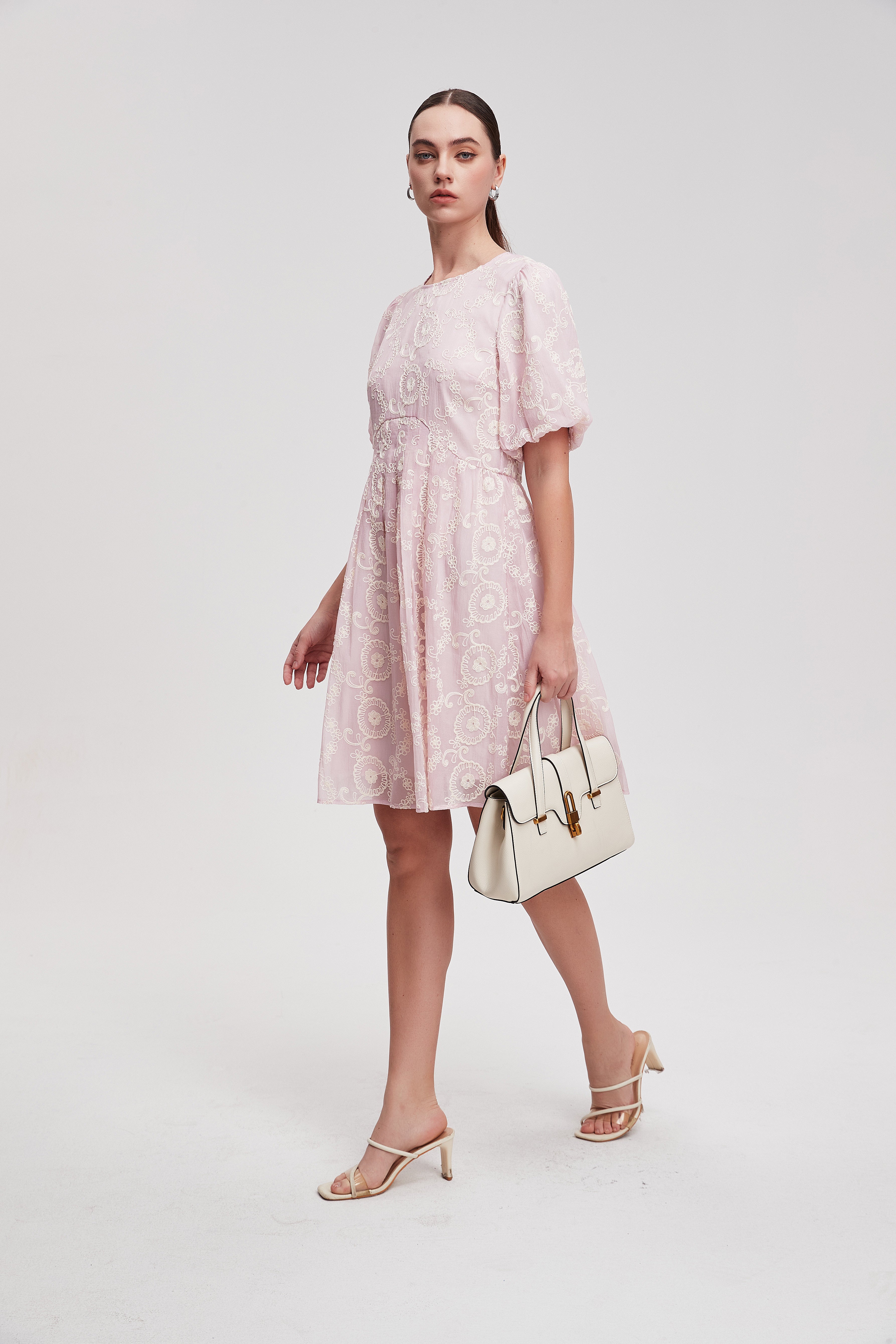 صُنع هذا الفستان بشكل أساسي من البوليستر بنسبة 100%، مع بطانة من البوليستر ومادة داخلية من القطن 100%. هذه التركيبة تمنح الفستان ملمساً ناعماً وانسيابياً على الجسم، وتوفر تهوية مريحة بفضل وجود القطن. يتميز النسيج بمقاومته للتجاعيد وسهولة العناية، مما يجعله خياراً عملياً للاستخدام اليومي. اللون الوردي الهادئ يبرز نعومة القماش ويعكس الإحساس بالراحة والأناقة، وهو استثمار في قطعة تجمع بين الجودة والمتانة والمظهر الجذاب.