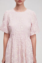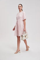 فستان بطول الركبة منقوش بأكمام قصيرة بف