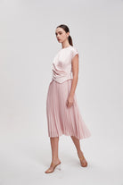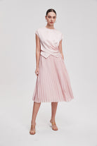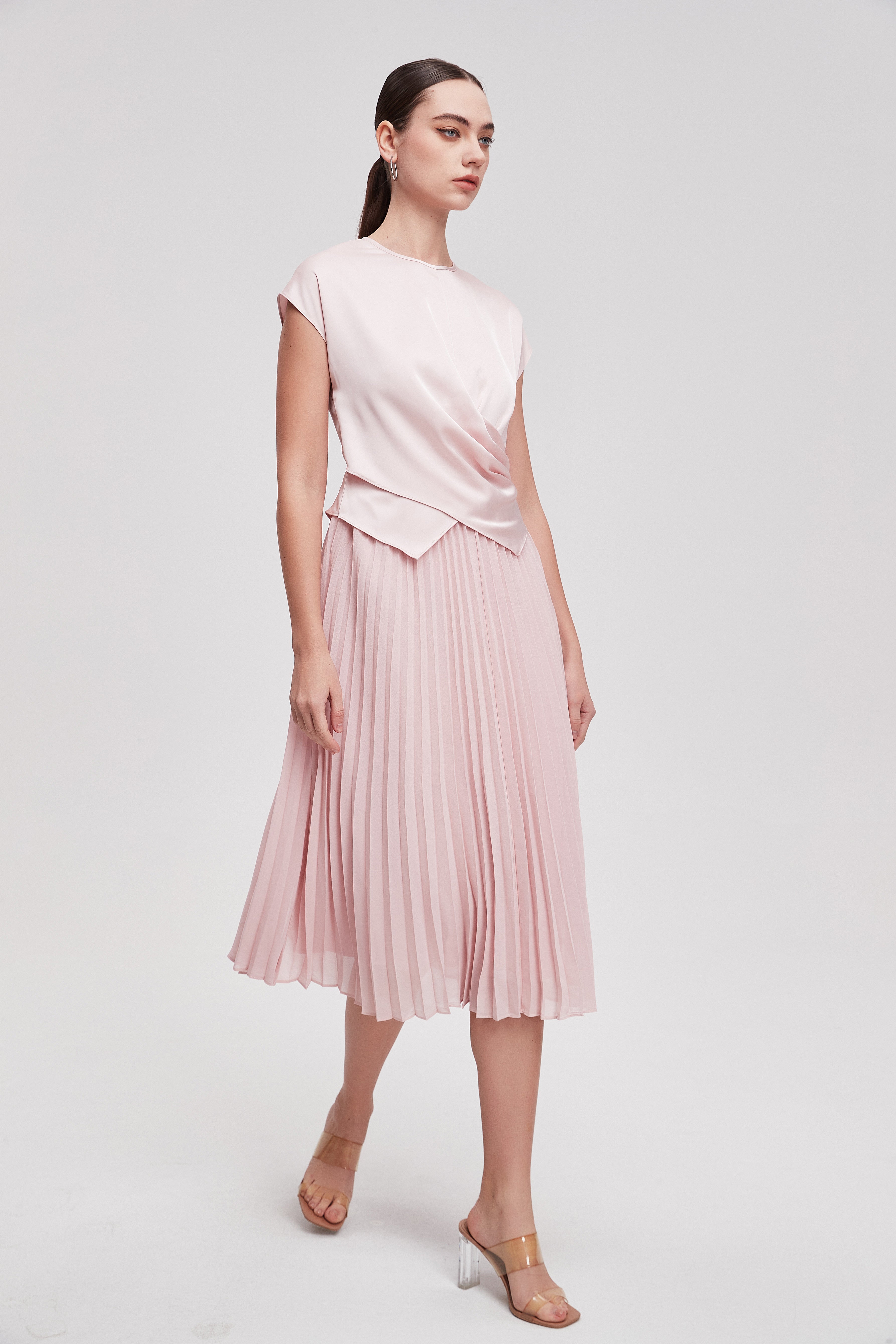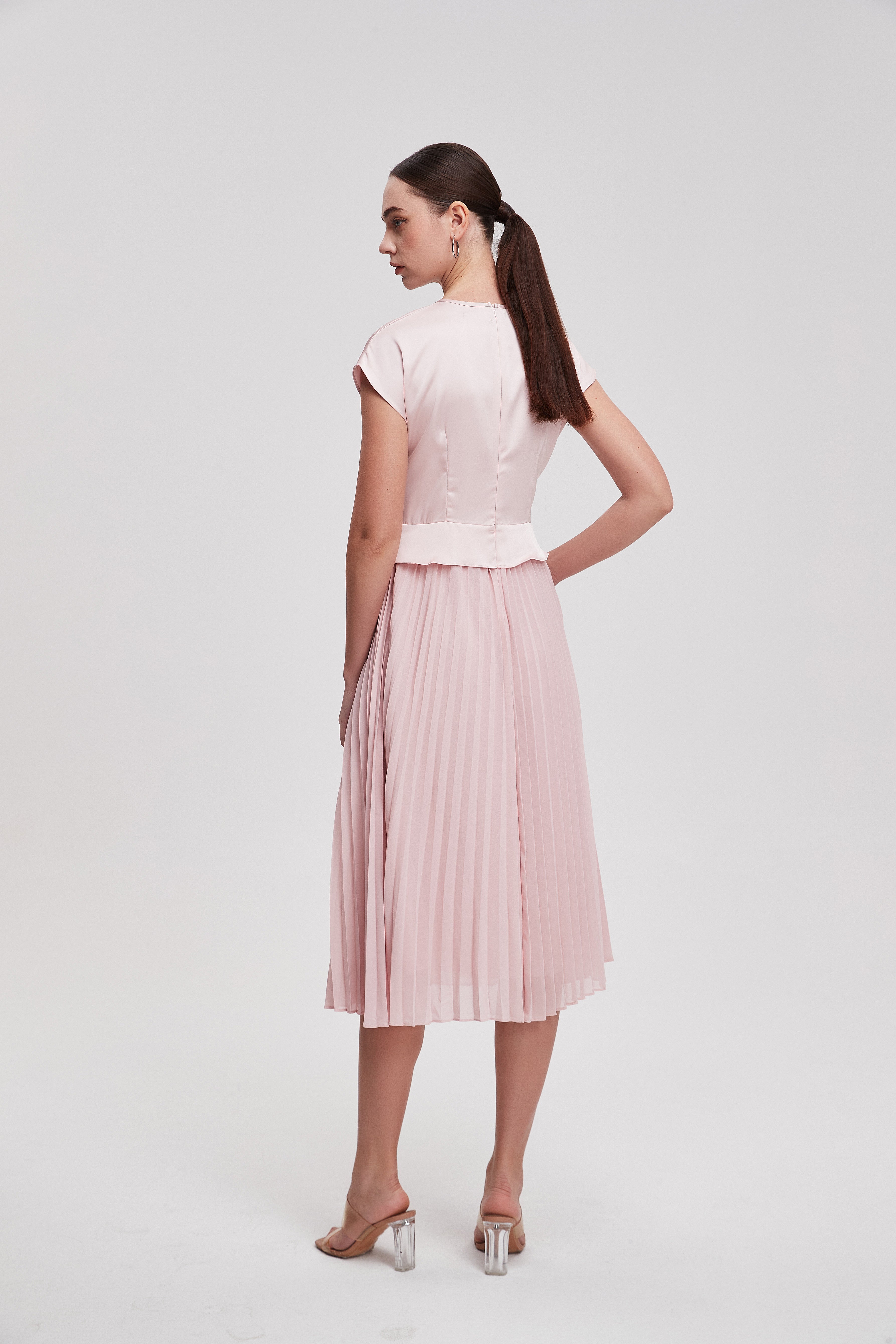 فستان ميدي سادة بليسيه بأكمام قصيرة