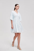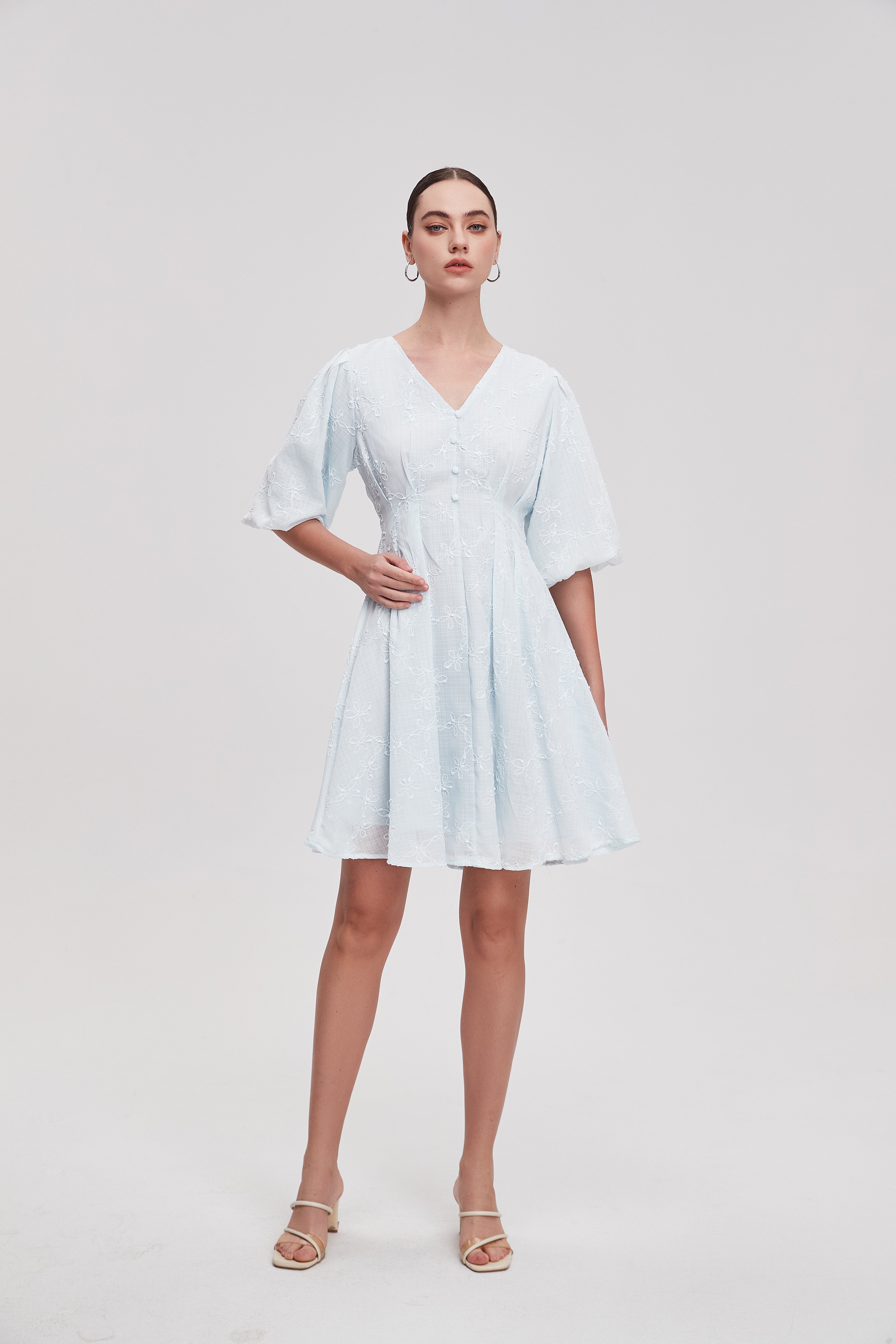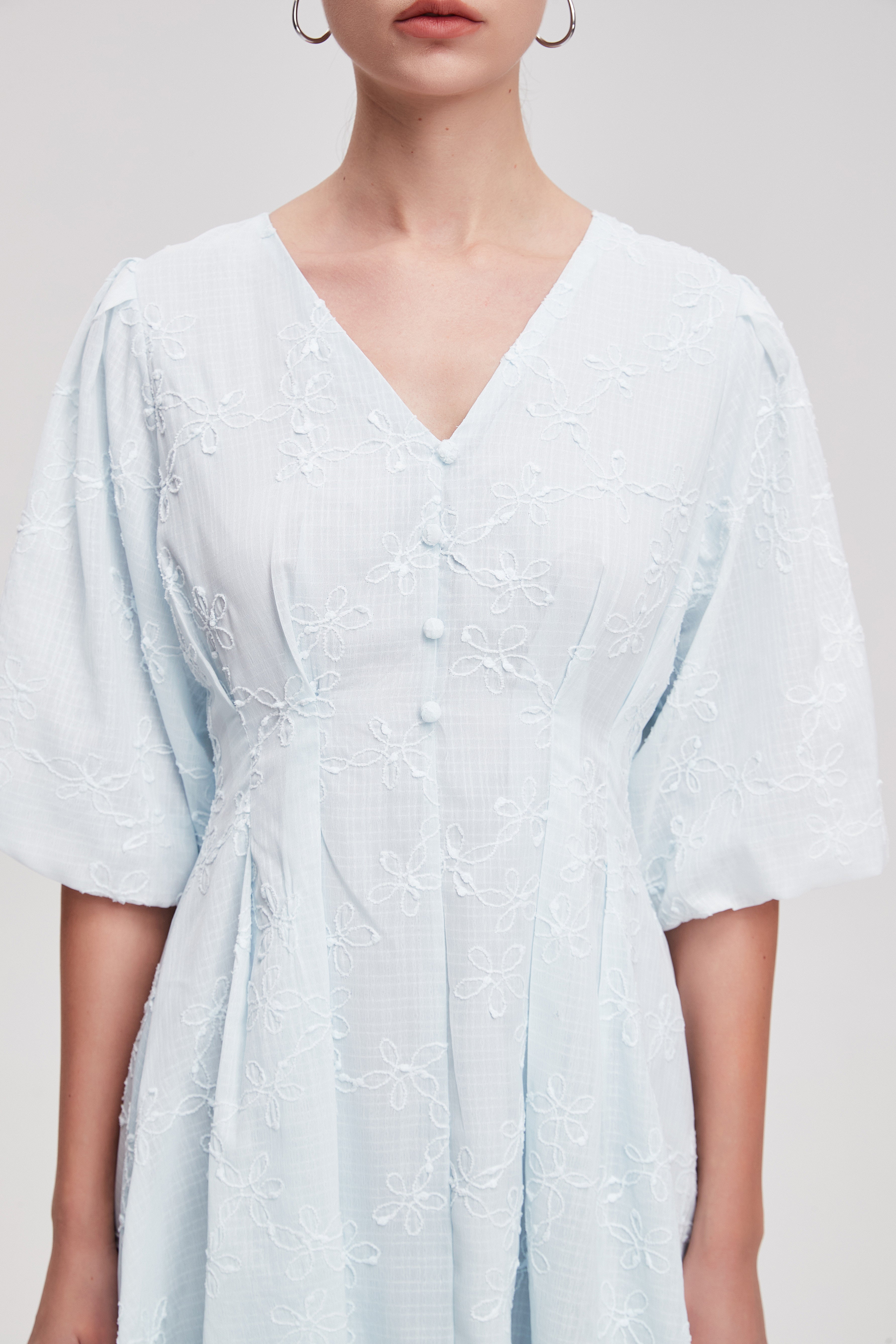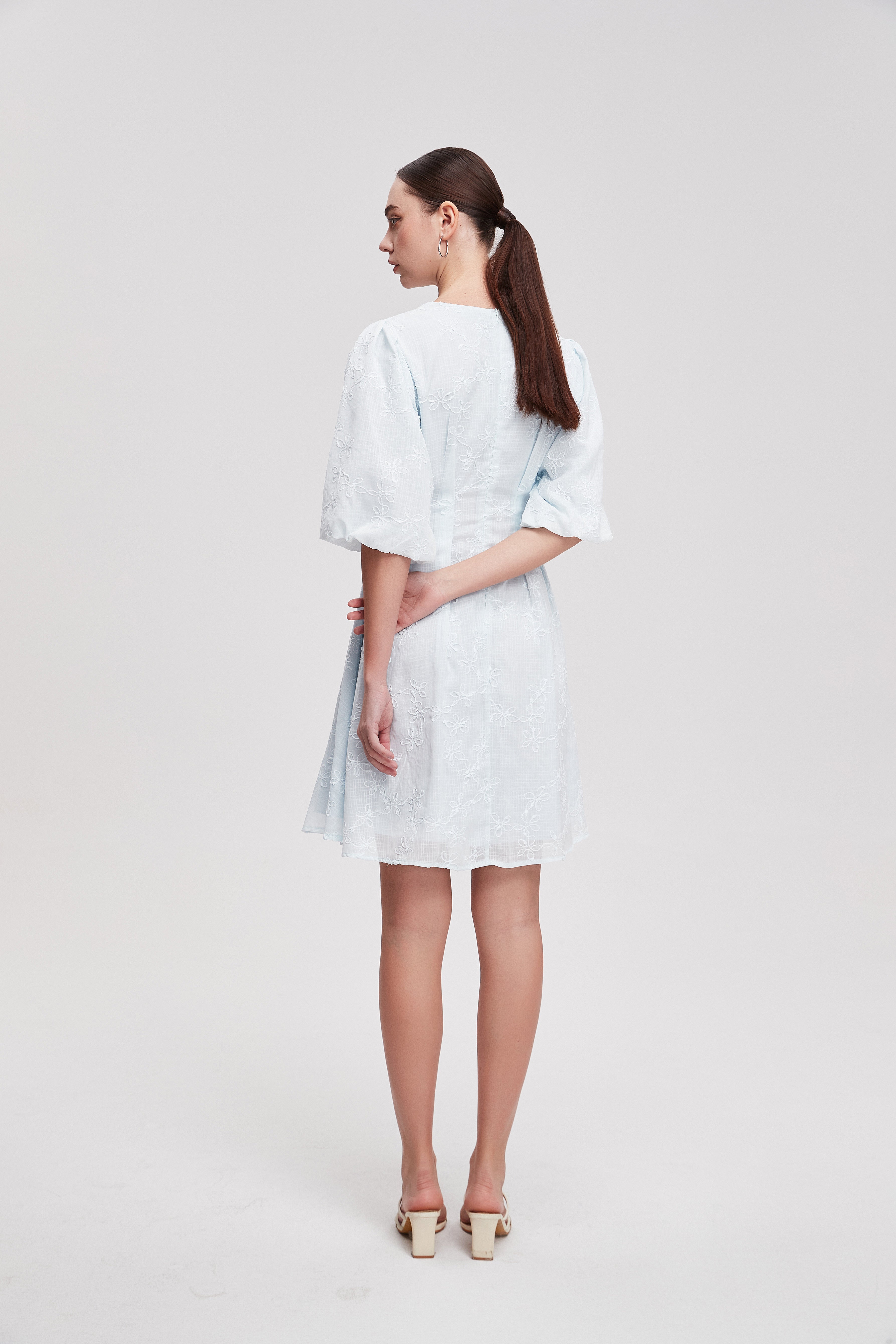 فستان بطول الركبة مطرز بأكمام قصيرة