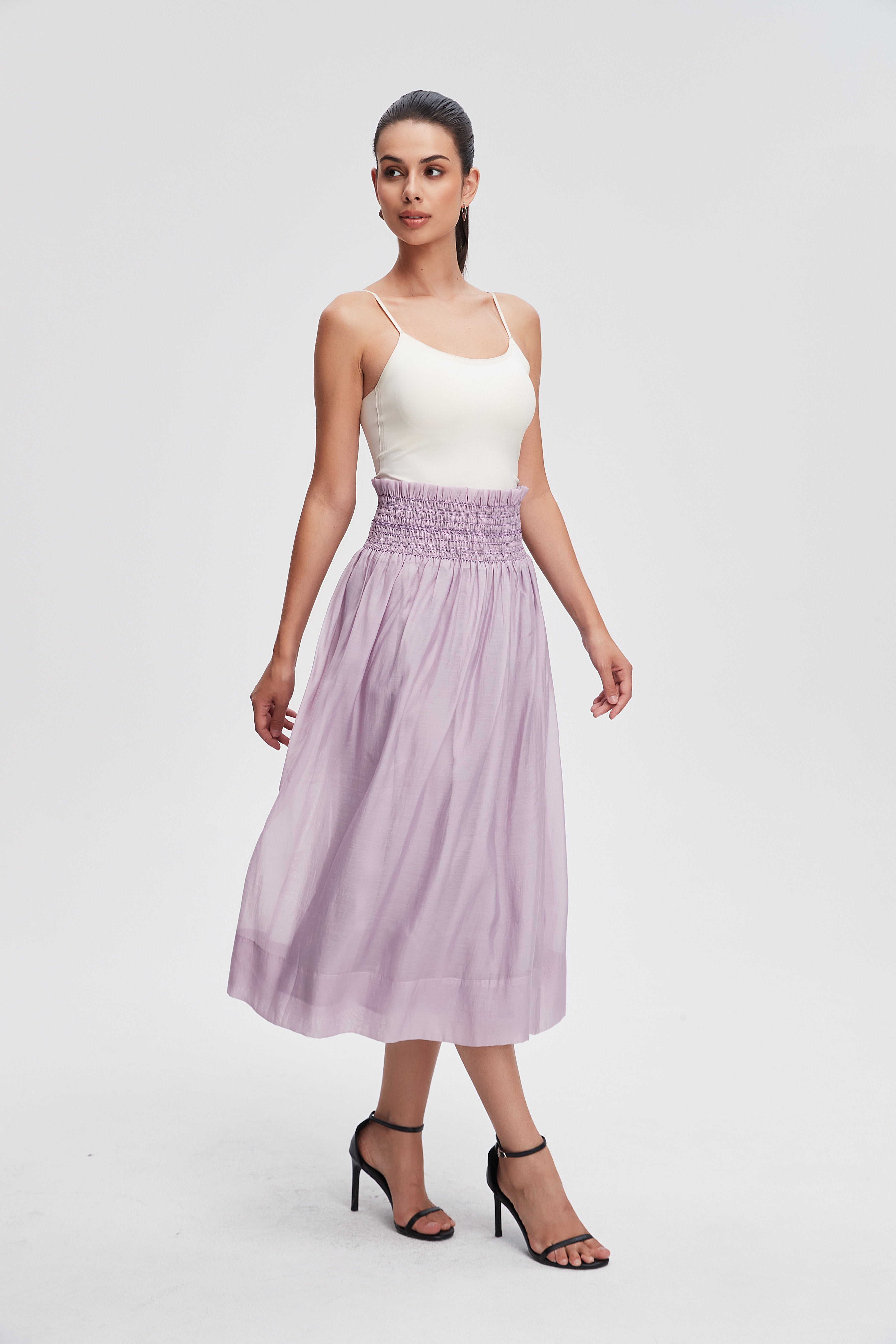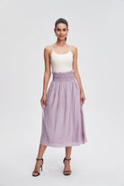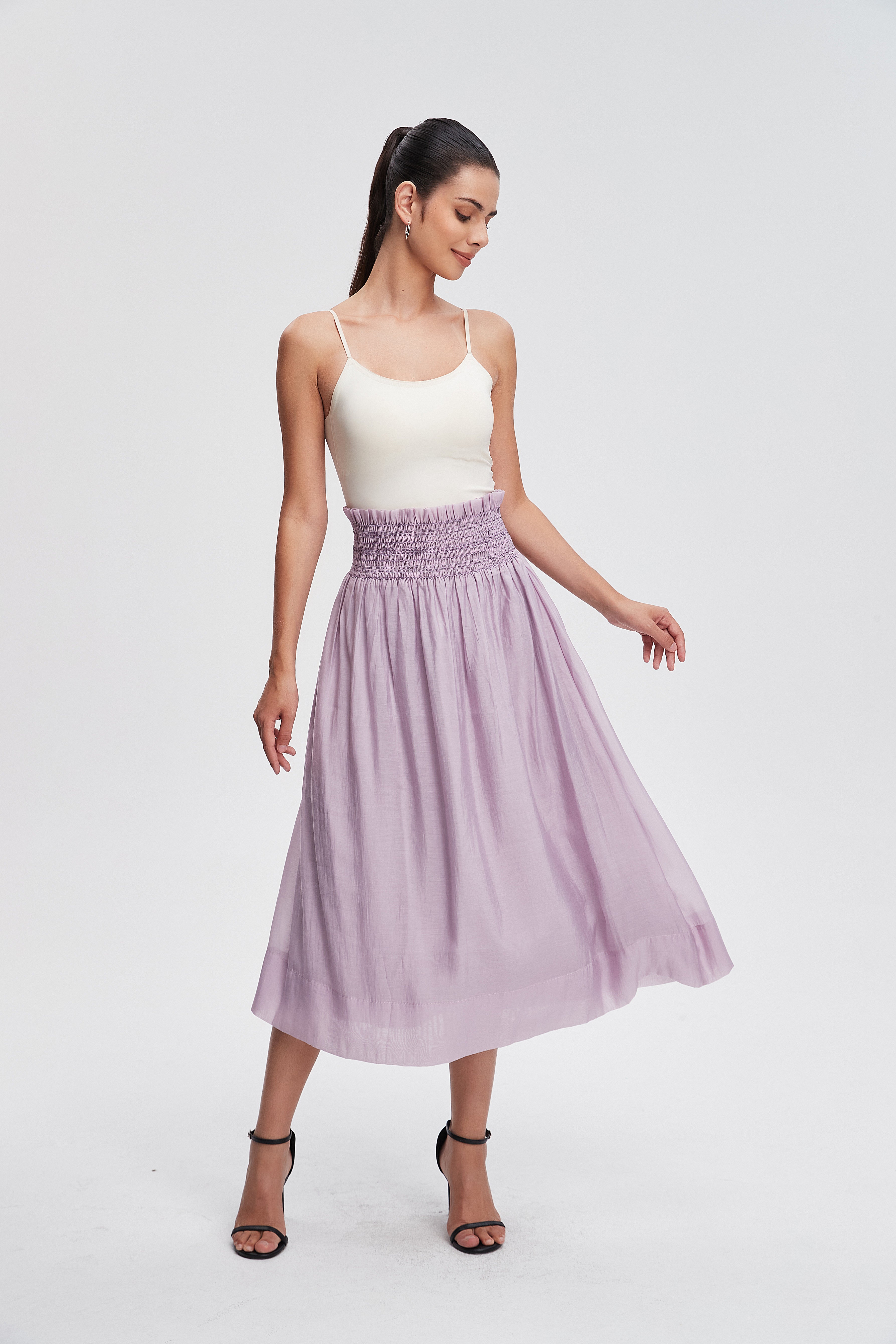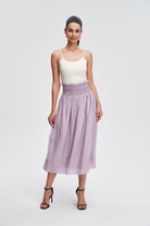 تنورة ميدي نسائية بخصر مرتفع مطاطي