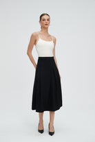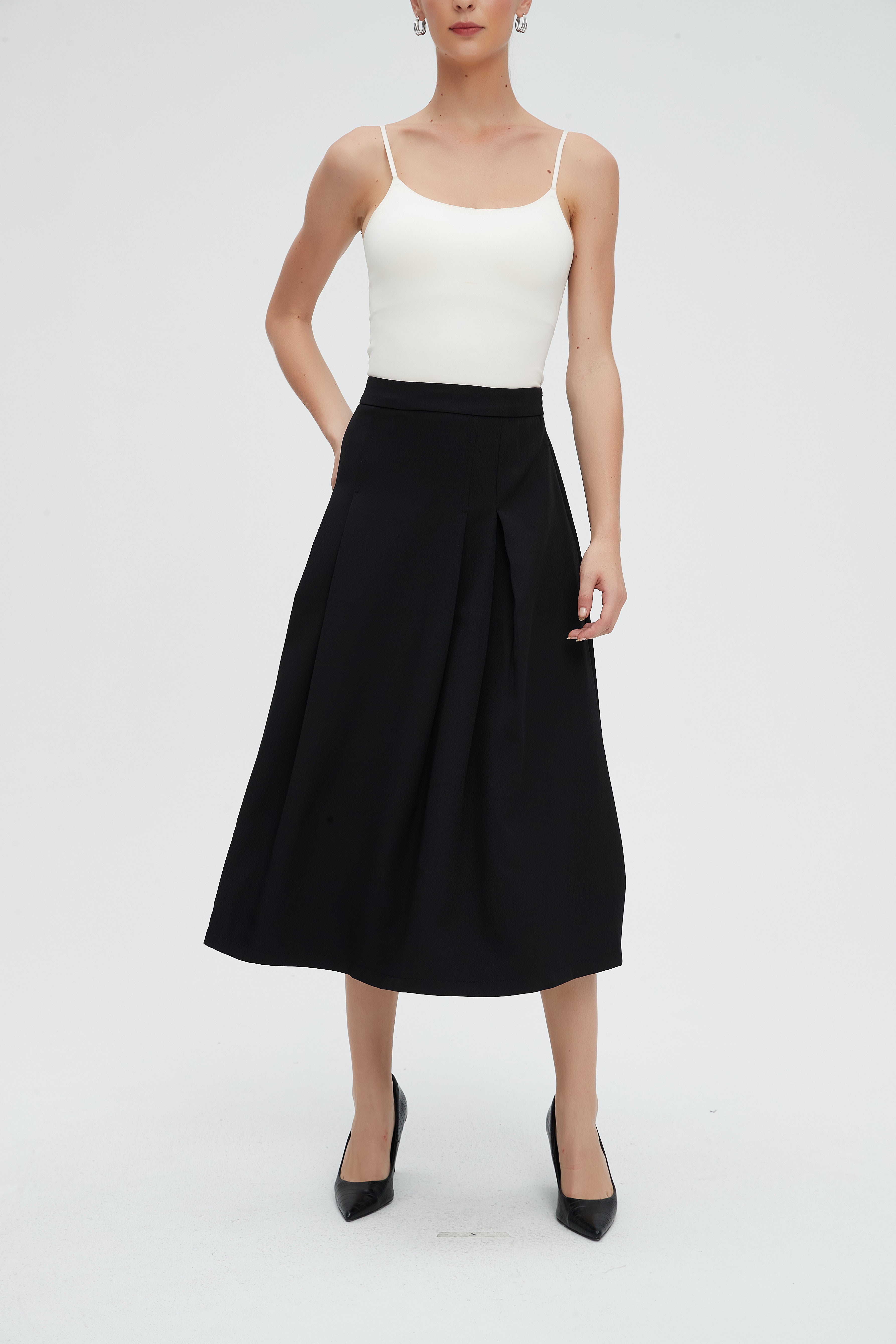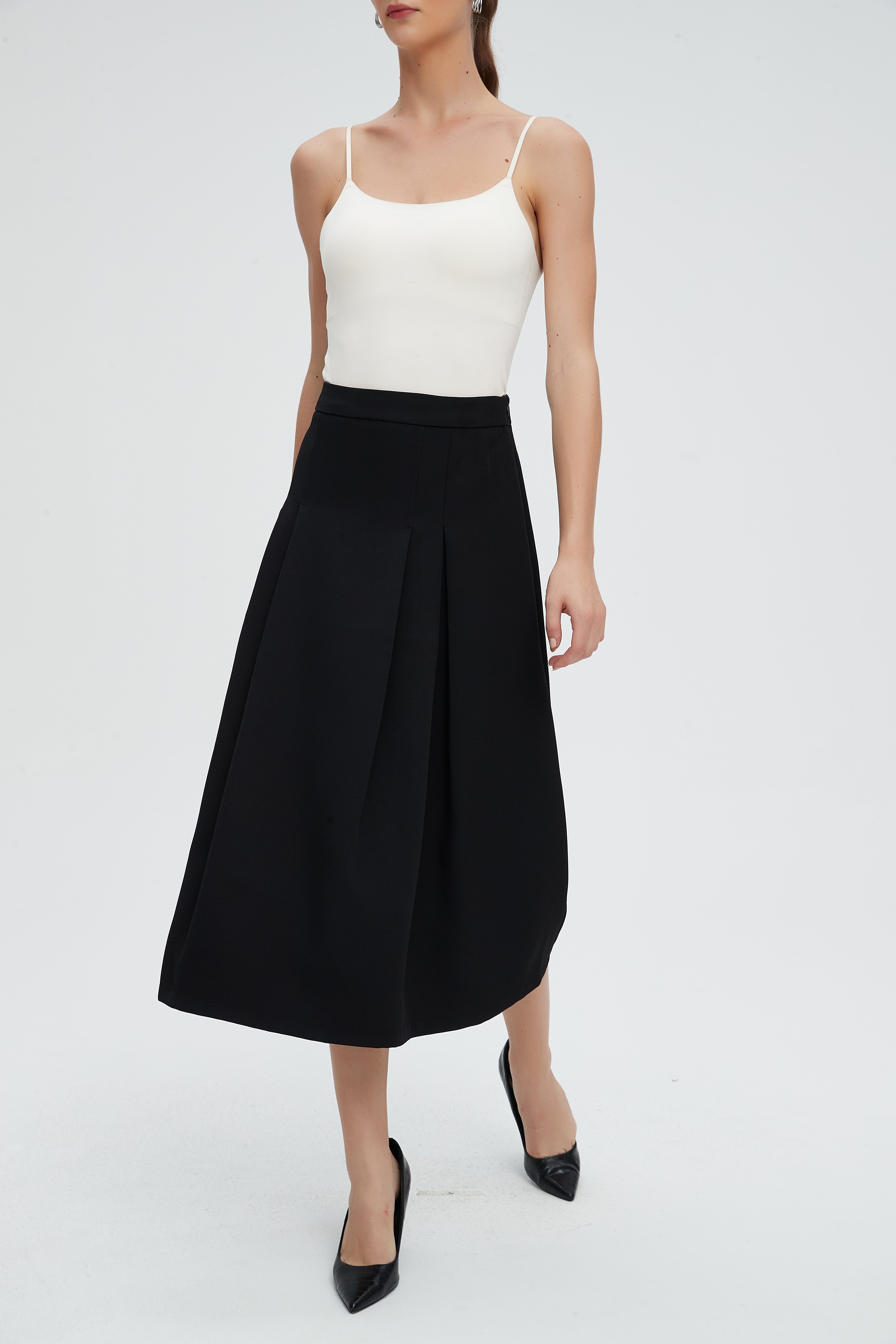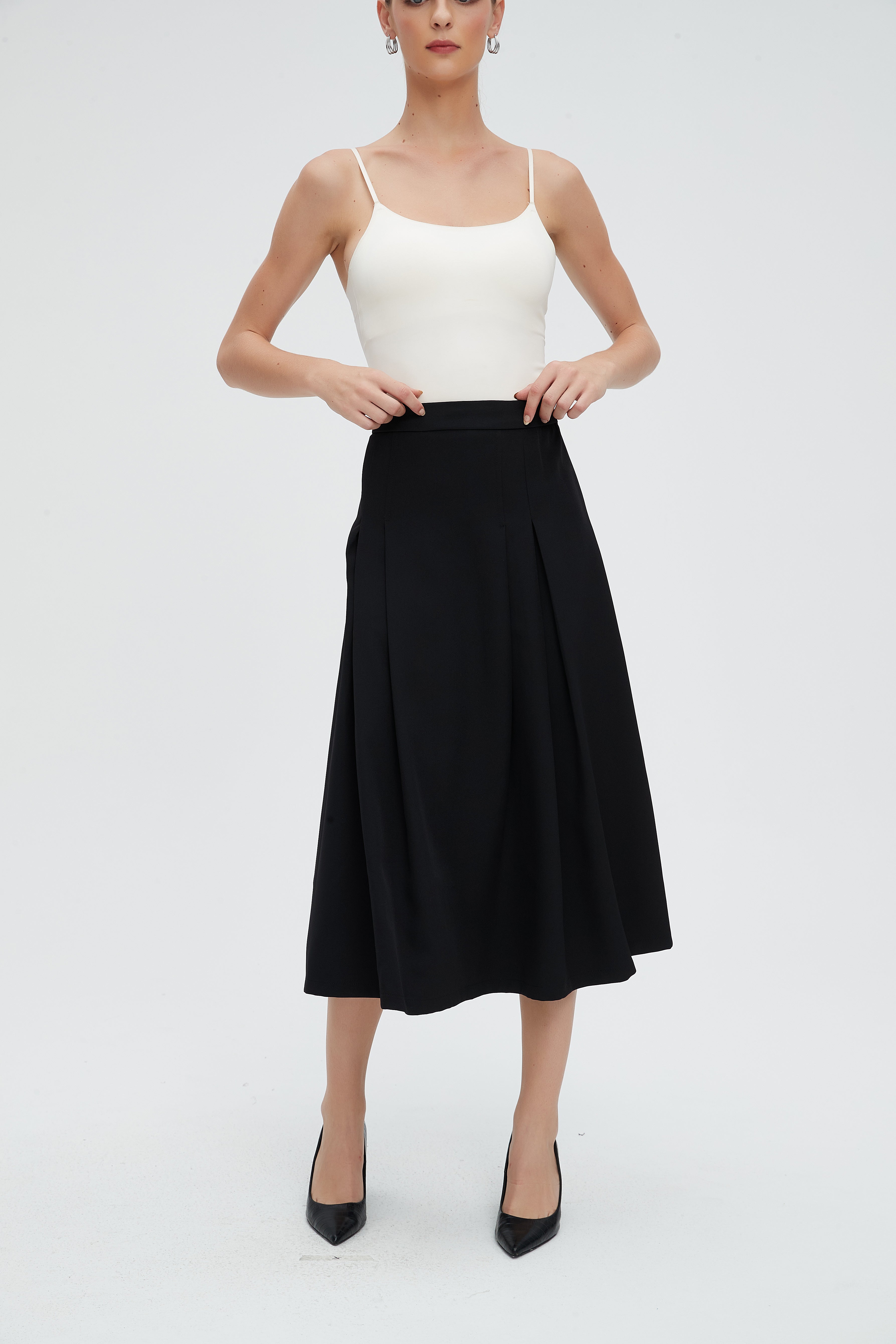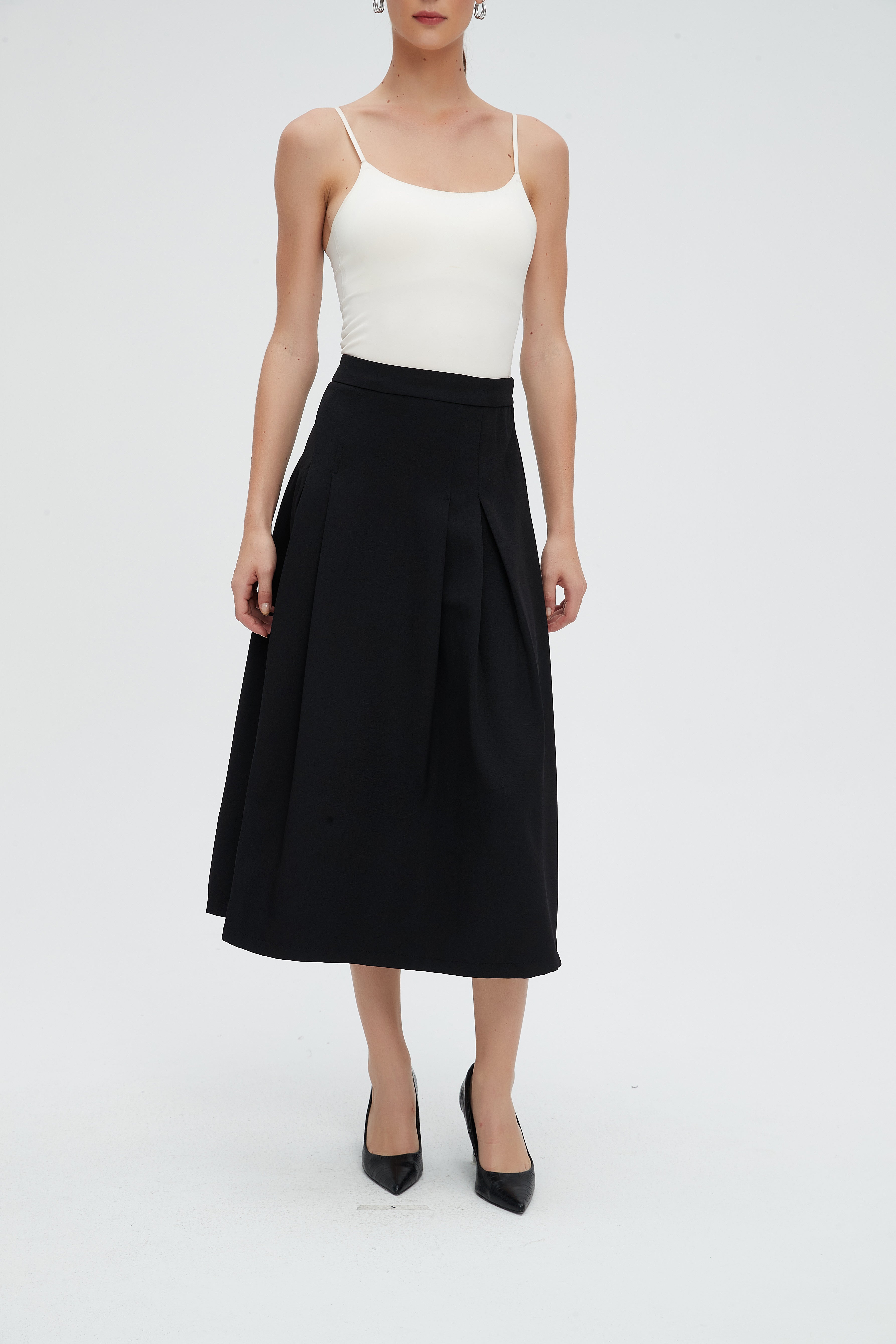 تنورة ميدي نسائية سادة بقصة كشكش على الجنبين