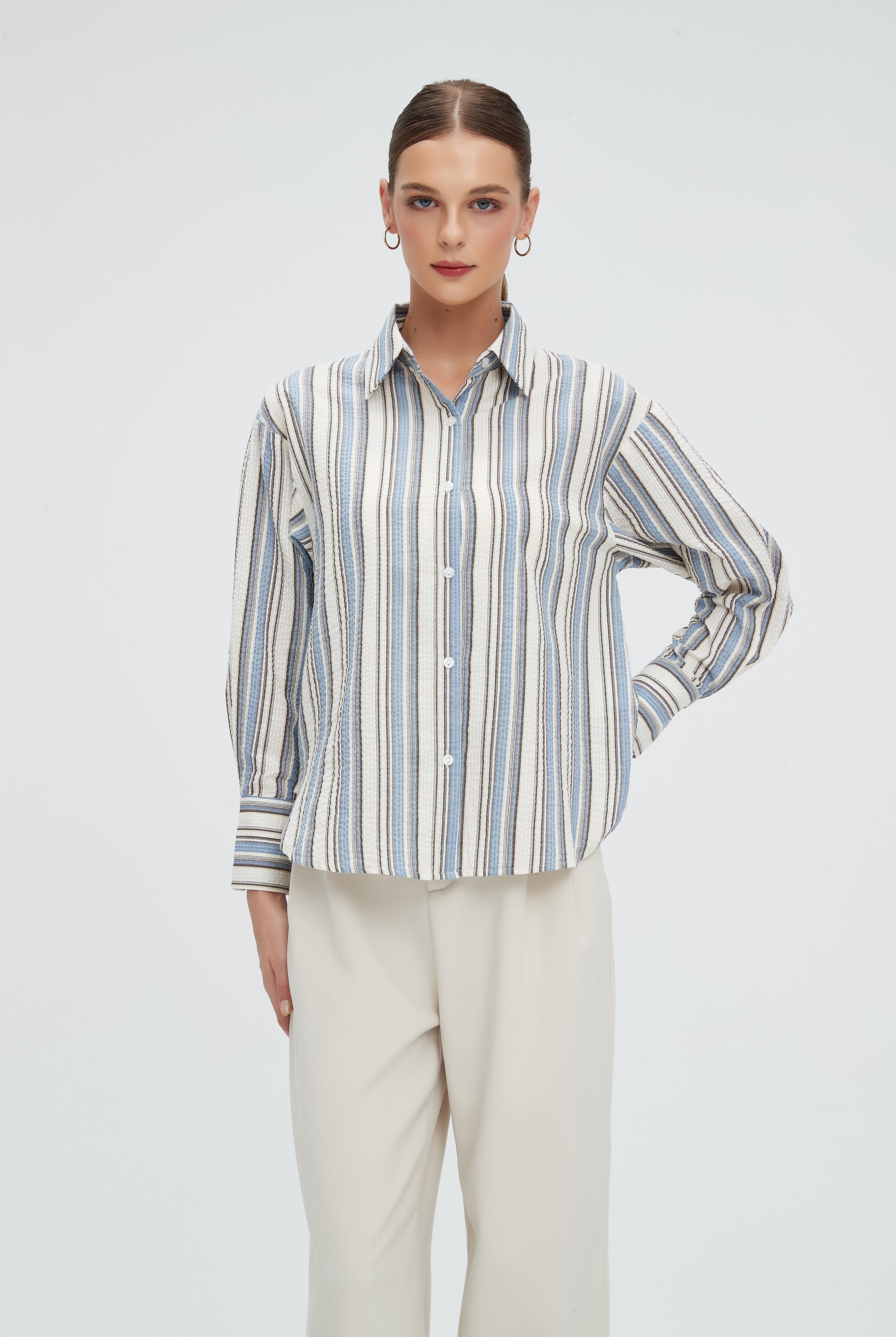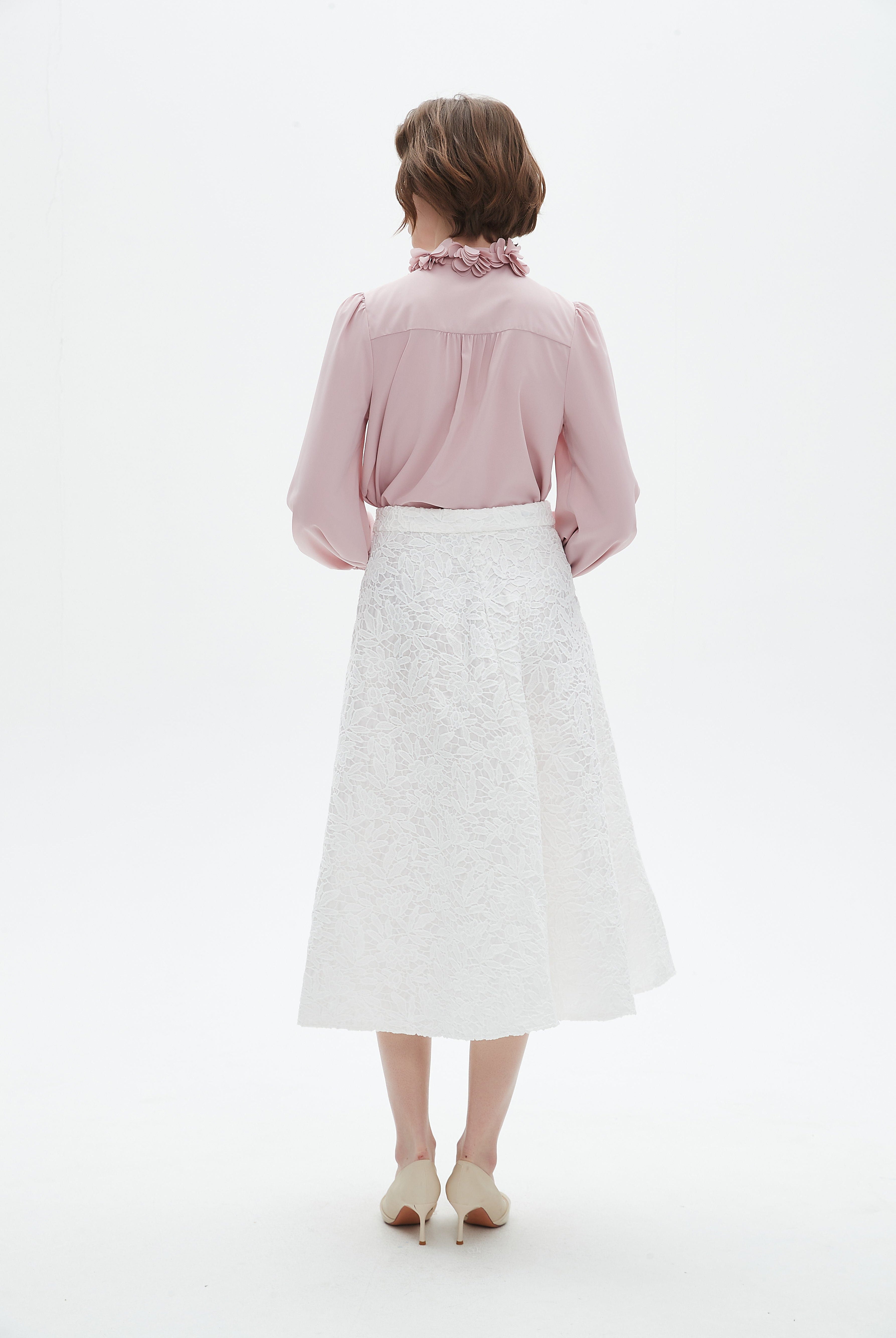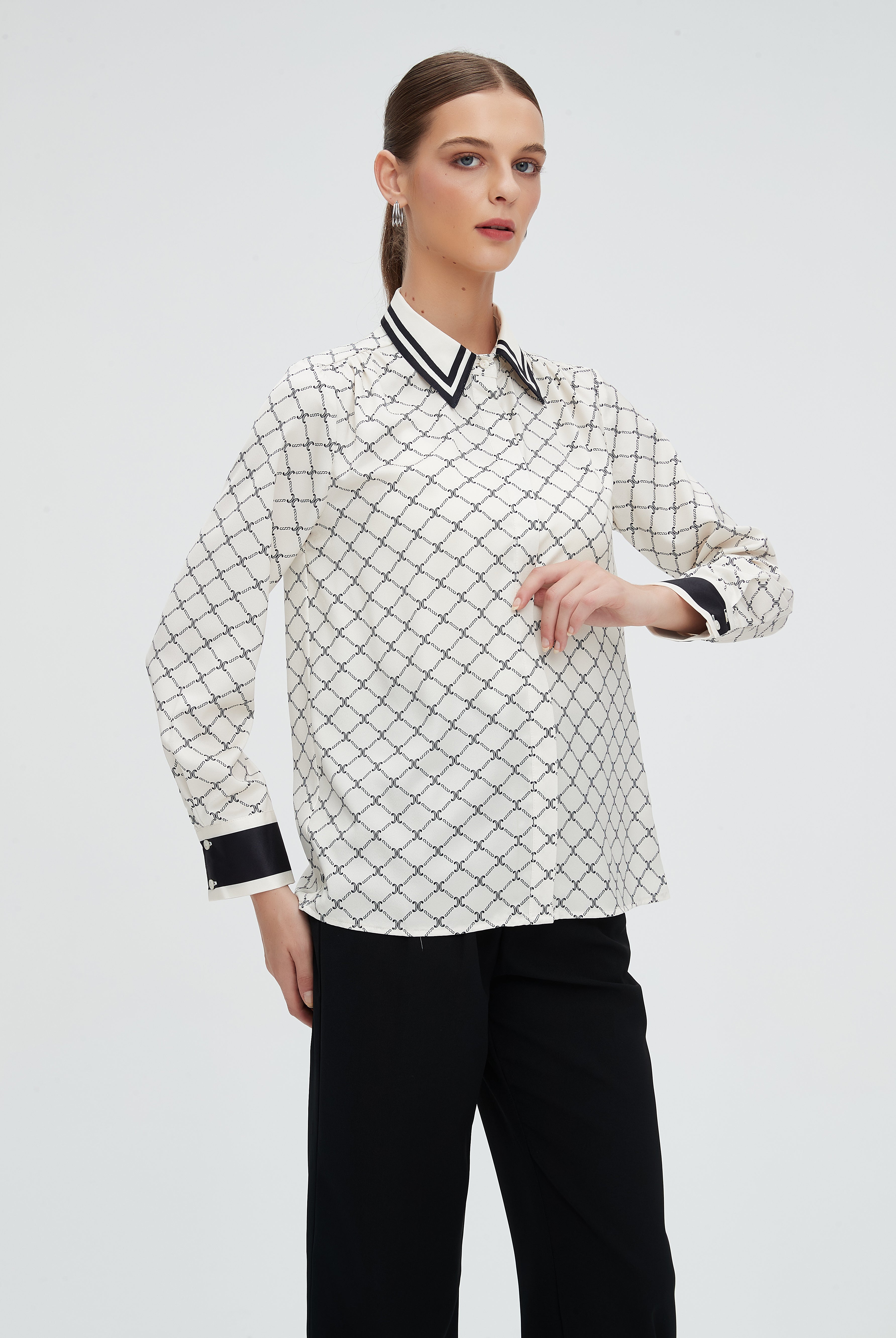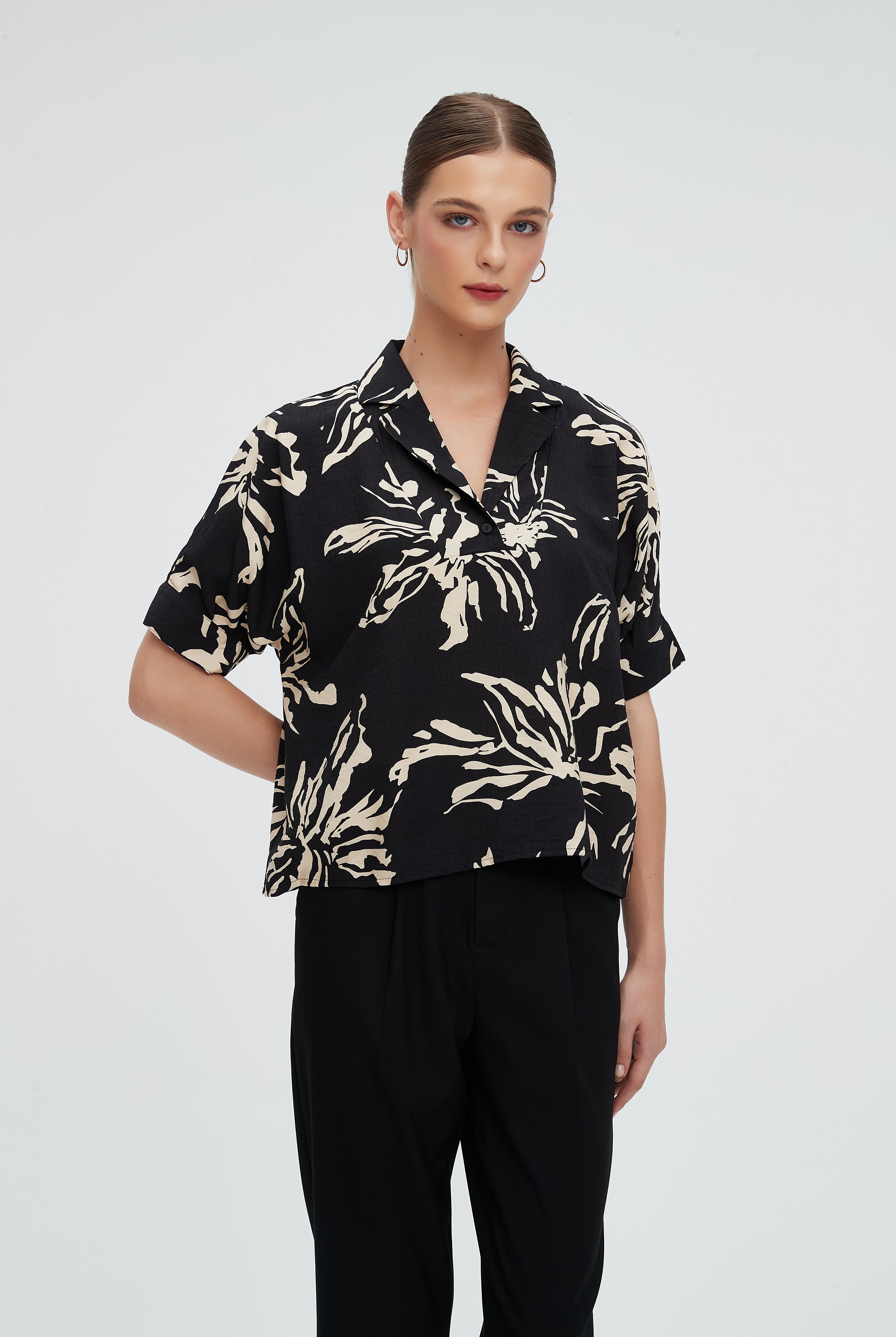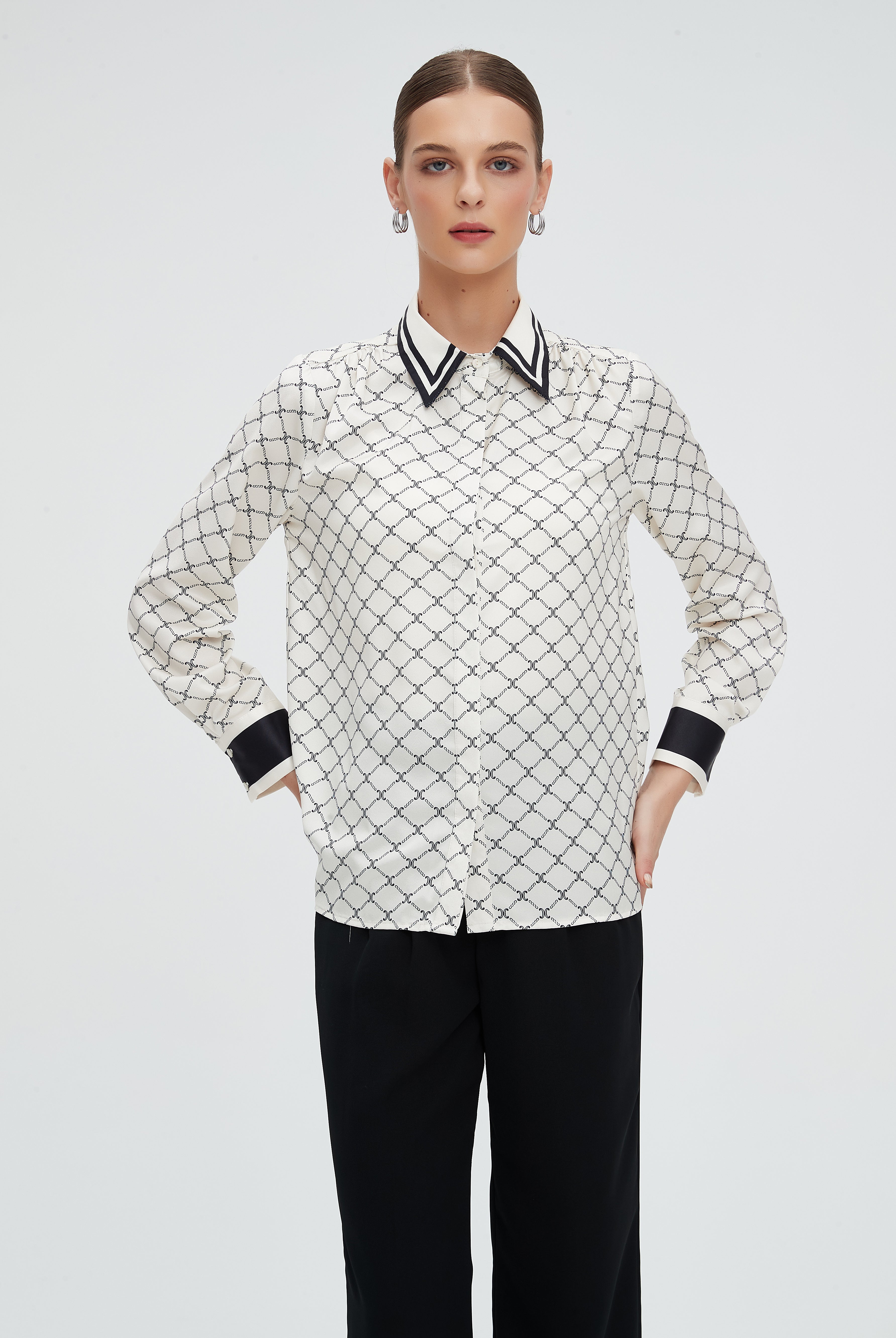بلوزة نسائية كم طويل بلوزة بطول الخصر مشجرة بتفاصيل شيفون وفتحة رقبة دائرية