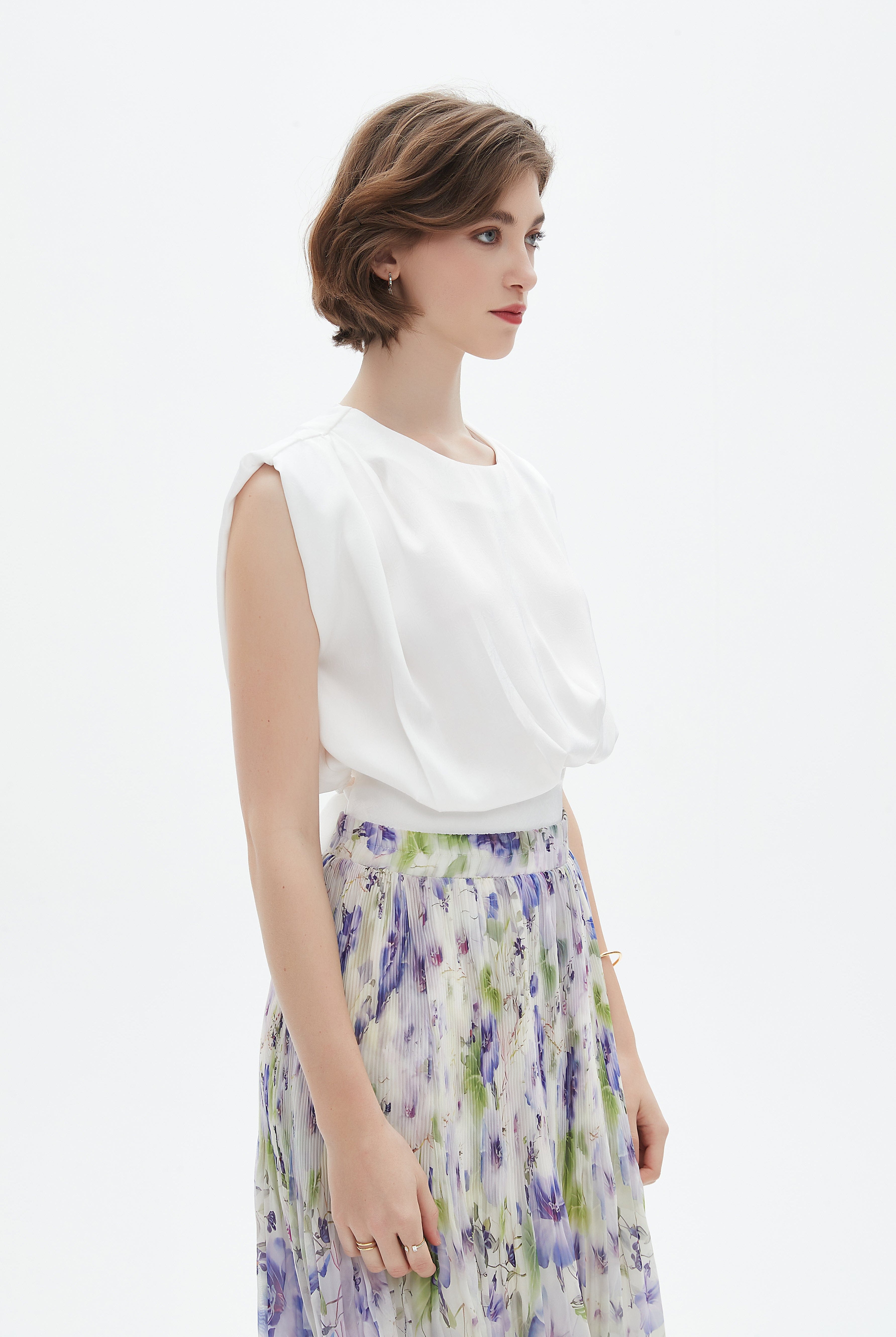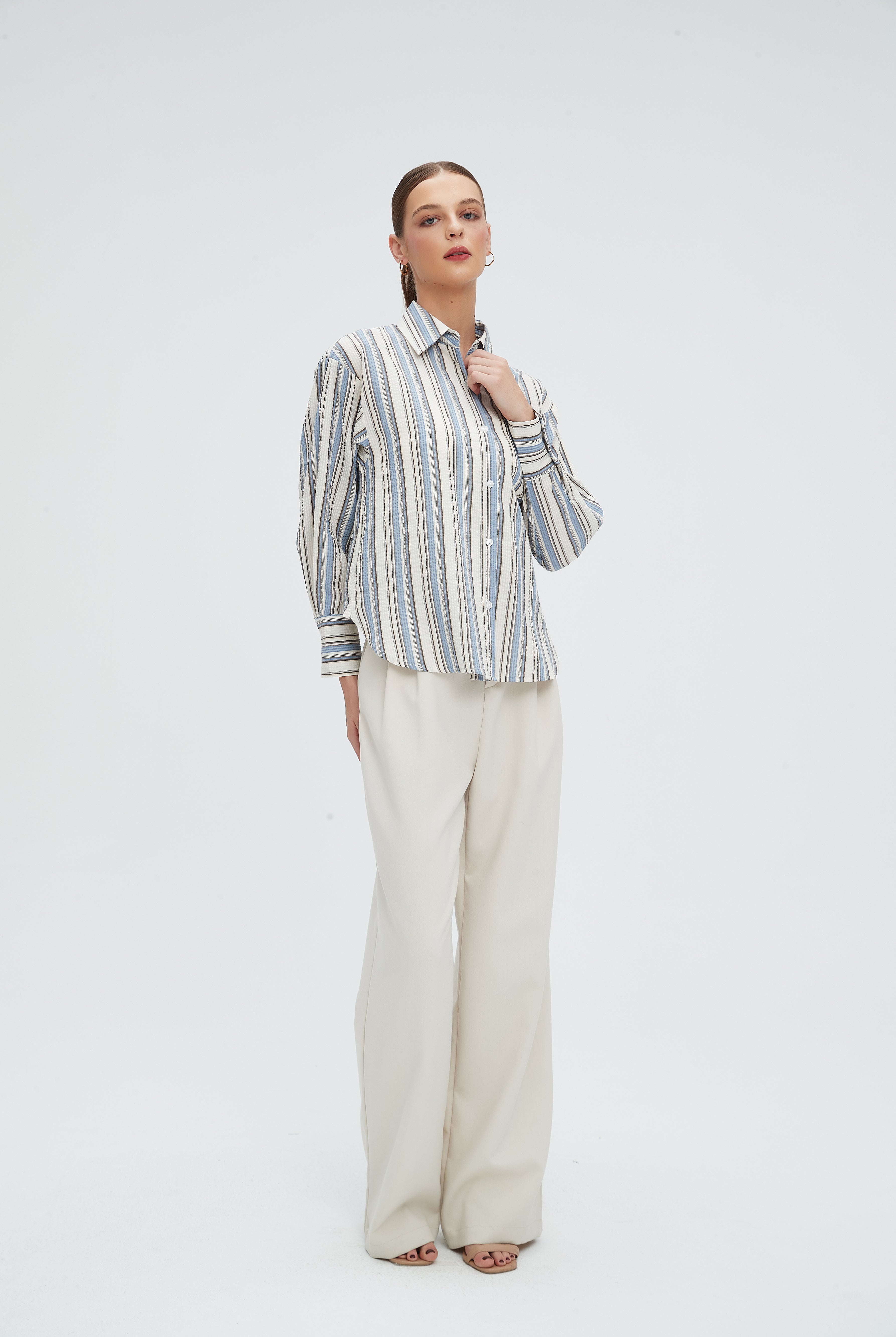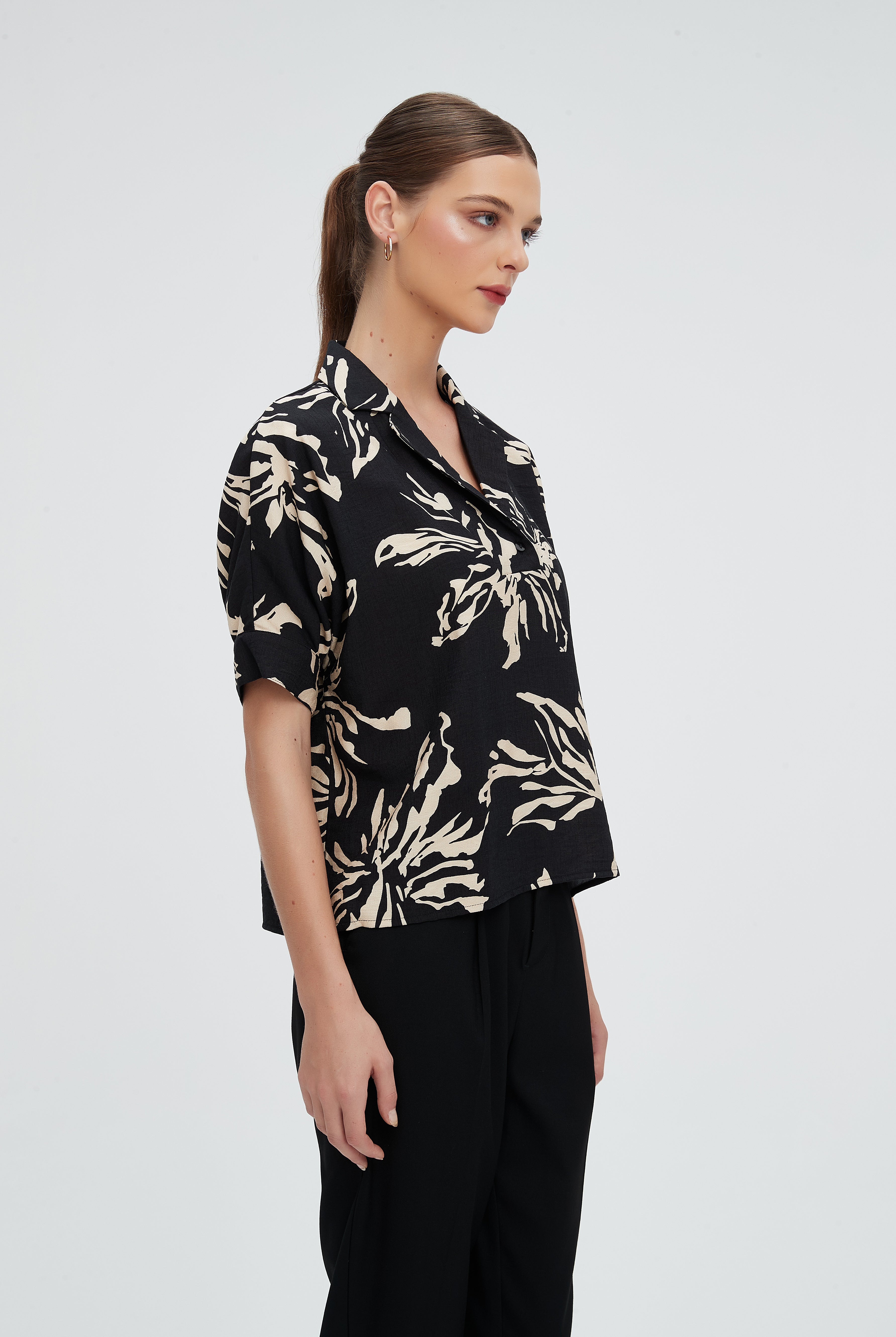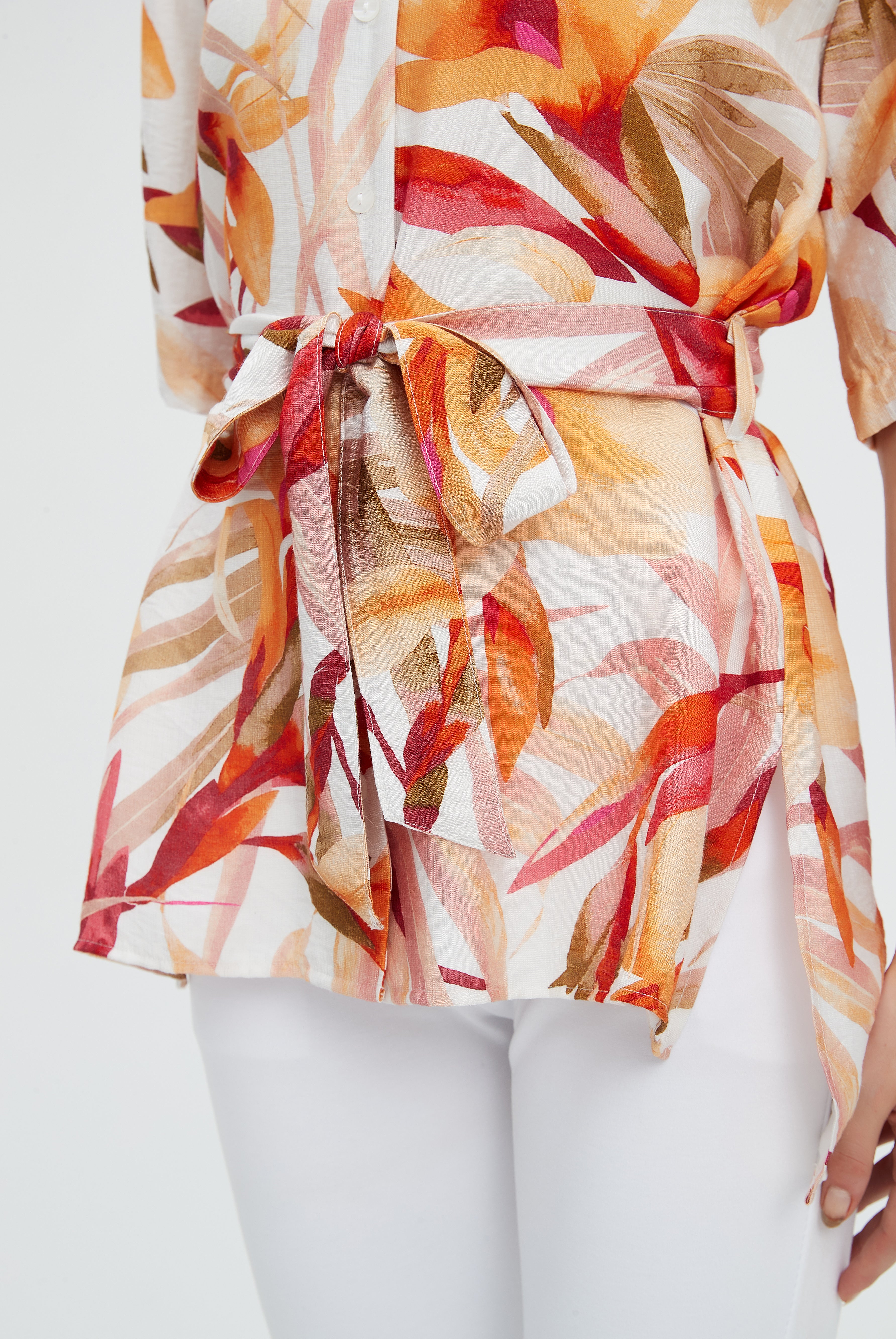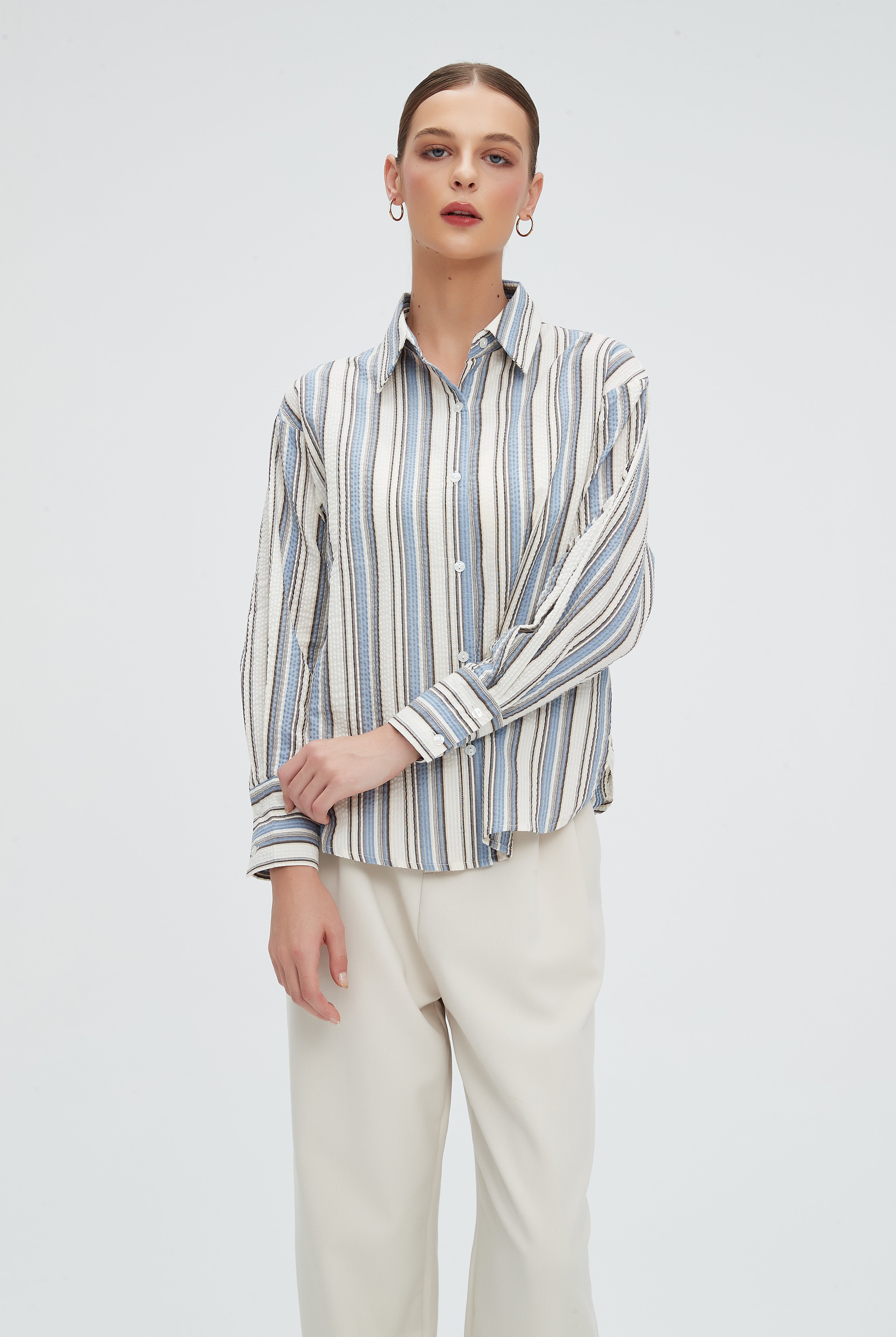 بلوزة نسائية كم طويل بلوزة بطول الخصر مشجرة بتفاصيل شيفون وفتحة رقبة دائرية