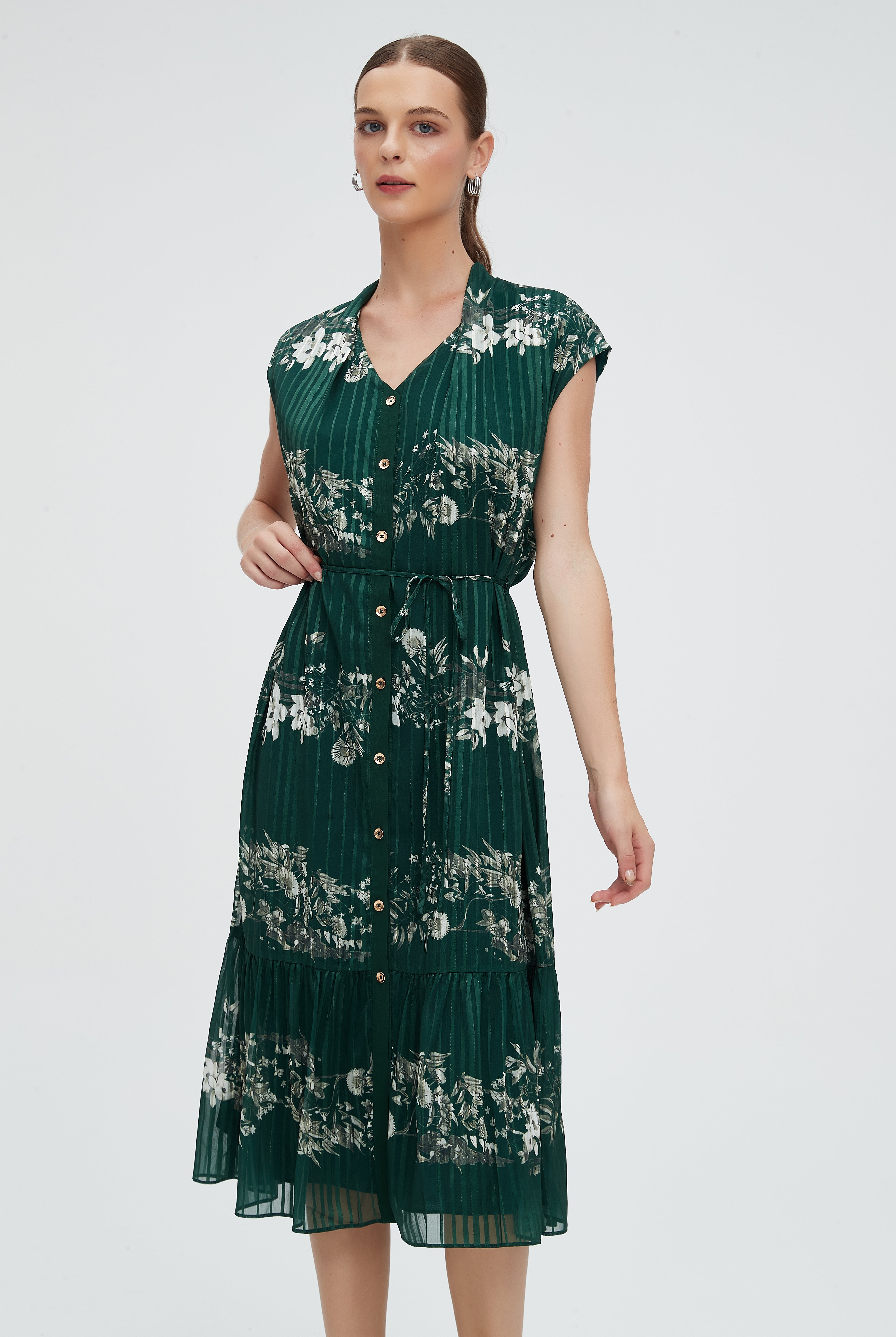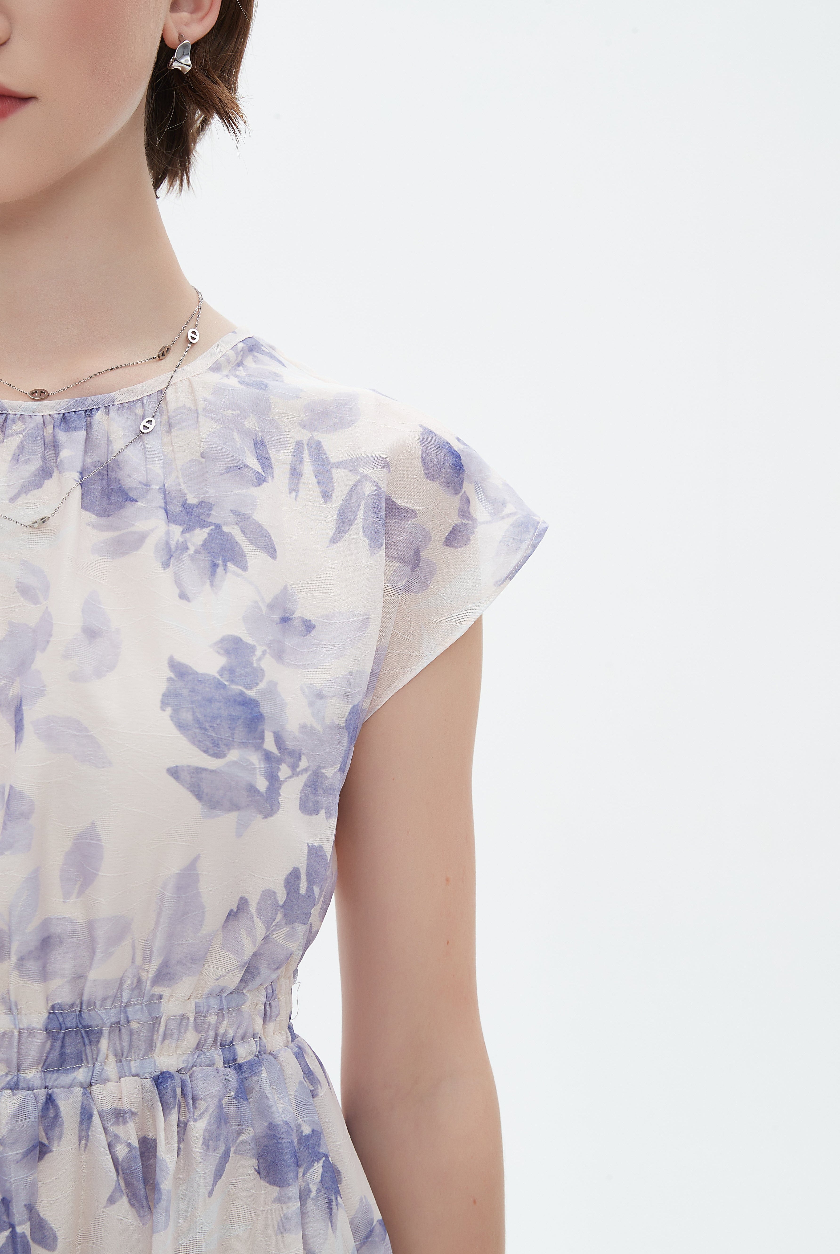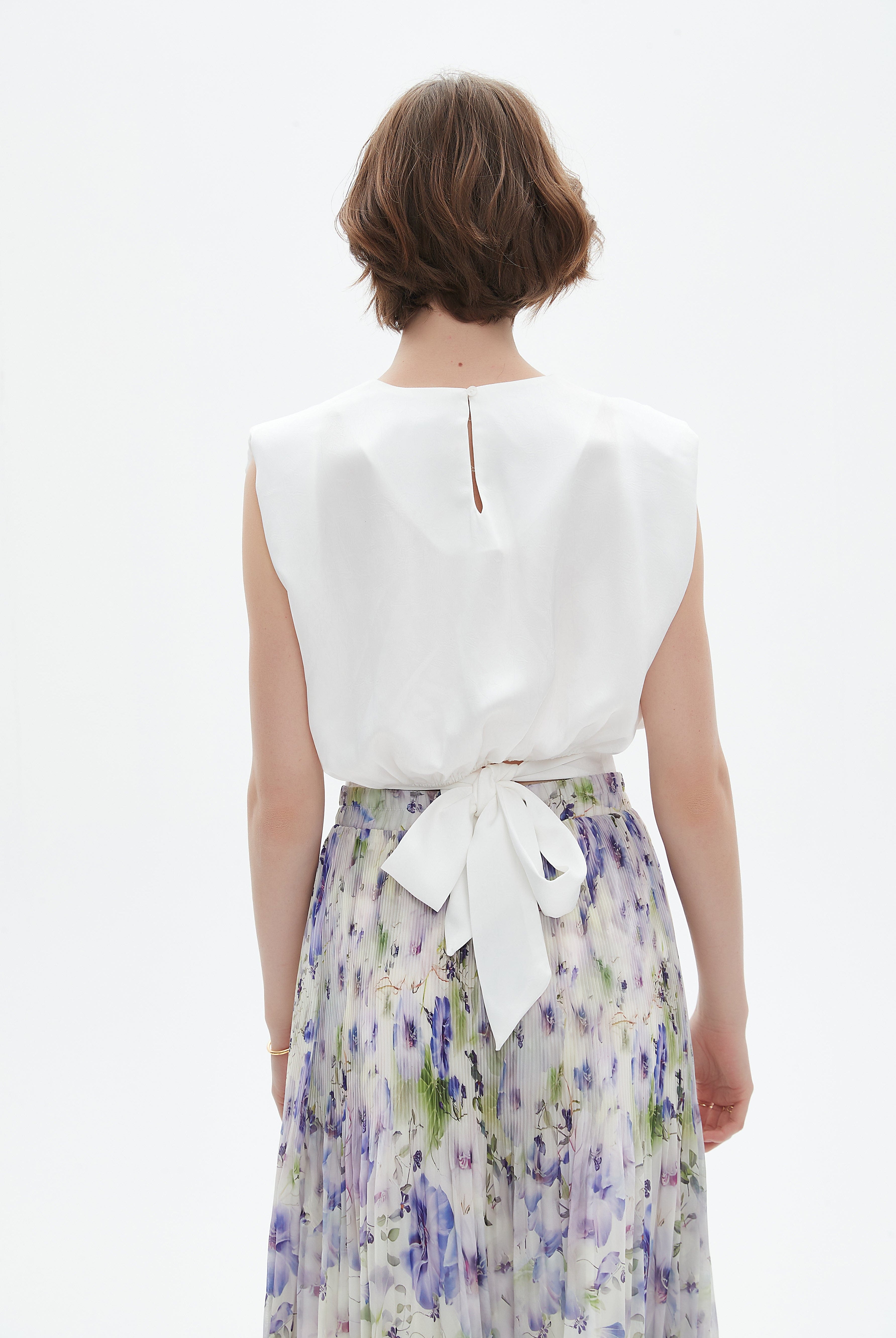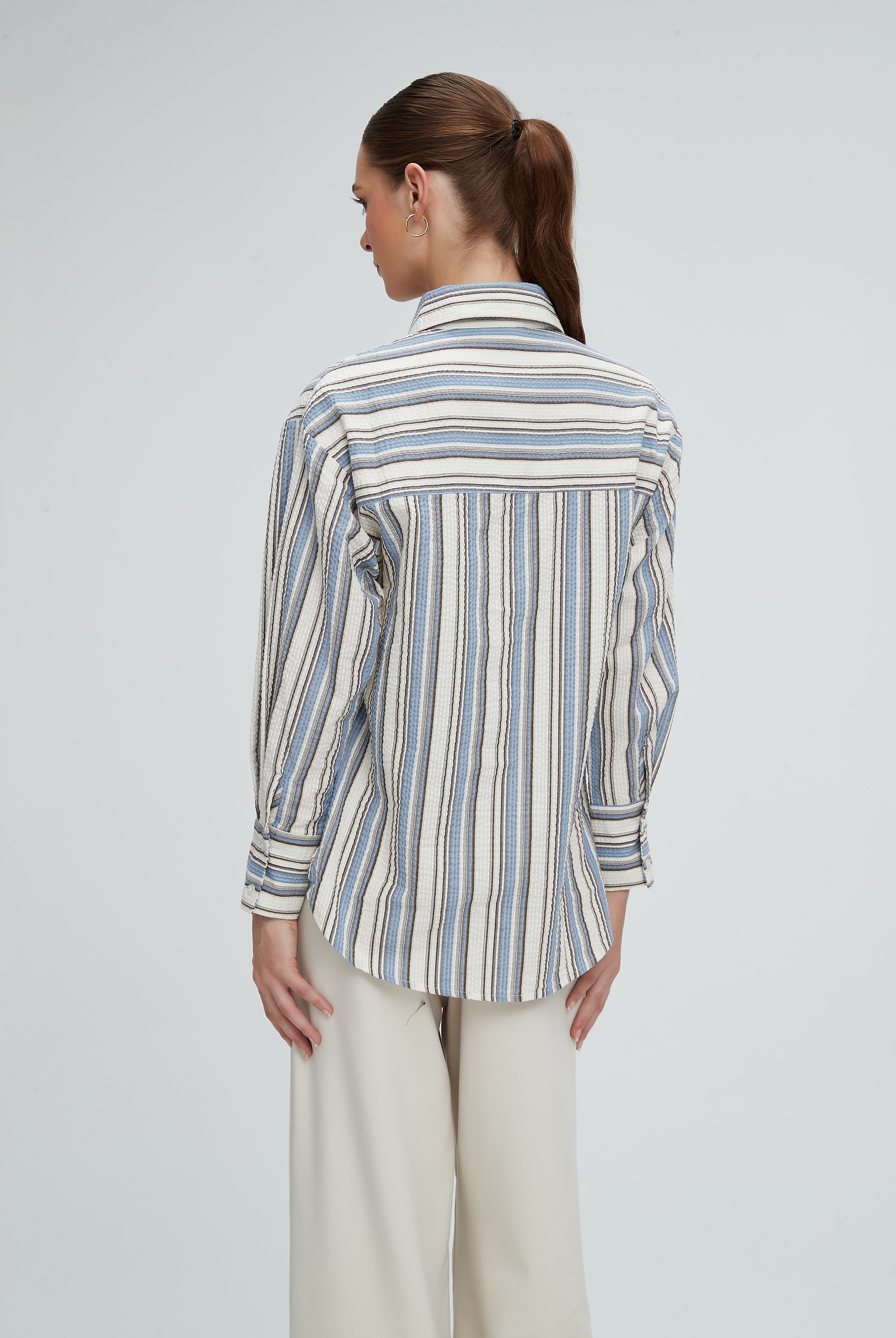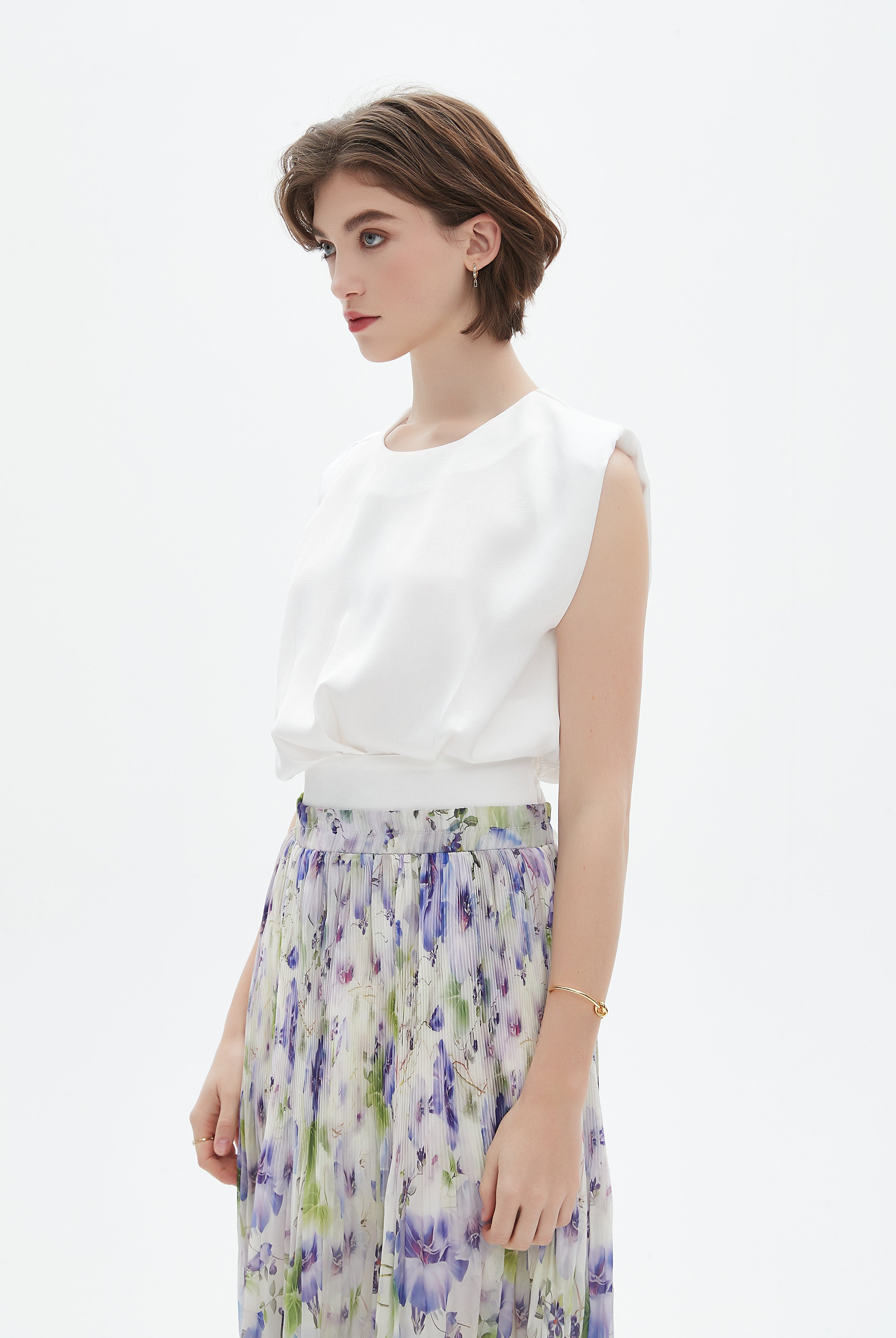 بلوزة نسائية كم طويل بلوزة بطول الخصر مشجرة بتفاصيل شيفون وفتحة رقبة دائرية
