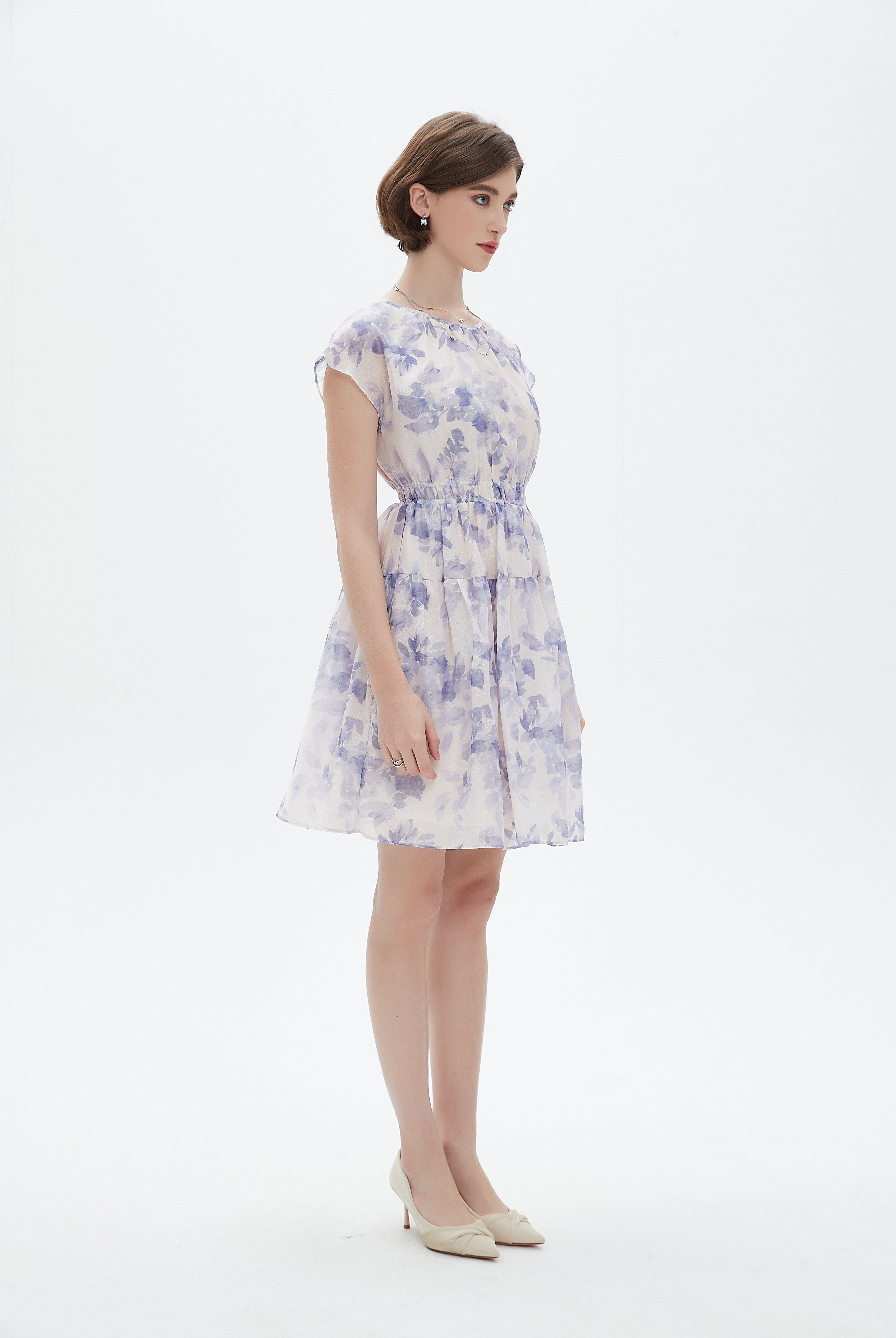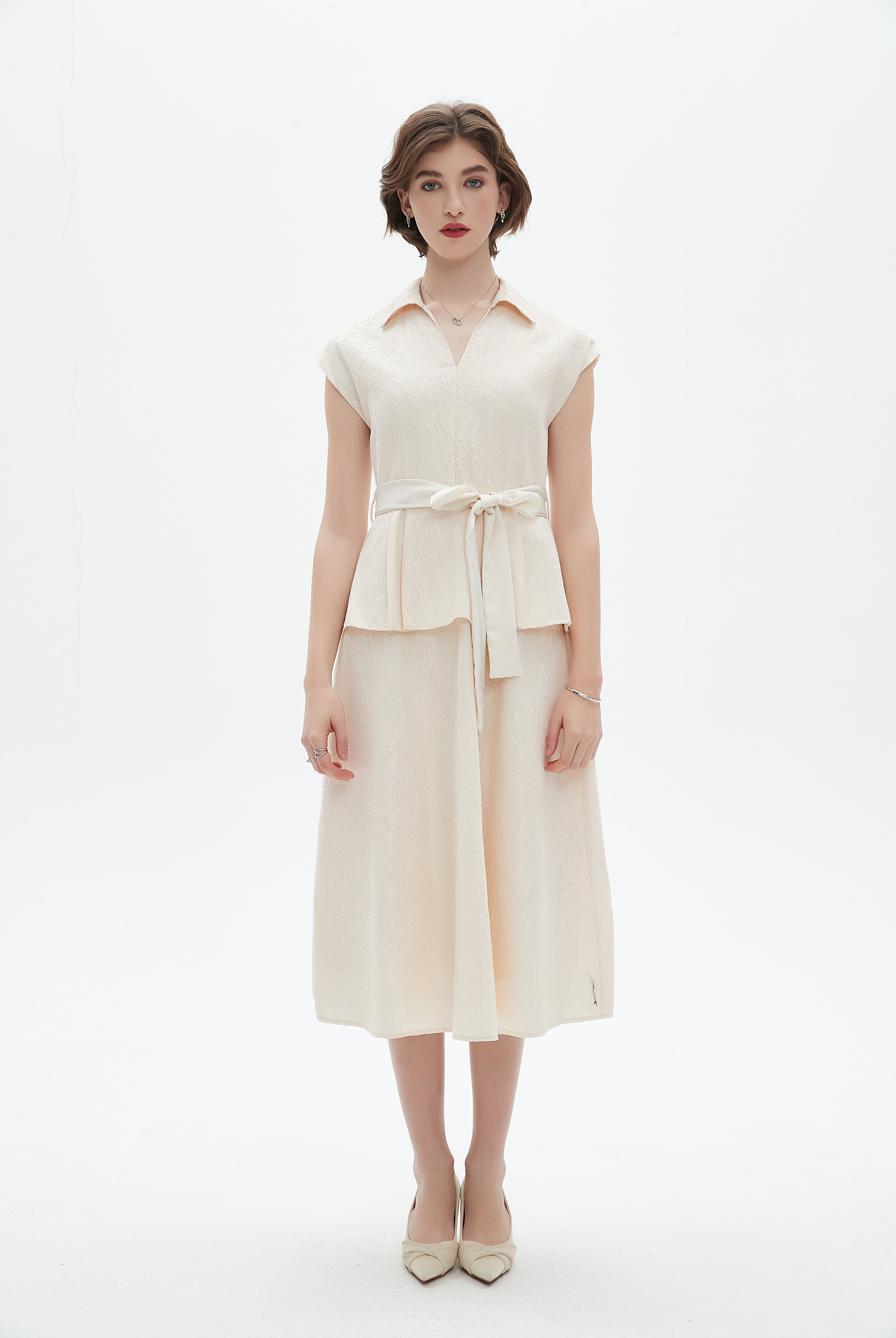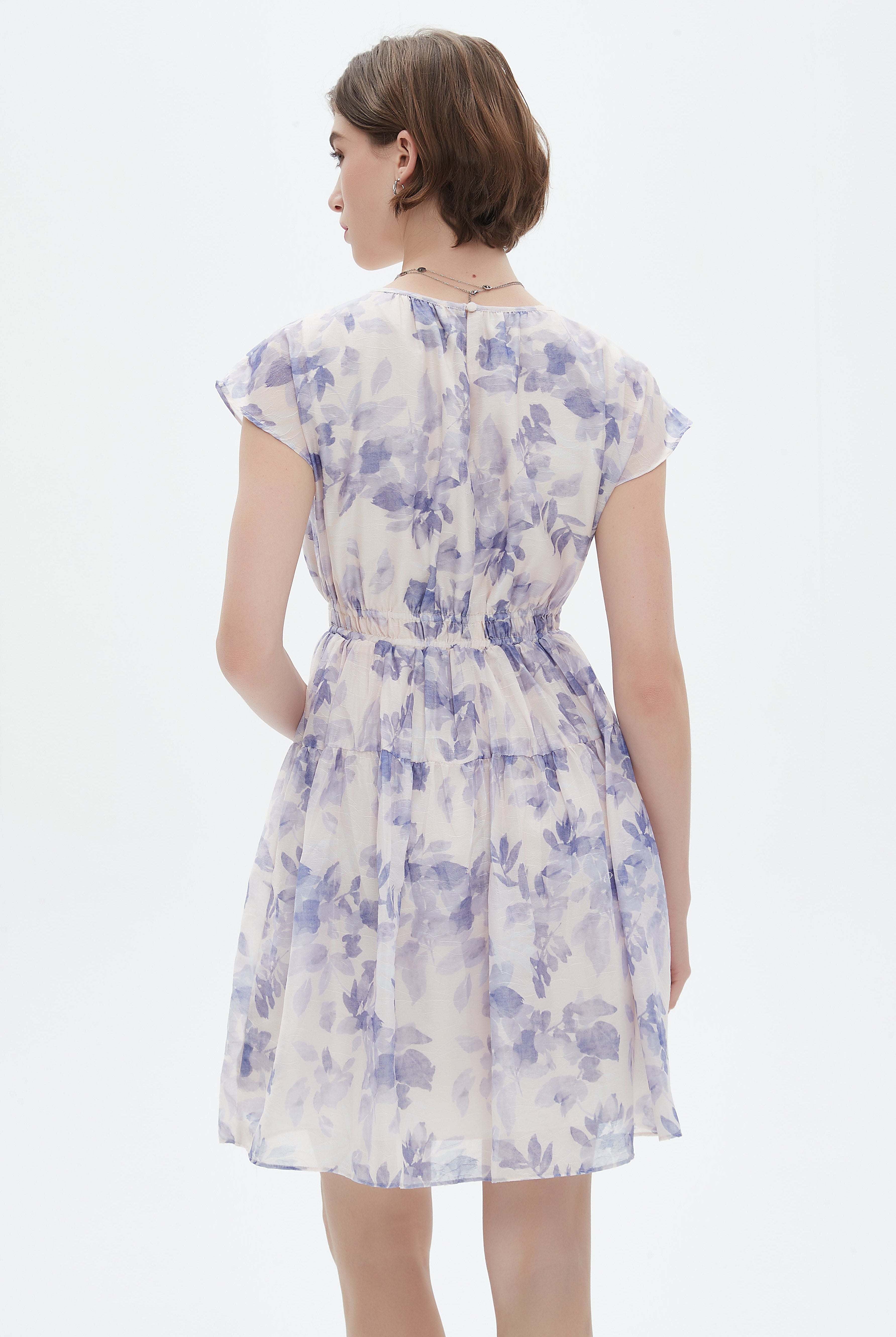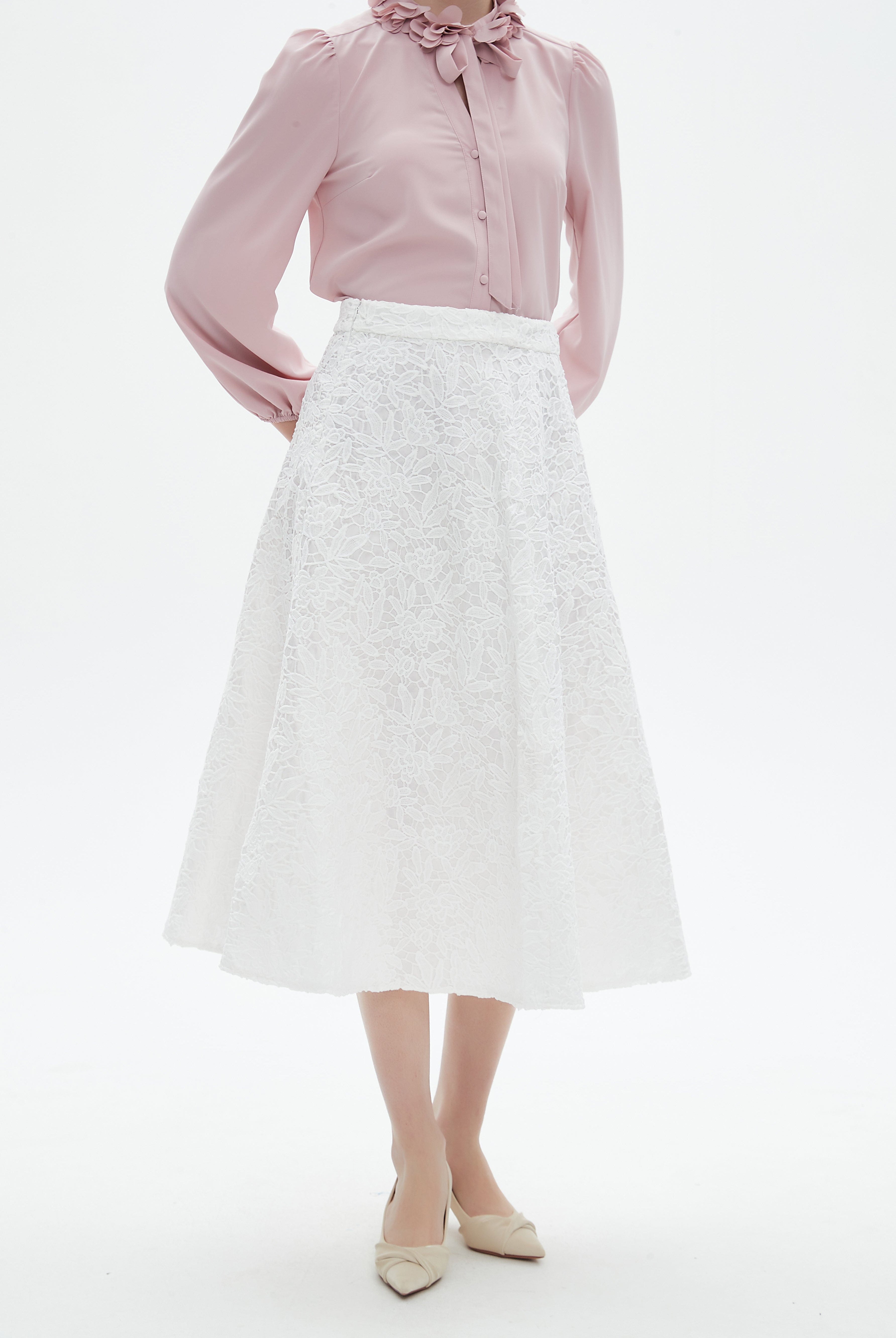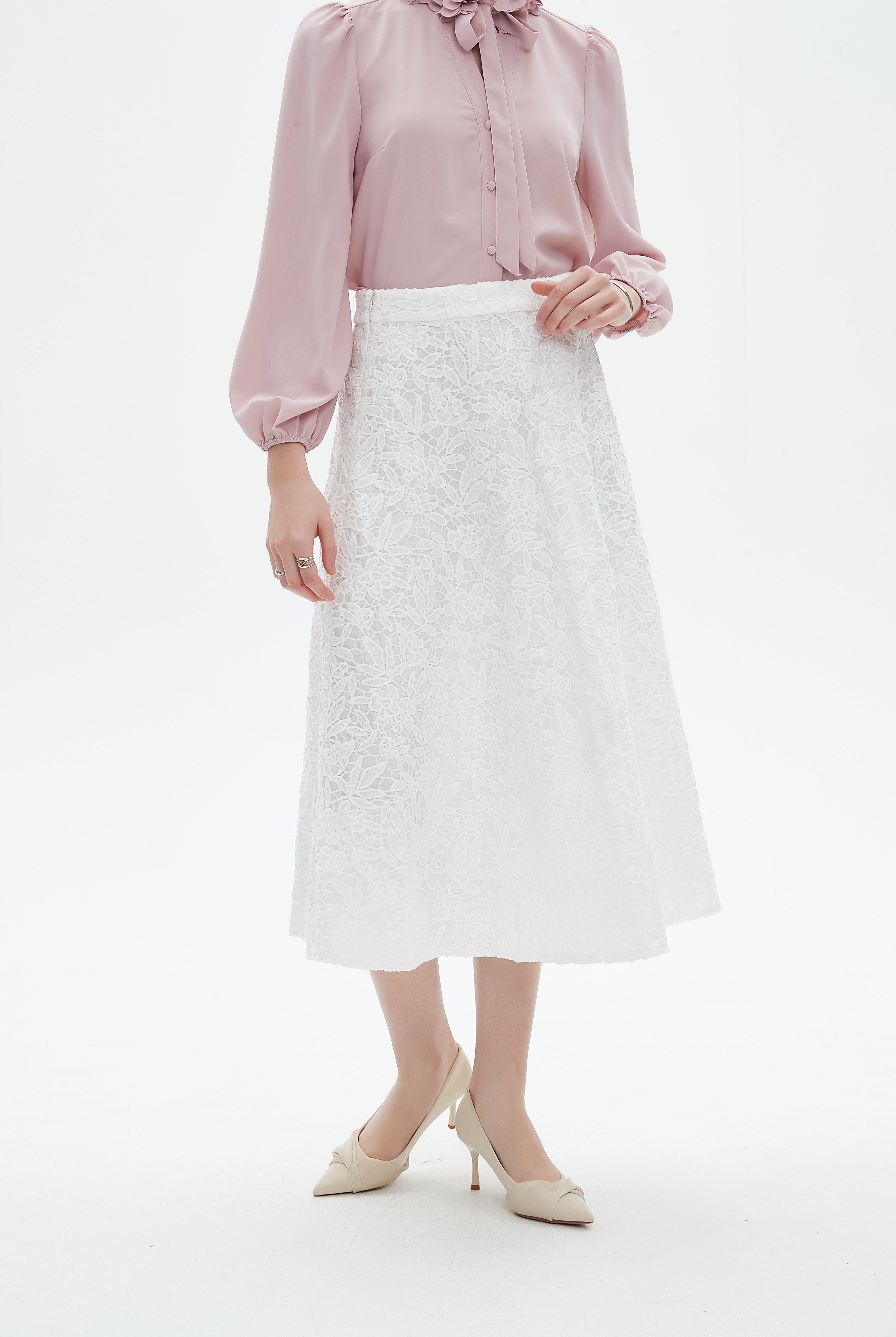 بلوزة نسائية كم طويل بلوزة بطول الخصر مشجرة بتفاصيل شيفون وفتحة رقبة دائرية