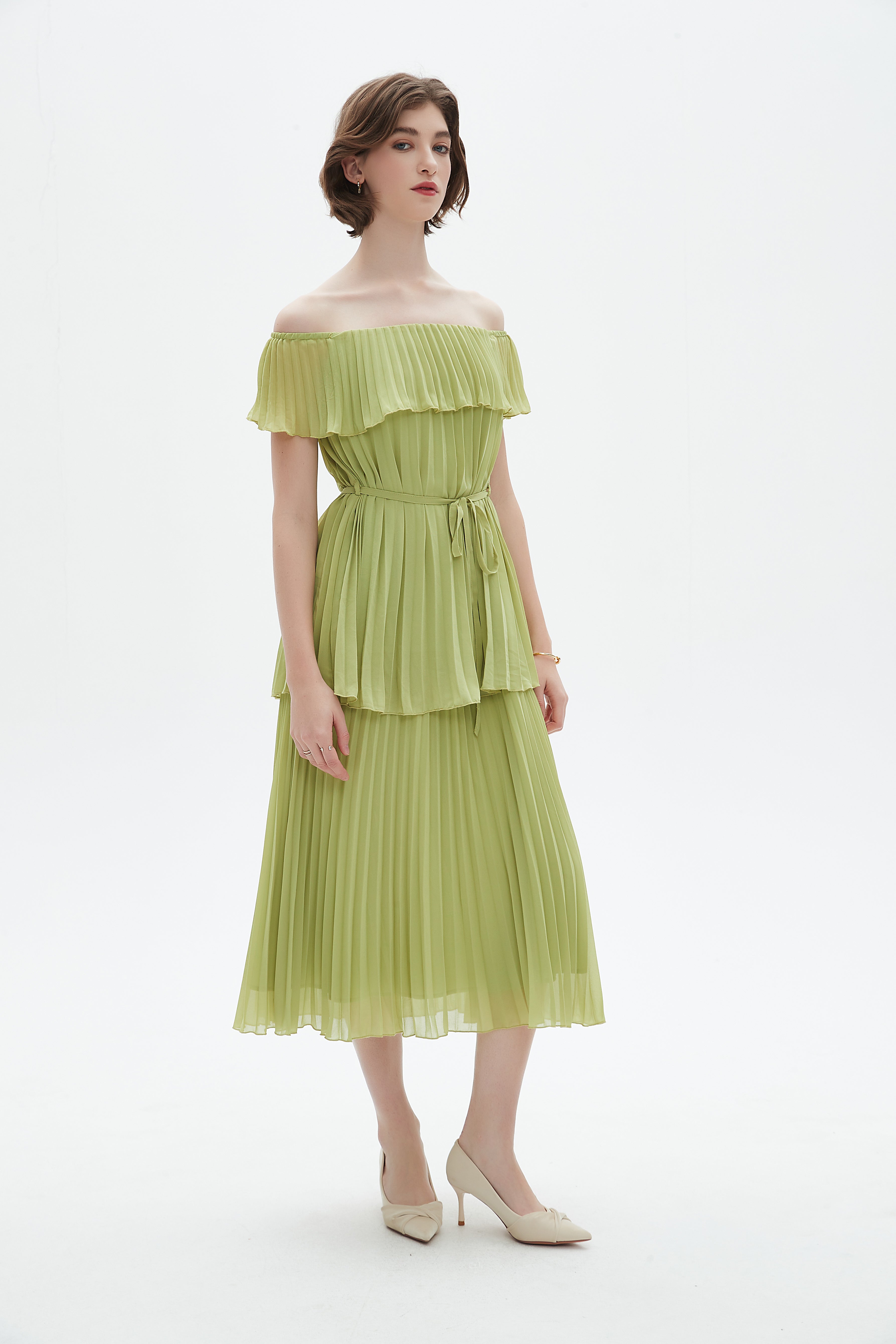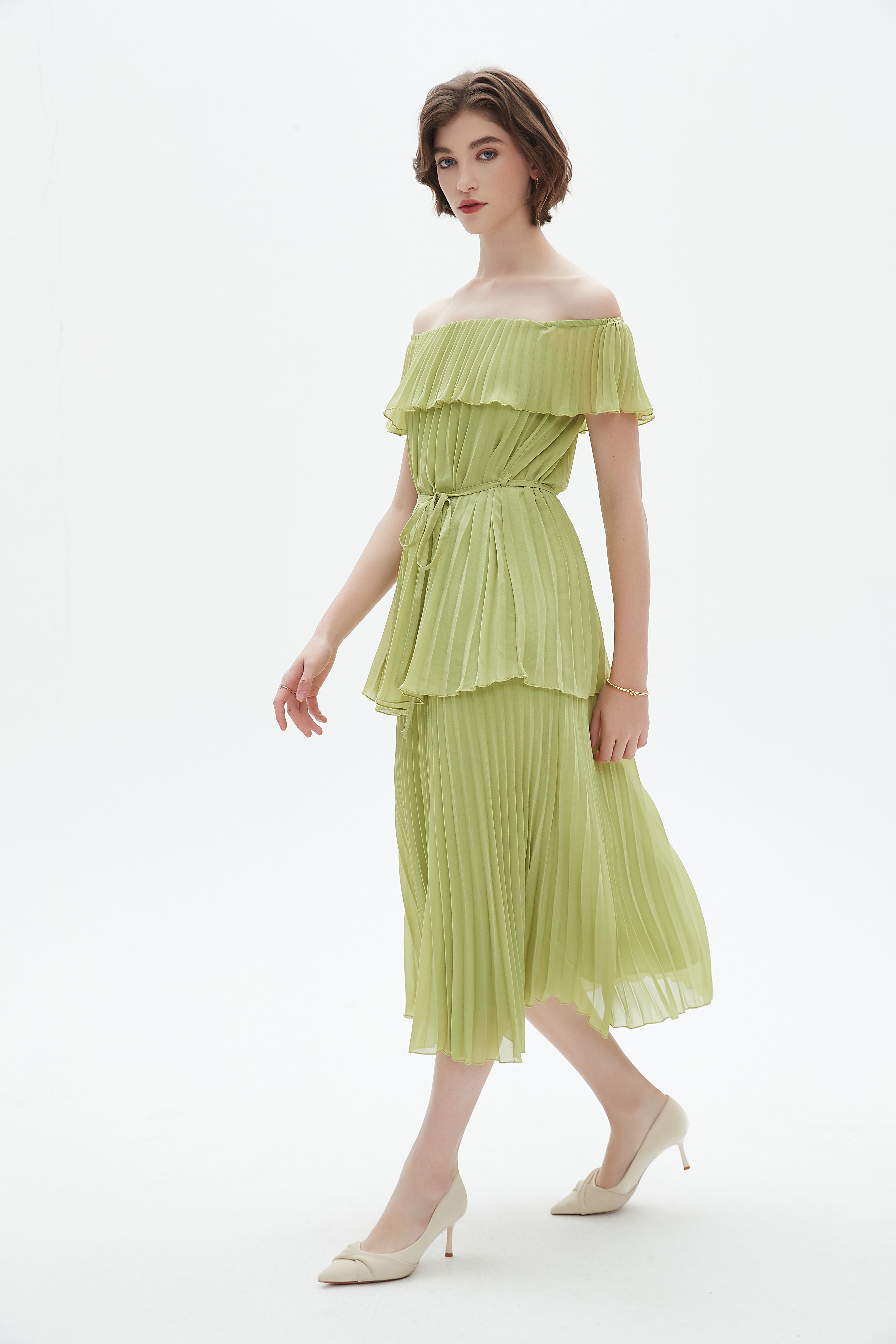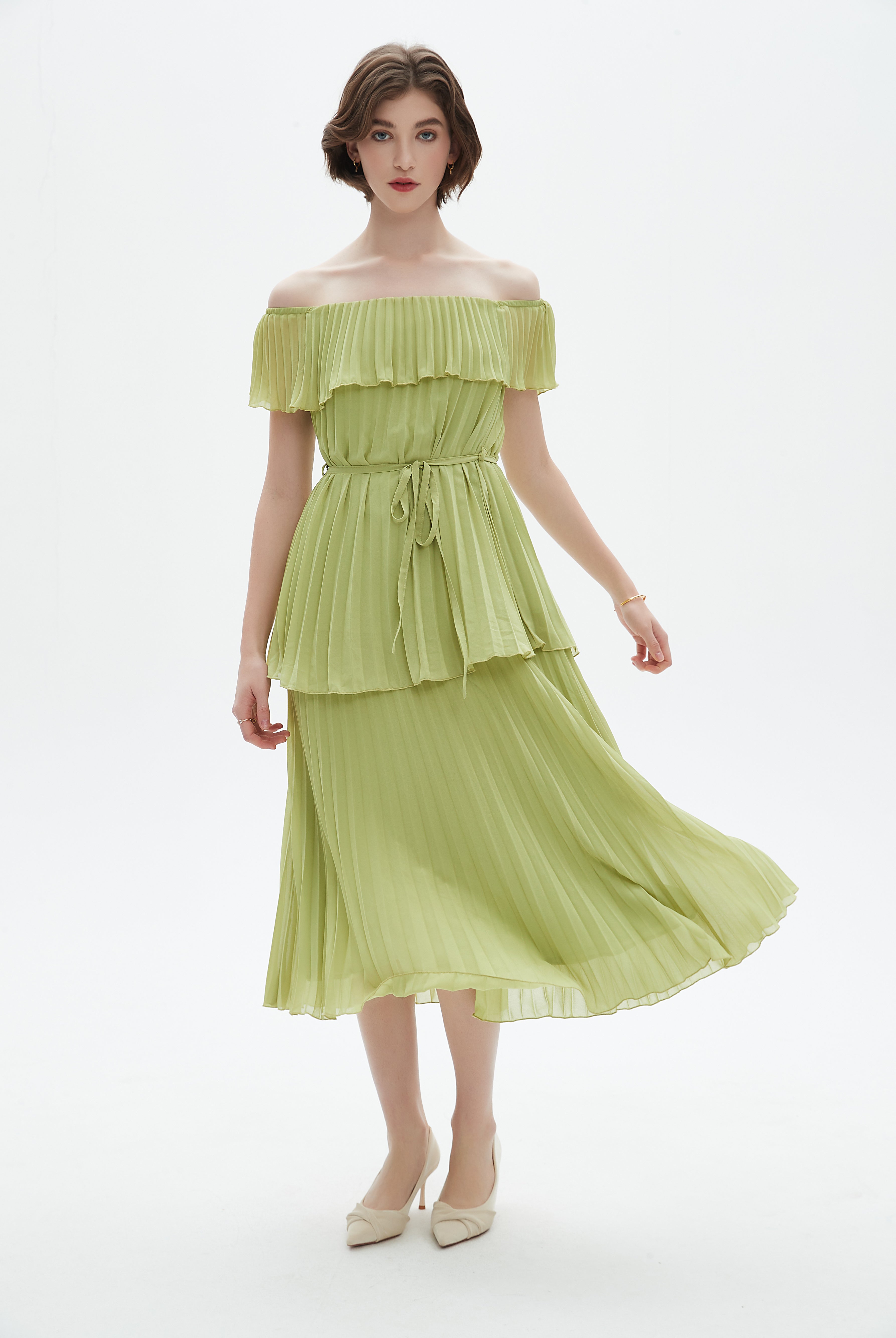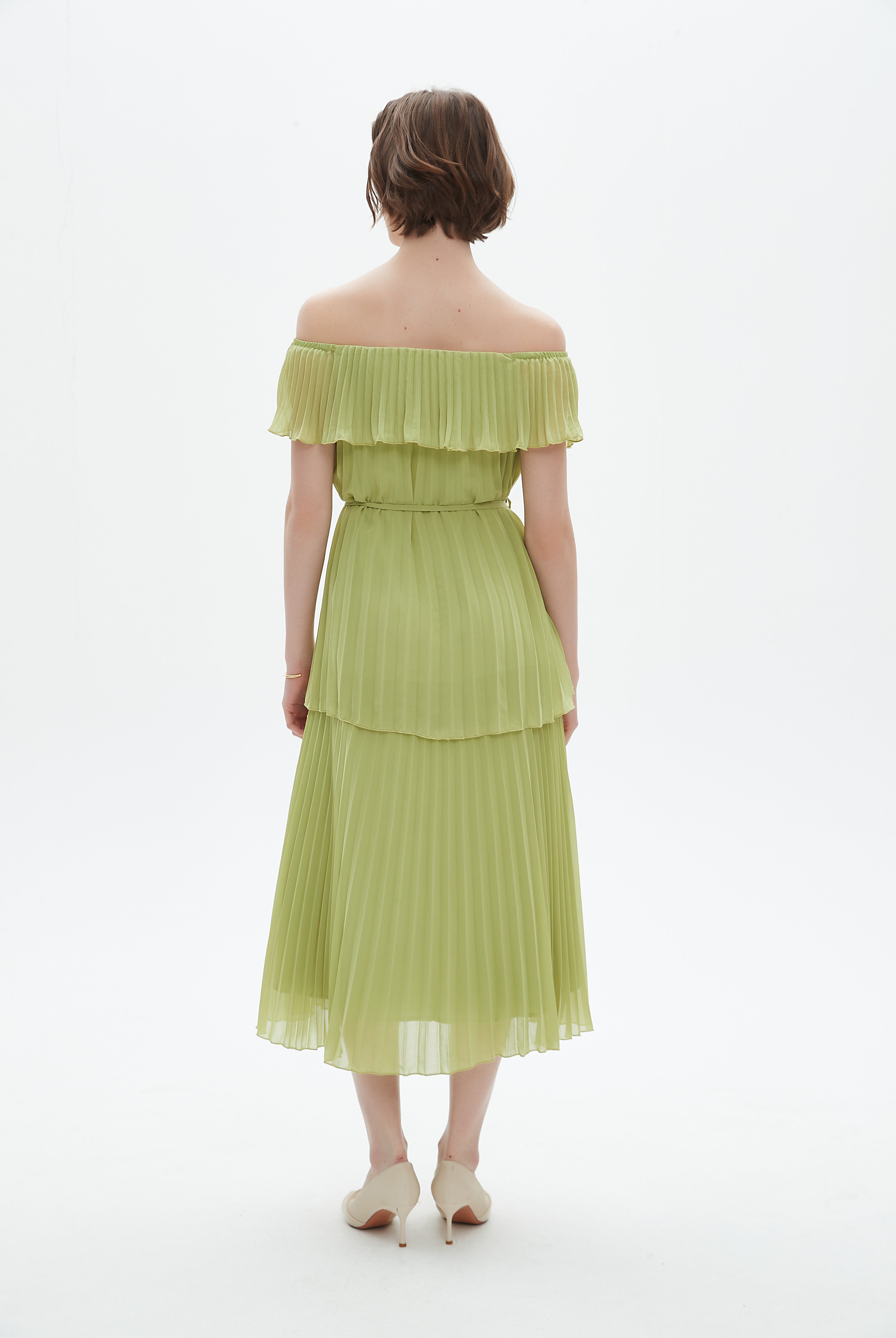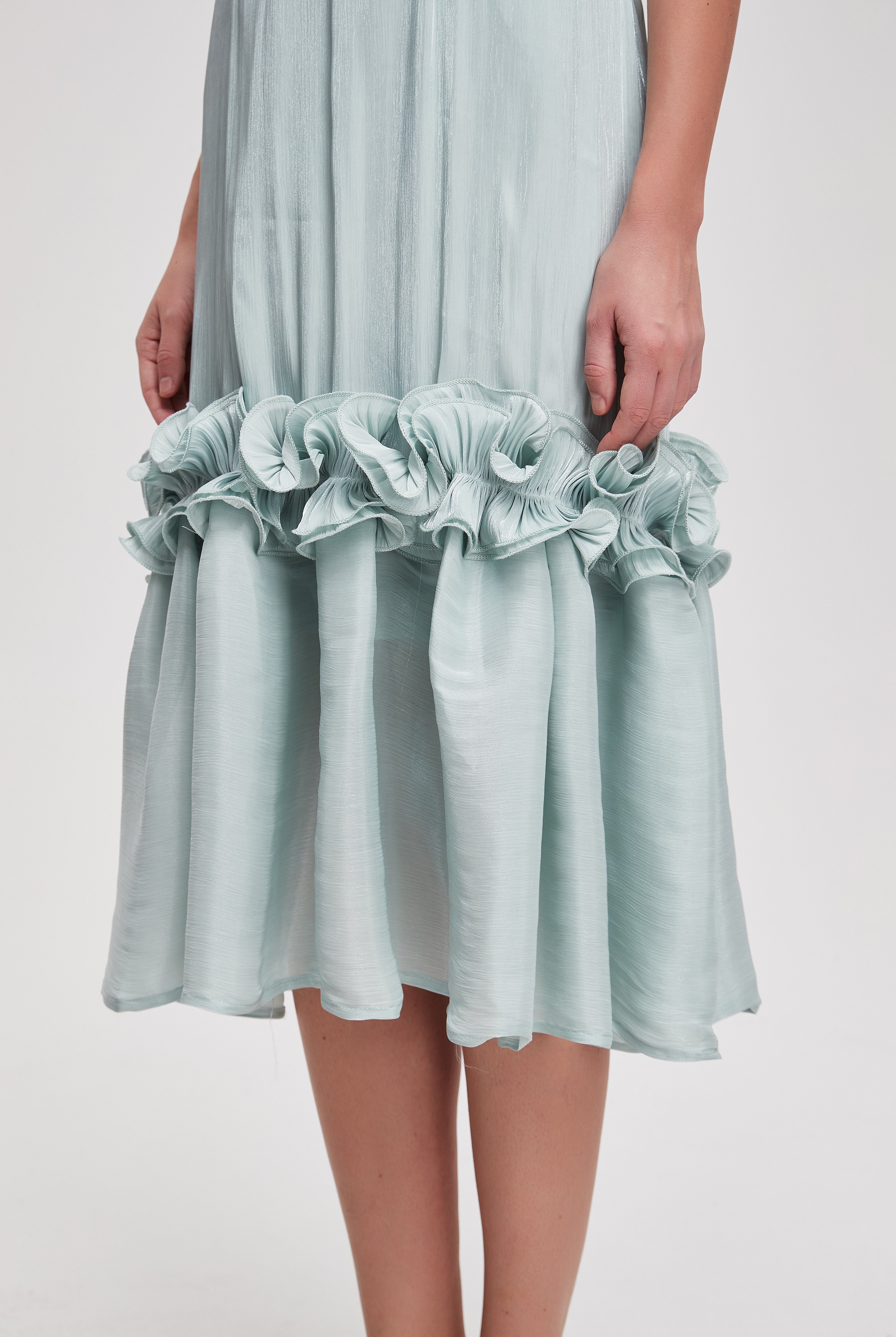 فستان ميدي مكشكش حمالات