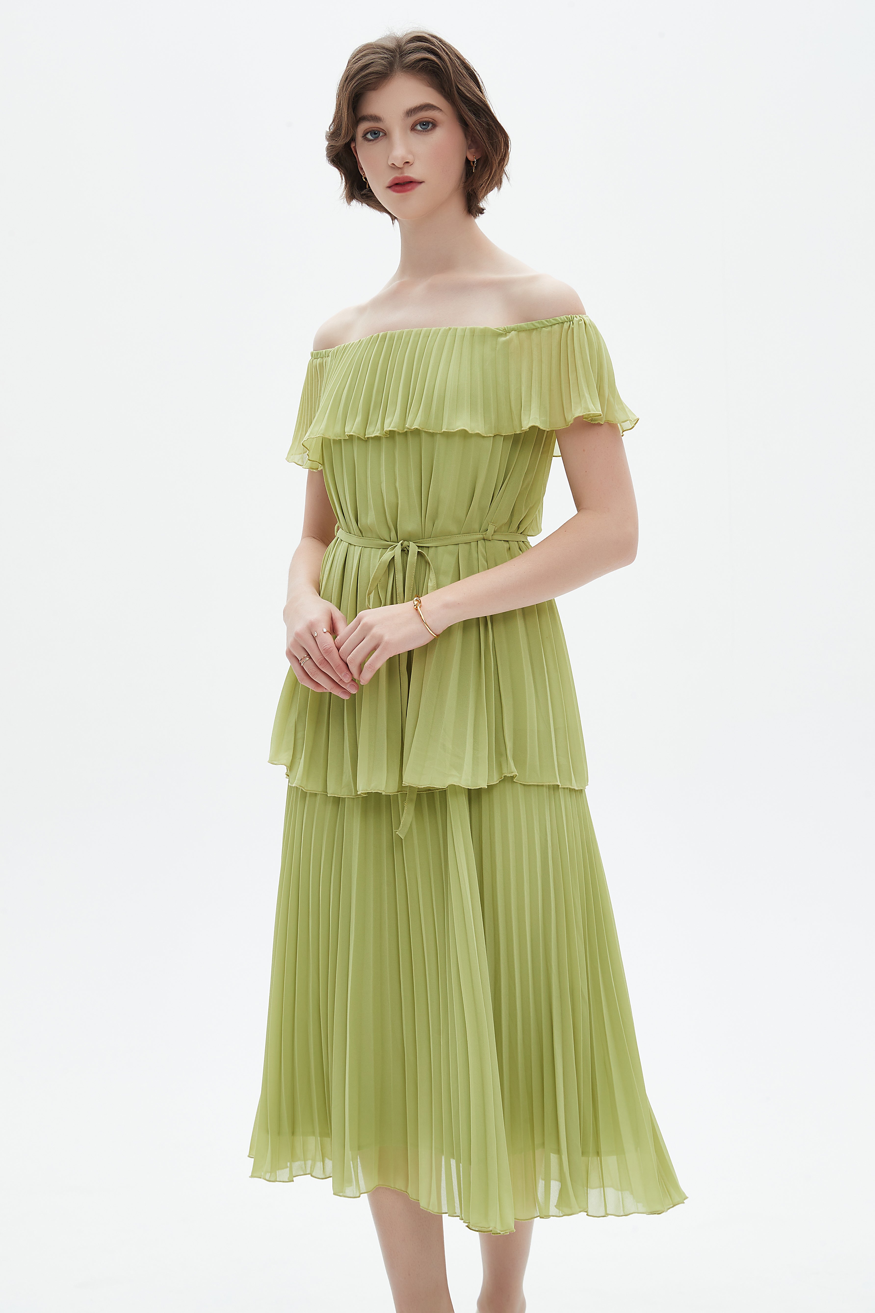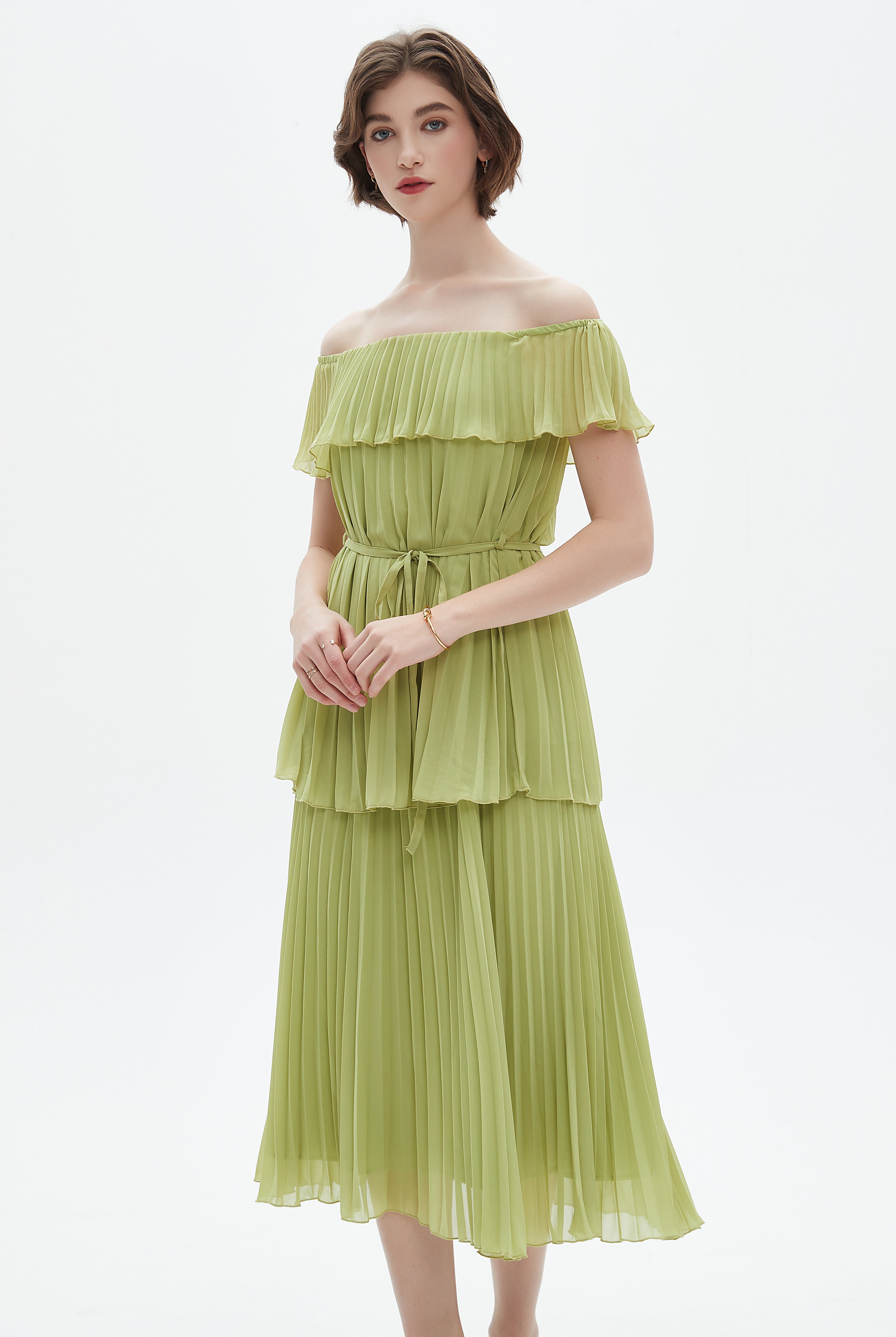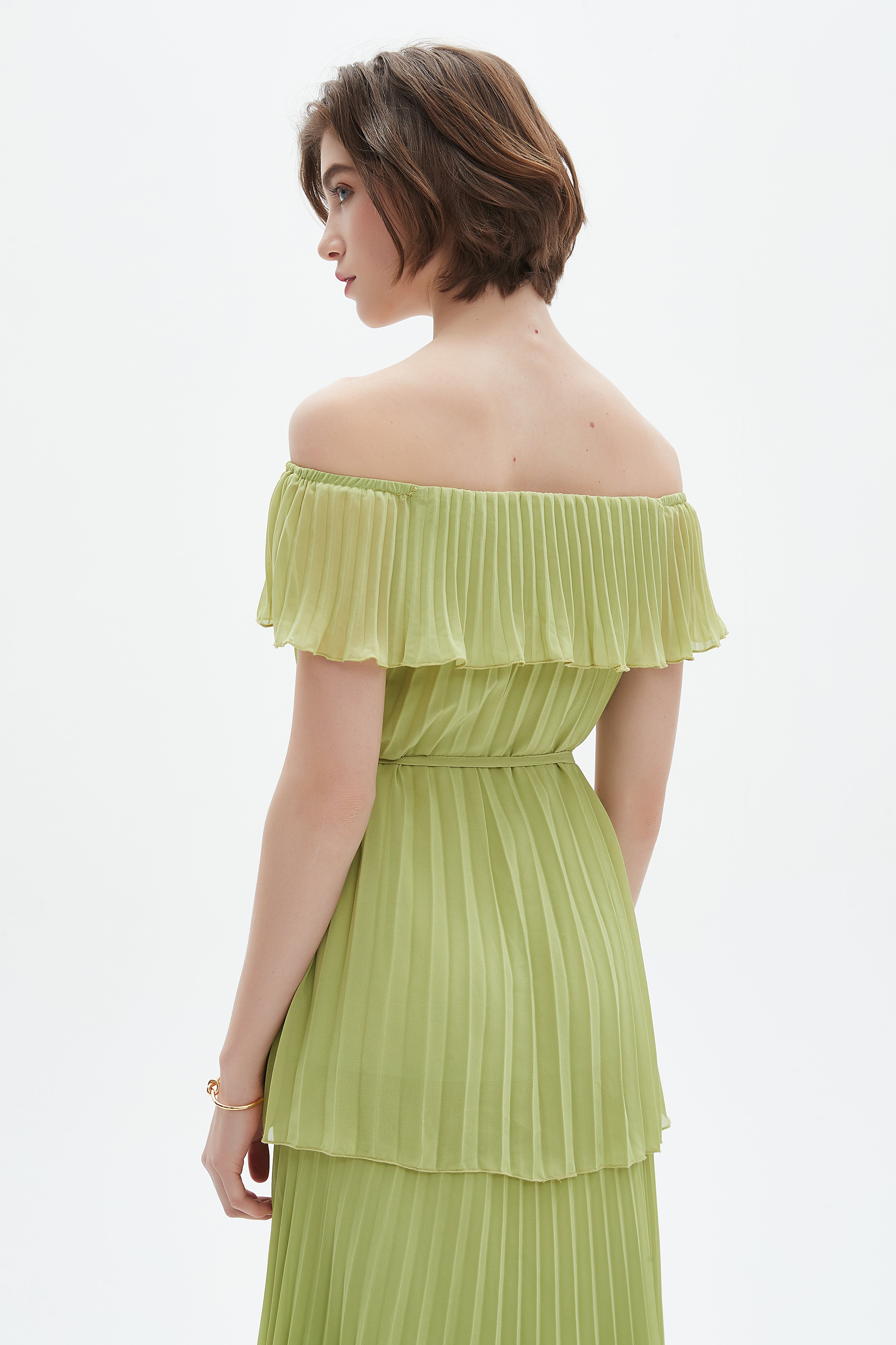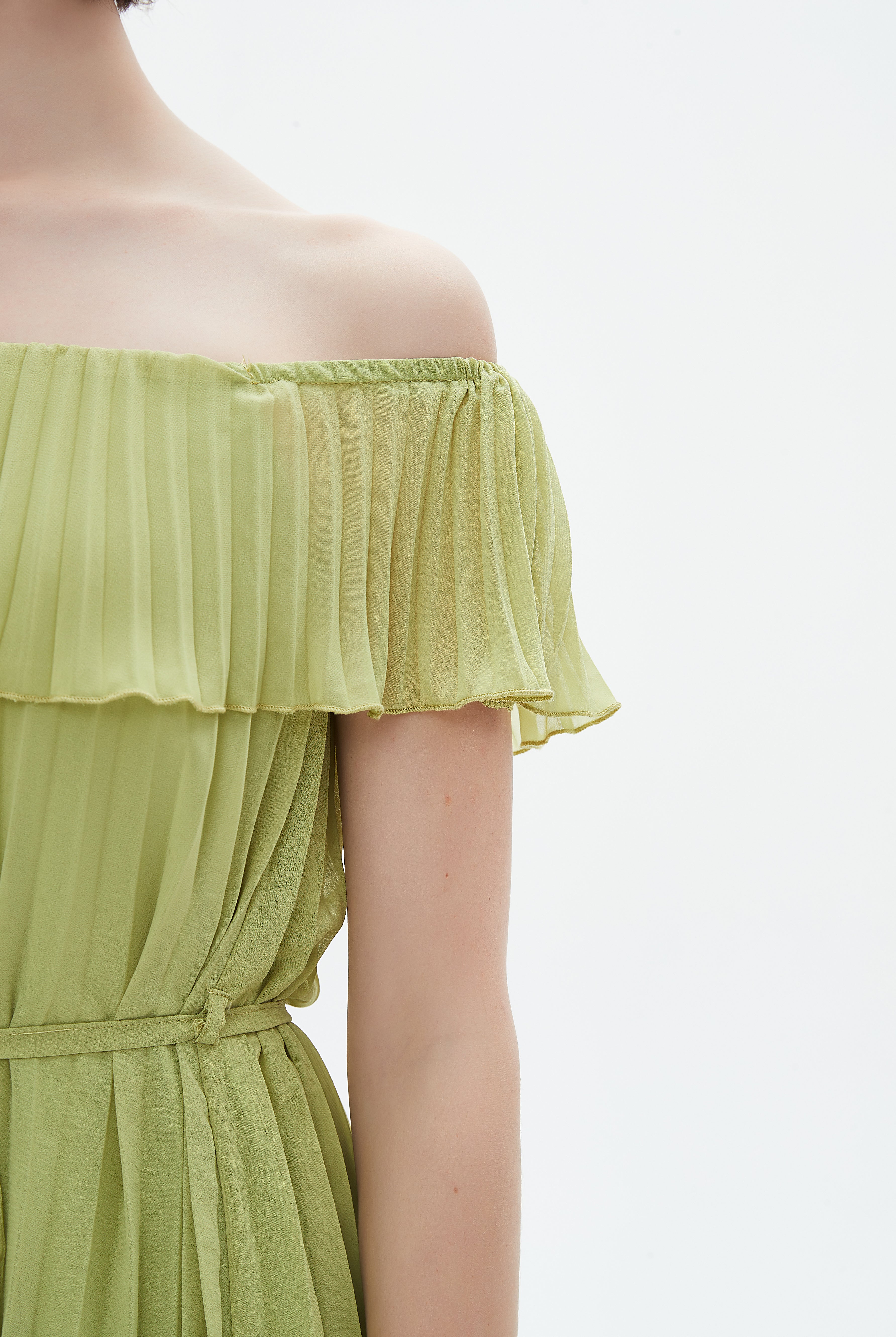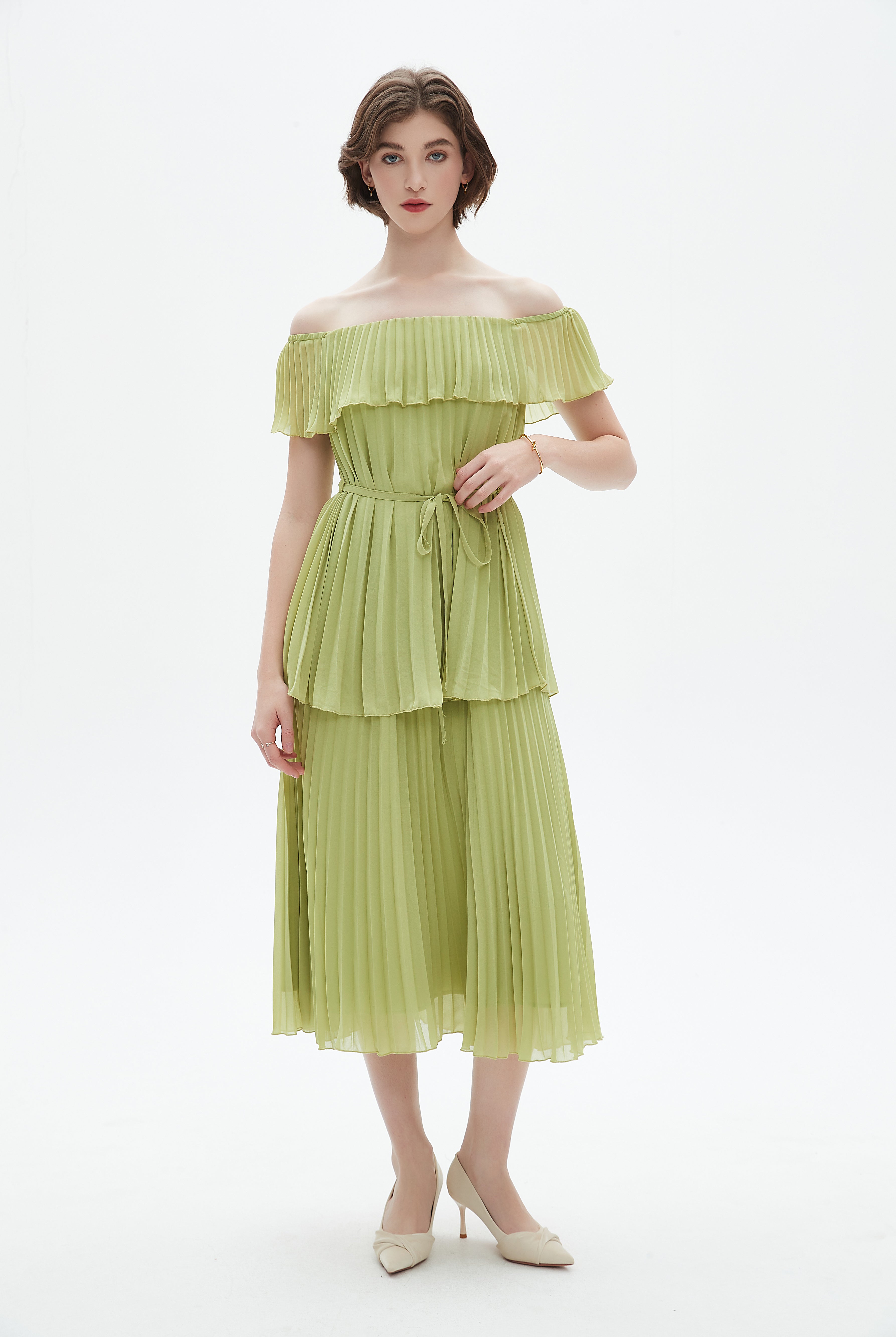 فستان ميدي مكشكش حمالات