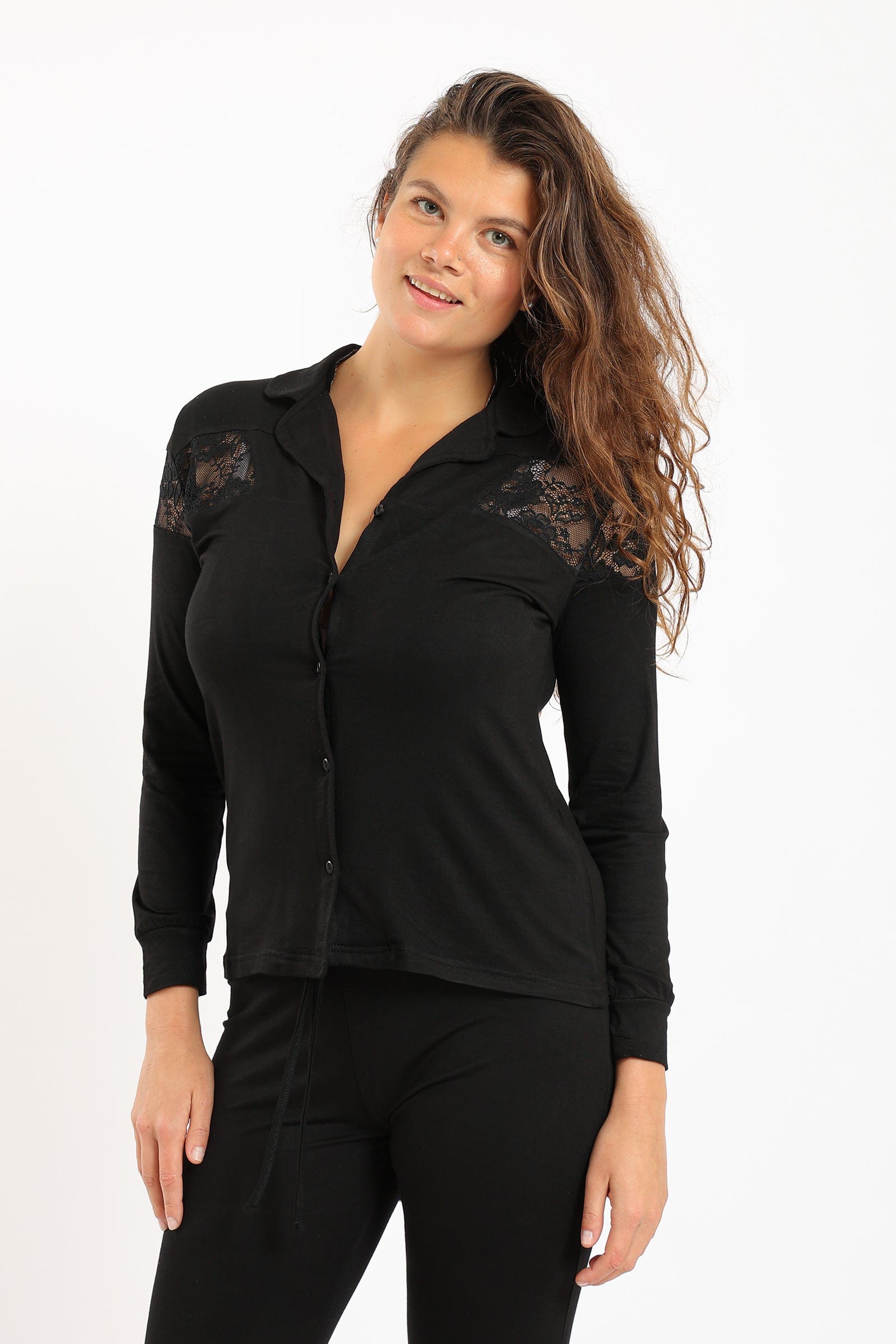 استعدي للراحة والأناقة مع طقم بيجامة قميص بياقة مدببة بأزرار أمامية وبنطلون من كارينا. يأتي هذا الطقم بتصميم أنيق ومريح يجمع بين الجمال والراحة. يتميز القميص بياقة مدببة وأزرار أمامية تضفي لمسة جمالية على الطقم. البنطلون مريح وواسع لضمان الراحة طوال اليوم. يتوفر الطقم بثلاثة ألوان رائعة: أسود، أوف وايت، ووردي. اختاري اللون الذي يناسب ذوقك الفريد واستمتعي بالأناقة والراحة في نفس الوقت. احصلي الآن على طقم بيجامة قميص بياقة مدببة بأزرار أمامية وبنطلون من كارينا وكني أنيقة ومرتاحة في كل الأوقات. اطلبيه الآن عبر فاشن السعودية! Experience the ultimate comfort and style with the Carina women's pajama set. This set includes a shirt with a pointed collar and front buttons, and matching pants. Available in three beautiful and versatile colors: black, off-white, and pink. The Carina pajama set is designed to provide a perfect fit and a chic look. Whether you're lounging at home or enjoying a good night's sleep, this set will keep you feeling cozy and fashionable. Upgrade your sleepwear collection and order the Carina women's pajama set now through Fashion. رقم المنتج: 54296