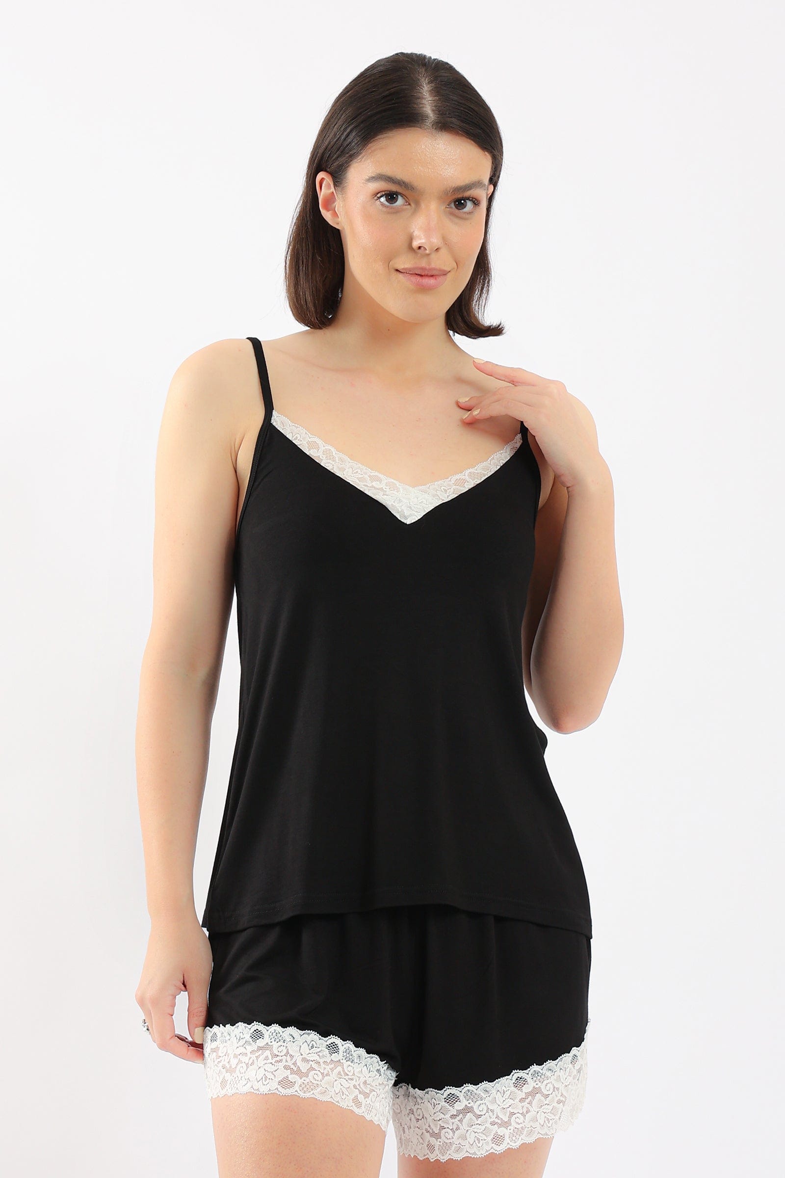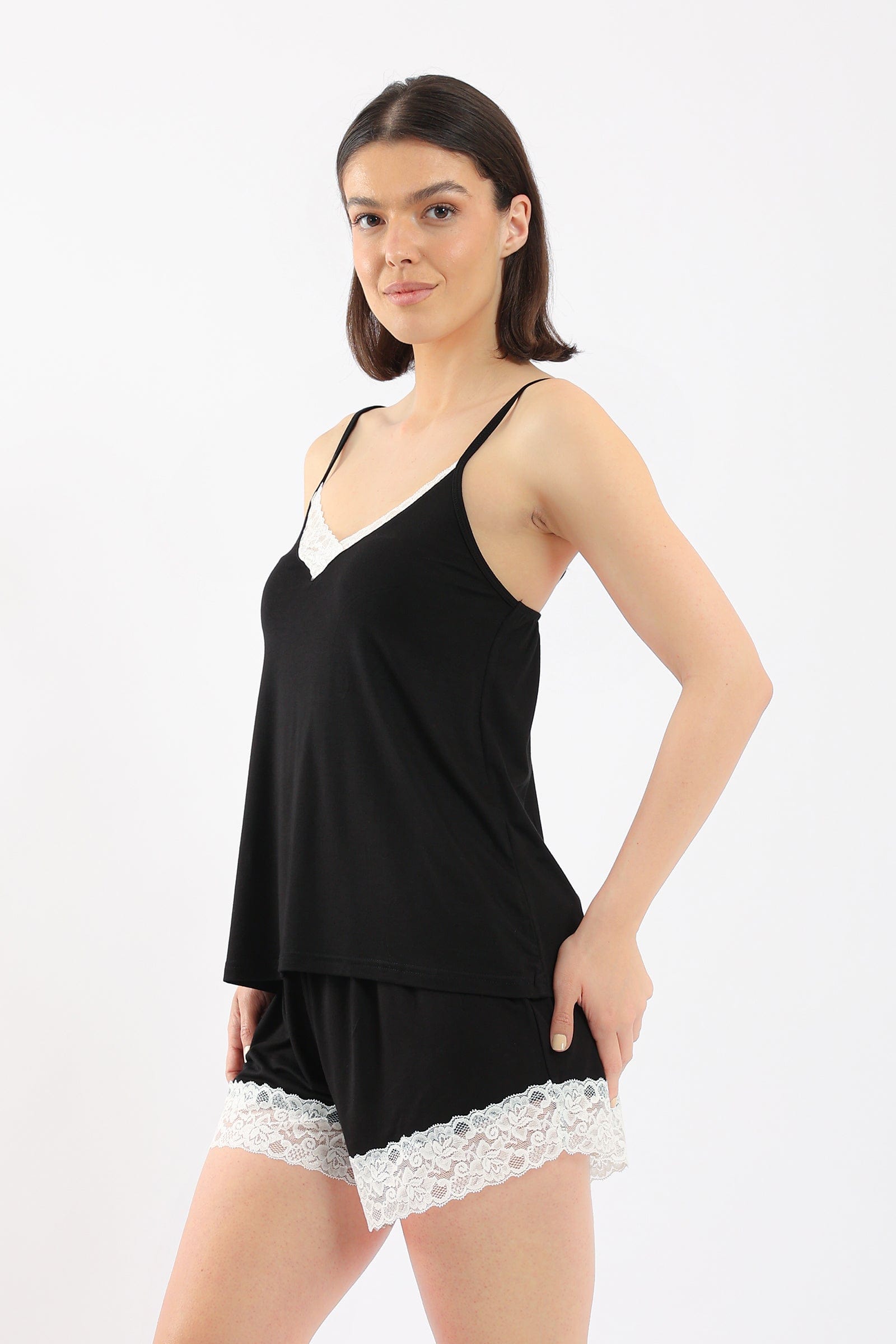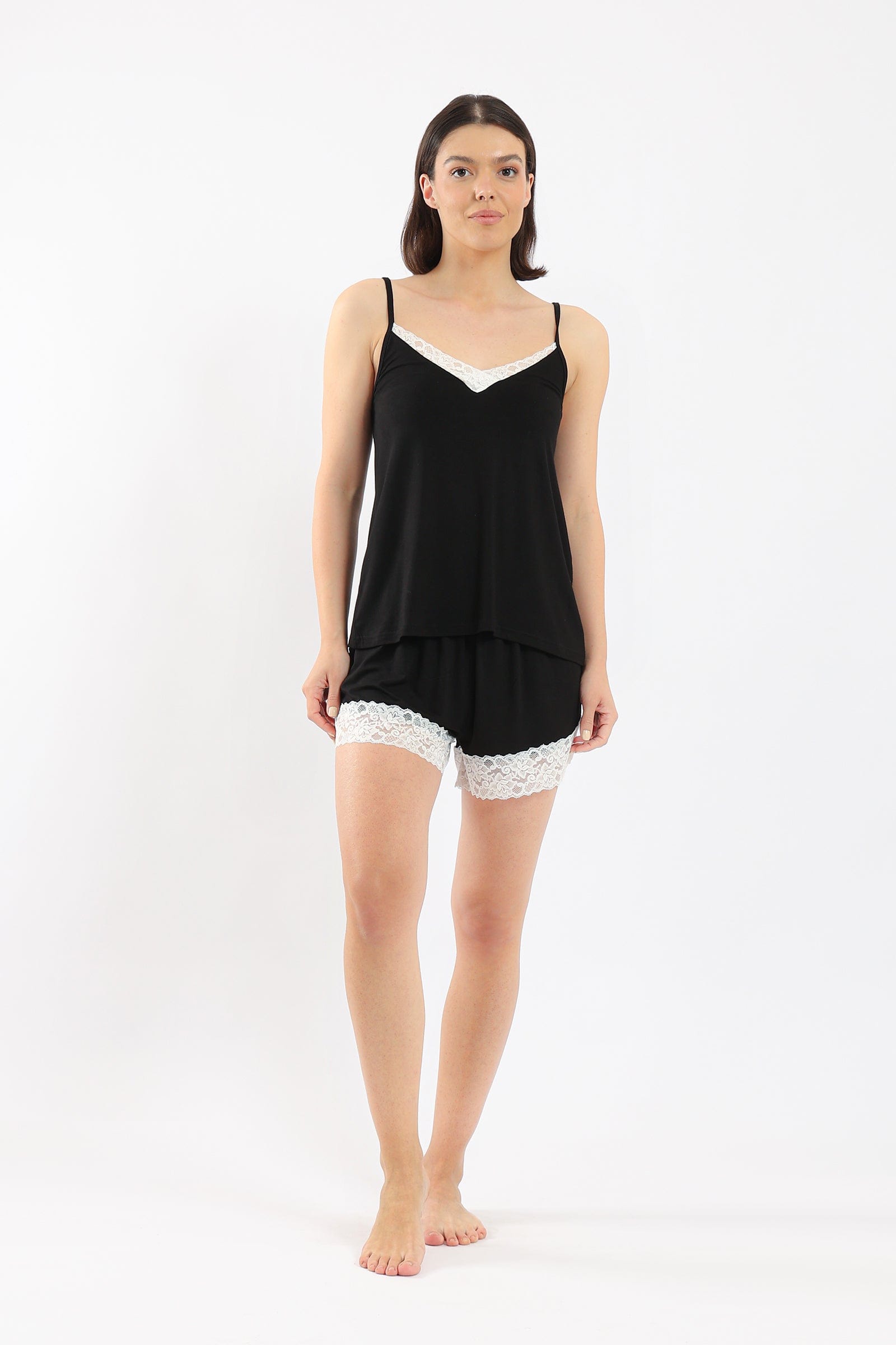 طقم بيجامة بلوزة وشورت بحافة دانتيل