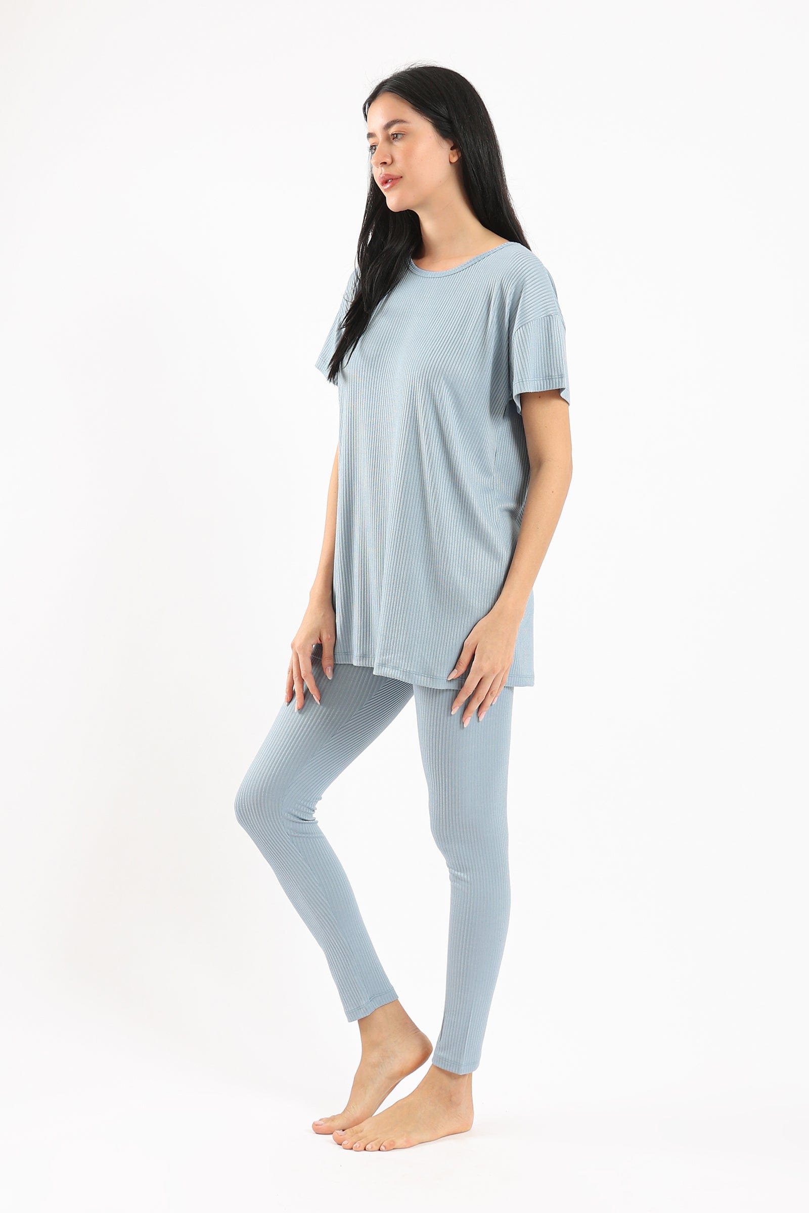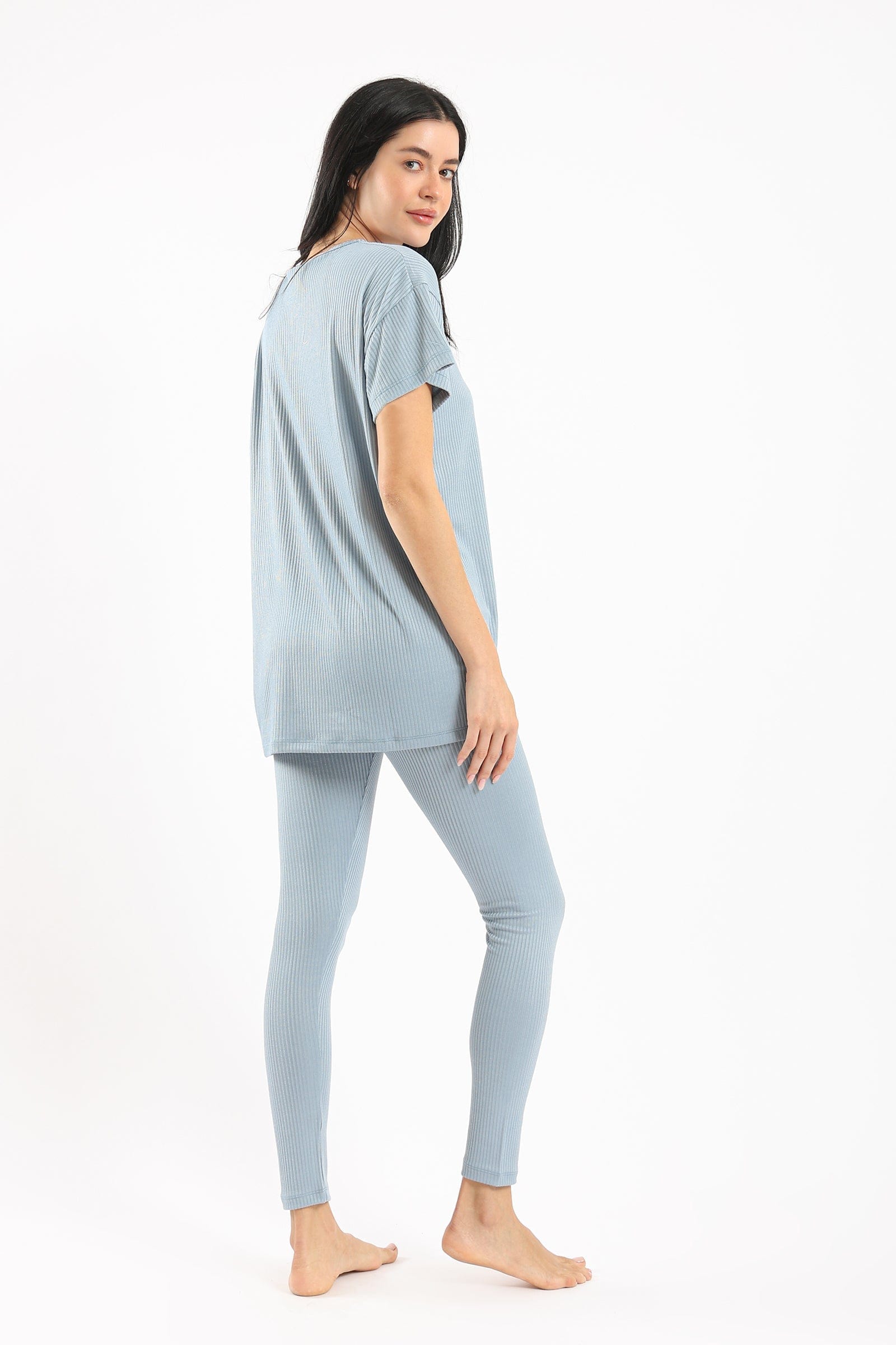 طقم بيجامة مضلع تيشيرت نص كم وبنطلون