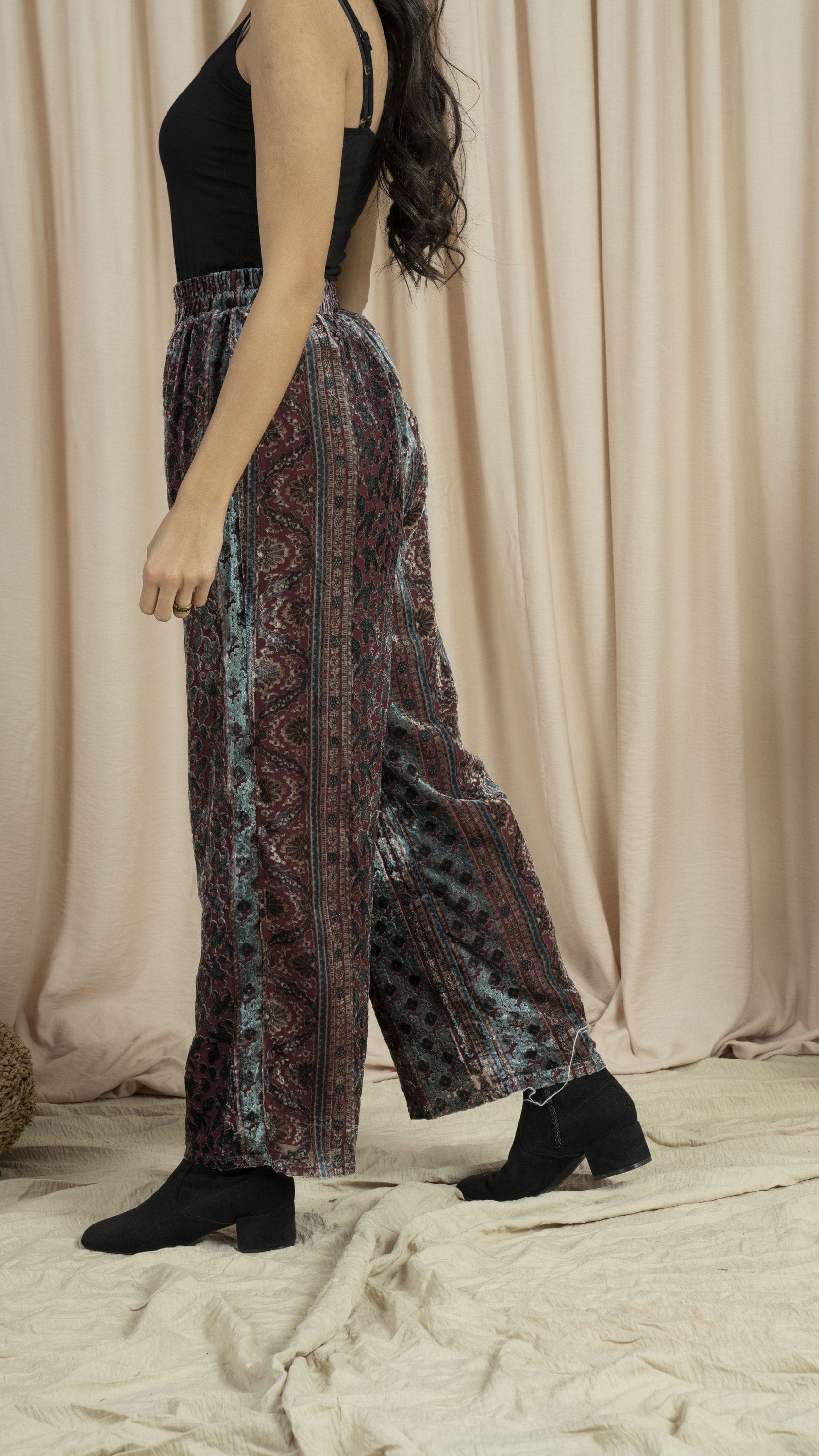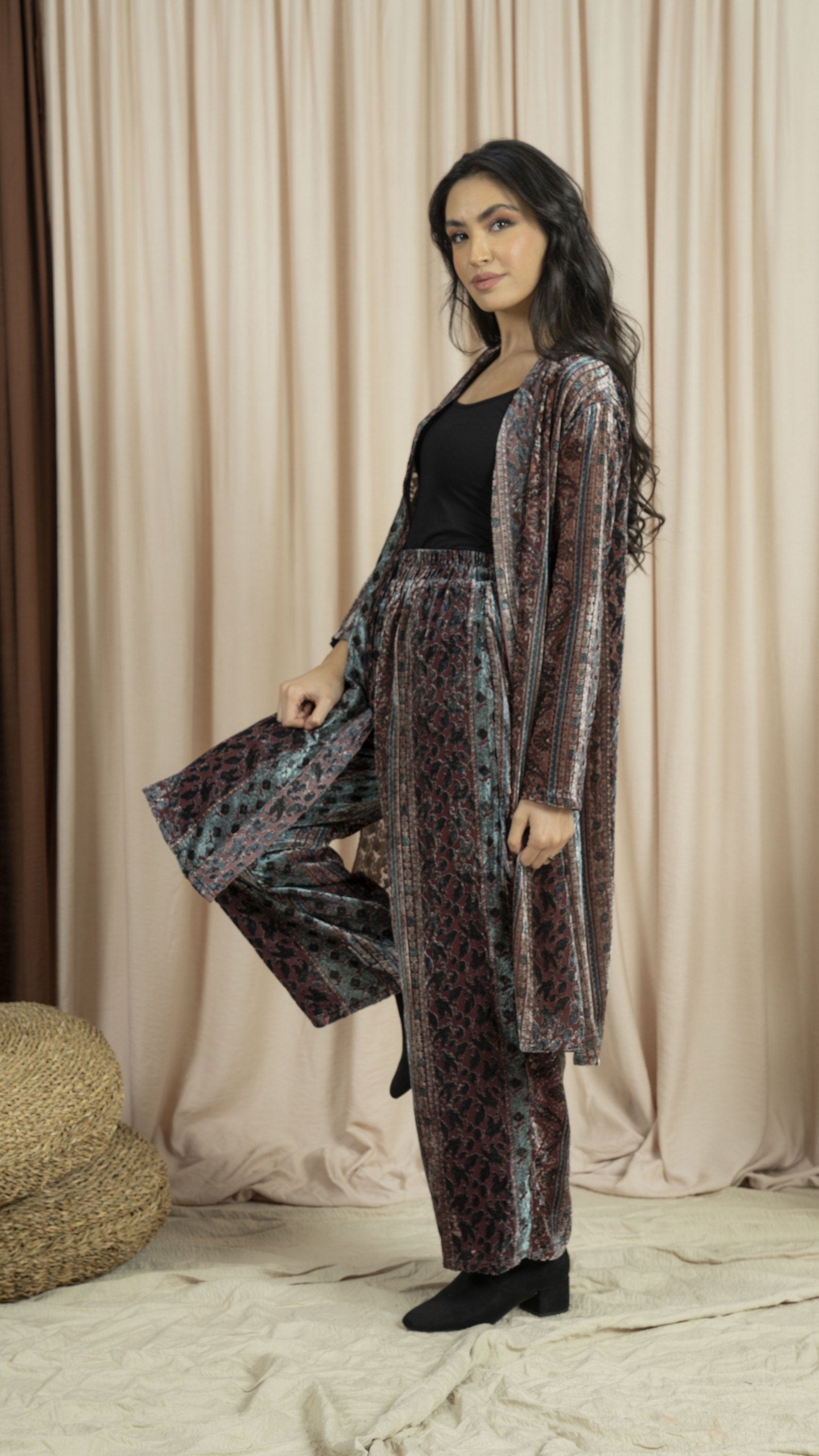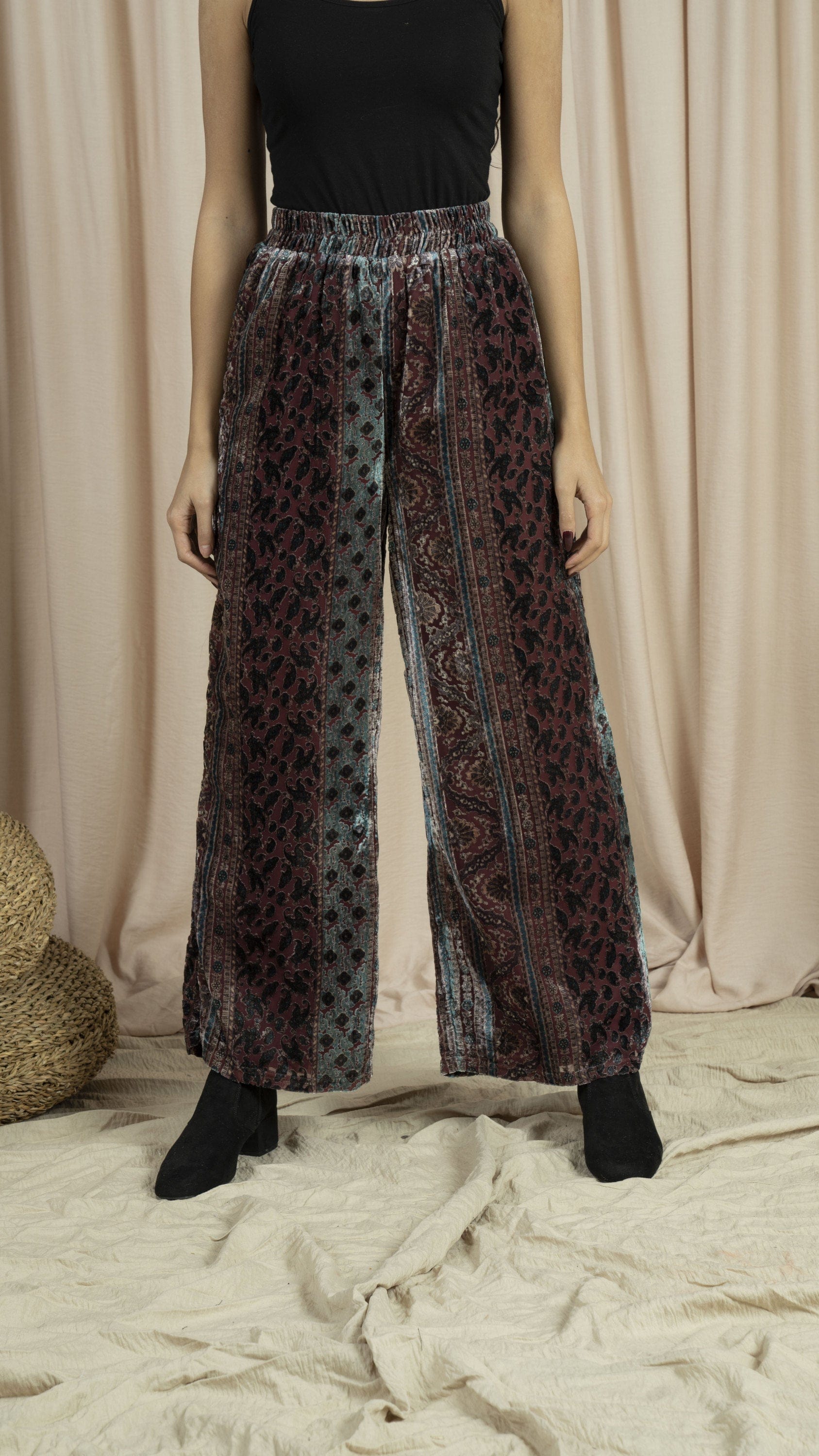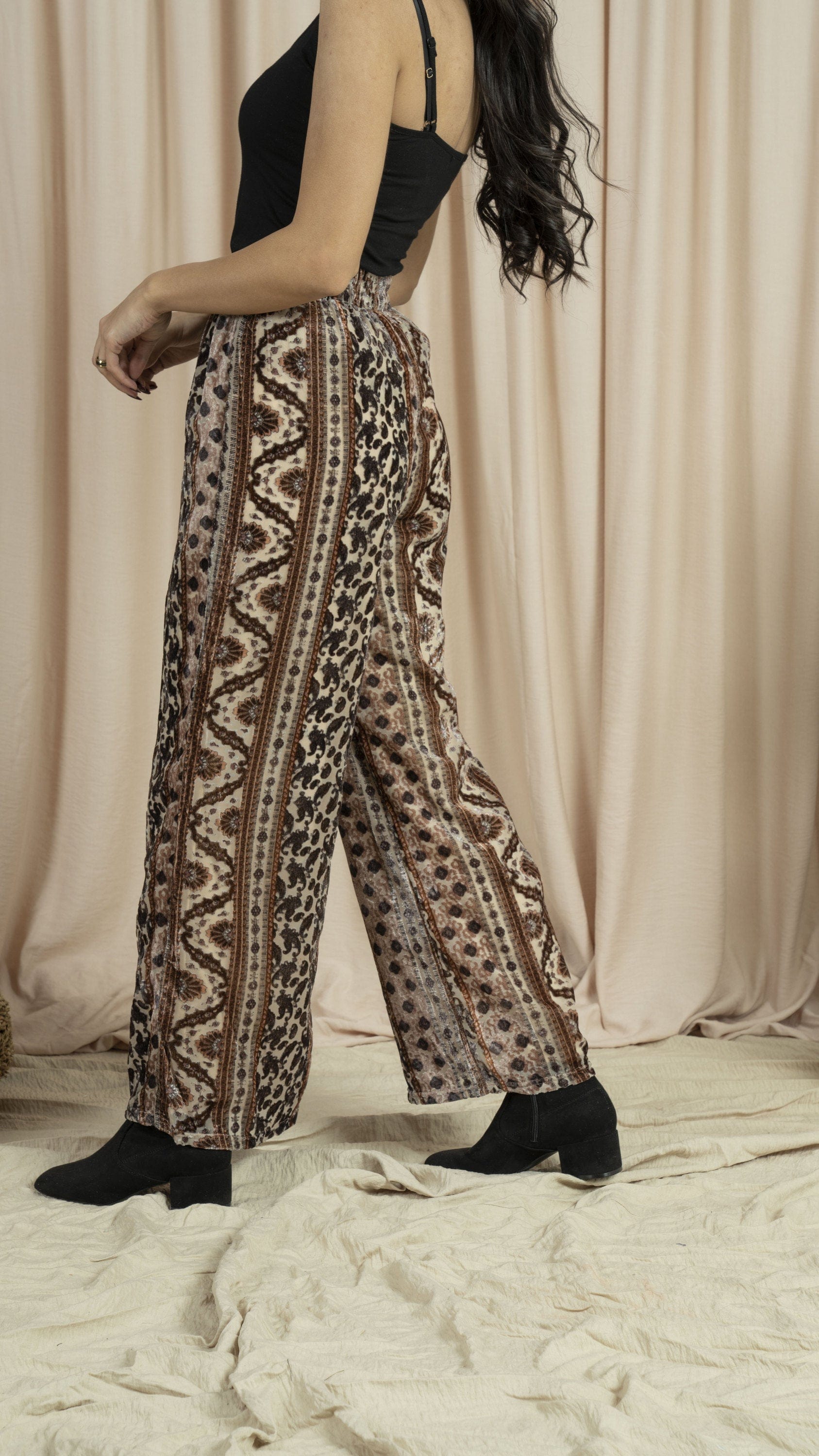 بنطلون منقوش واسع طويل نسائي