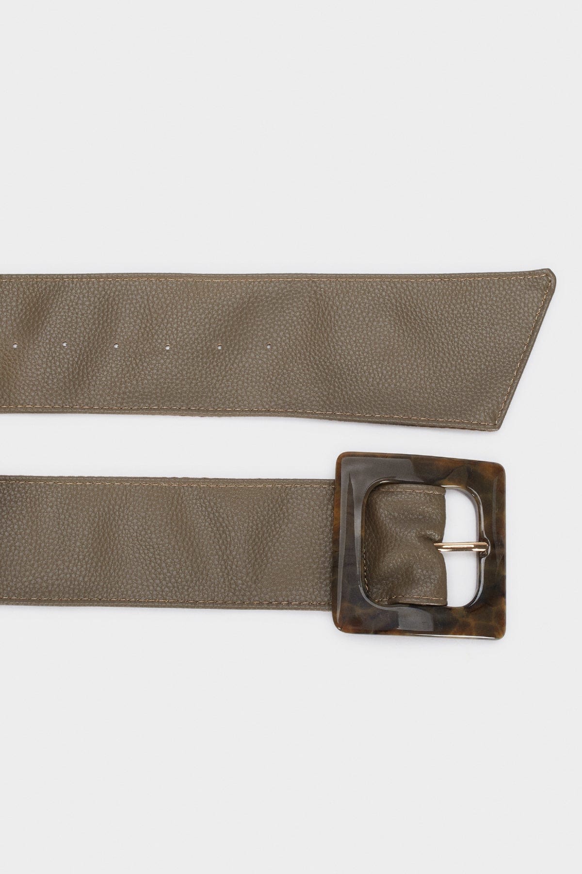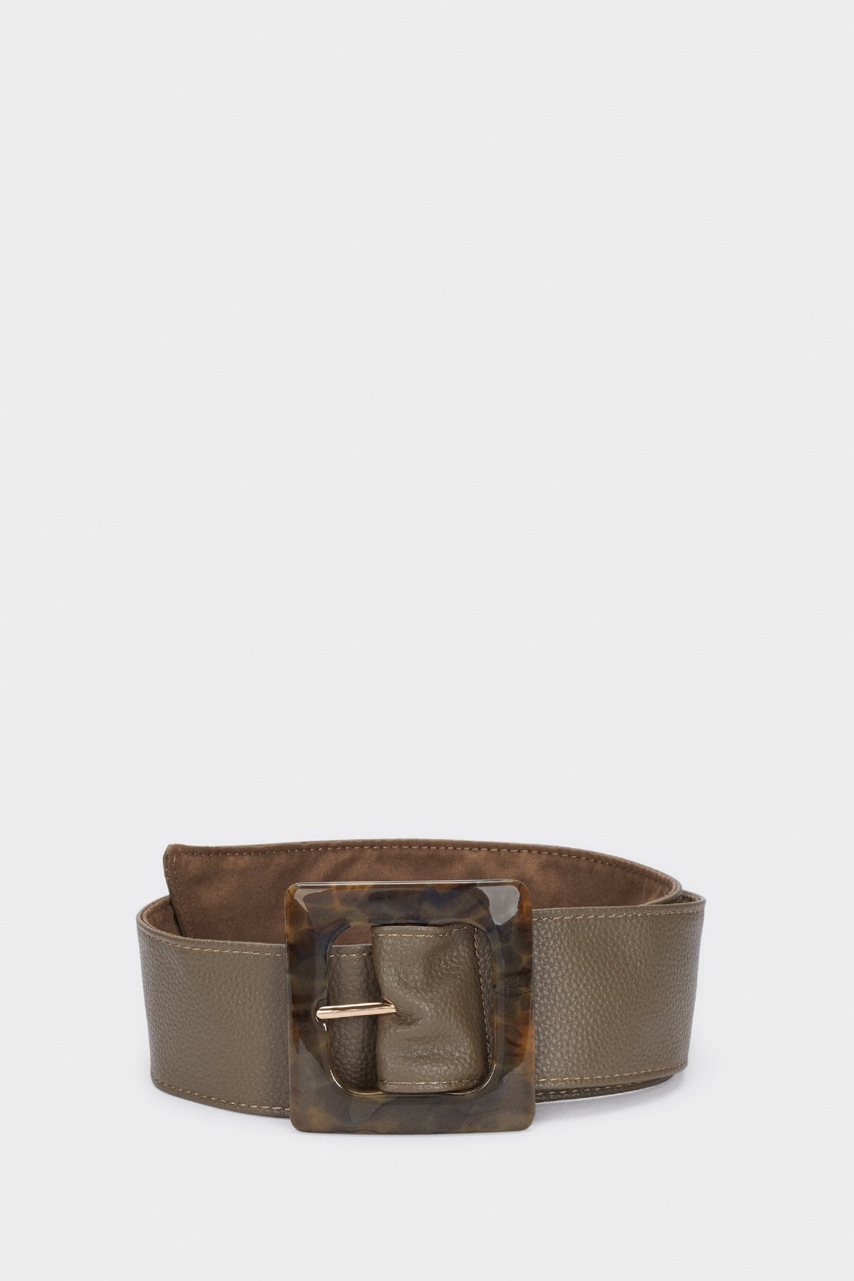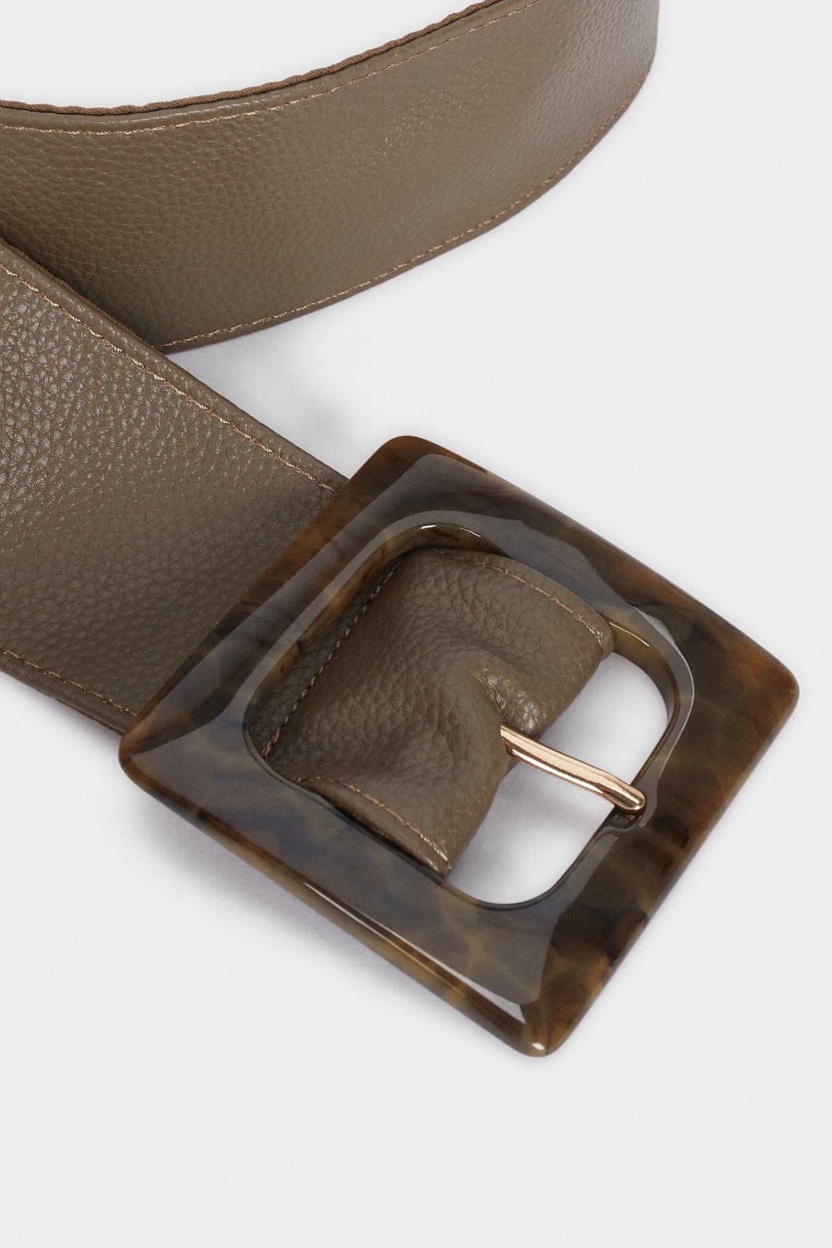 حزام جلد نسائي عريض بتوكة عريضة مشبحة