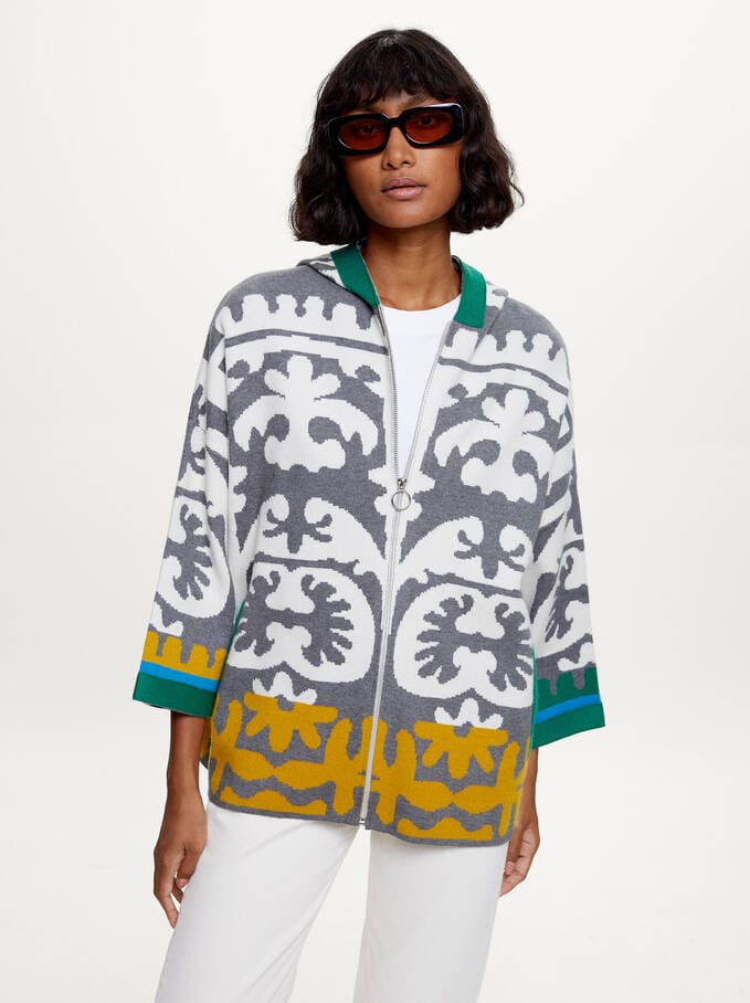 بلوفر محبوك متعدد الألوان بياقة سبعة