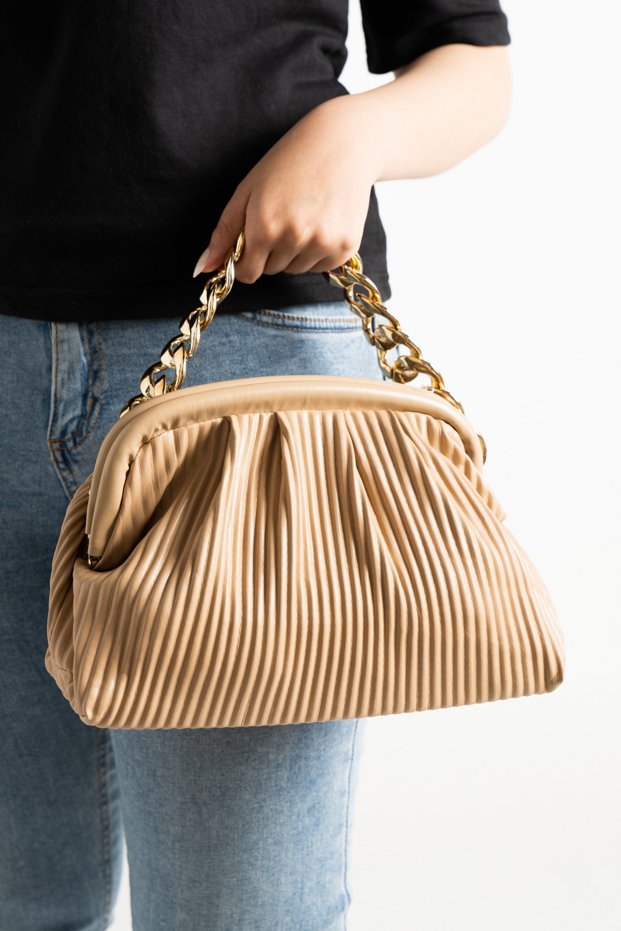 حقيبة سادة بكسرات وحلقات معدنية نسائي