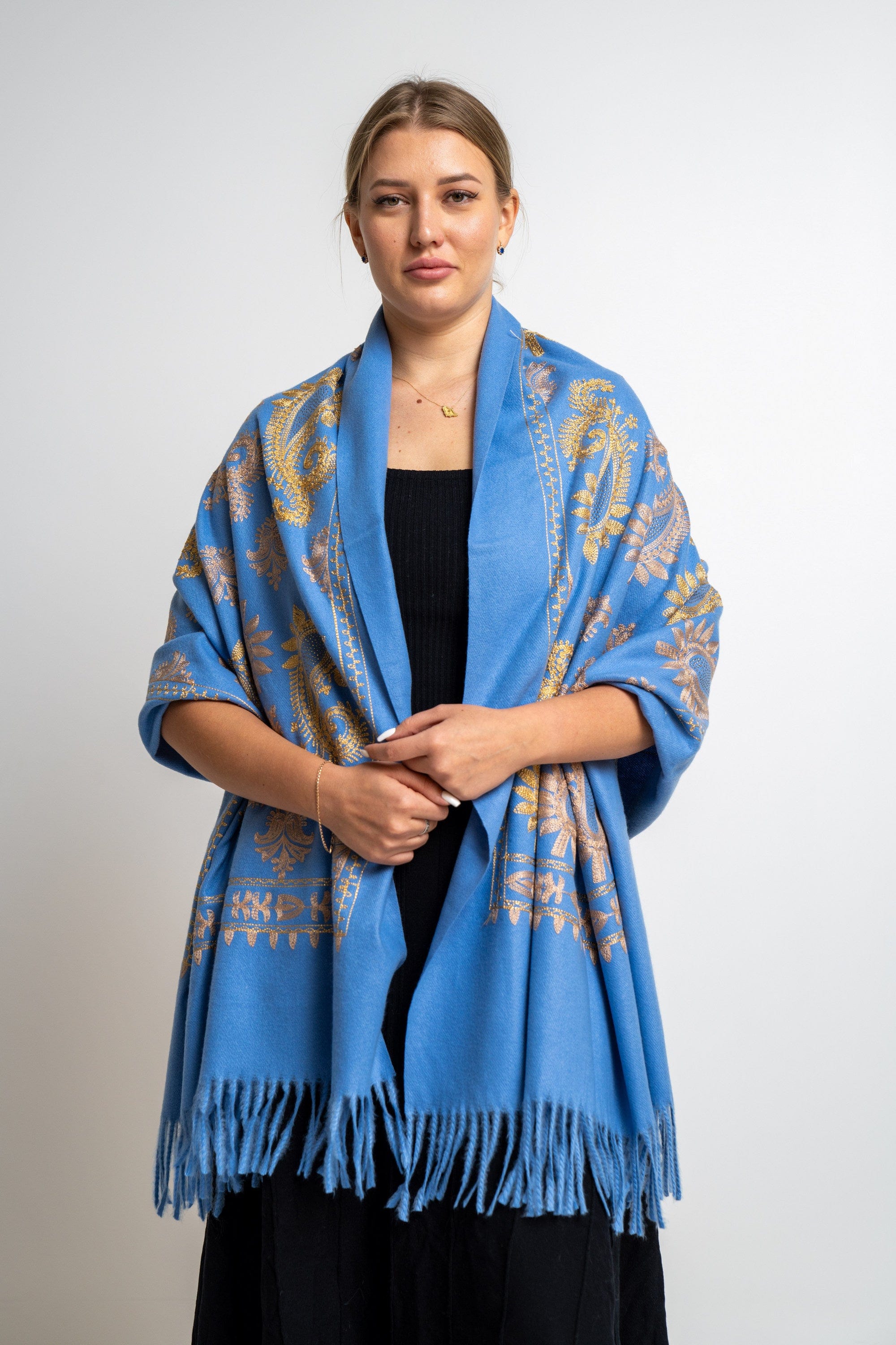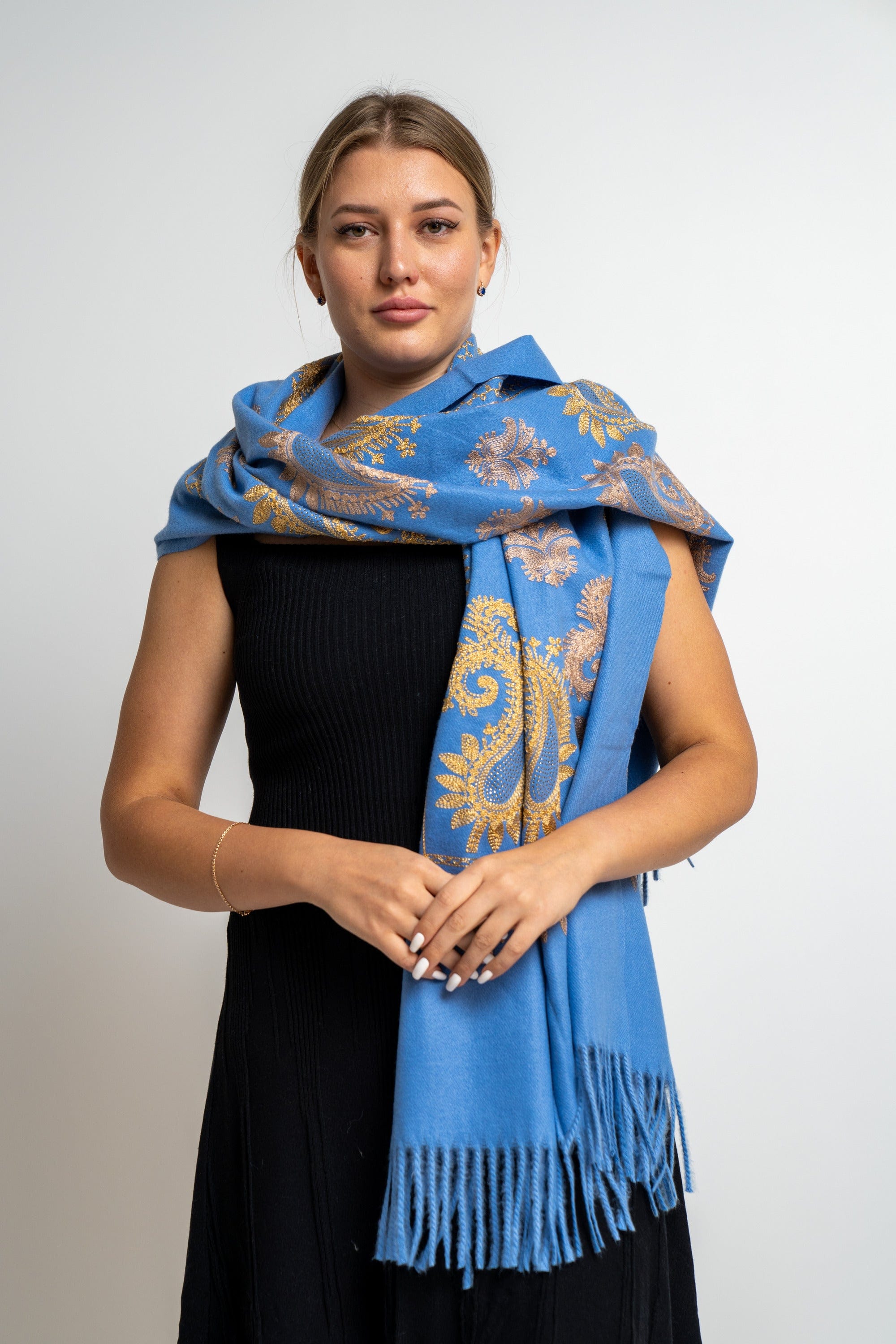 اضفي لمسة من الأناقة والجمال على إطلالتك مع وشاح مطرز نسائي من نتشي. يتوفر هذا الوشاح بثلاثة ألوان جذابة: أسود، كريمي وأزرق فاتح. تمتزج في هذا التصميم الراقي بين اللون الأنيق والتفاصيل المطرزة بدقة لإضفاء لمسة مميزة على إطلالتك. يمكنك ارتداء هذا الوشاح مع ملابسك اليومية أو أثناء المناسبات الخاصة. احصلي الآن على وشاح مطرز نسائي من نتشي واستعدي لاستقبال الإطراءات بأناقتك الفريدة. اطلبيه الآن واحصلي على أجمل الأزياء من فاشن السعودية! رقم المنتج: fa705sv