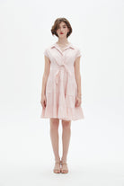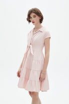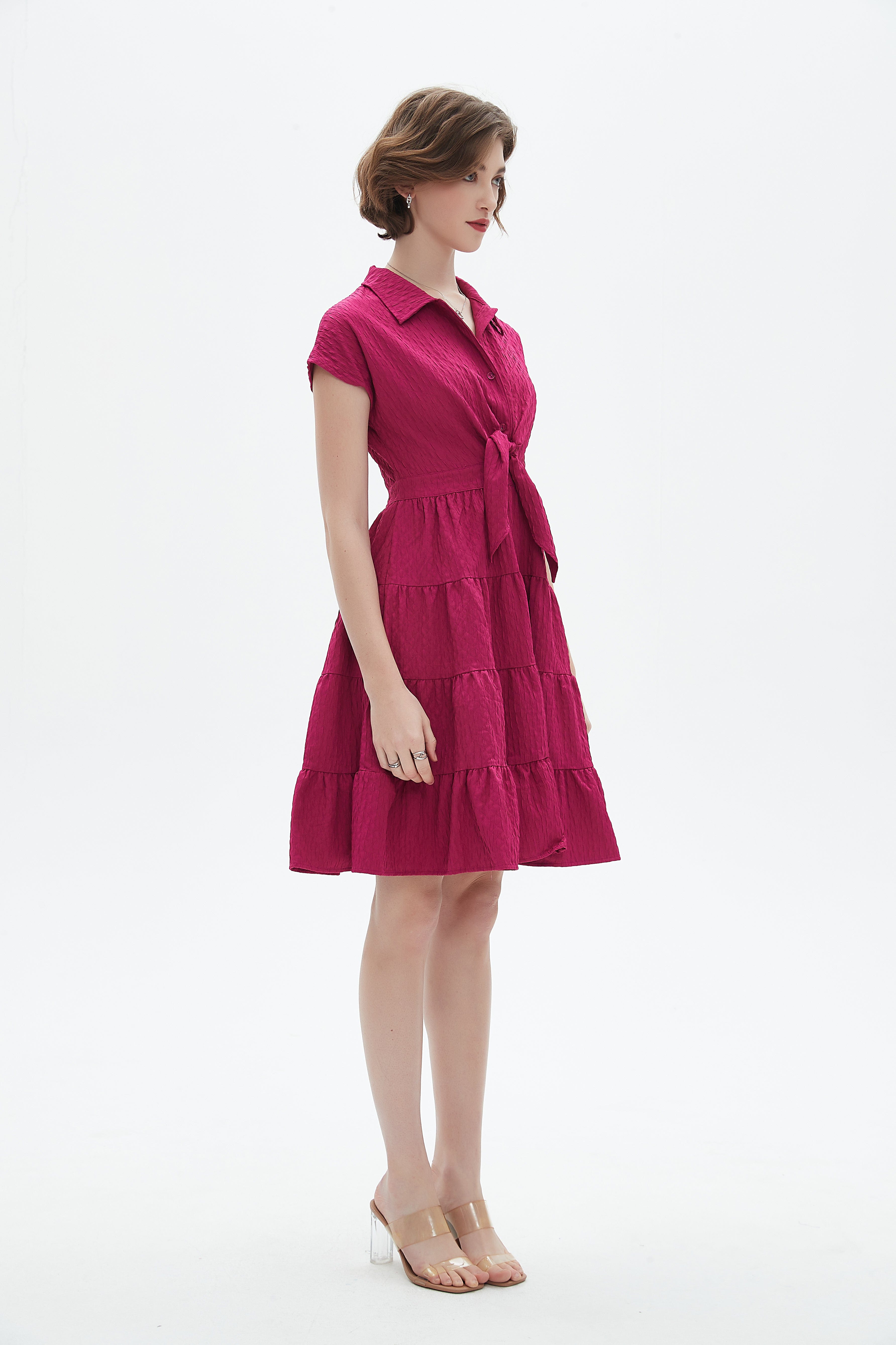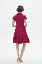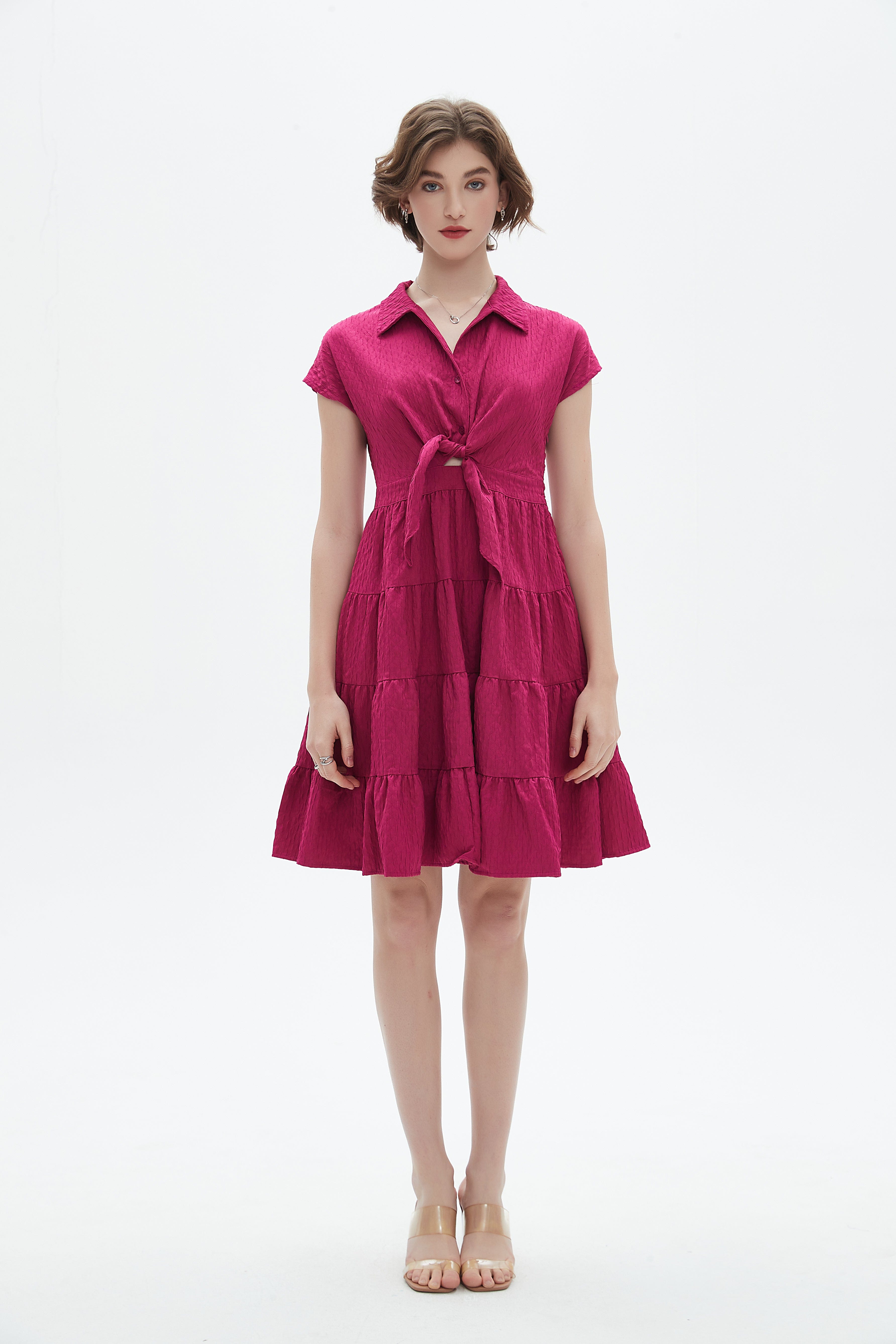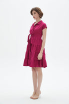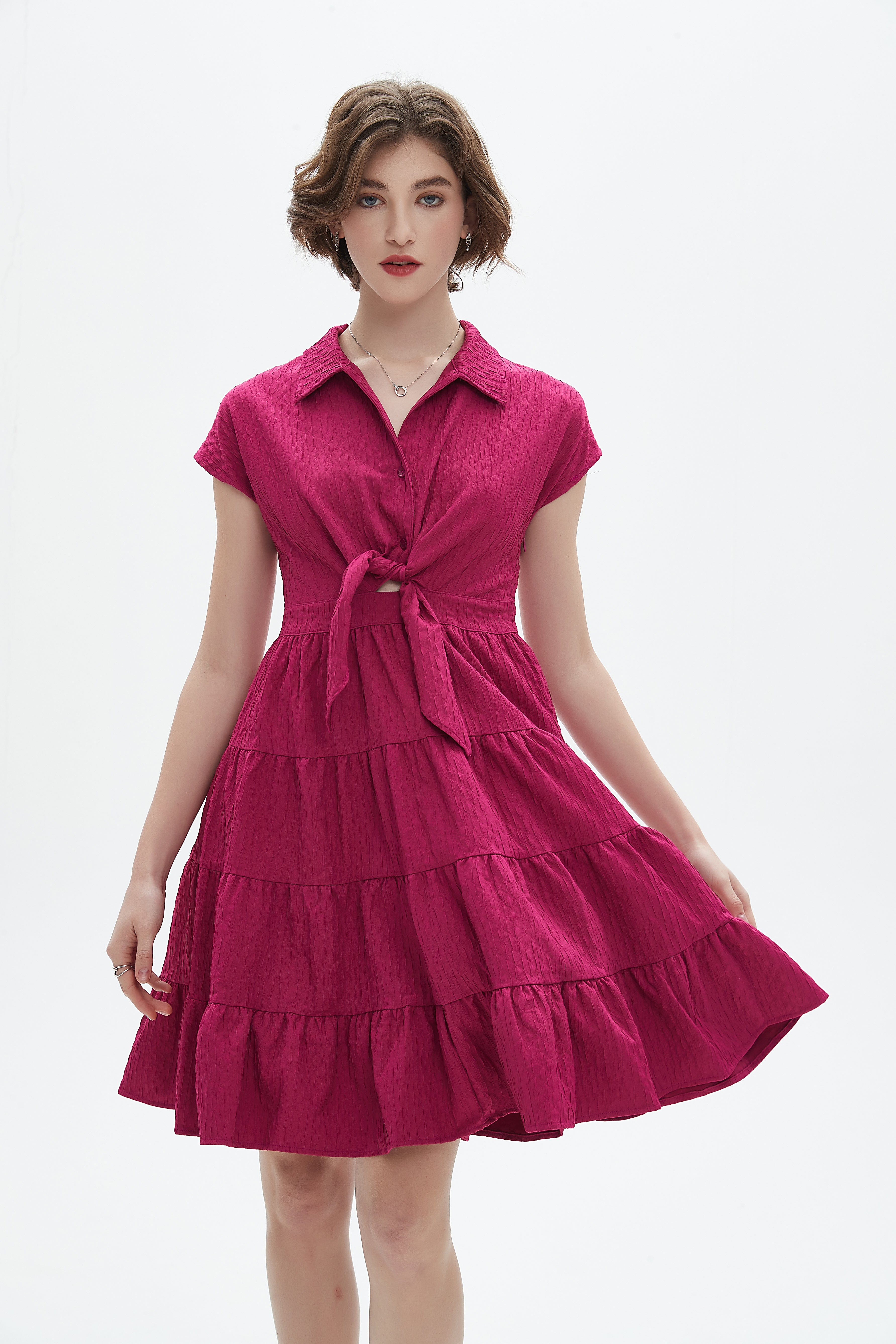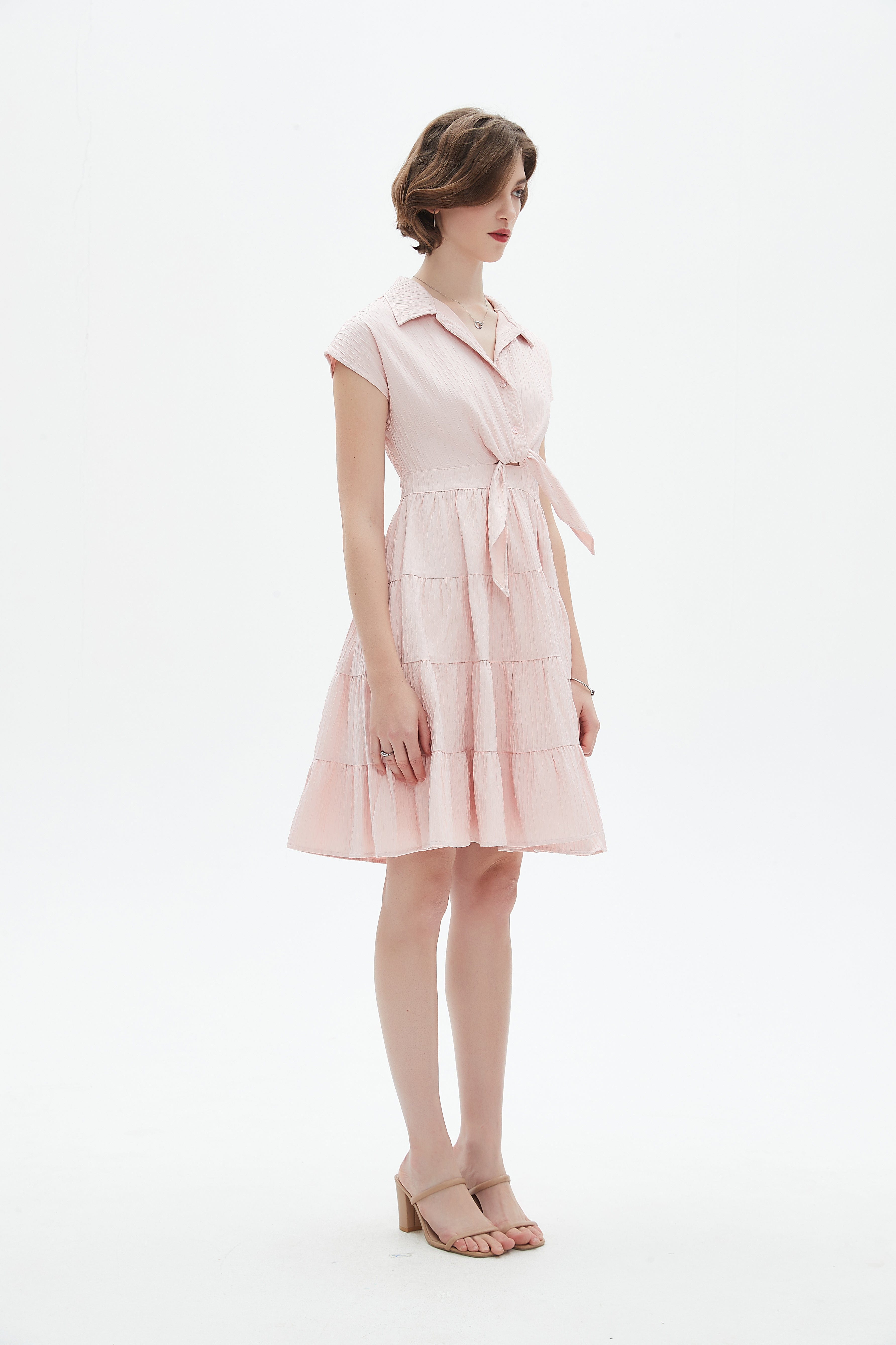 فستان مكشكش قصير بكم قصير وياقة قميص