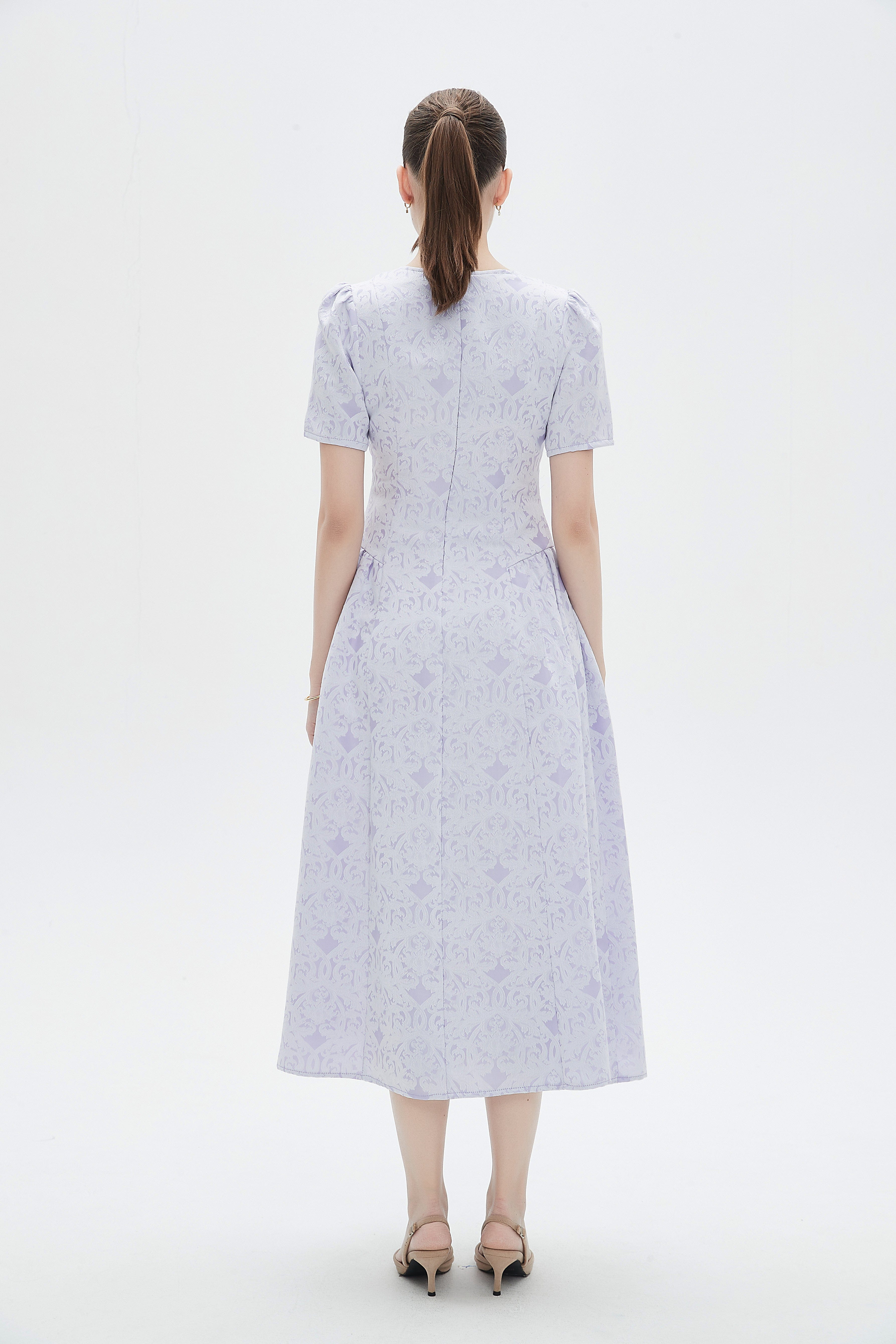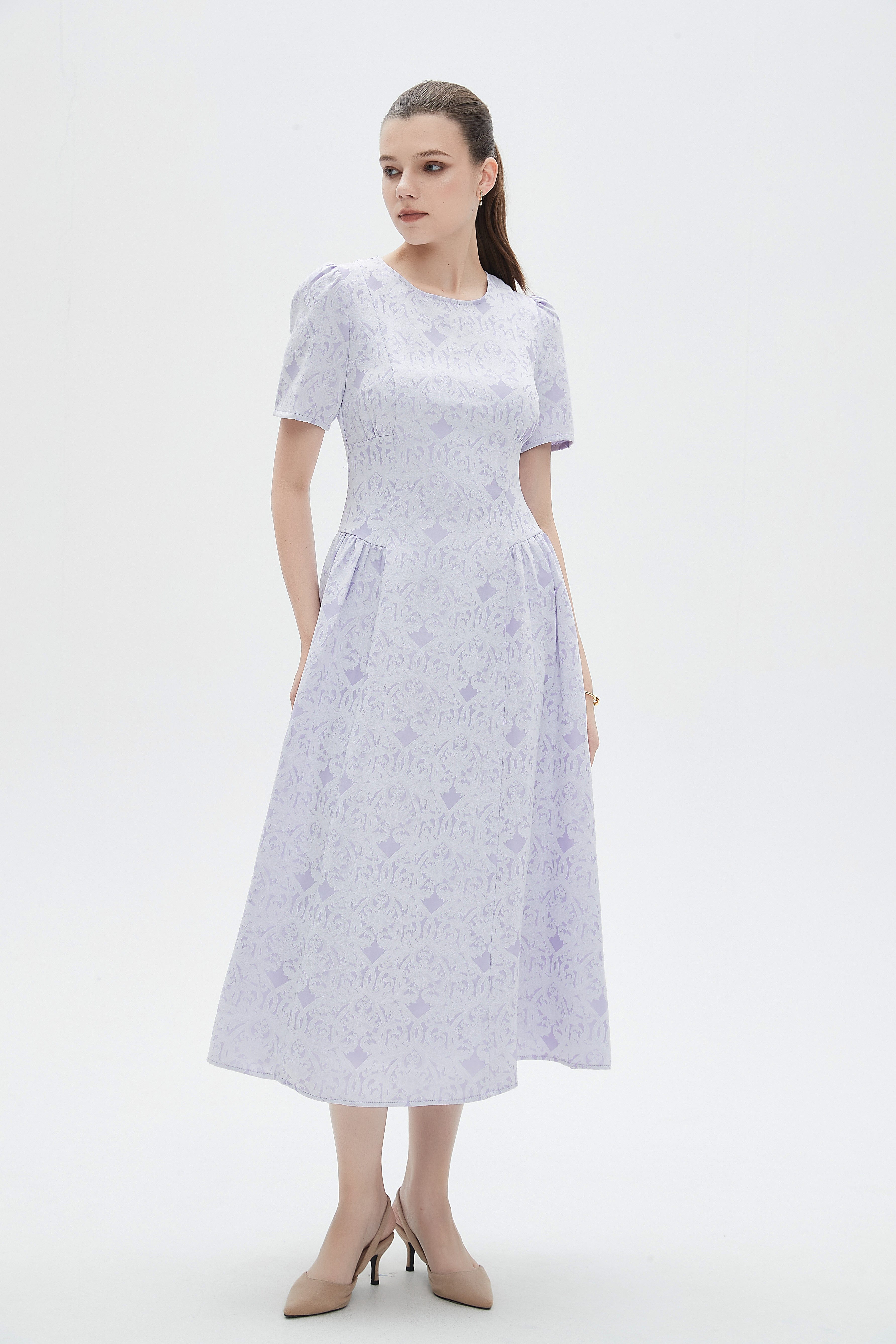 لو كنت تبحثين عن فستان كاجوال أنثوي يناسب كل يوم ومناسبات الخروجات البسيطة، هذا الفستان بقصة A وطول ميدي خيار مثالي. الصنع من بوليستر 100% يمنحه متانة وخفة في الغسيل، وسماكته المتوسطة تجعله مناسباً لكل المواسم. النقشة المنقوشة واللون البنفسجي الفاتح يضيفان لمسة رومانسية، والياقة المستديرة مع كم قصير تمنح مظهراً مريحاً وبسيطاً. الفستان بلا بطانة، بدون جيوب وبدون حزام، ما يجعله خفيفاً ومناسباً للنزهات النهارية أو جلسات القهوة، وستحبين كيف يتحرك معك عند المشي. قطعه الأساسية لخزانة صيفية وربيعية أنثوية، ويمكن تكديسه بطبقات عند الحاجة للدفء. اعثري على مقاسك في فاشن السعودية وأضيفي هذه القطعة المتنوعة إلى خزانة ملابسك اليوم.