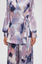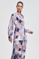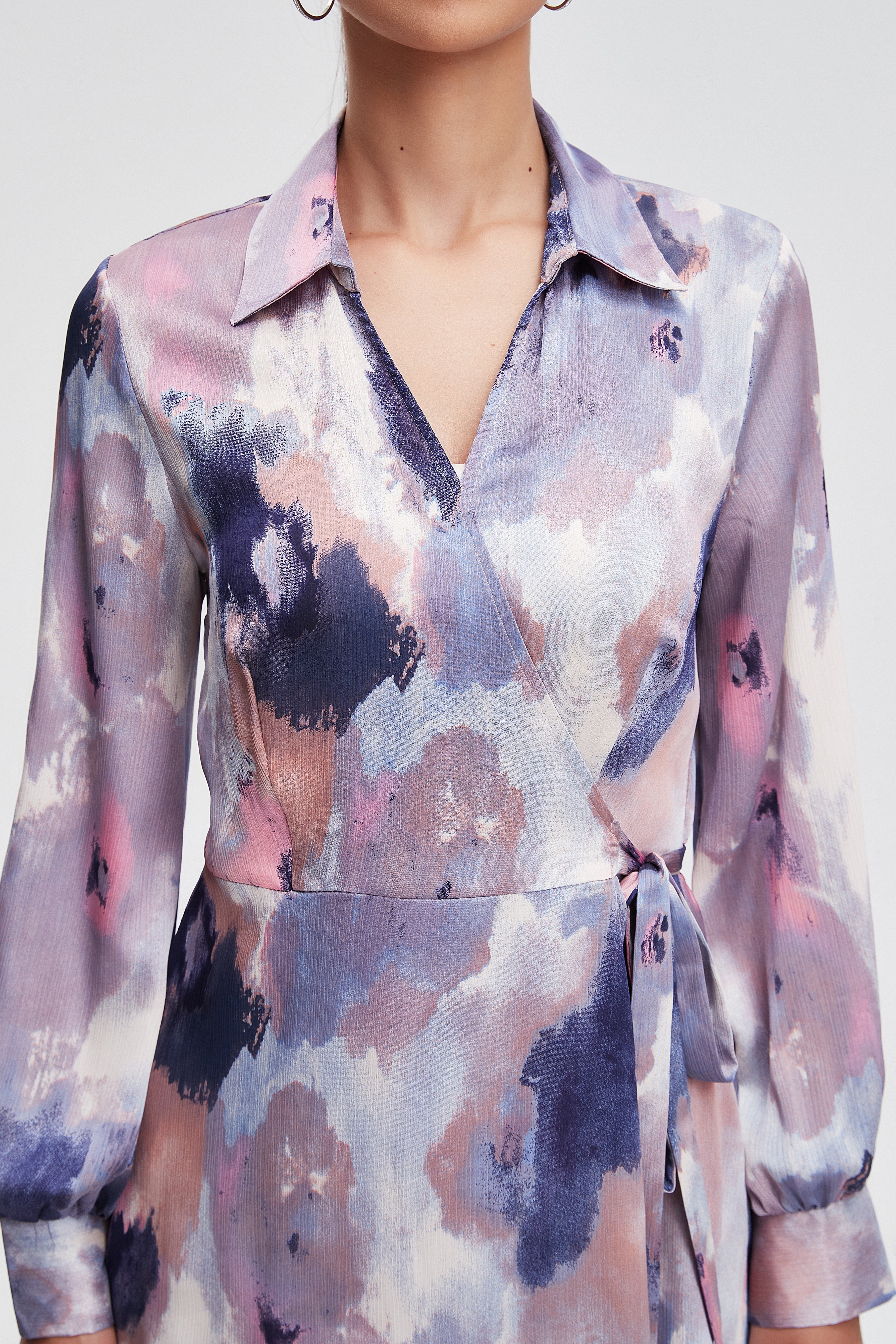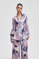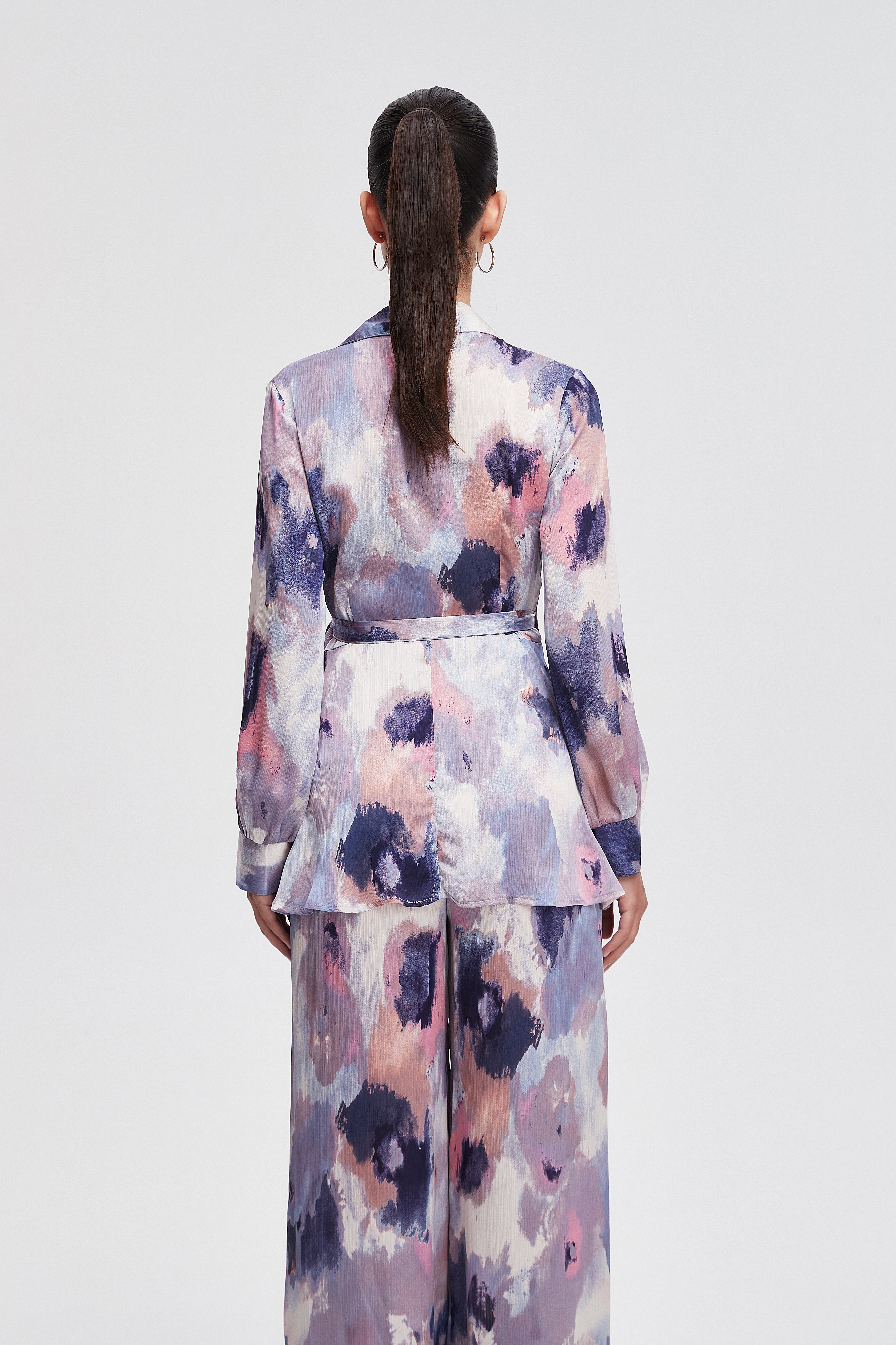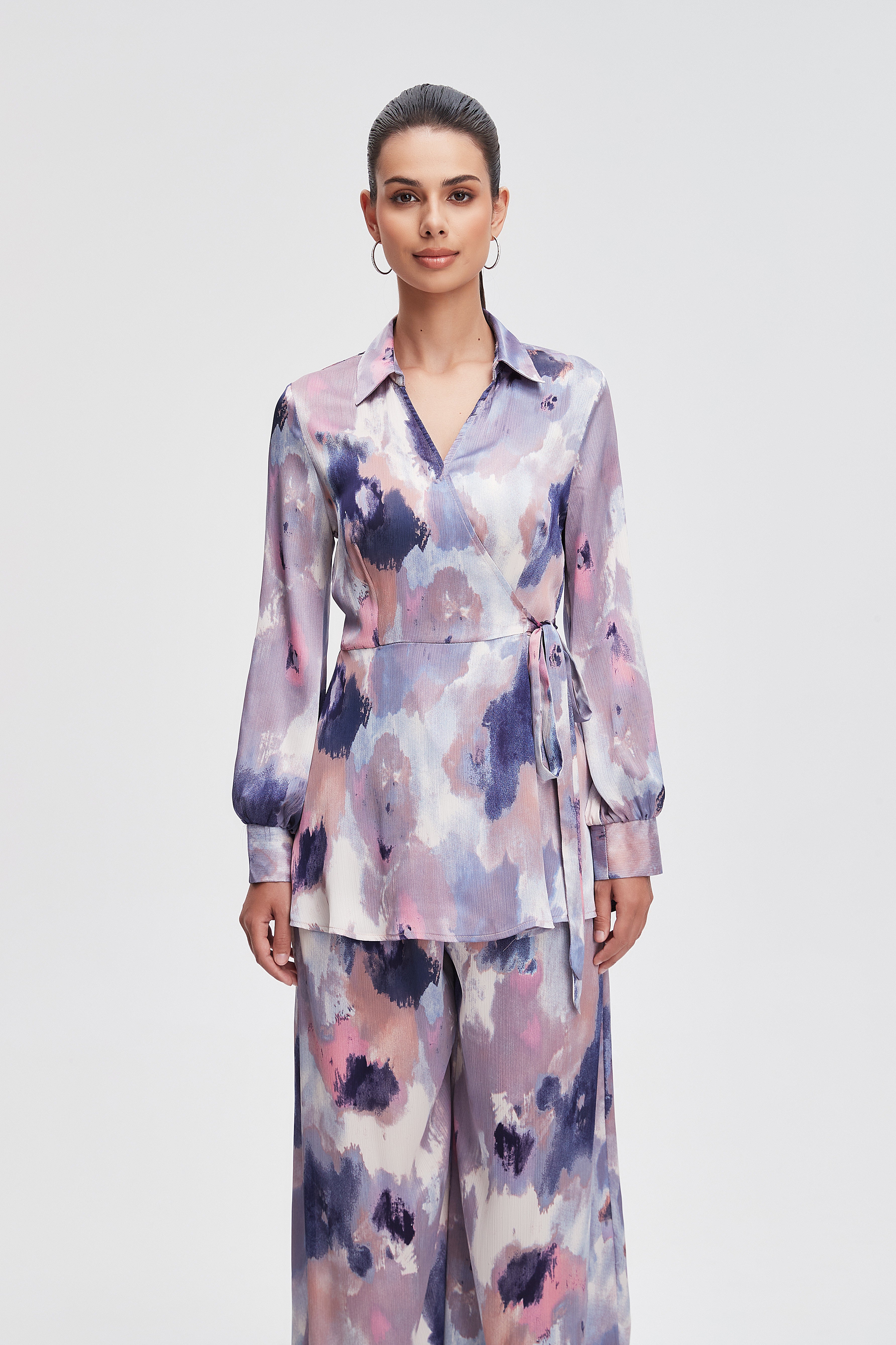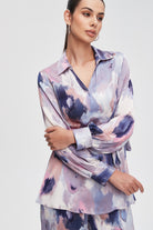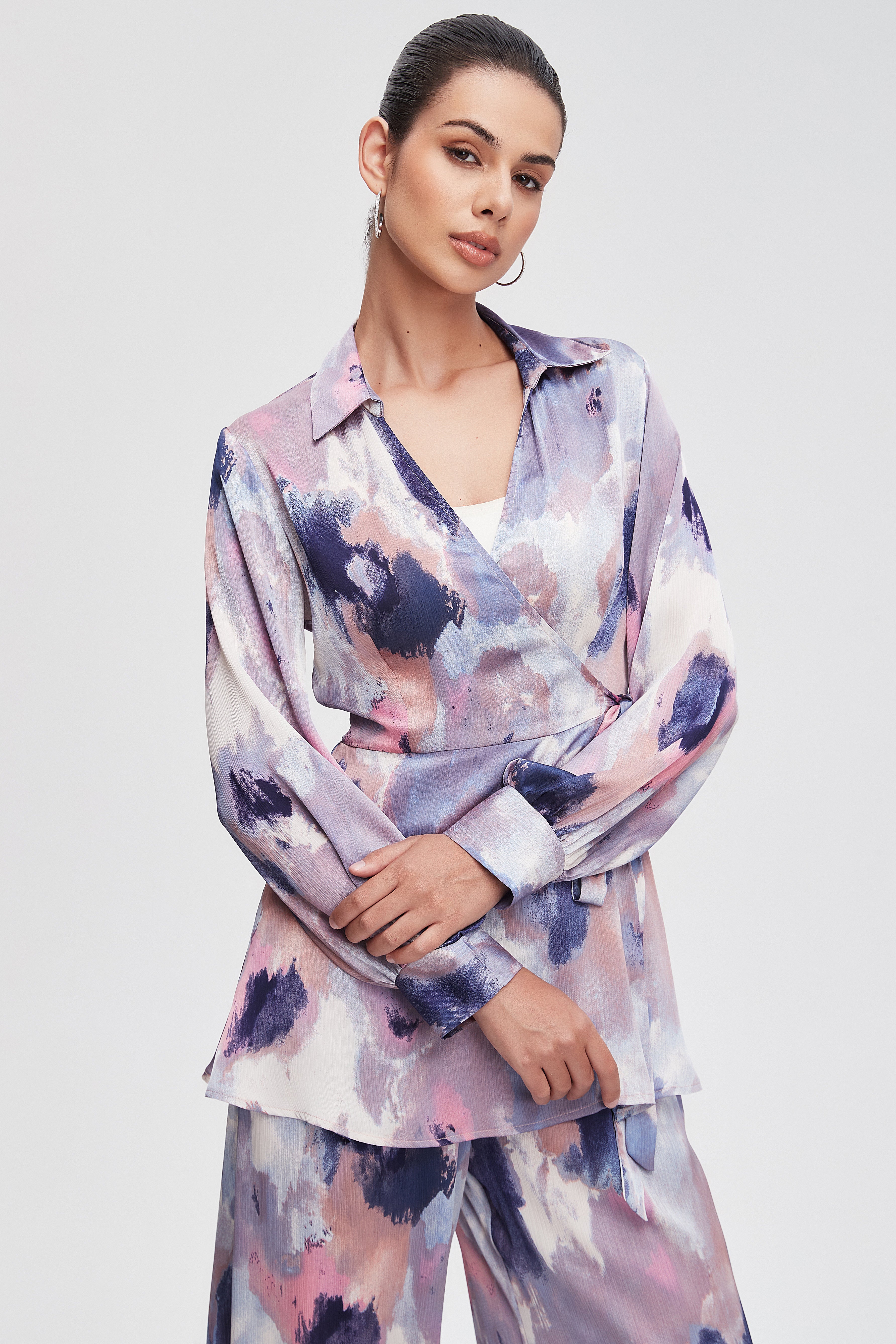 بلوزة نسائية بلوزة بطول الخصر منقوشة بأكمام طويلة وياقة قميص