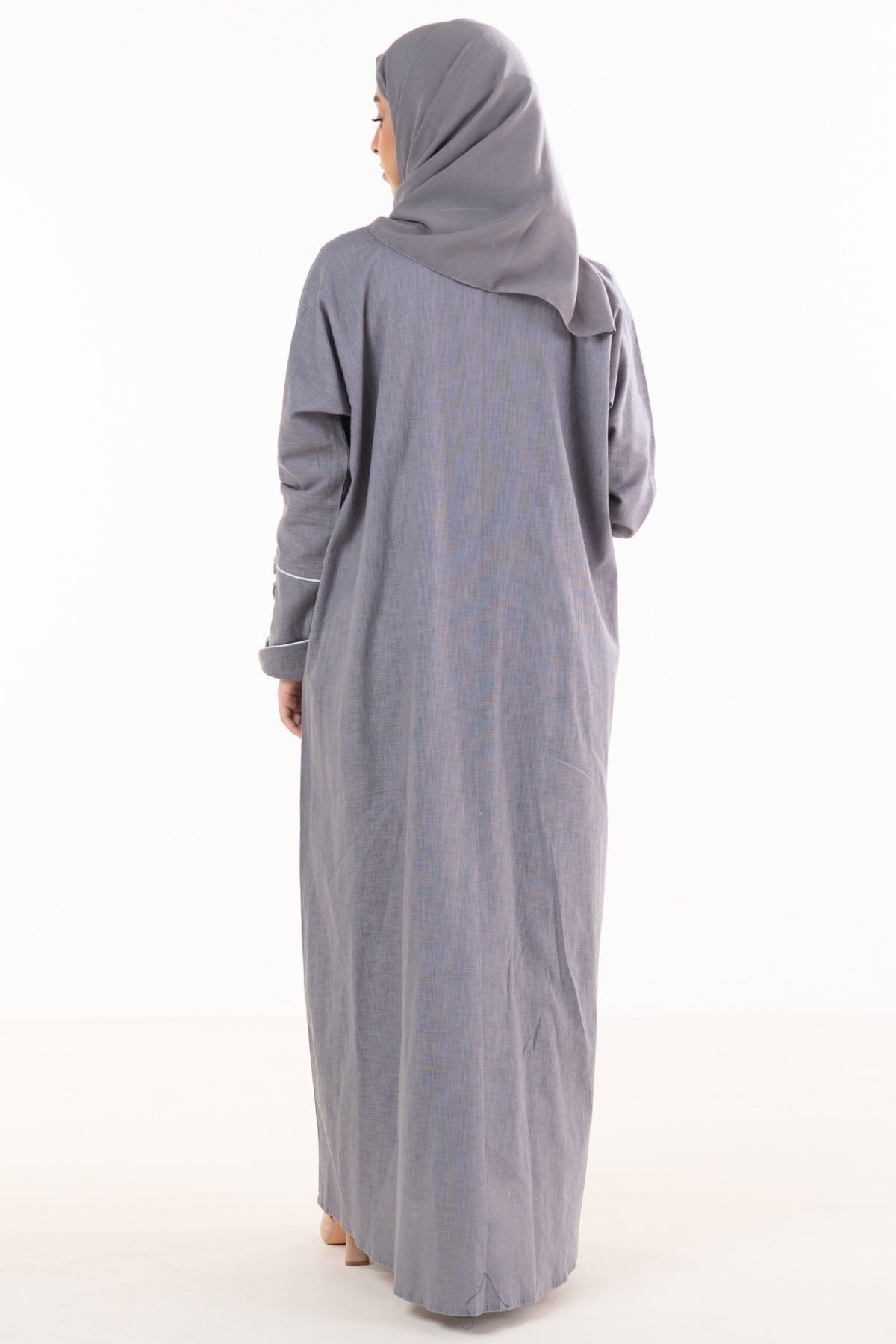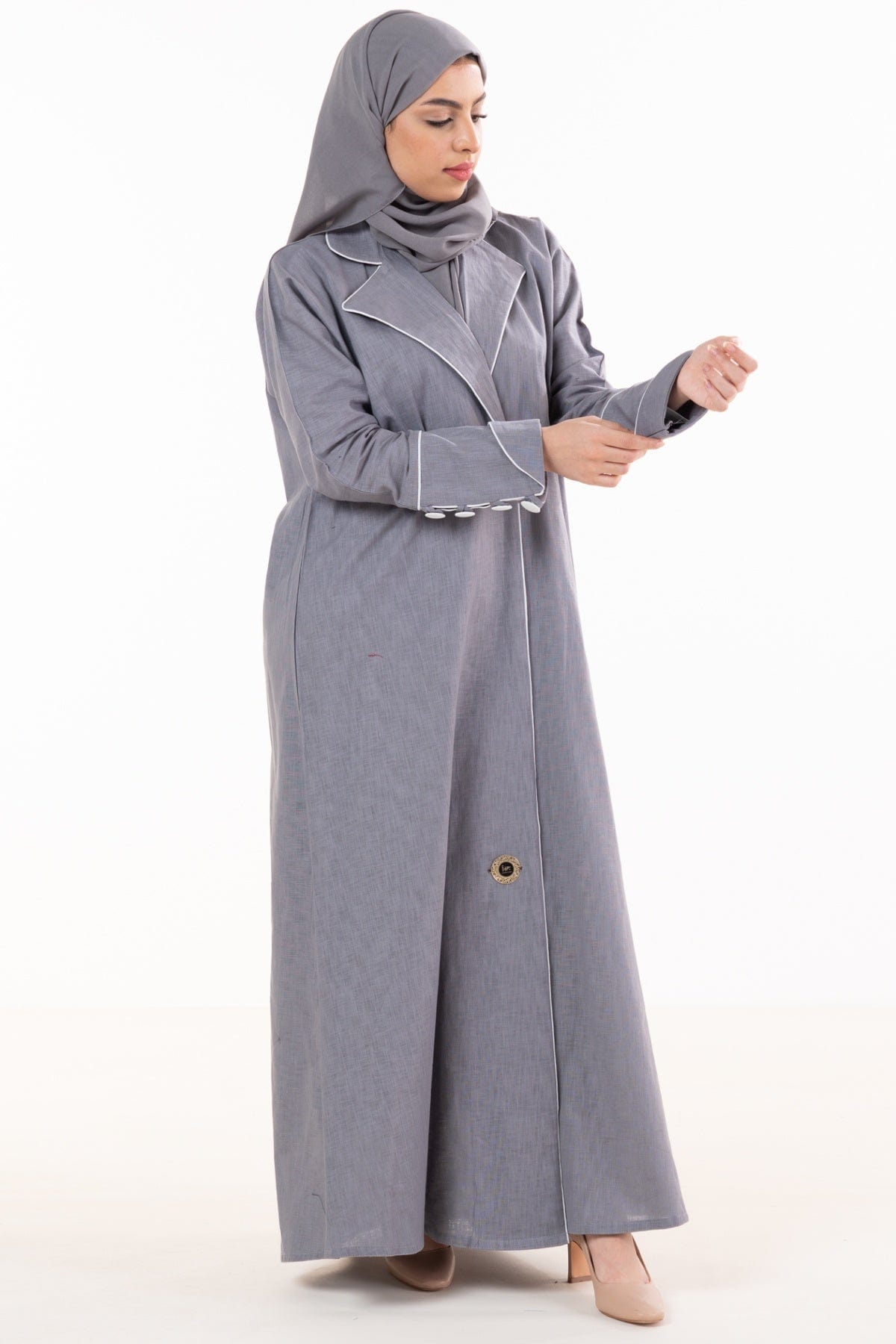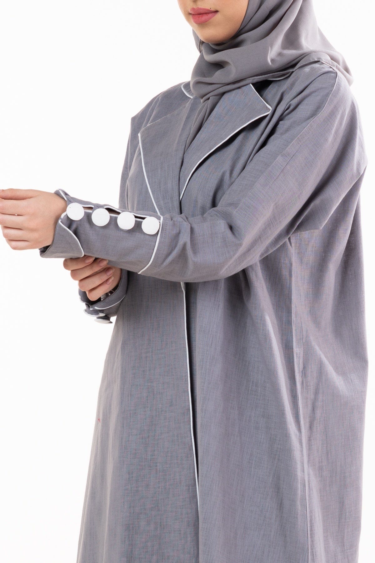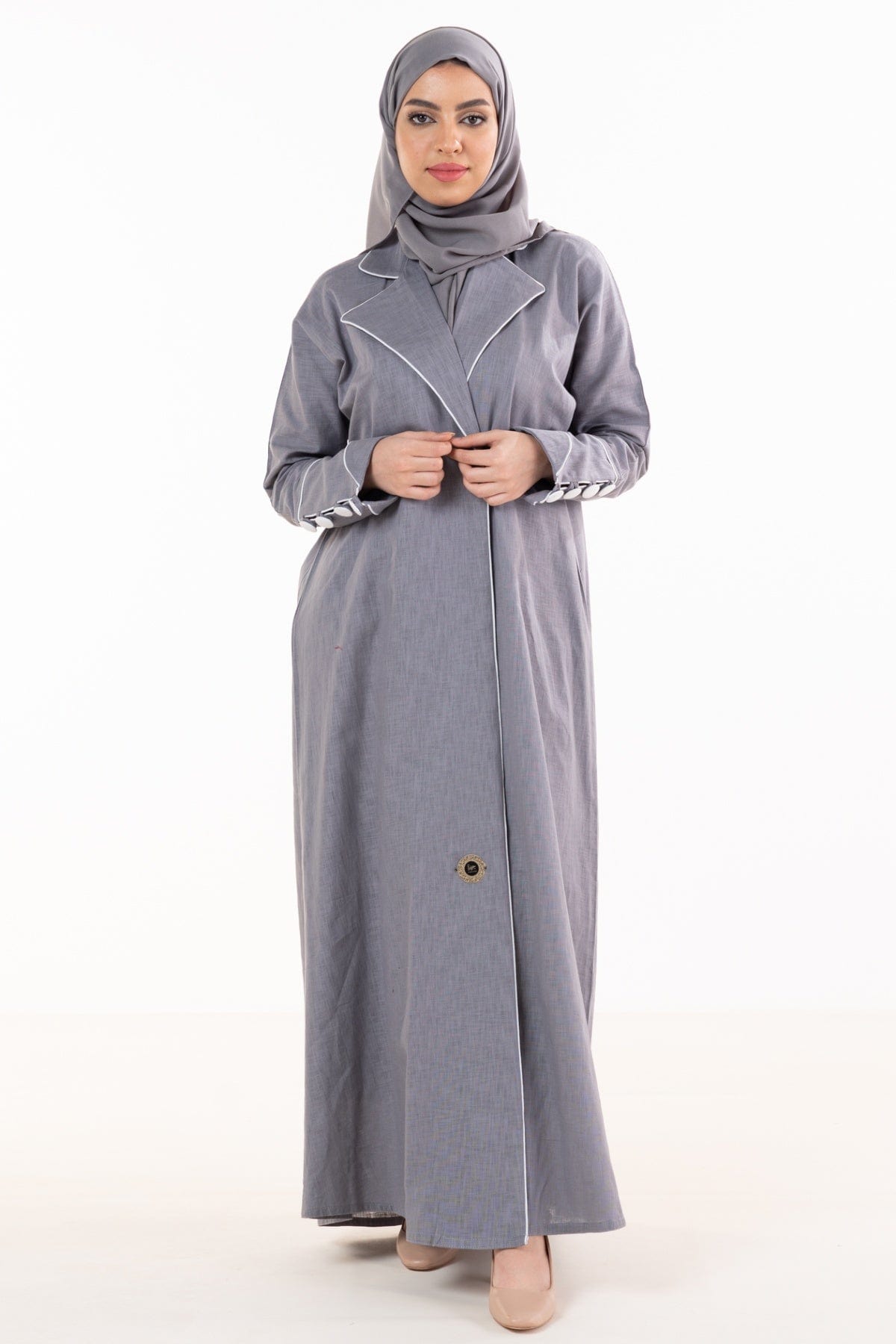 عباية كتان كلاسيك مفتوحة بياقة وكم طويل مزين بأزرار