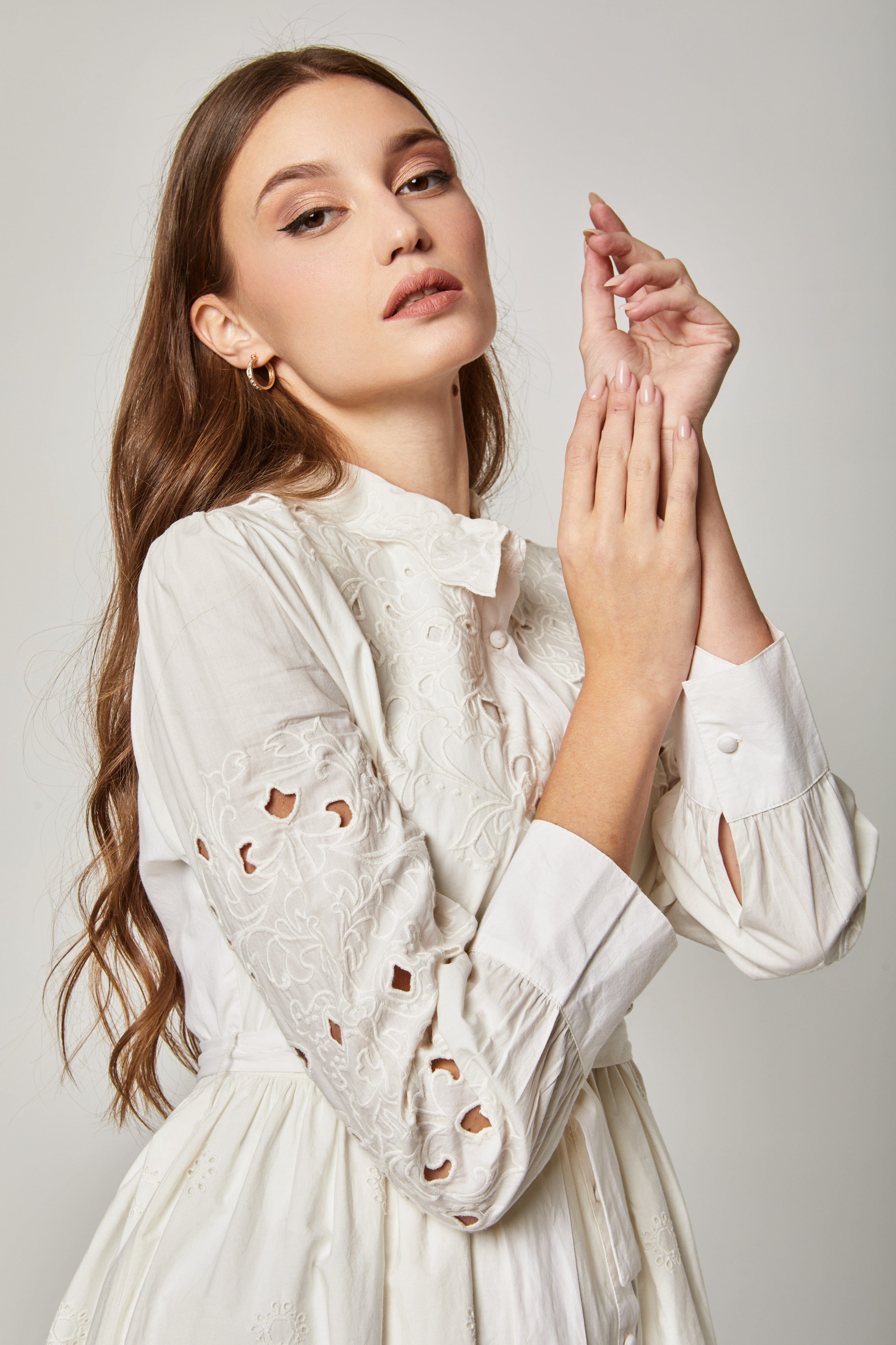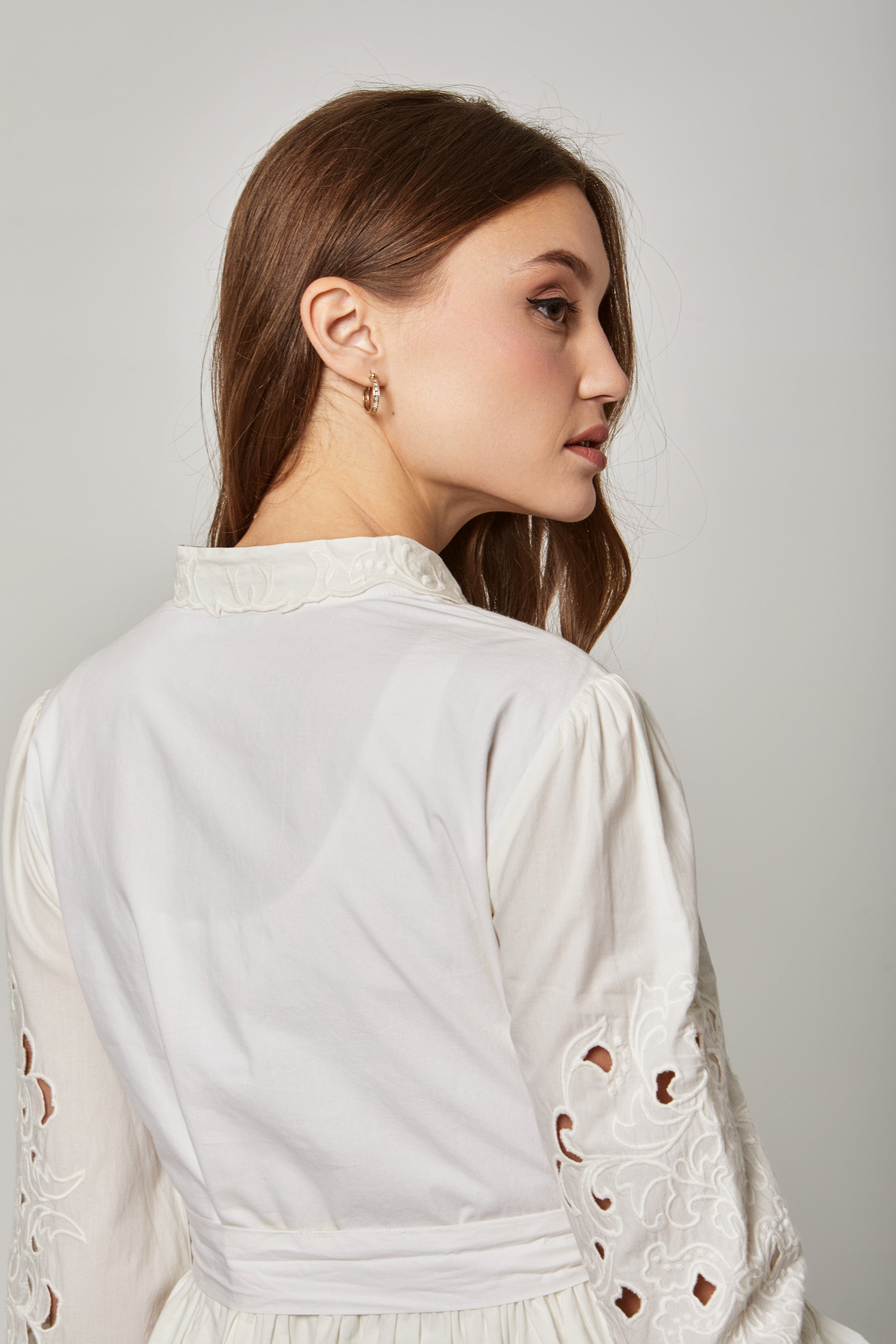- العناية: يُفضل الغسل اليدوي أو دورة دقيقة بماء بارد مع قلب الفستان للخارج. تجنبي المبيضات وجففيه بالهواء بعيدًا عن الشمس المباشرة. اكوي التطريز بحرارة منخفضة مع قطعة قماش فوقه لحماية التفاصيل.