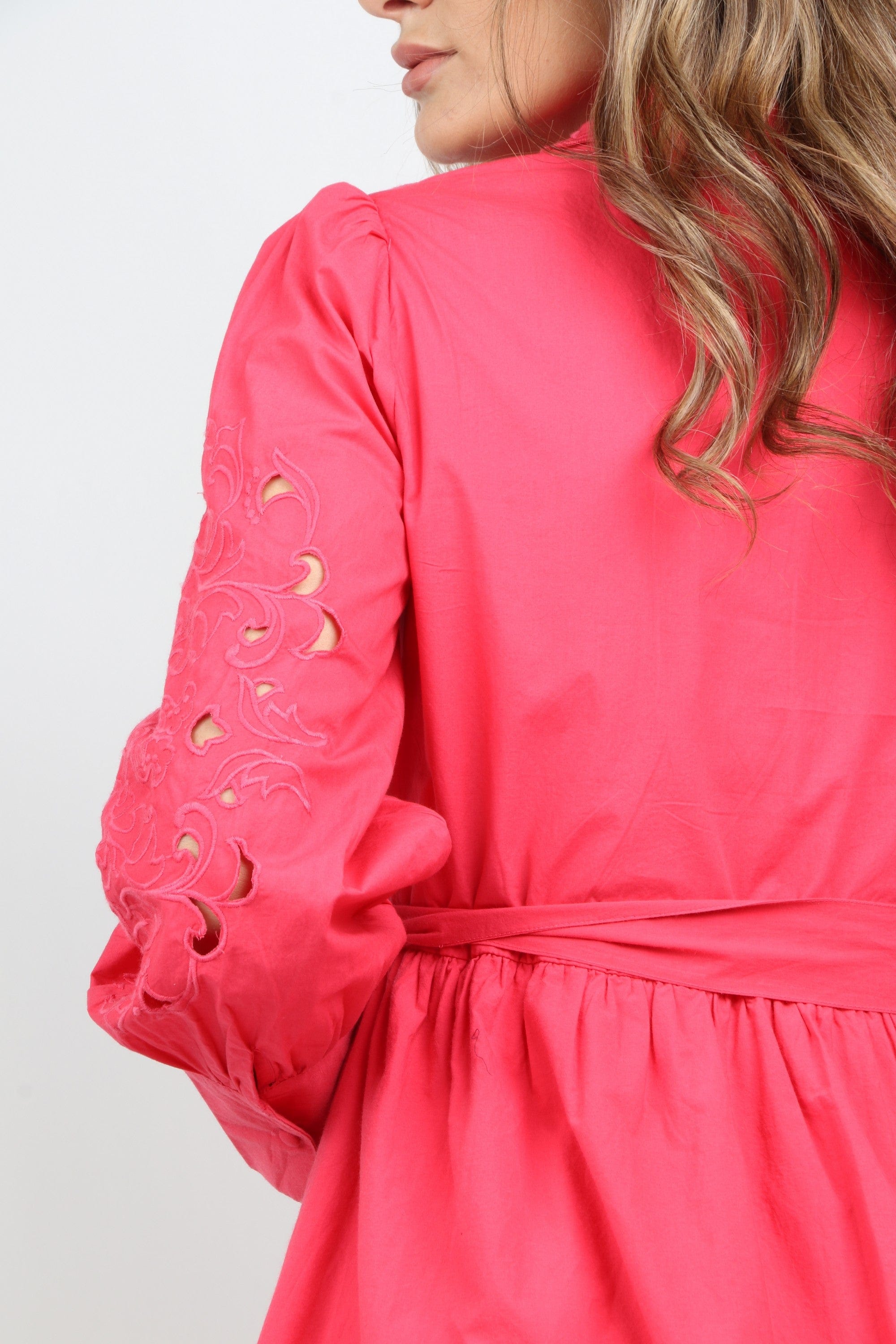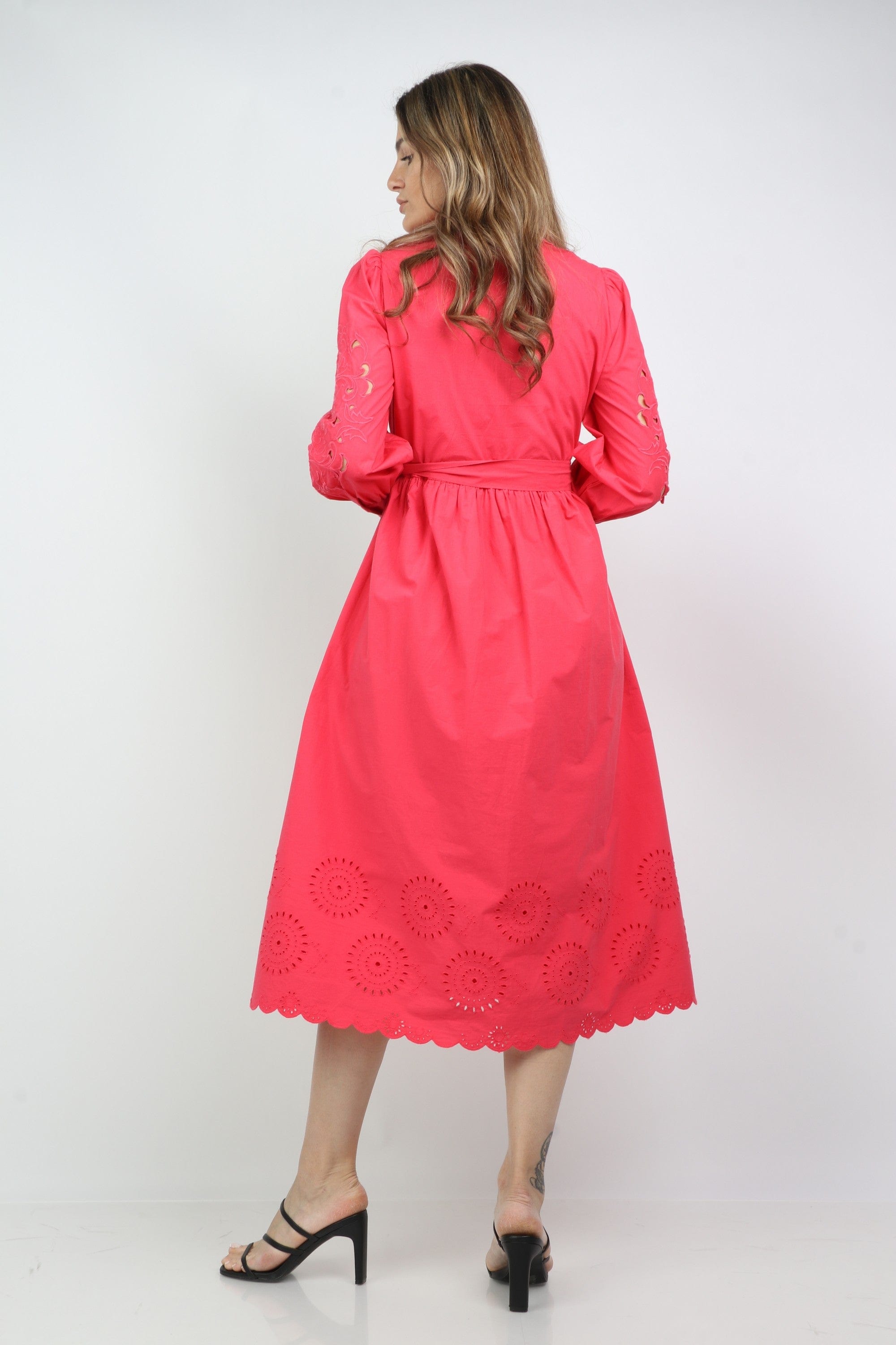 لو تبحثين عن فستان يمنحك إطلالة أنثوية مريحة للخروجات اليومية، هذا الفستان وردي منقوش مطرز بتقنية تطريز منخل خيار ممتع. القصة A تعطي مساحة متدرجة تنساب مع حركتك، وطوله الميدي عملي يجعل الإطلالة أنيقة من الصباح حتى المساء. ياقة القميص تمنح لمسة كلاسيكية، والأكمام الطويلة مناسبة لربيع وخريف معتدل بفضل السمك المتوسط. الغلق بزر والحزام المرفق يسهلان تعديل الخصر حسب مزاجك، وستحبين كيف تبرز التطريزات التفاصيل من دون مبالغة. مناسب للجلسات الكاجوال، للخروج مع الصديقات أو لموعد رومانسي بسيط — فستان عملي وأنثوي يمكن الاعتماد عليه في خزانة كل بالغة. اعثري على مقاسك في فاشن السعودية وأضيفي هذه القطعة المتنوعة إلى خزانة ملابسك اليوم.