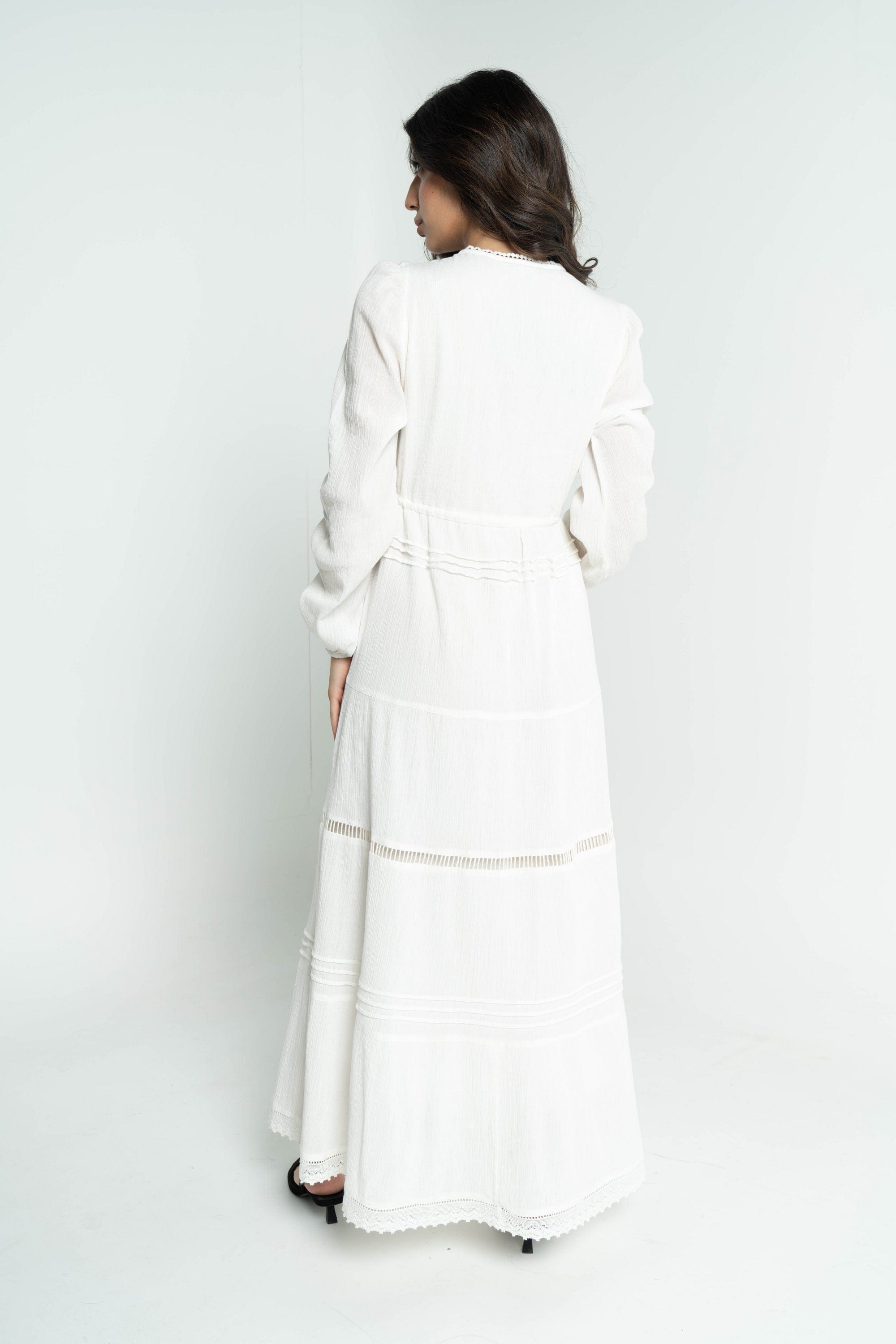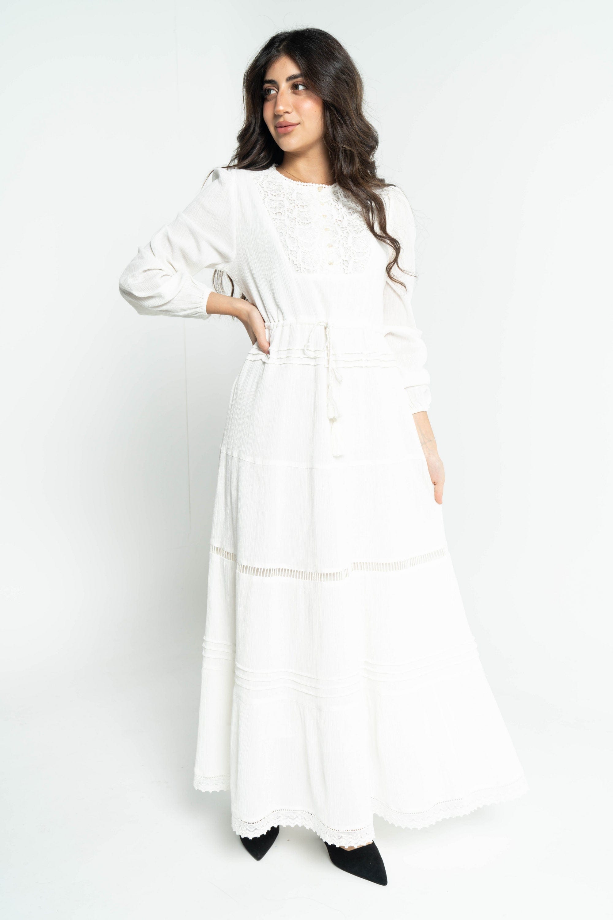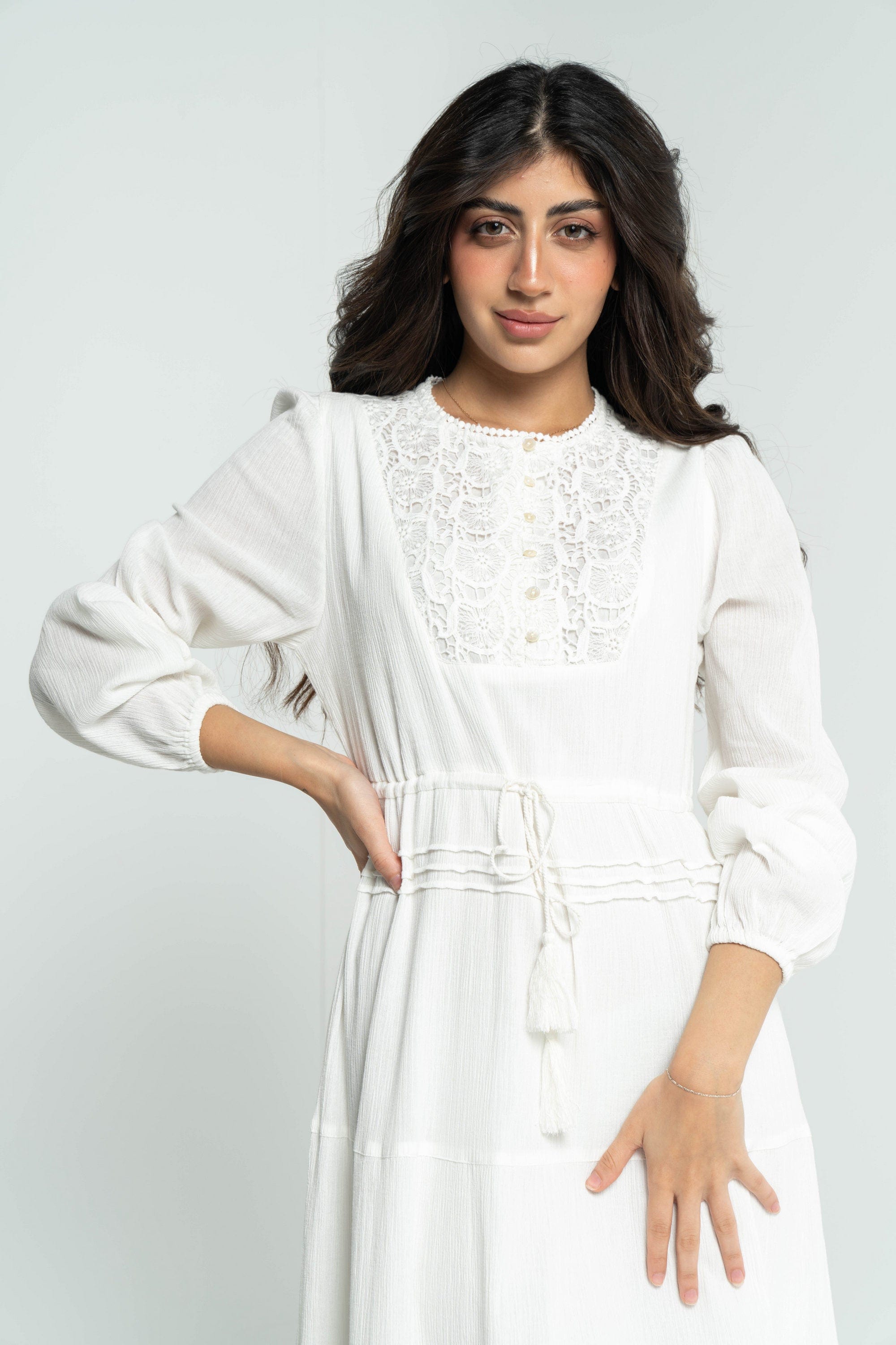 - تصميم سادة أبيض مع تفاصيل دانتيل أنيقة