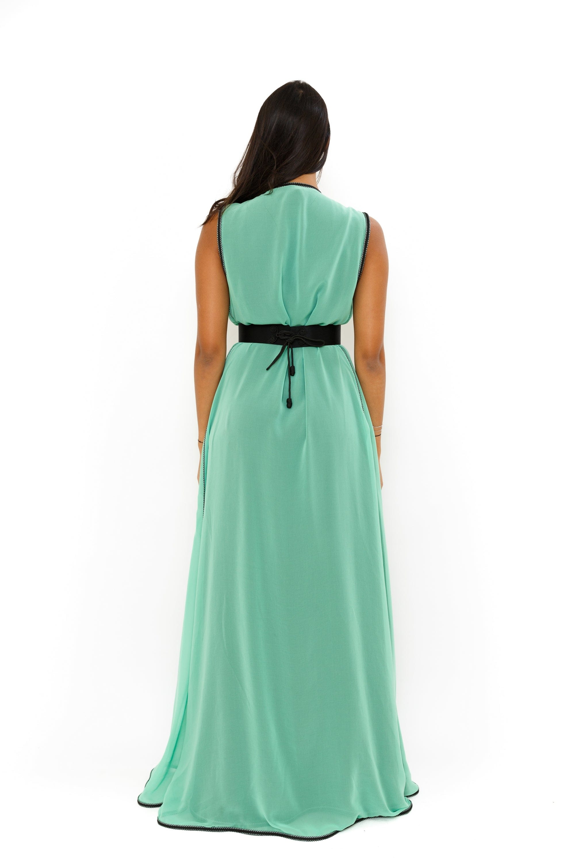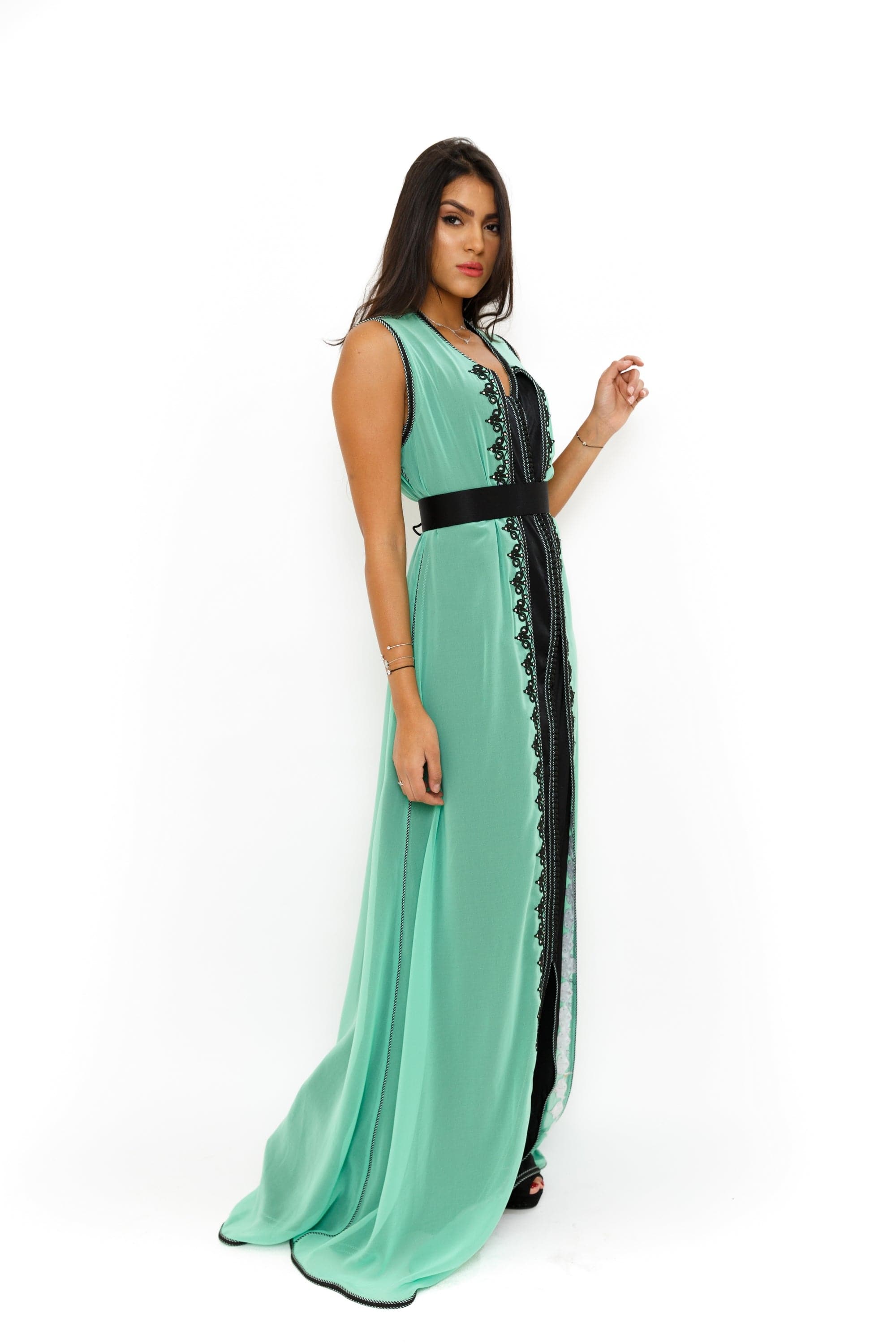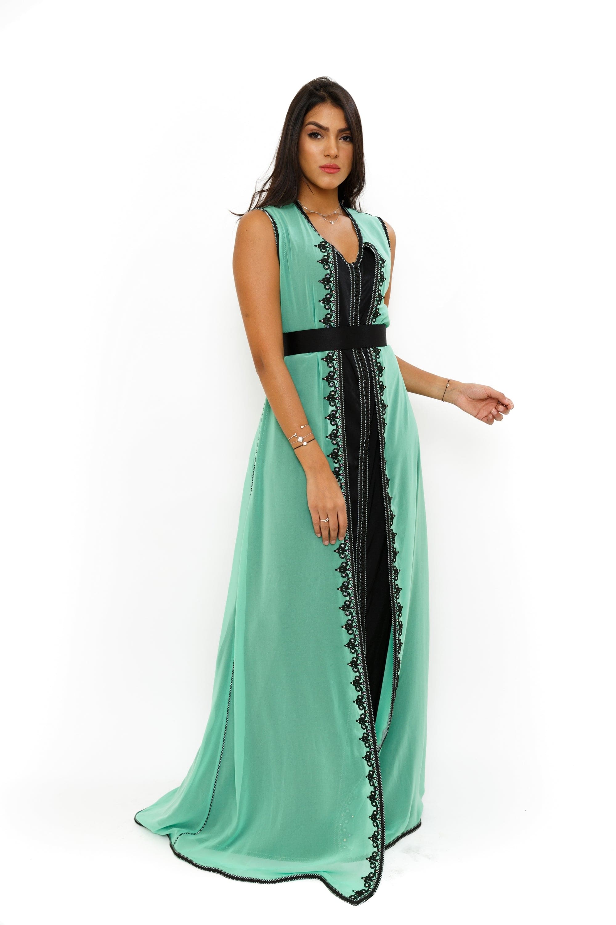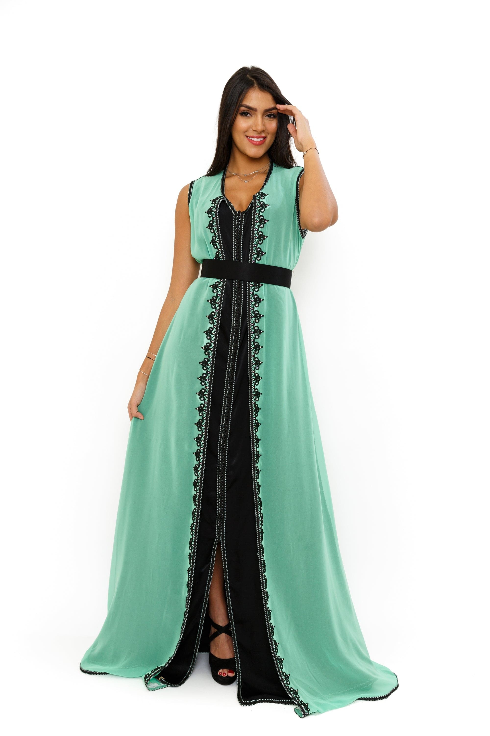 استعدي للتألق بعباية مغربية بدون أكمام من الشيفون الناعم، مزينة بتطريز رائع على الصدر للأسفل. تتوفر هذه العباية بلون أخضر جذاب، وهي مثالية للمرأة العصرية والأنيقة. صُممت هذه القطعة بعناية فائقة لتضفي لمسة من الأناقة على إطلالتك. تتميز بقصة مريحة وخامة ناعمة تضمن لك الراحة طوال اليوم. ارتدي هذه العباية في المناسبات الخاصة أو الأمسيات الرسمية لتتألقي بأناقة لا مثيل لها. احصلي الآن على عباية مغربية بدون أكمام من الشيفون الناعم مزينة بتطريز على الصدر للأسفل من ديامانتين وأضيفي لمسة فريدة إلى مجموعتك الخاصة. اطلبي الآن واستمتعي بأجمل الأزياء من فاشن. رقم المنتج: lb1ck3u