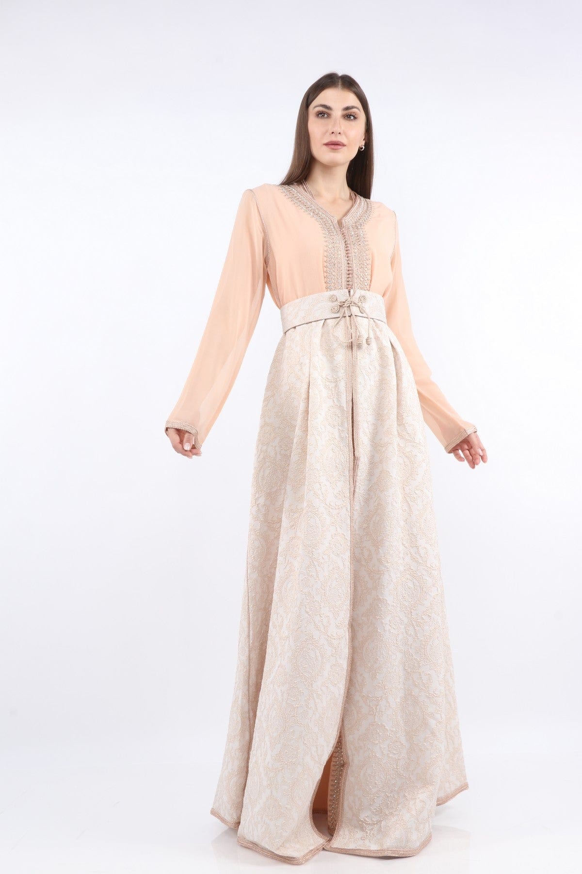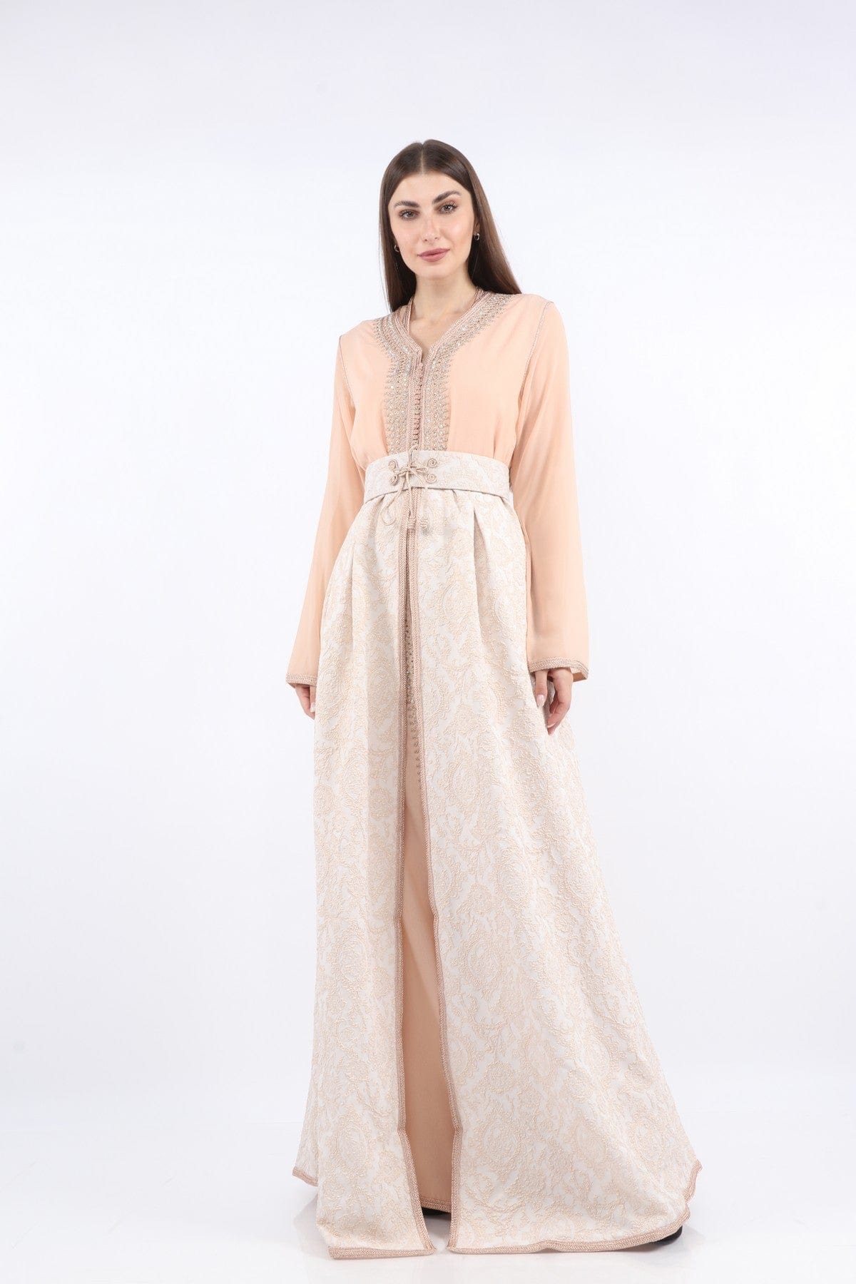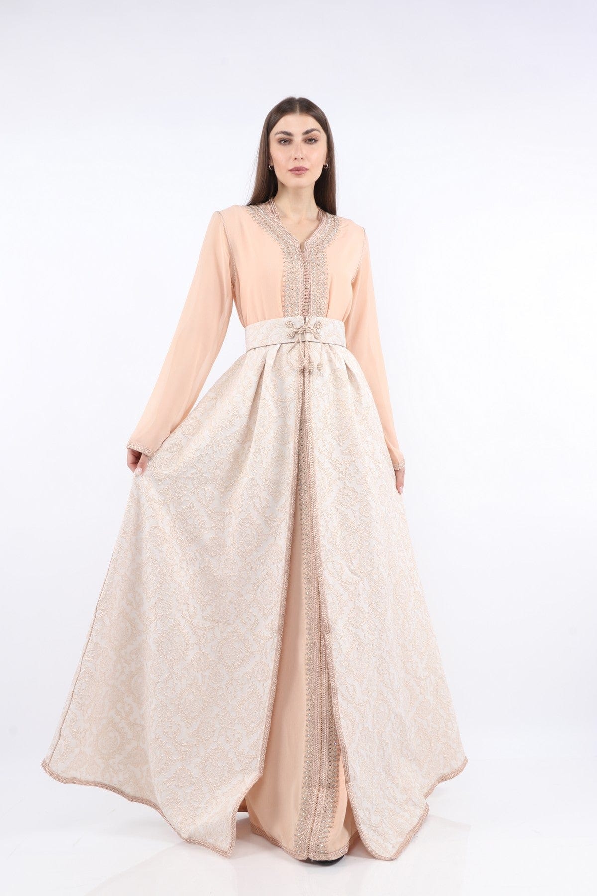 قفطان كم طويل نسائي بحزام خصر ومنفوش من تحت
